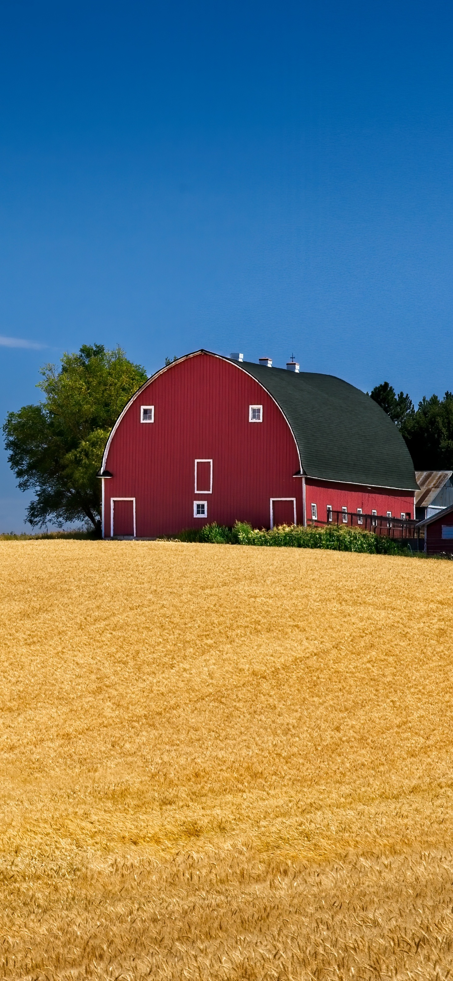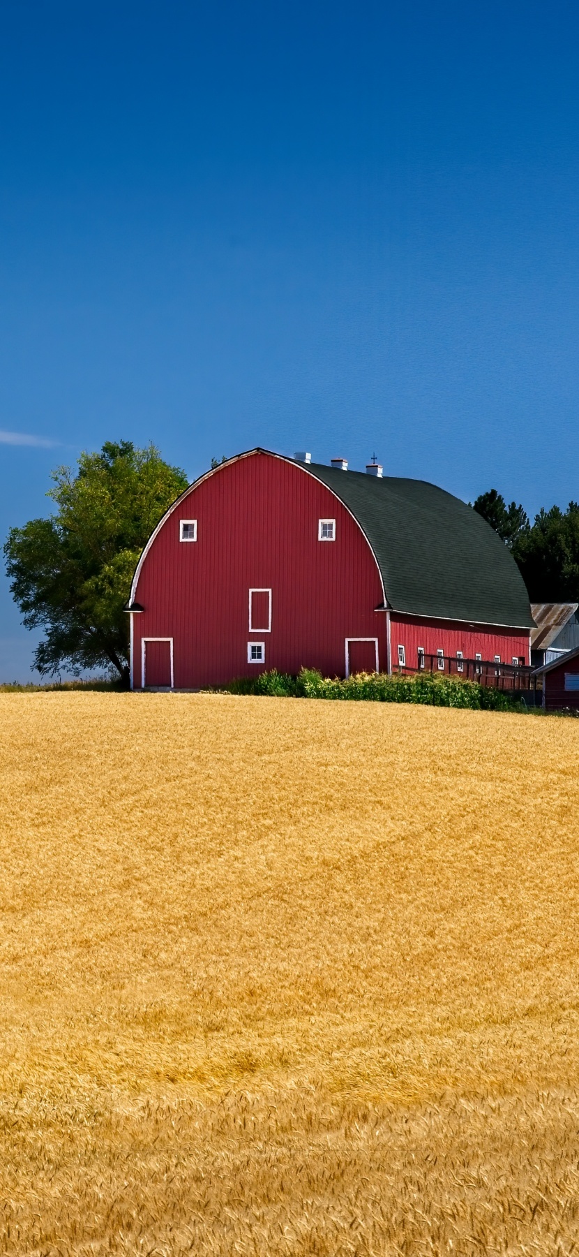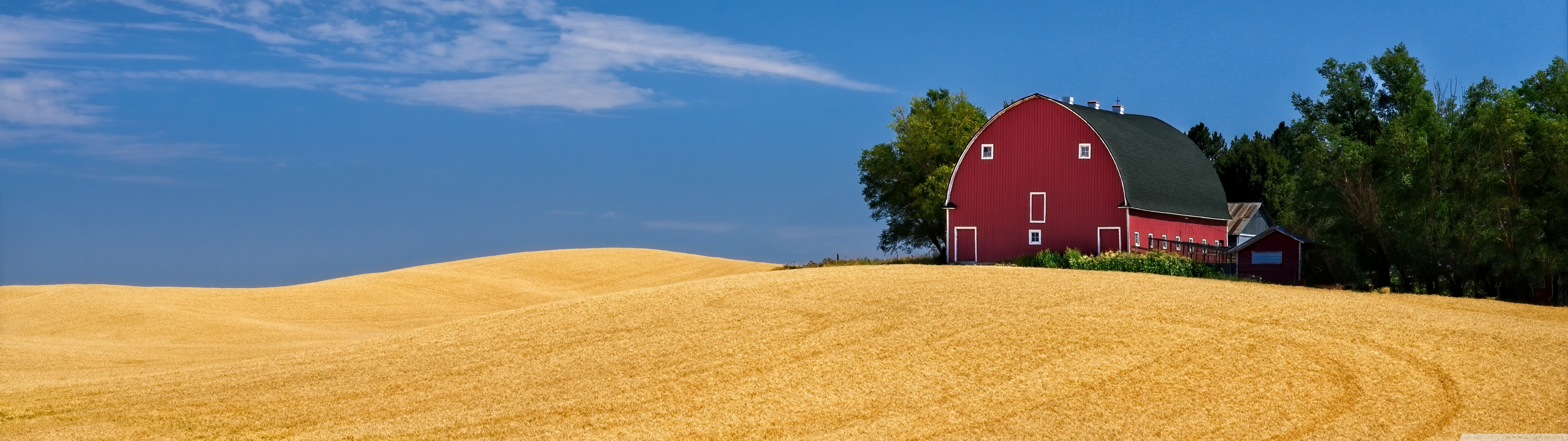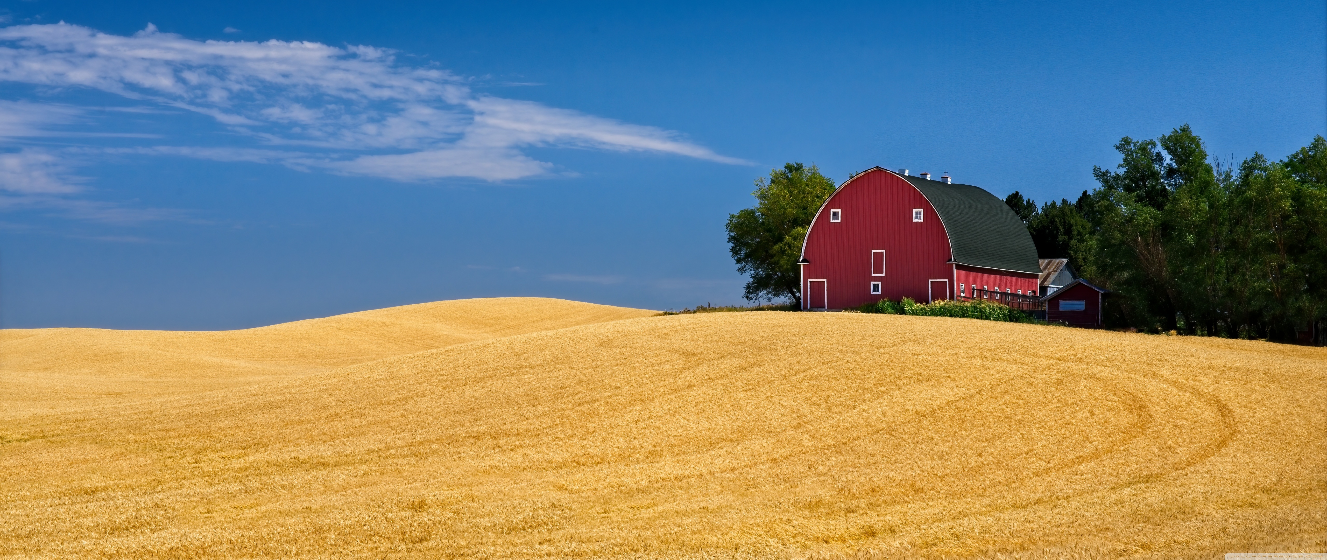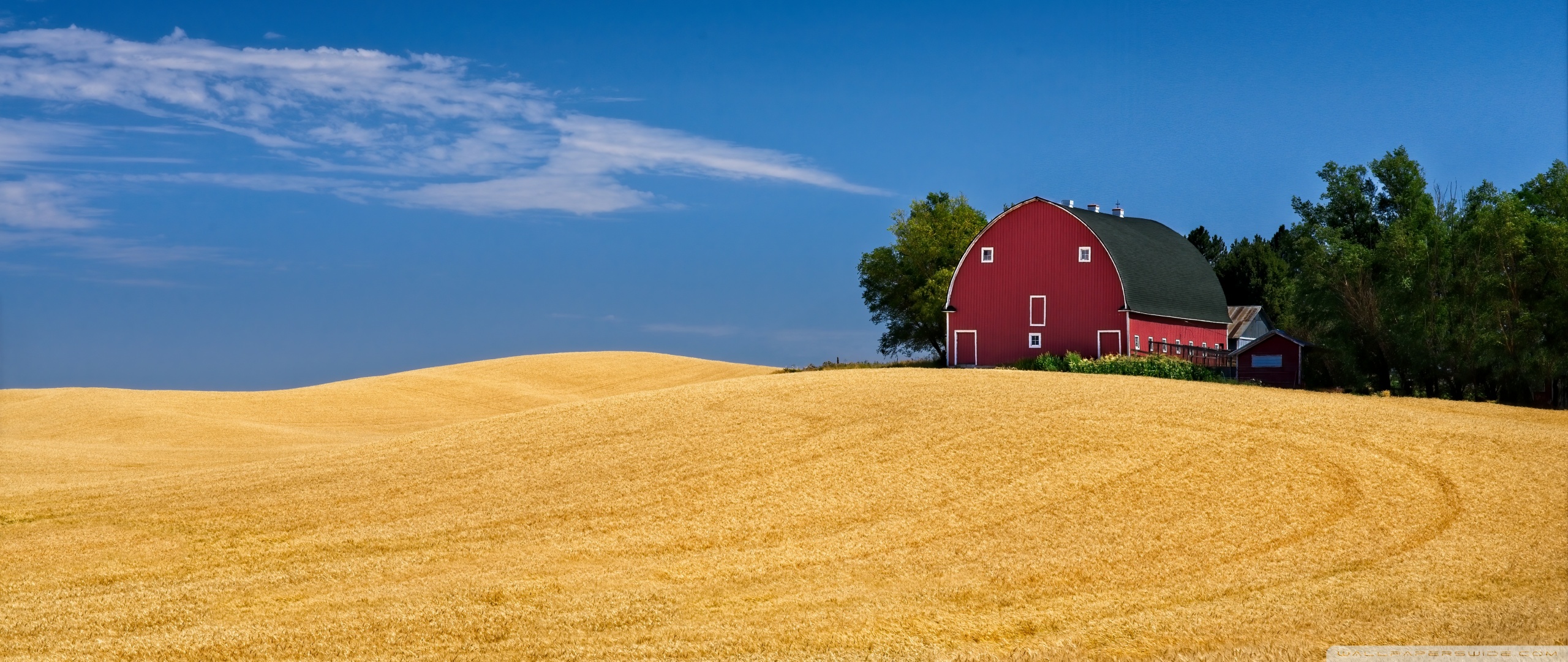 Download Classic American Red Barn in Wheat Field 4K UHD Wallpaper
