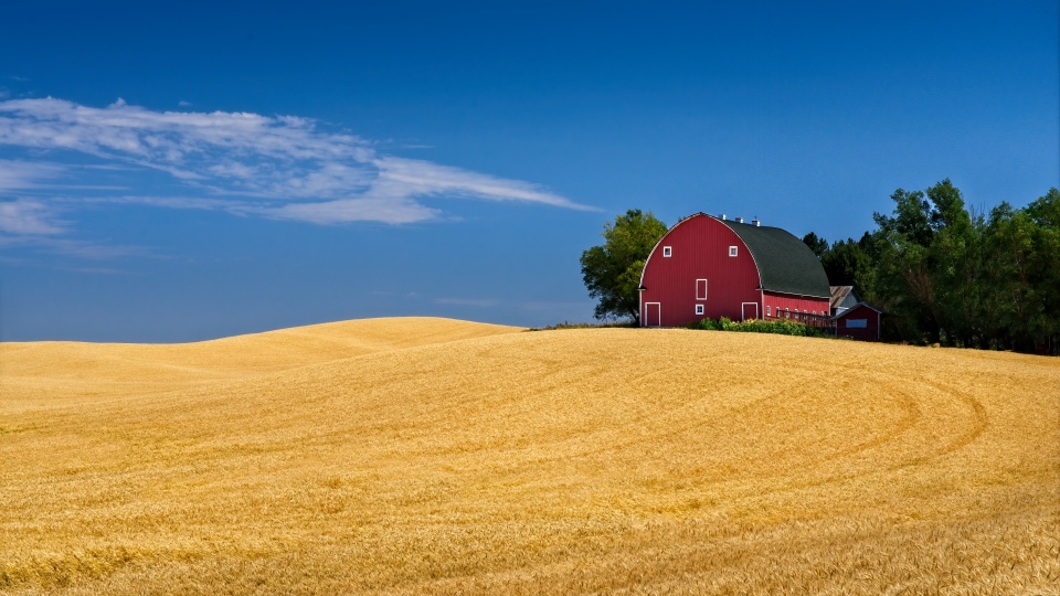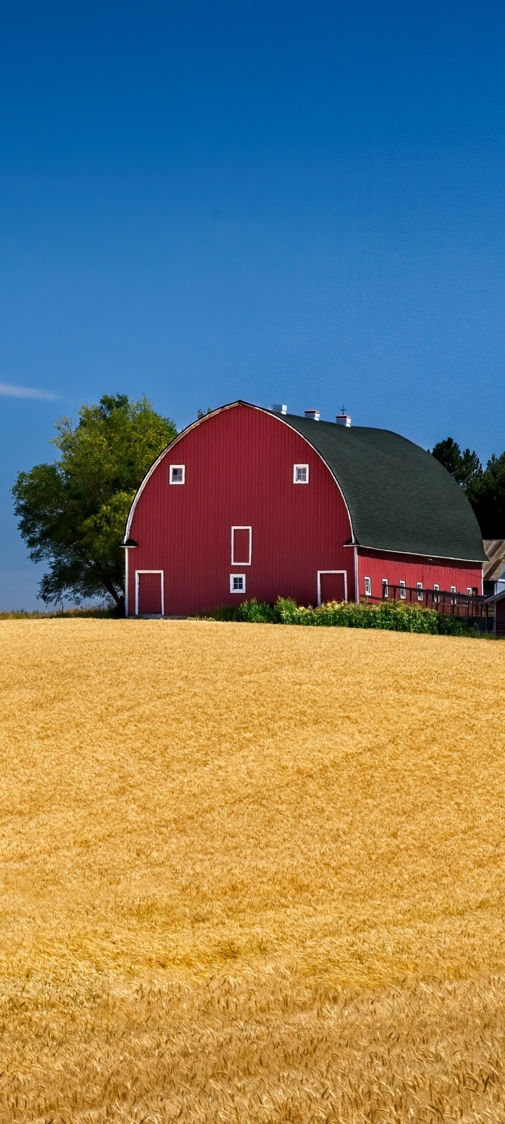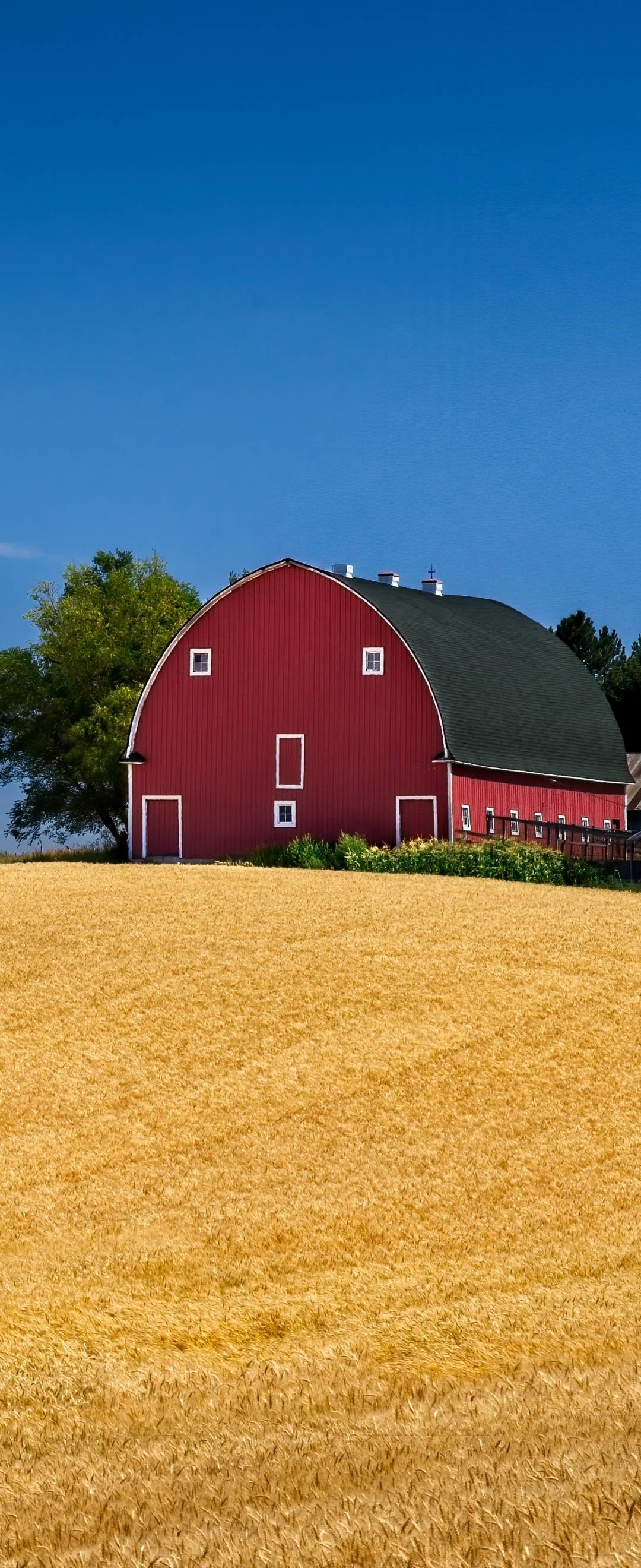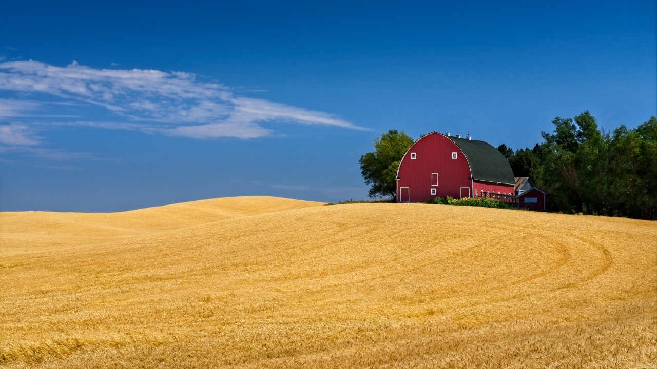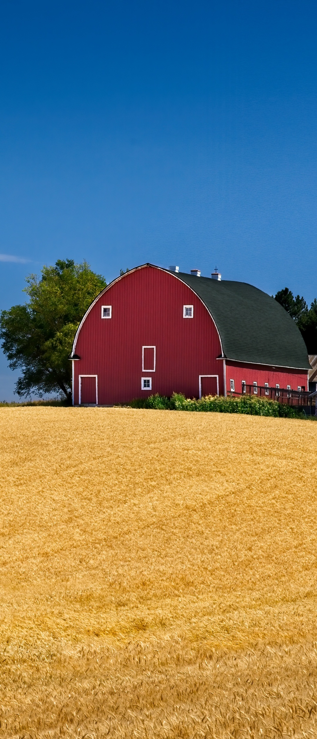 Download Classic American Red Barn in Wheat Field 4K UHD Wallpaper