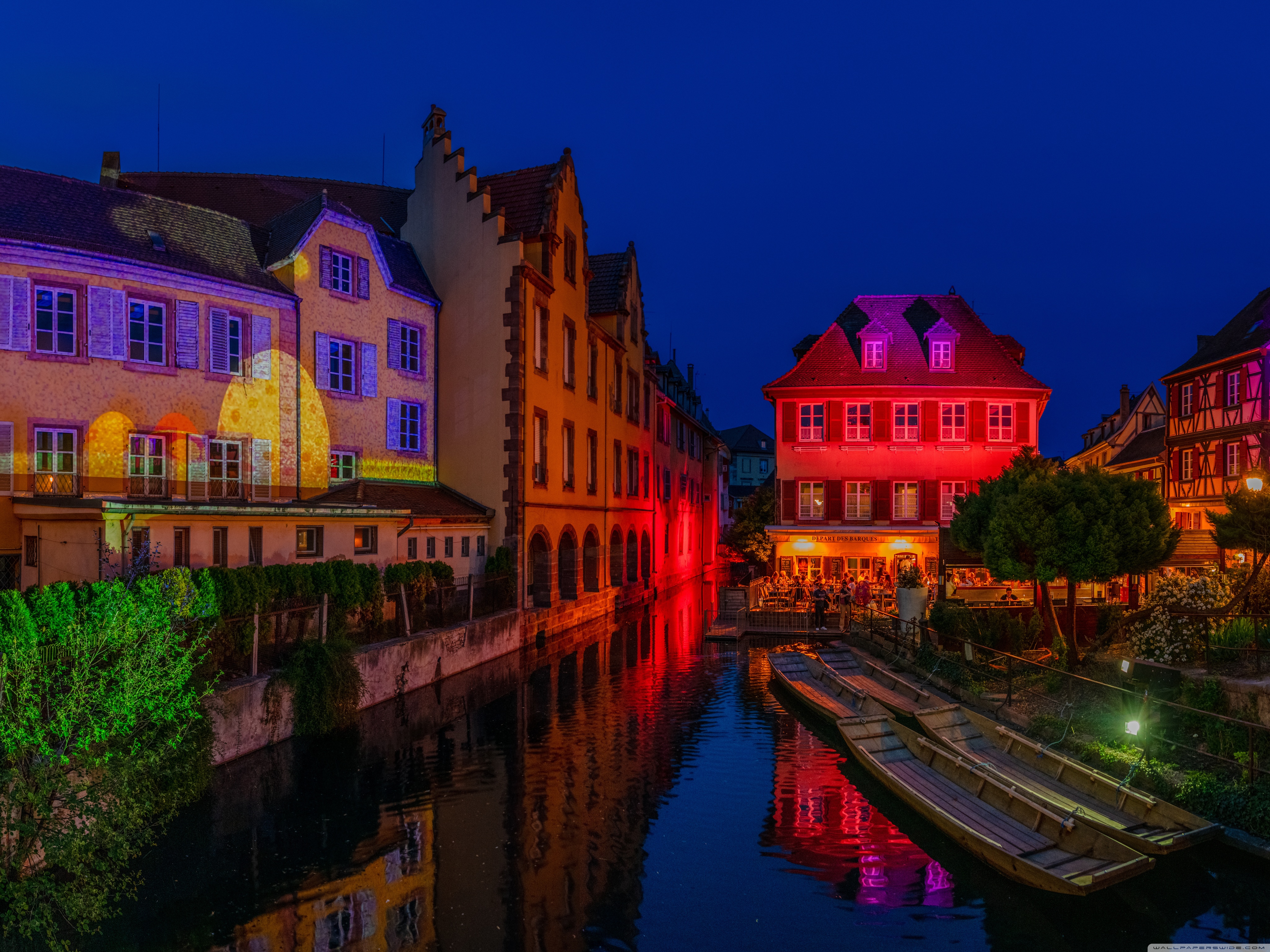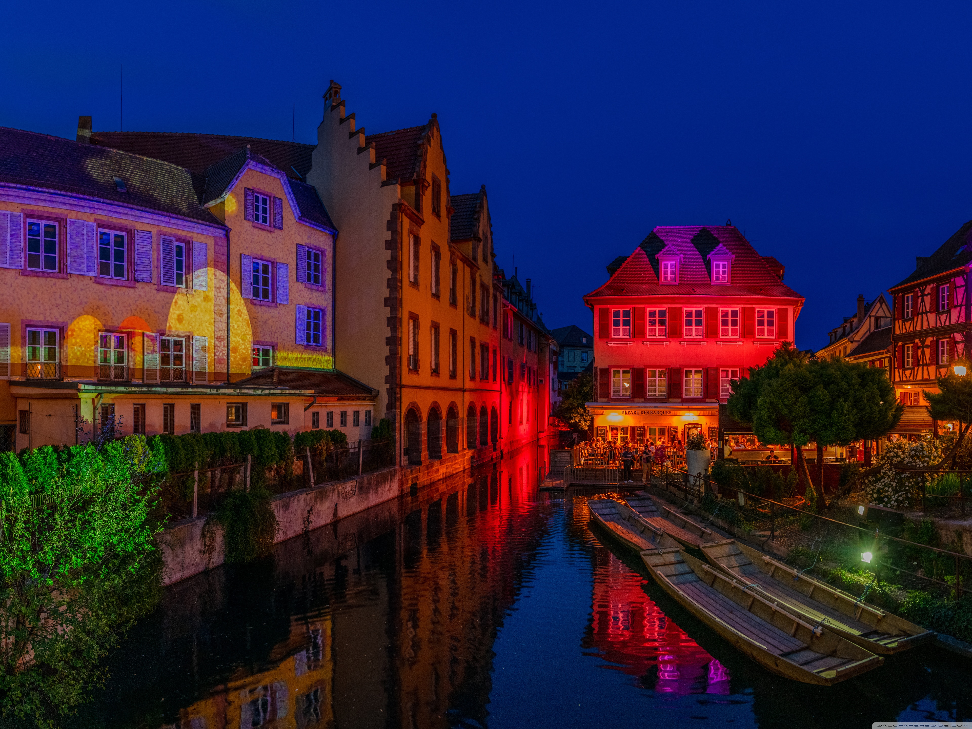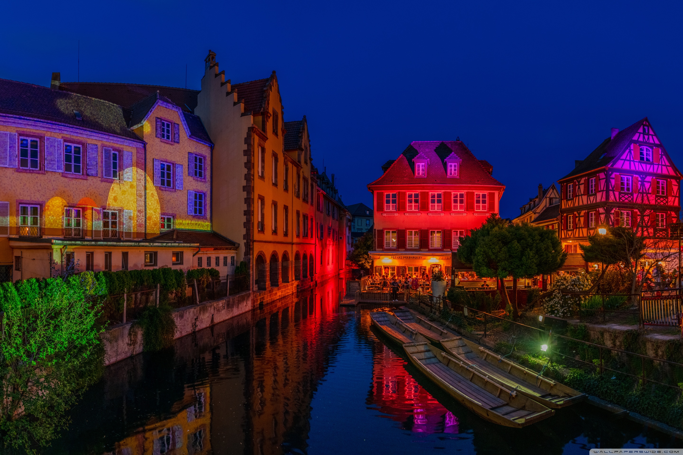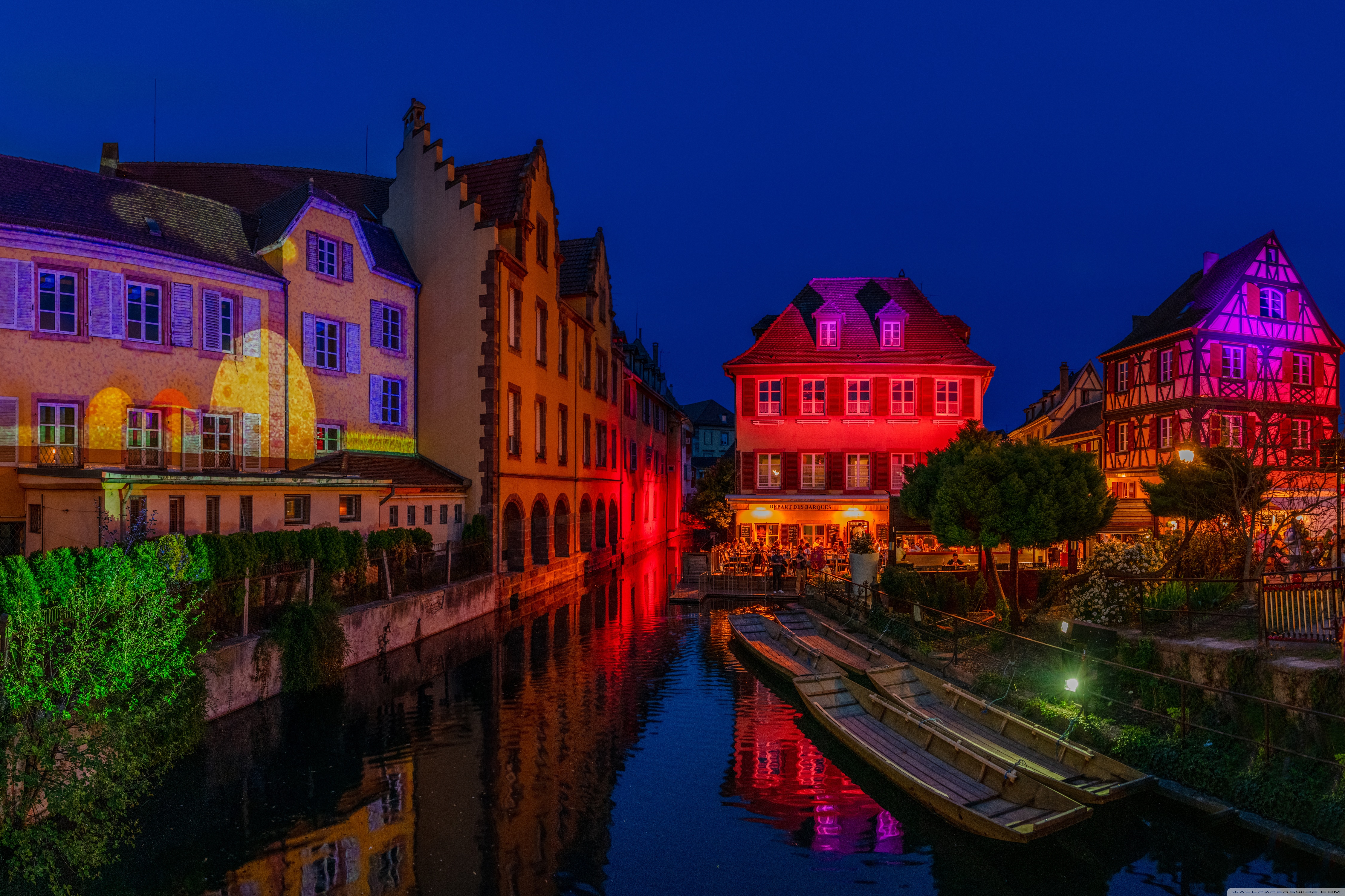 Download Colmar at Night, Alsace, France 4K UHD Wallpaper
