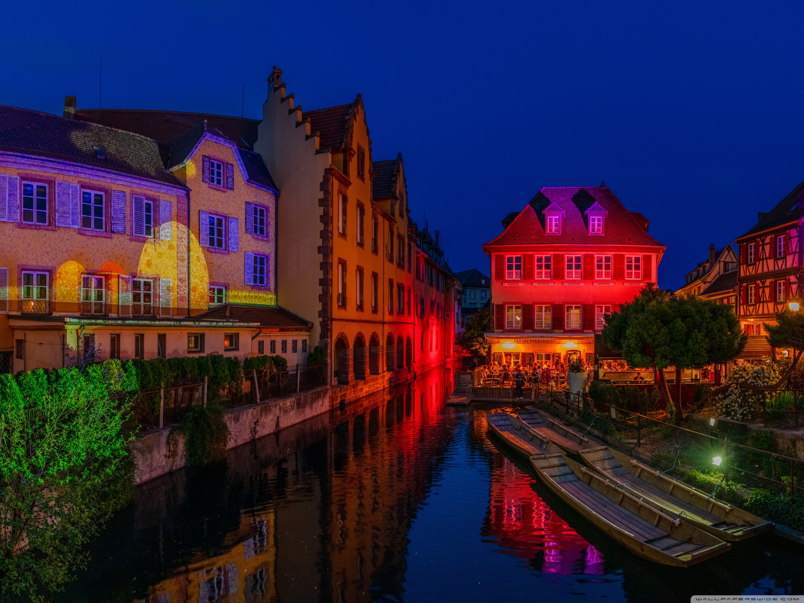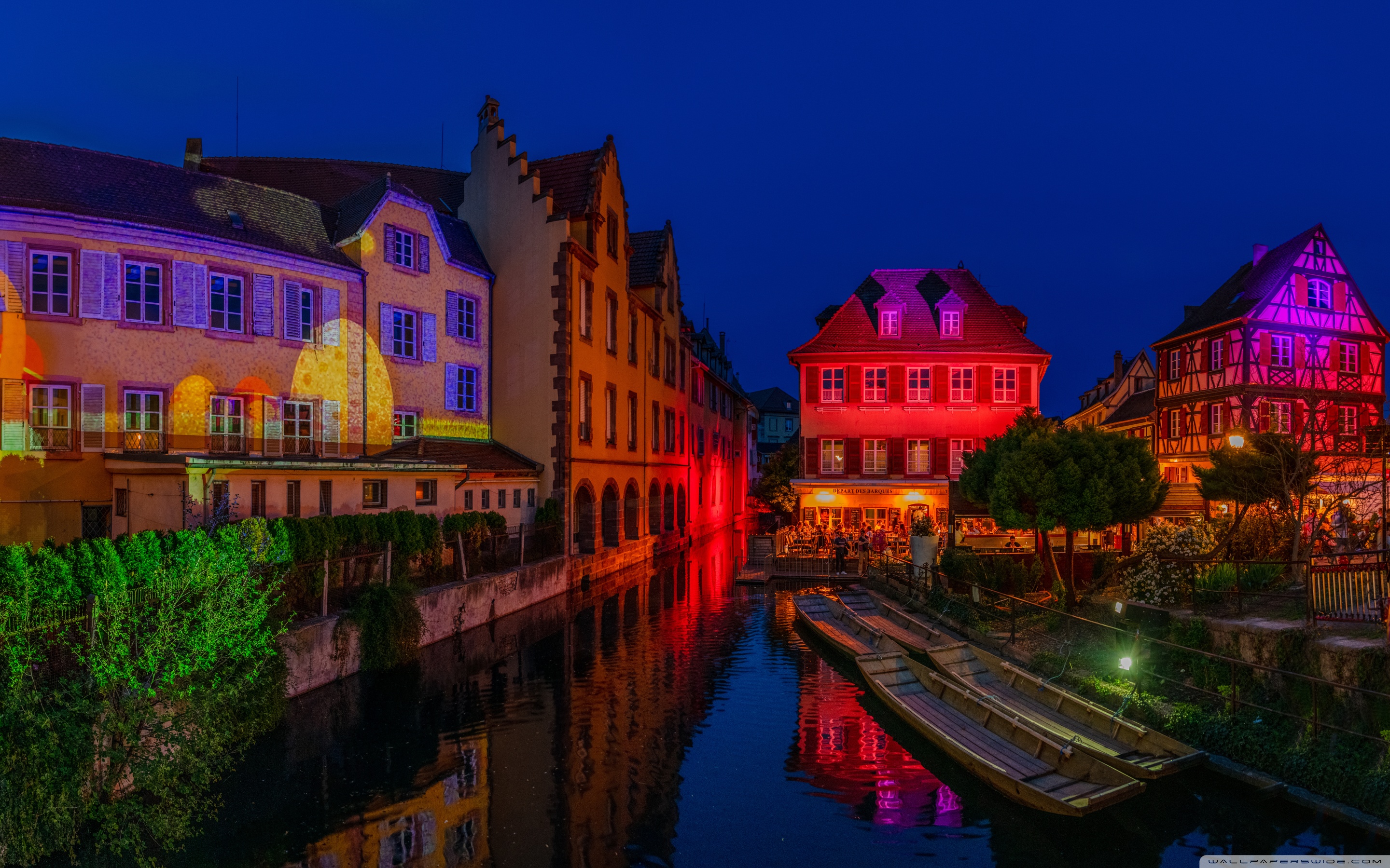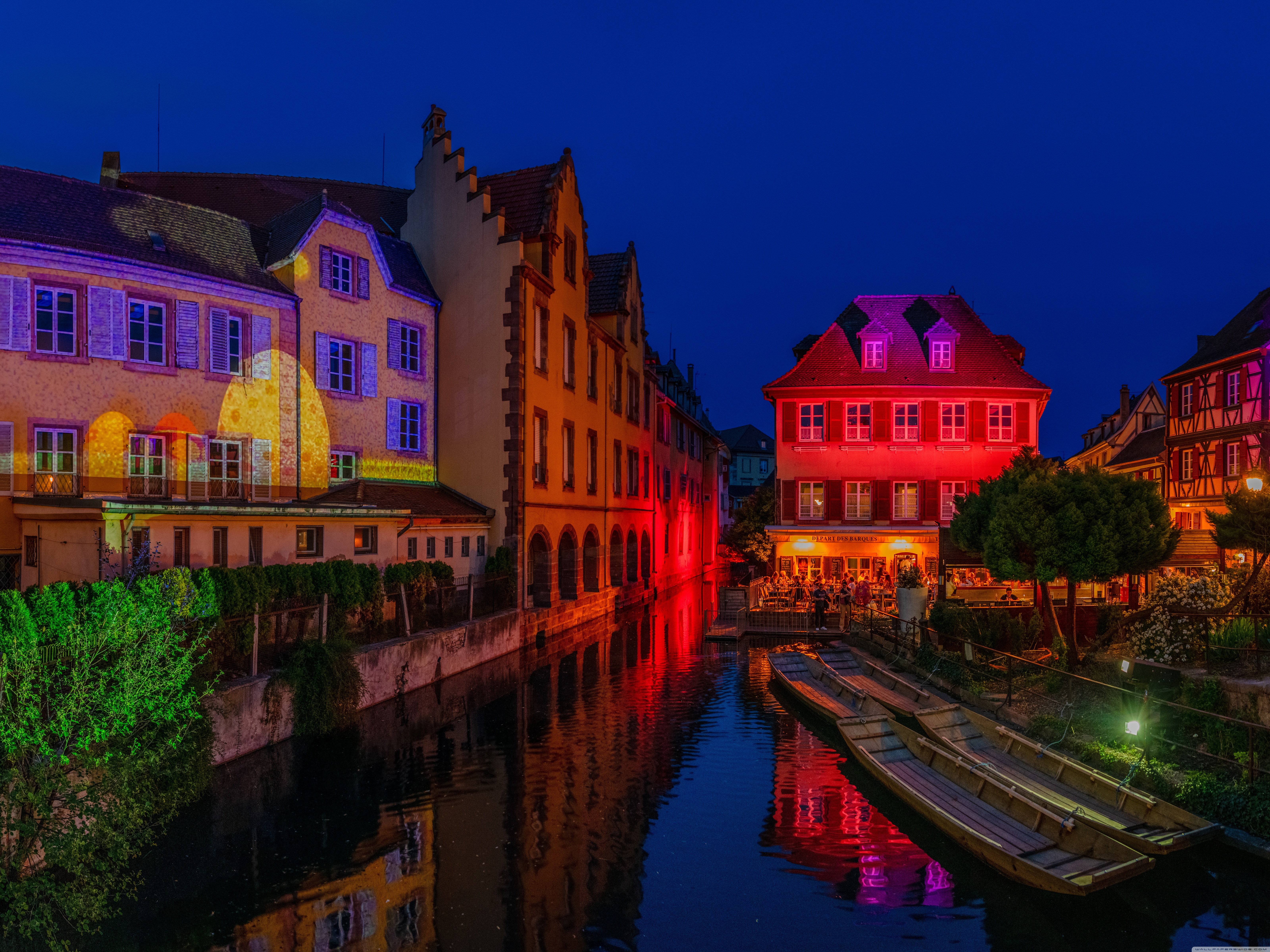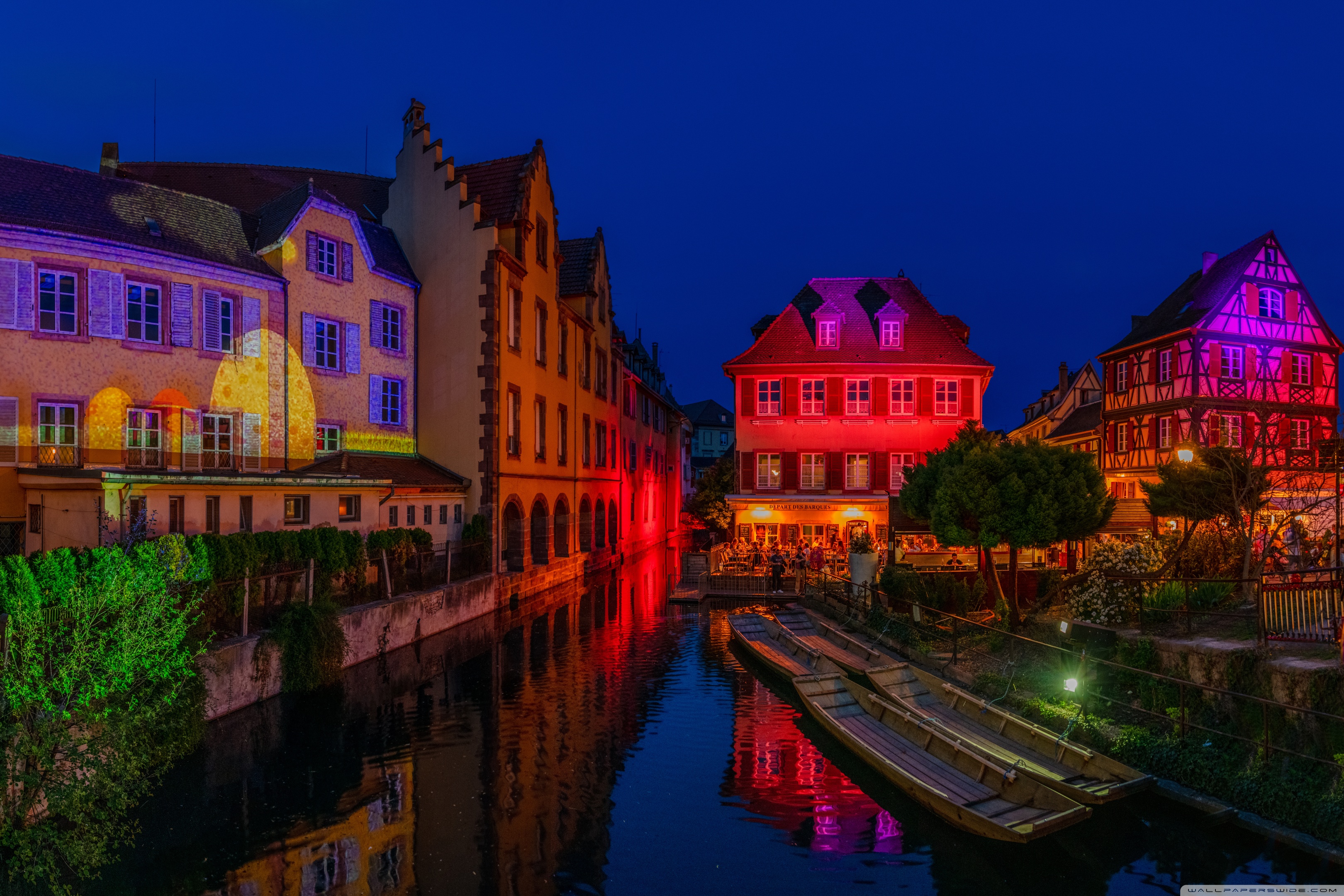 Download Colmar at Night, Alsace, France 4K UHD Wallpaper