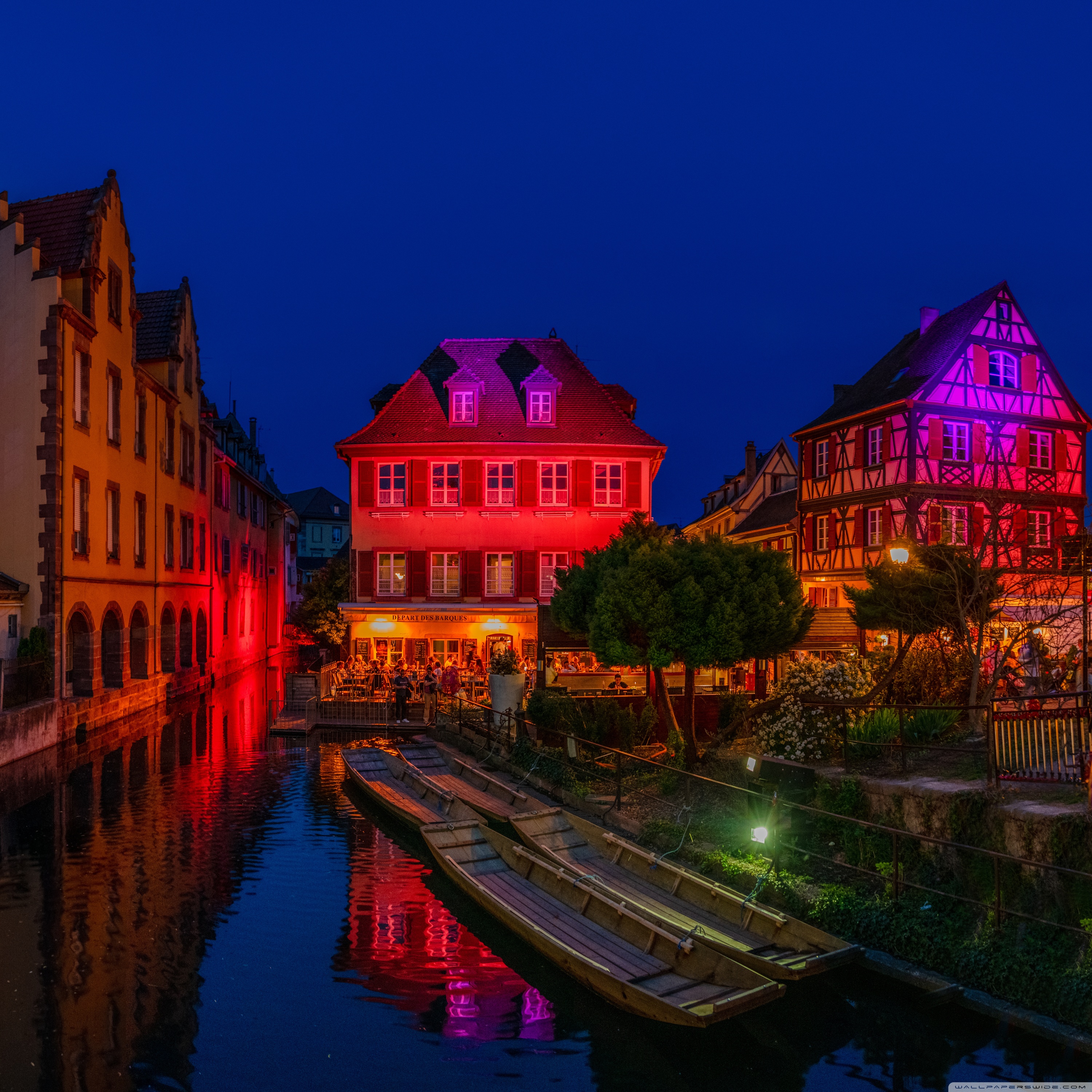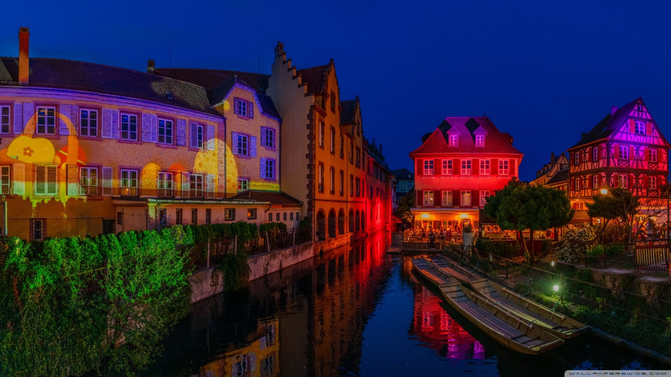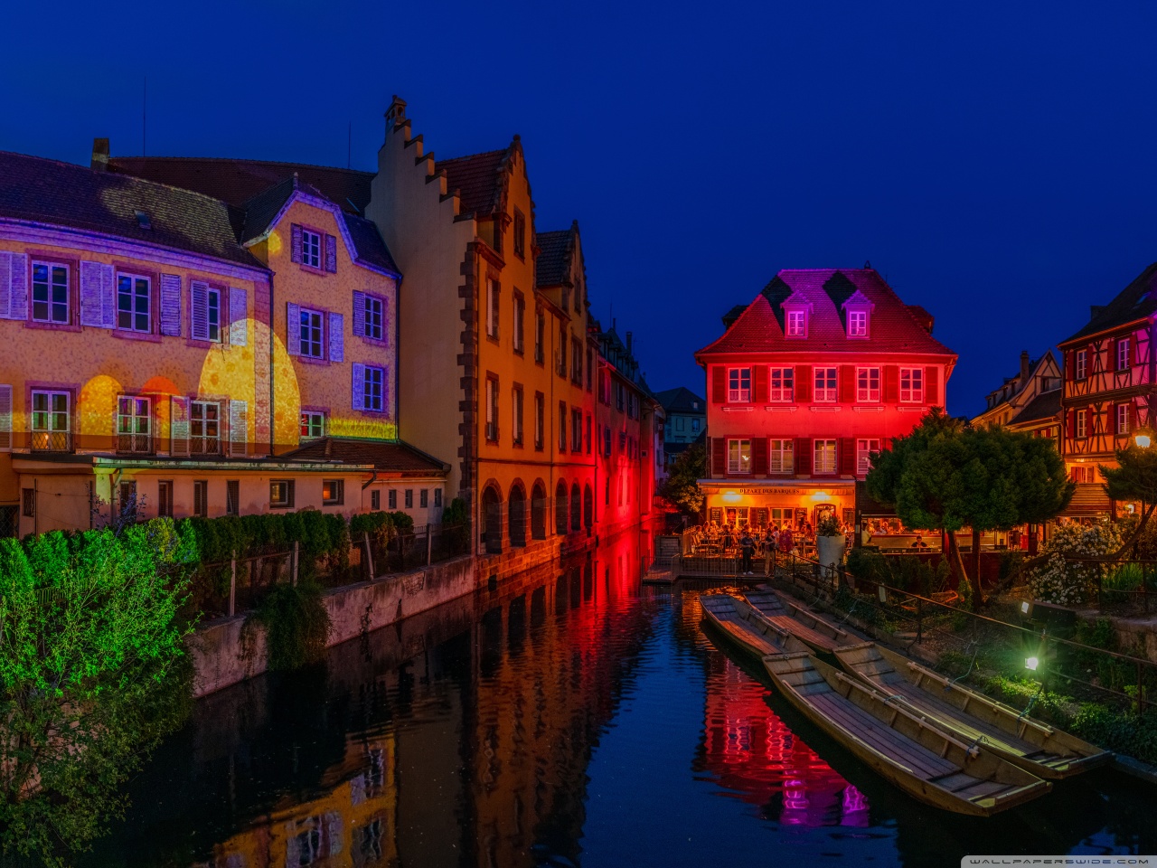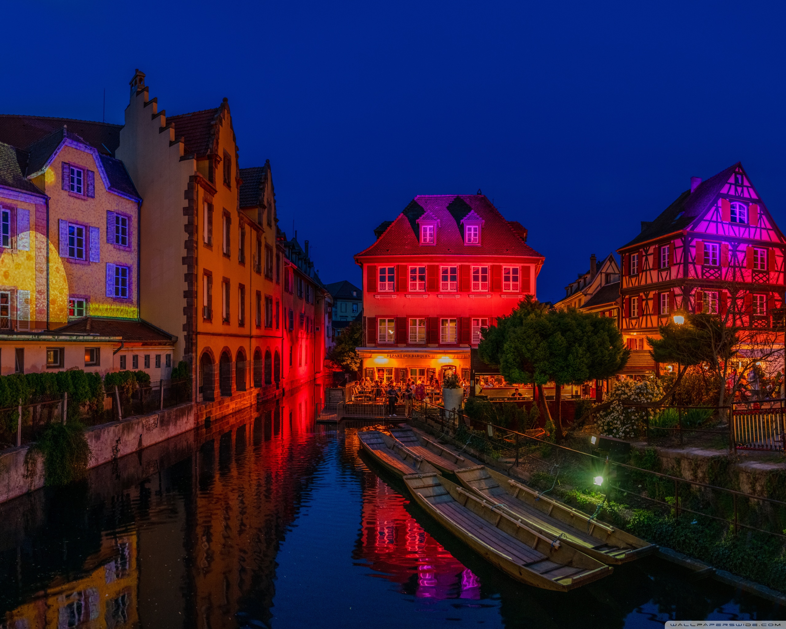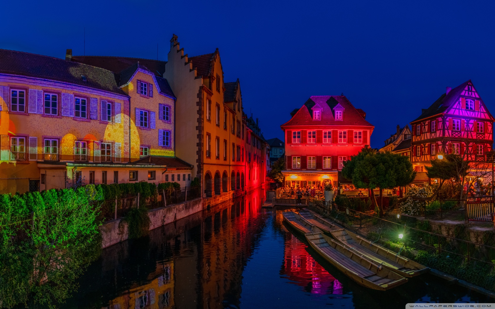 Download Colmar at Night, Alsace, France 4K UHD Wallpaper