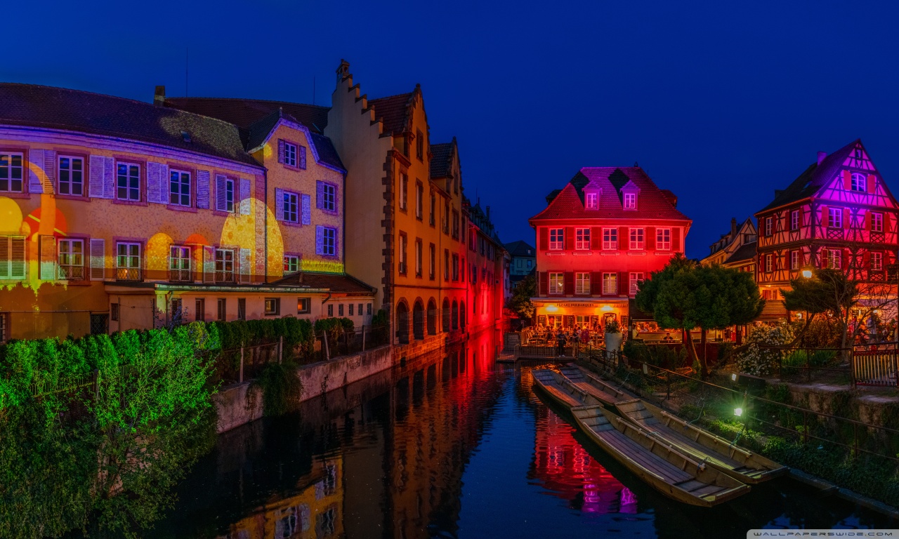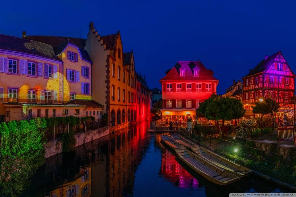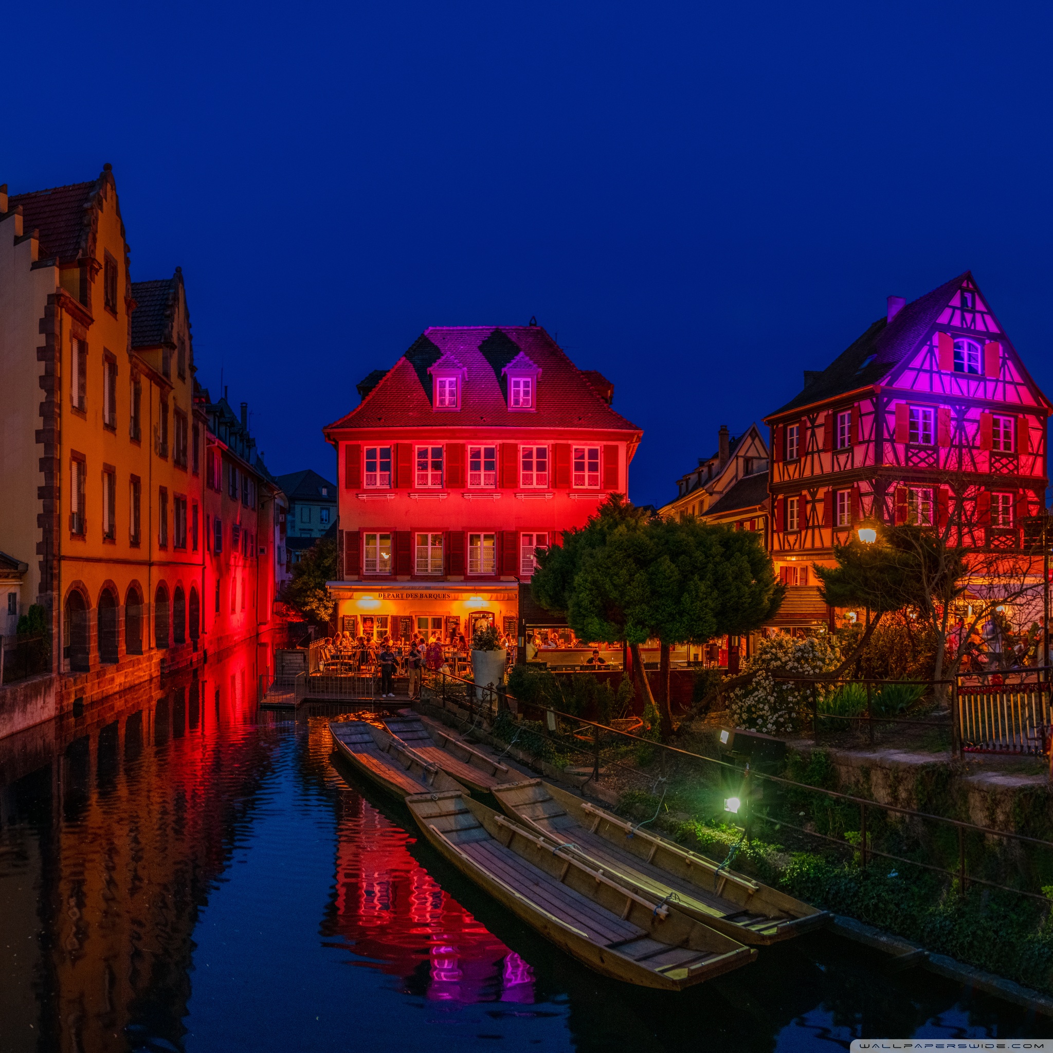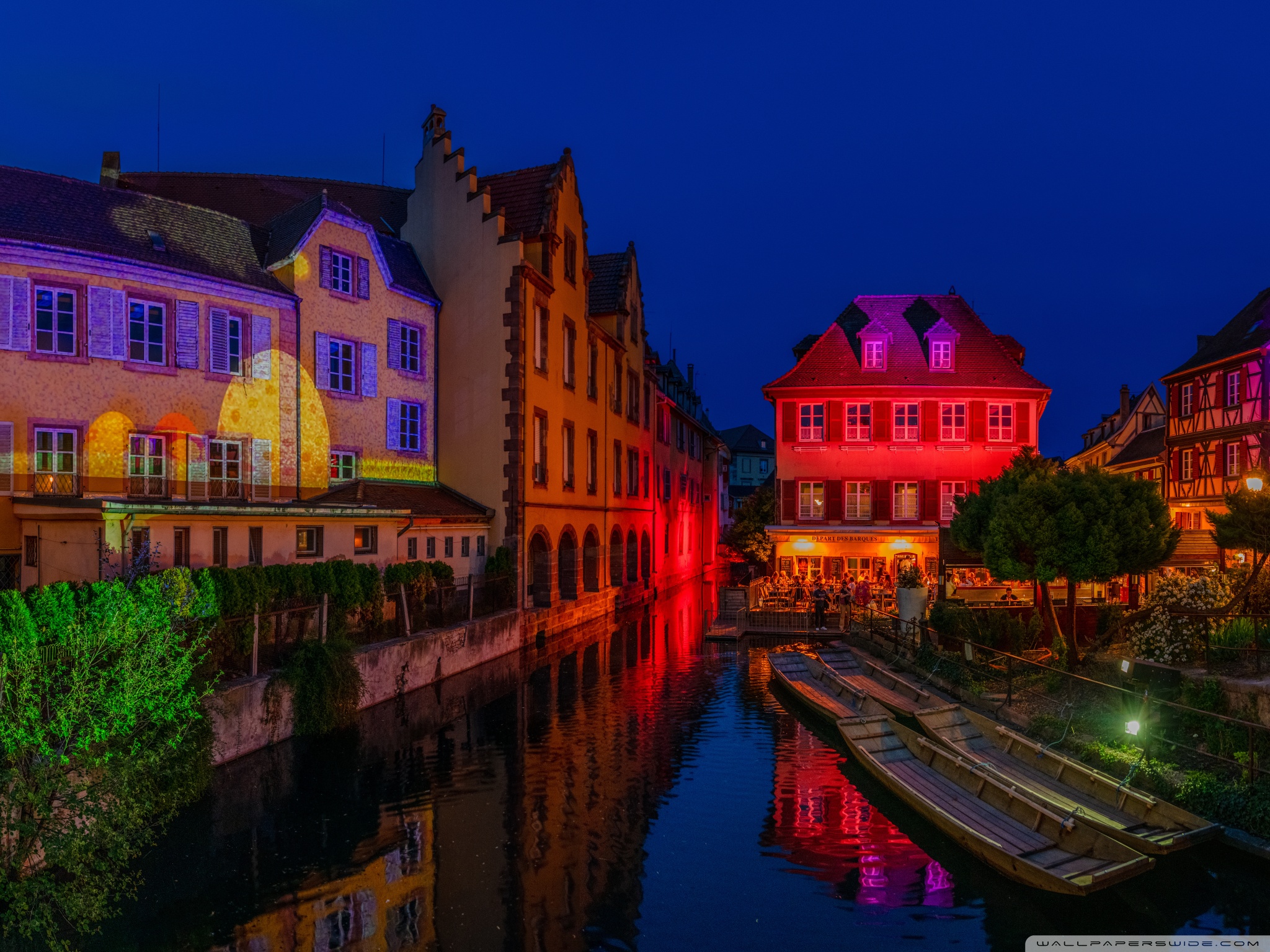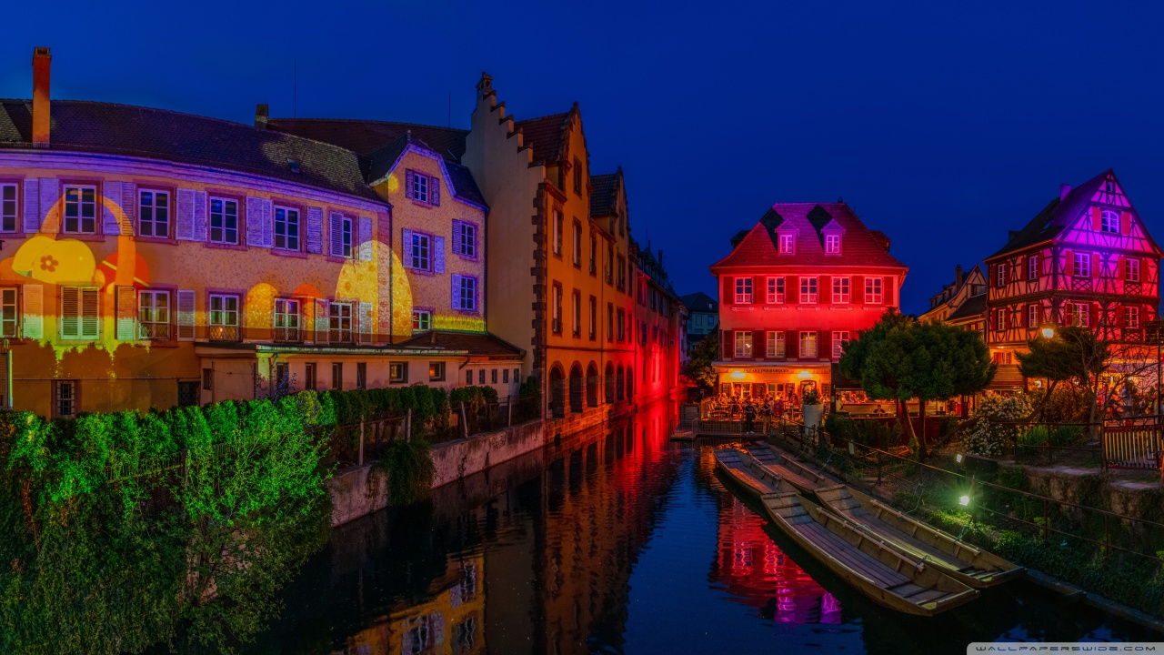 Download Colmar at Night, Alsace, France 4K UHD Wallpaper