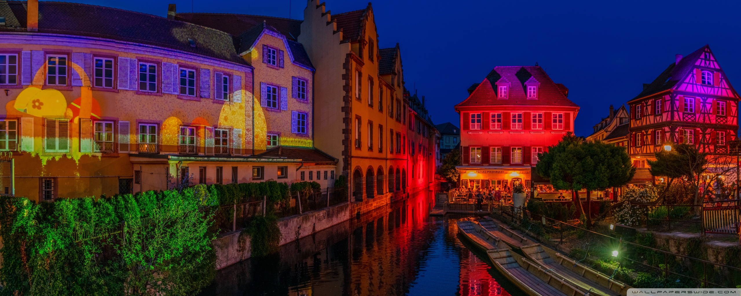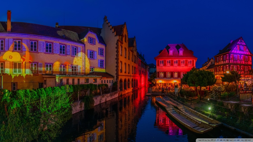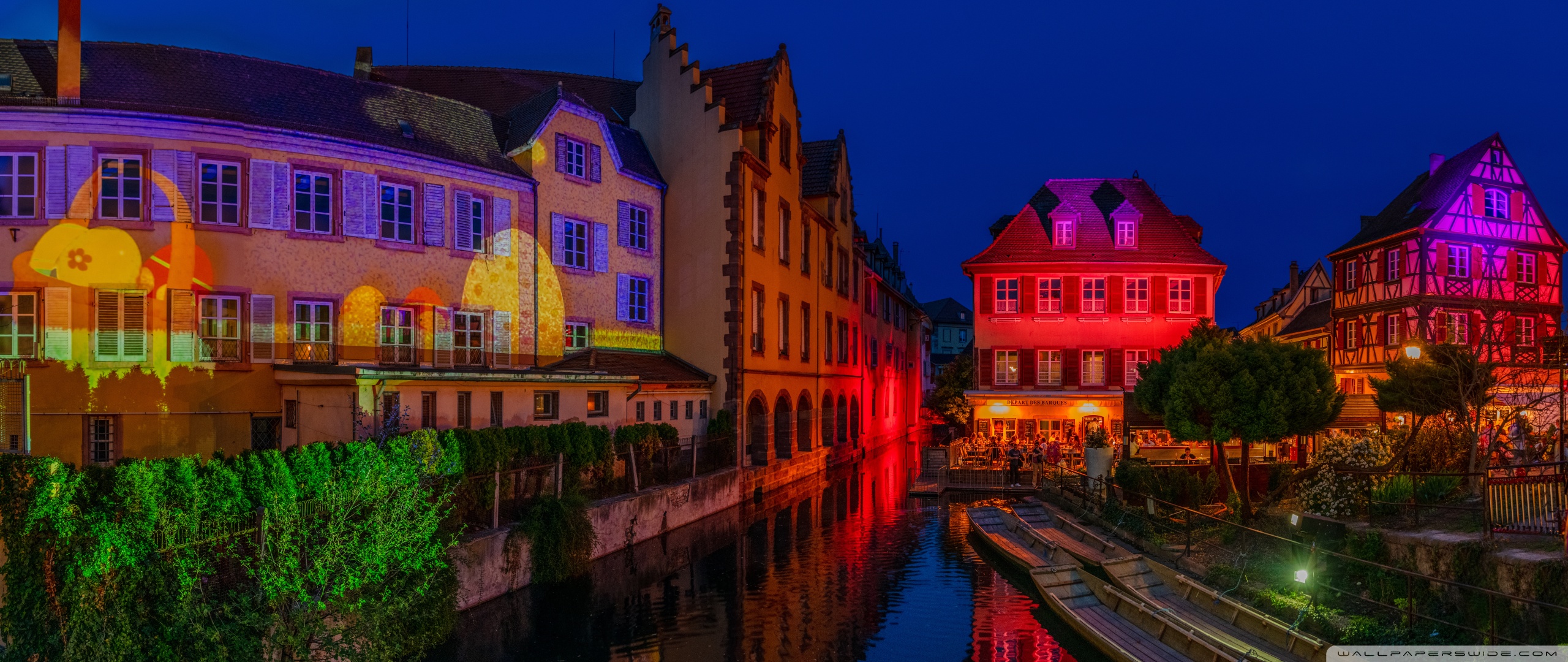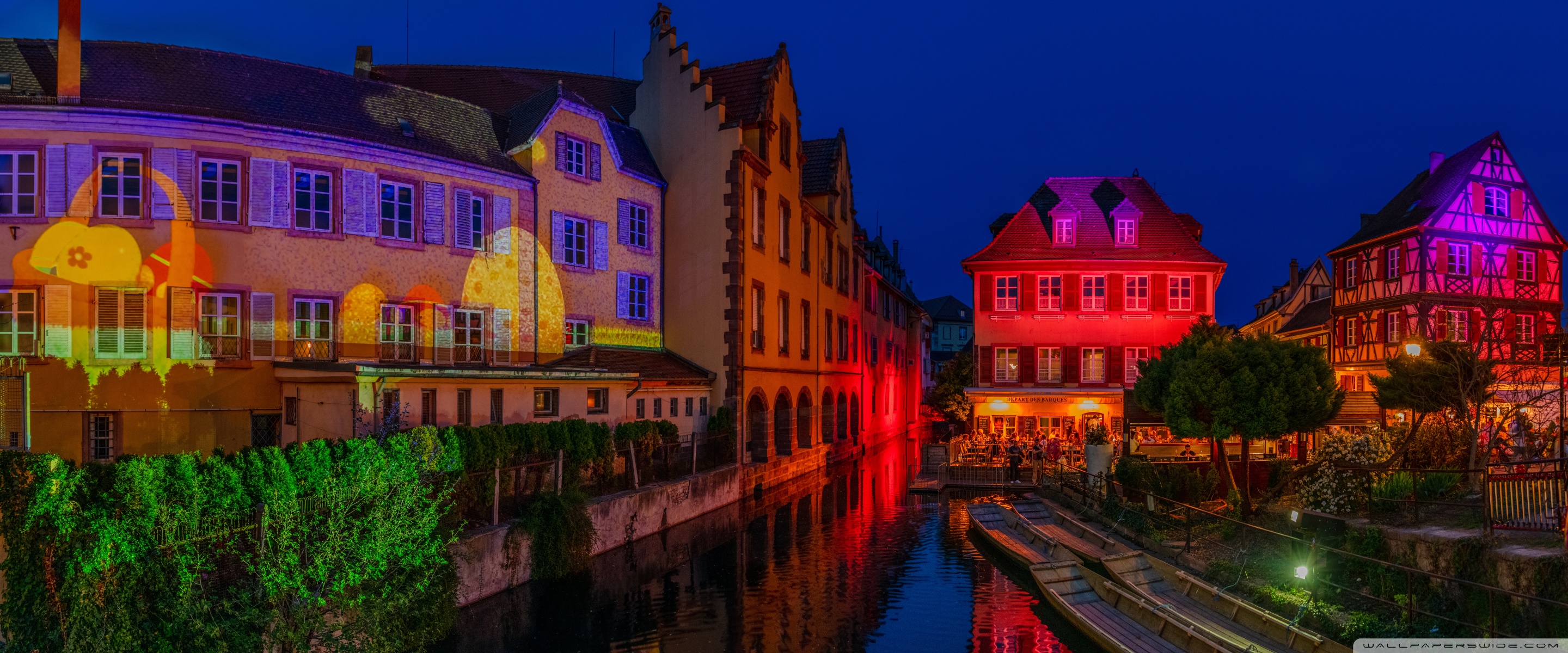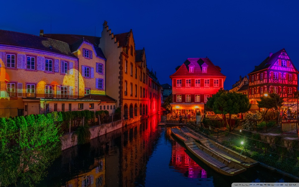 Download Colmar at Night, Alsace, France 4K UHD Wallpaper