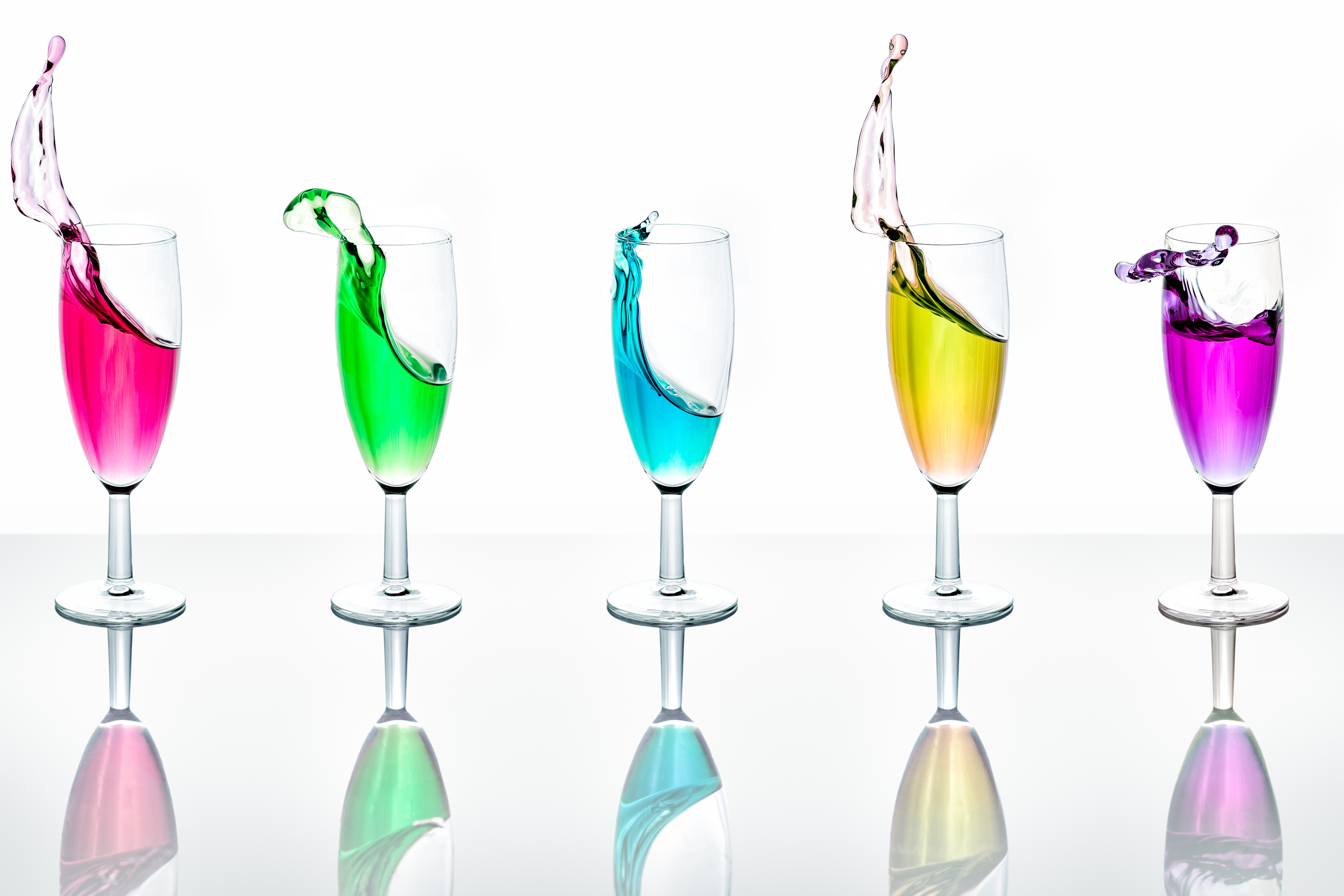 Download Colored Liquids in Glassware 4K UHD Wallpaper