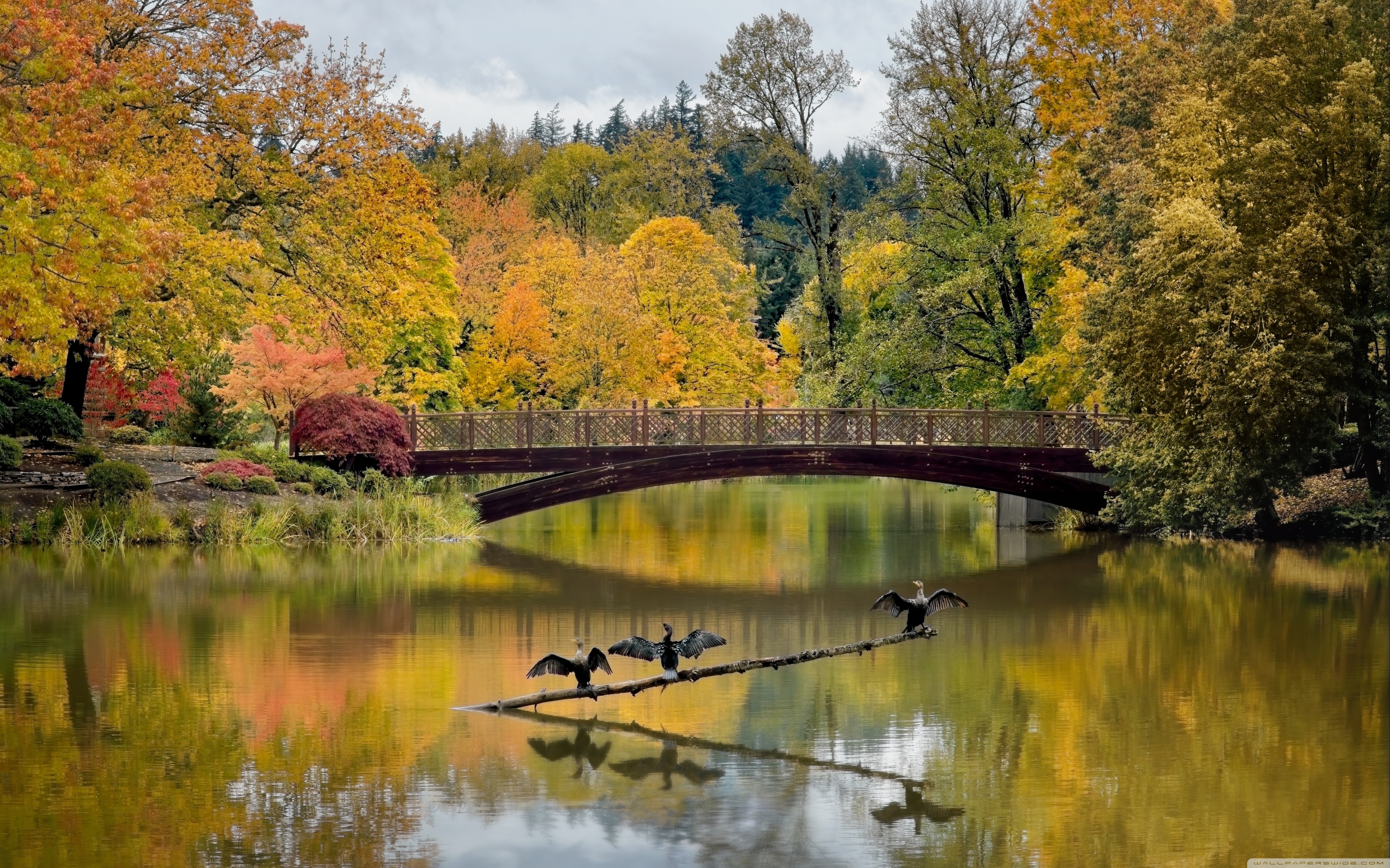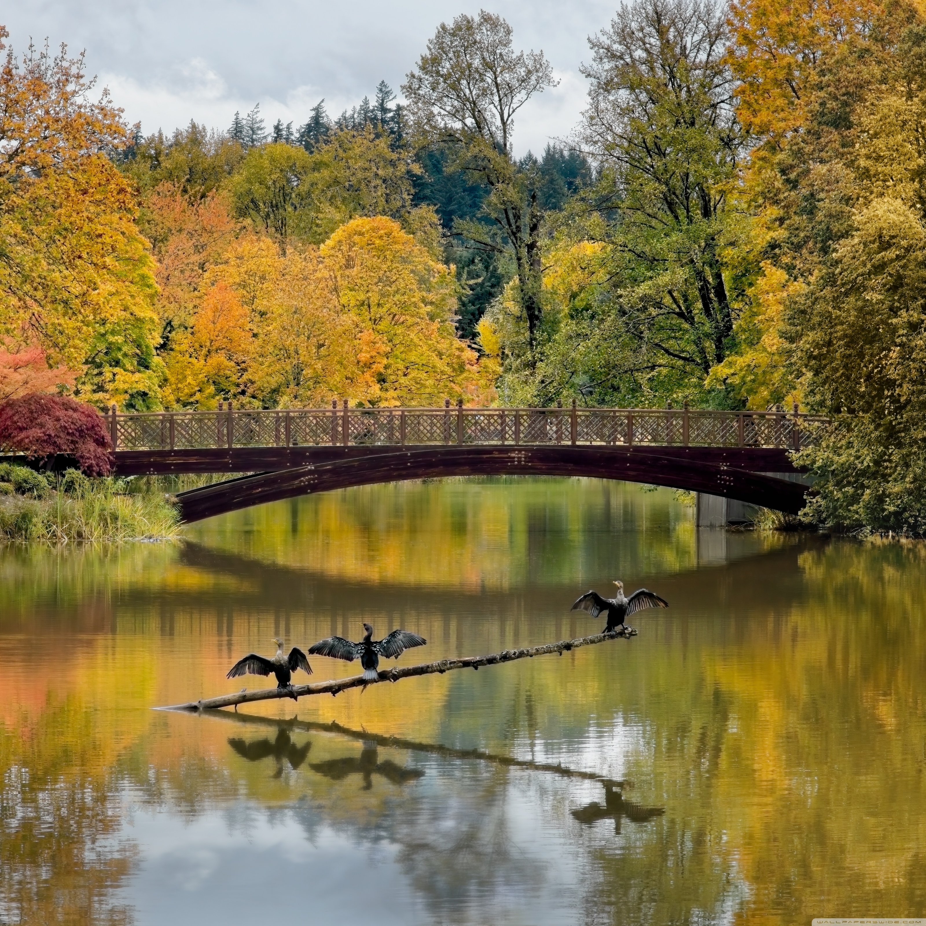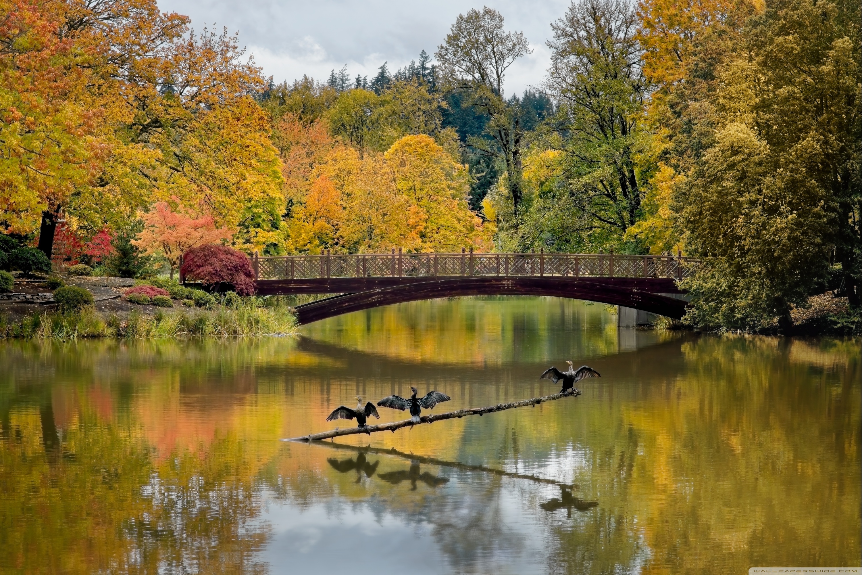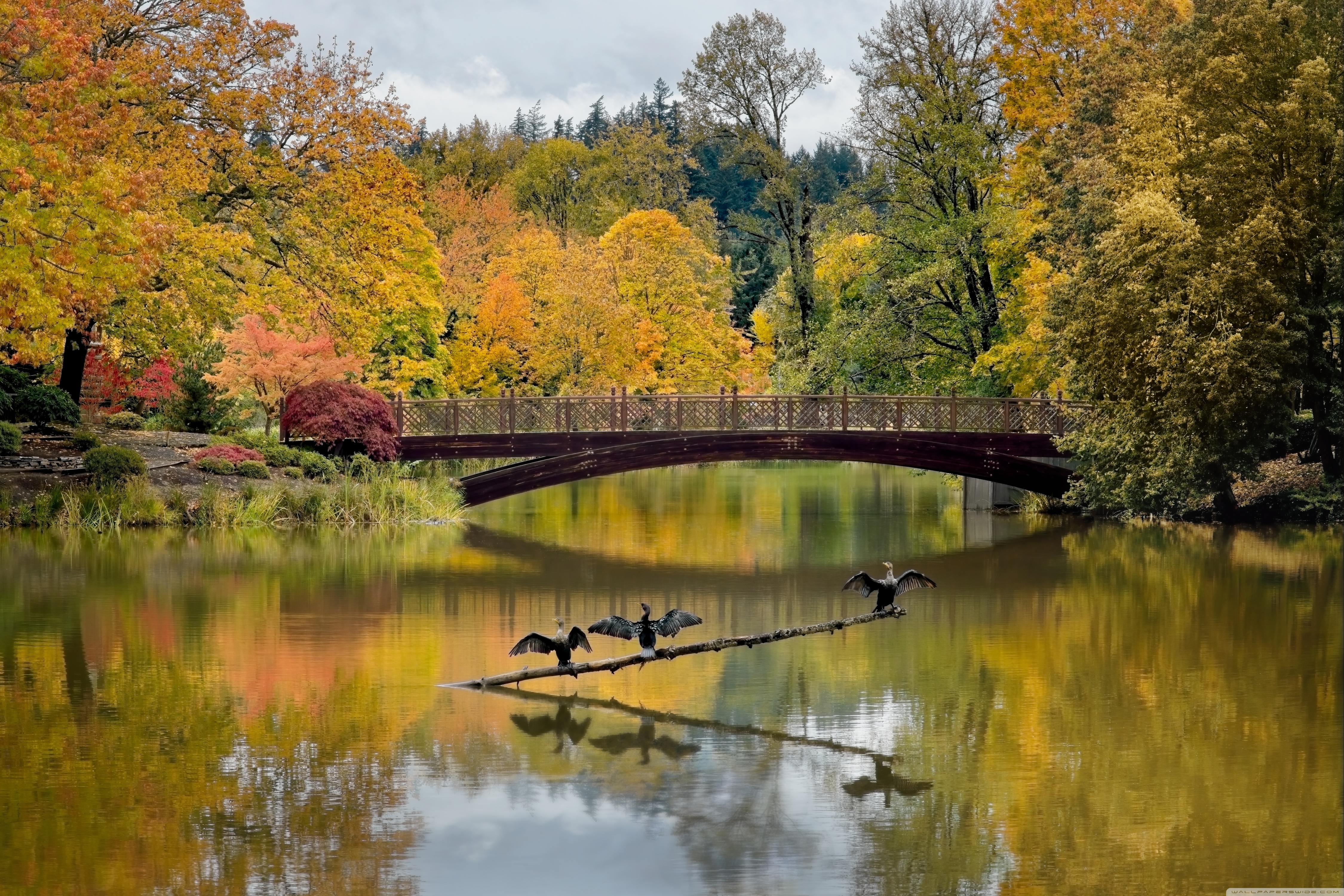 Download Cormorants with Open Wings 4K UHD Wallpaper