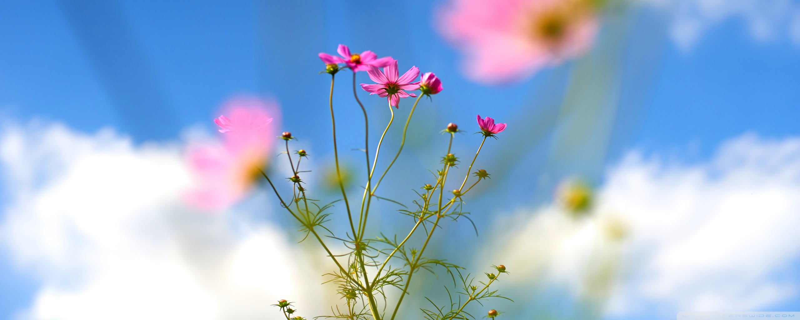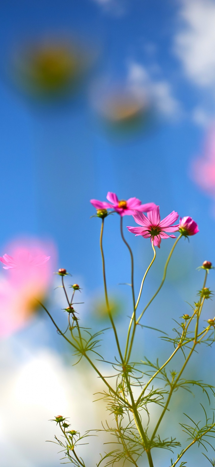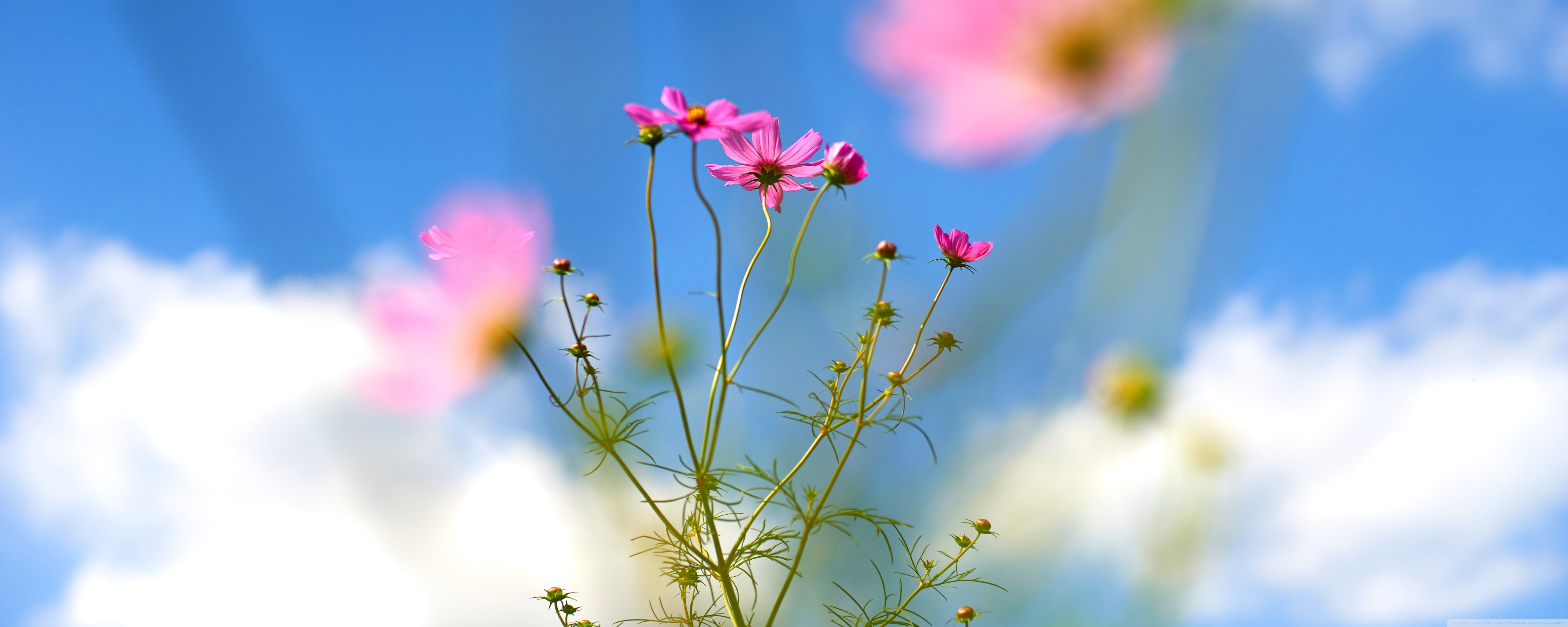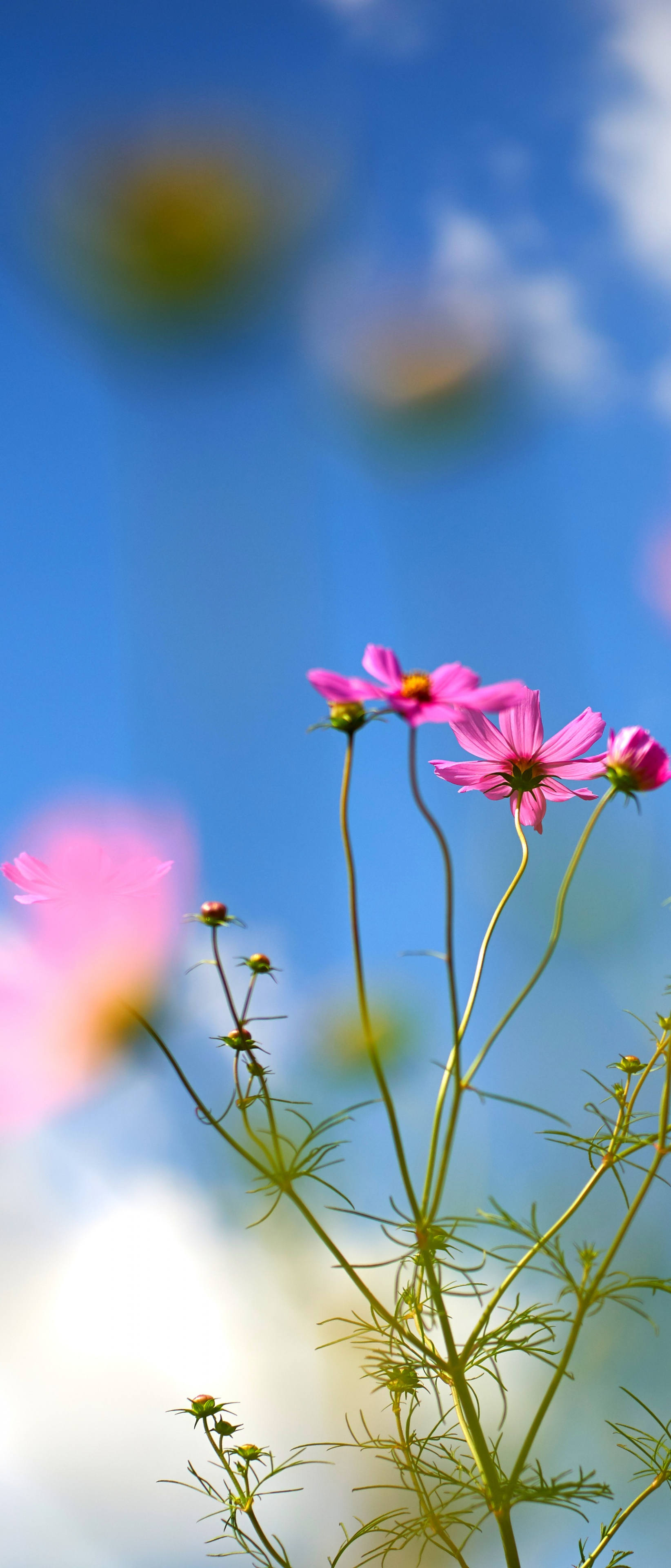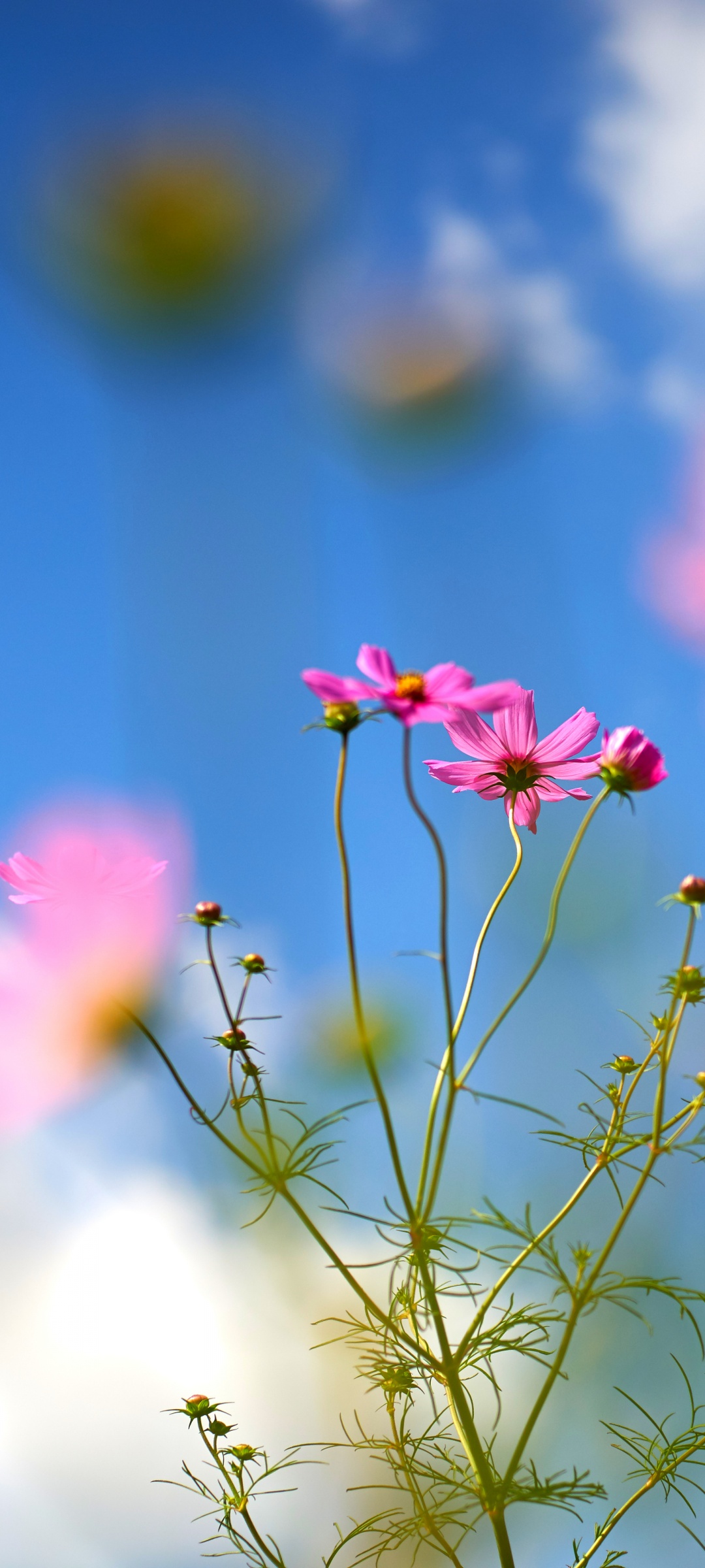 Download Cosmos Flowers in a Field under Blue Sky 4K UHD Wallpaper