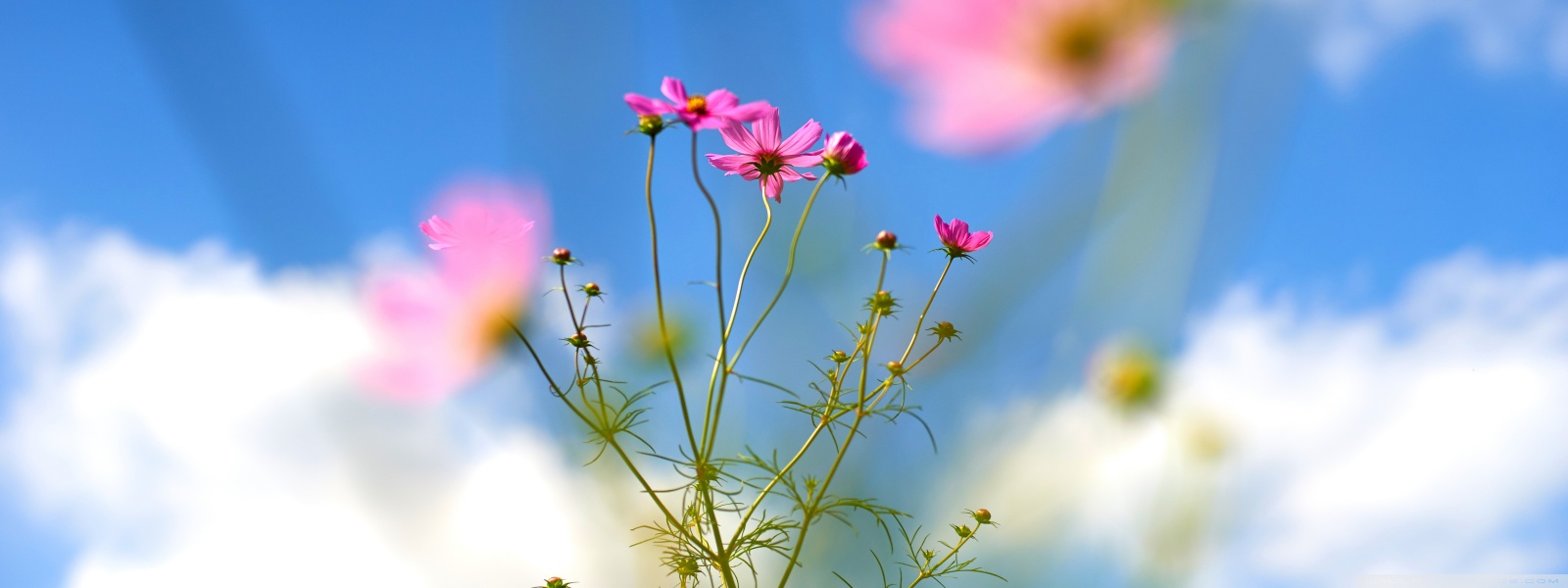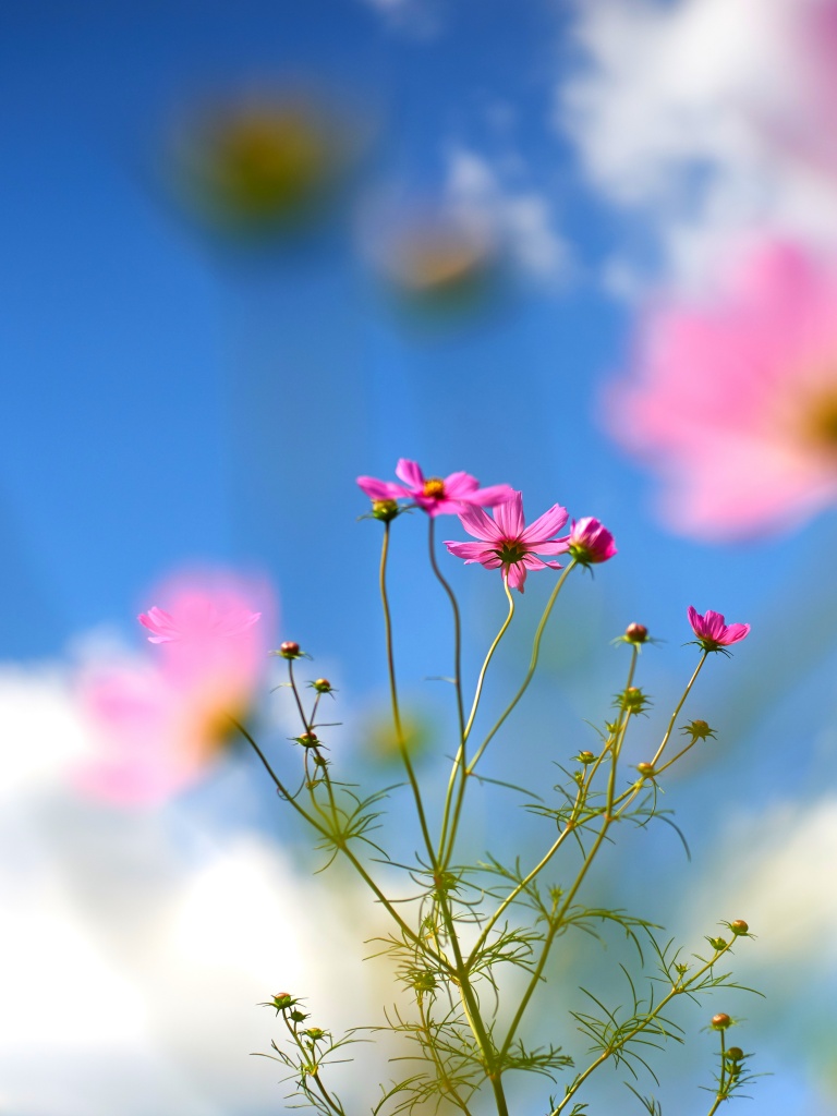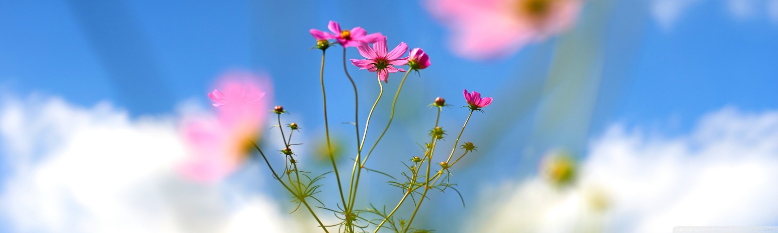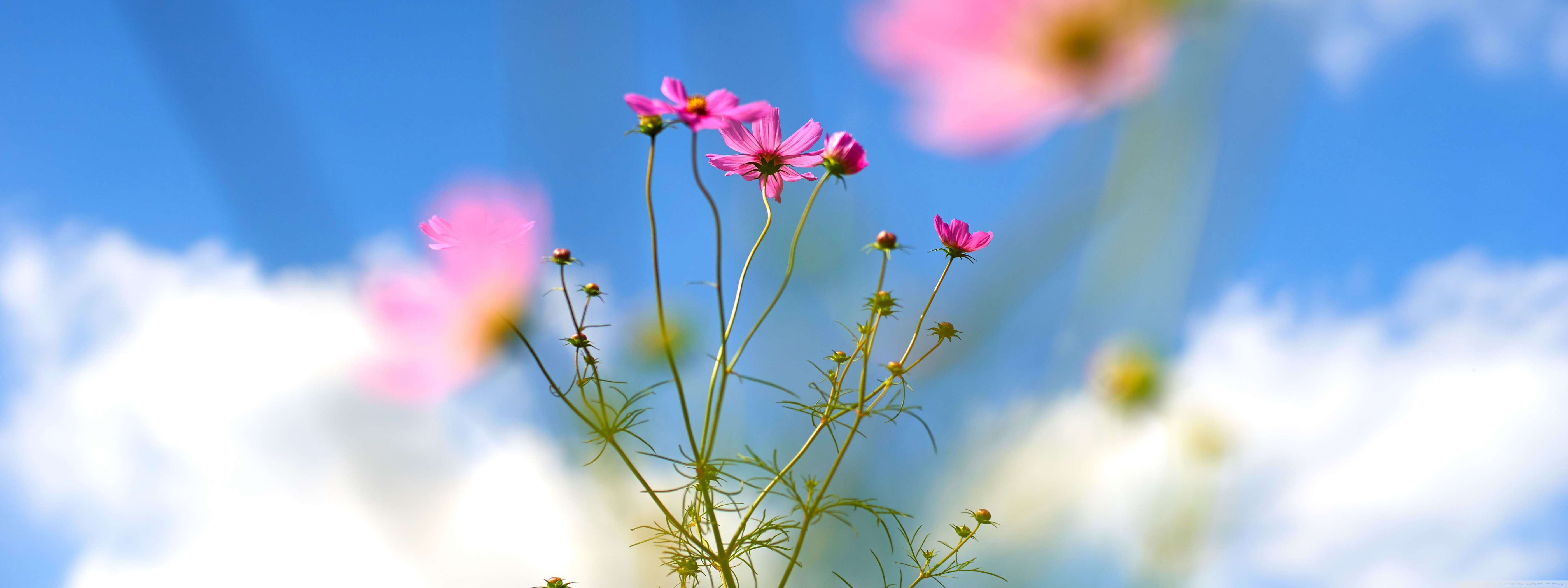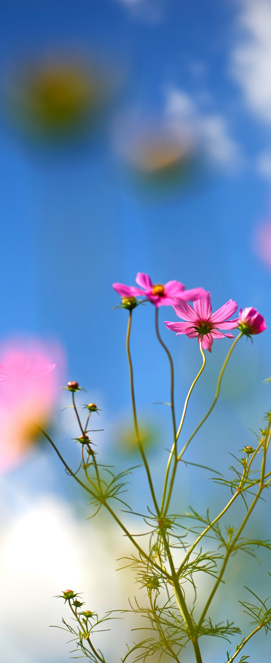 Download Cosmos Flowers in a Field under Blue Sky 4K UHD Wallpaper