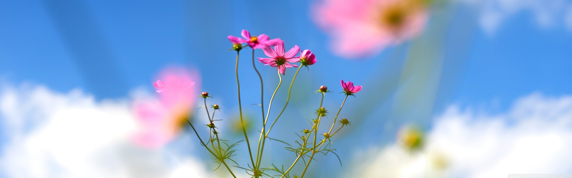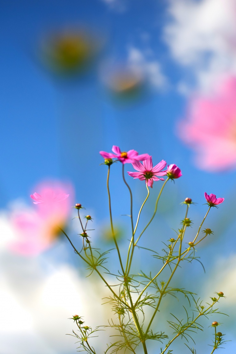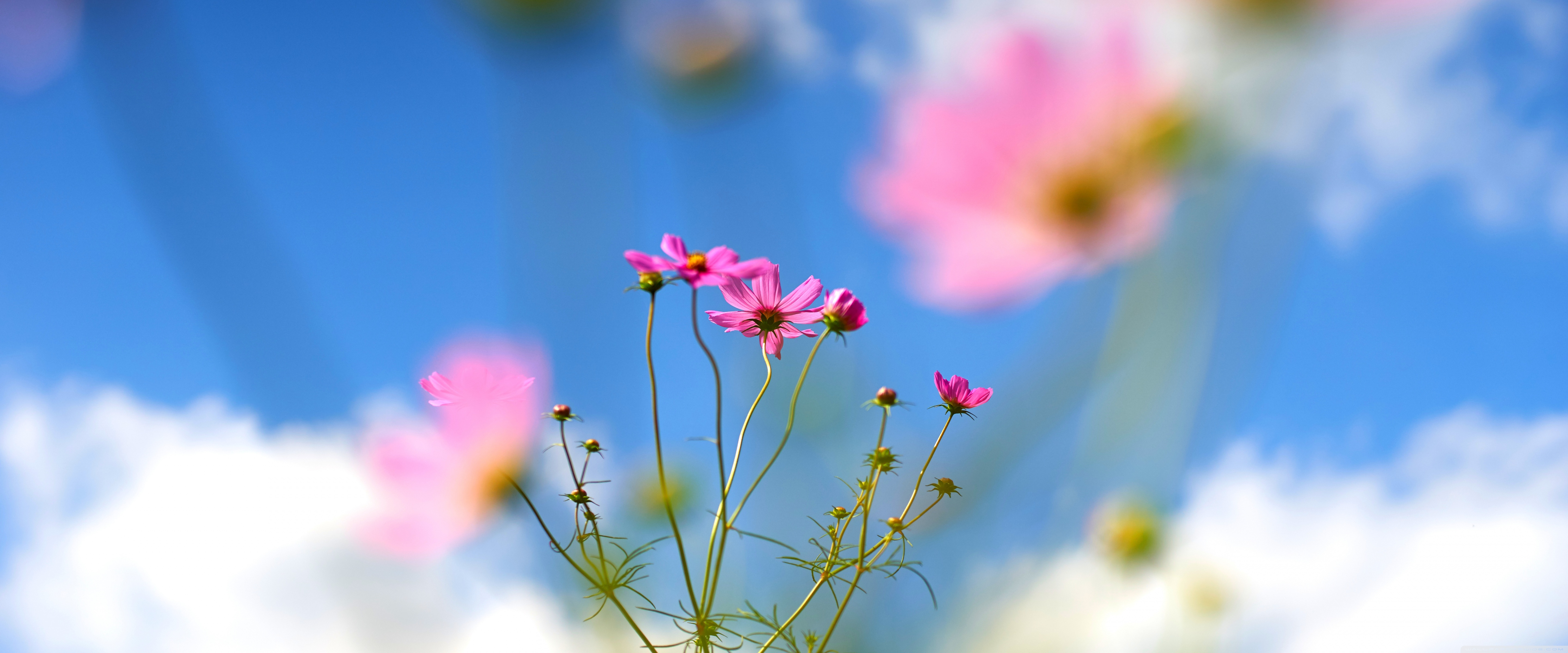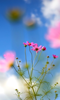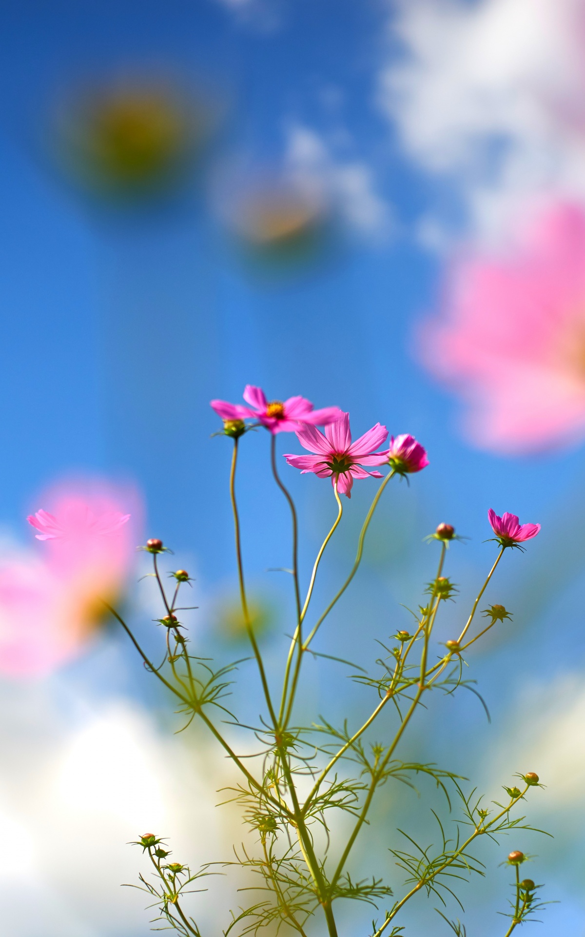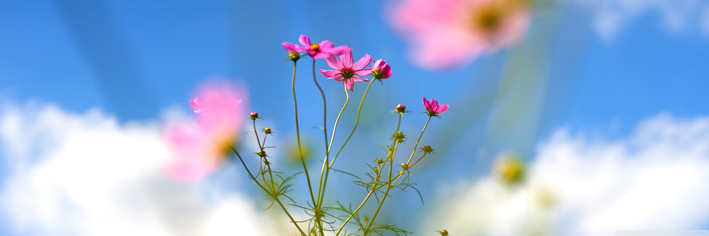 Download Cosmos Flowers in a Field under Blue Sky 4K UHD Wallpaper
