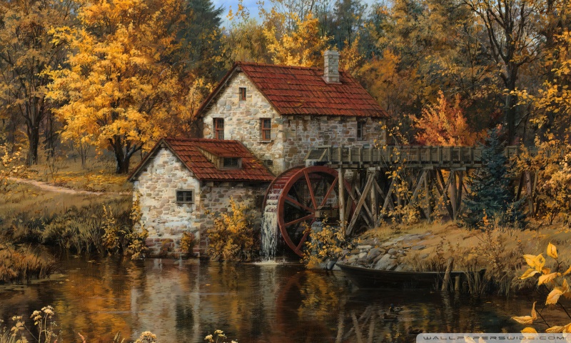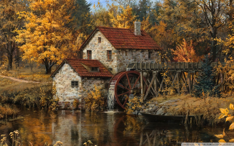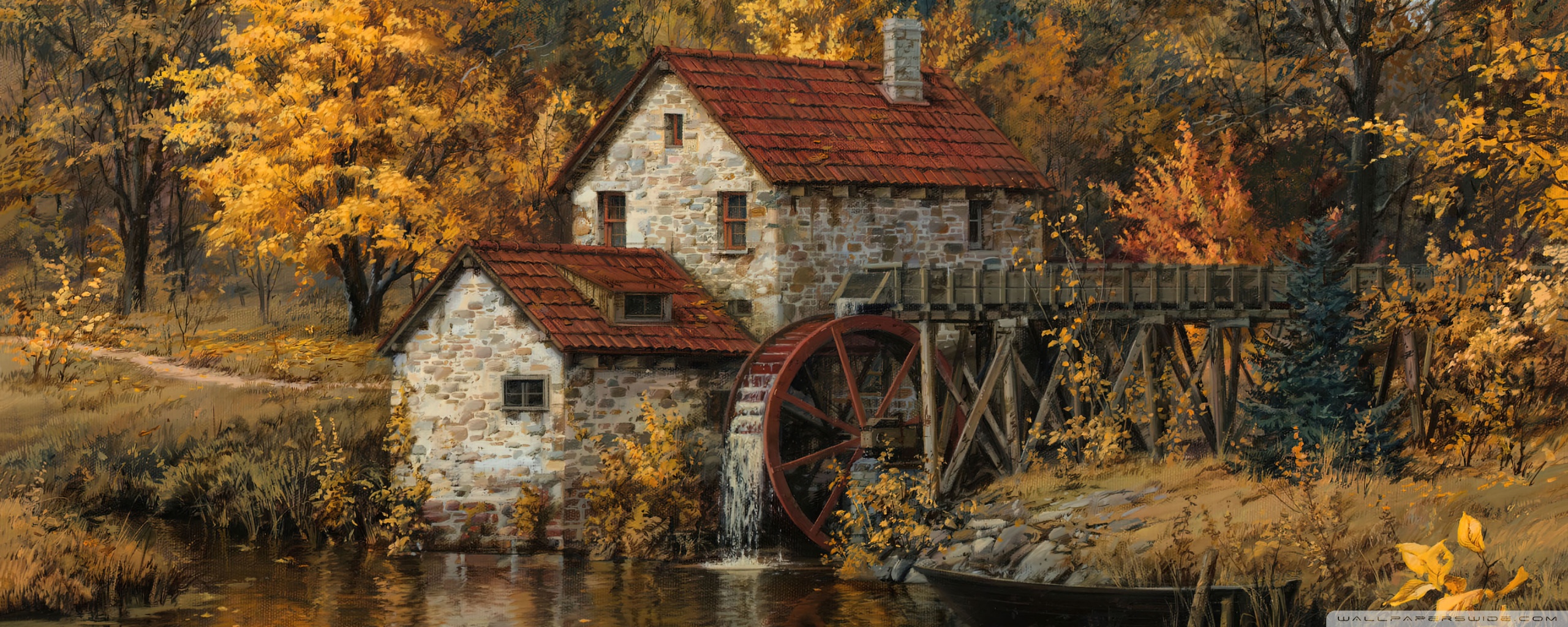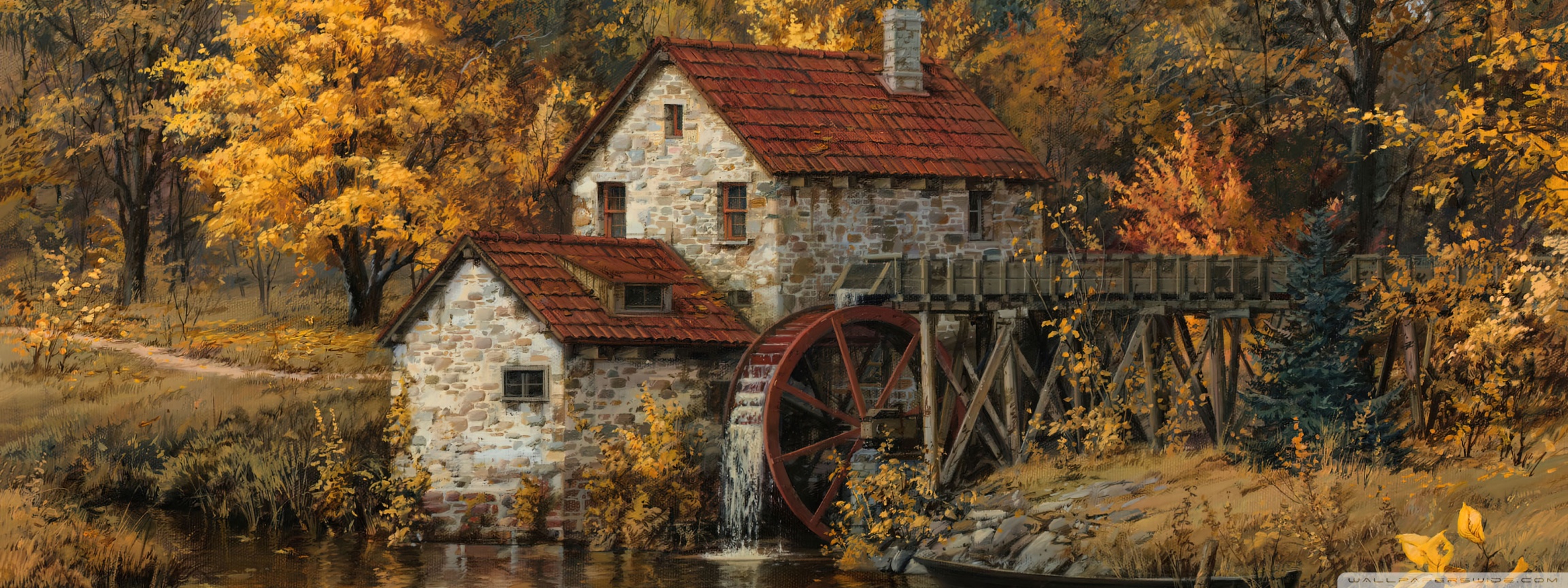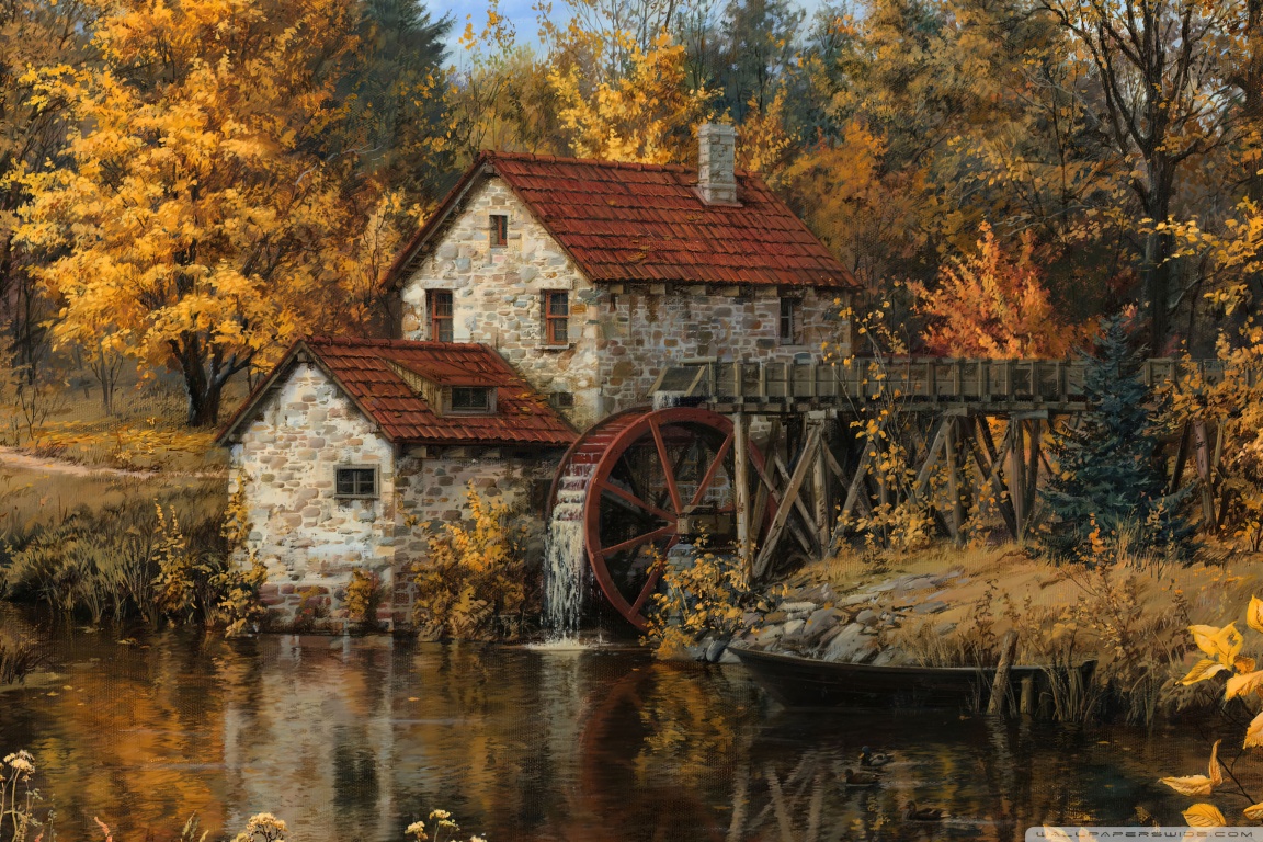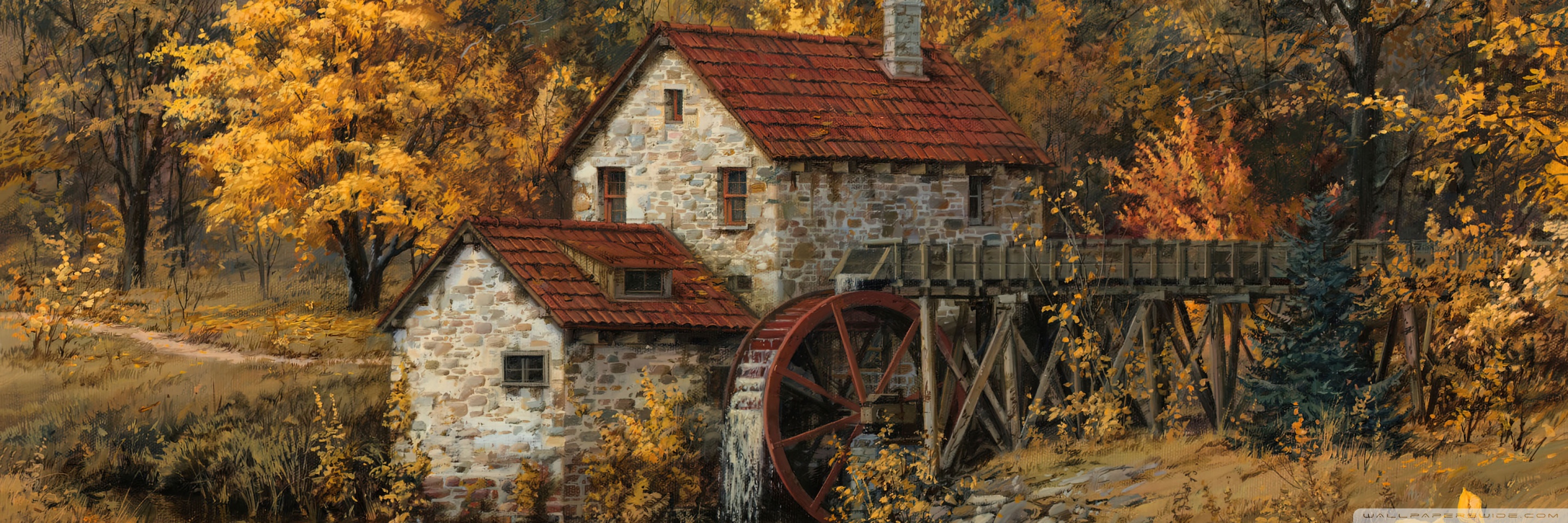 Download Countryside Watermill, Fall Scenery 4K UHD Wallpaper