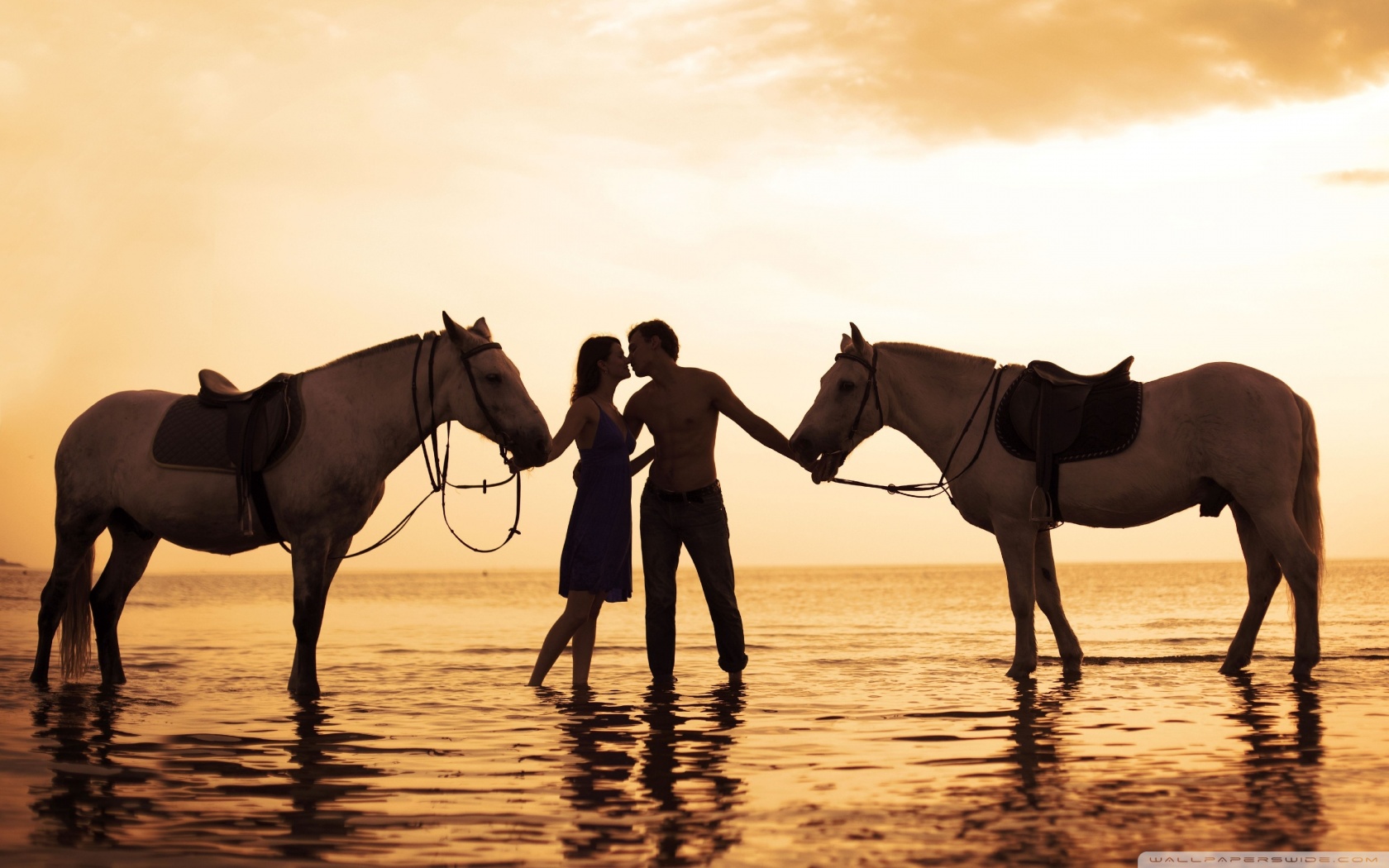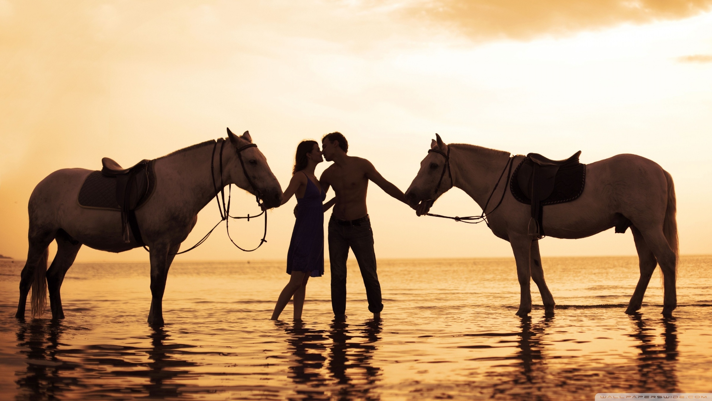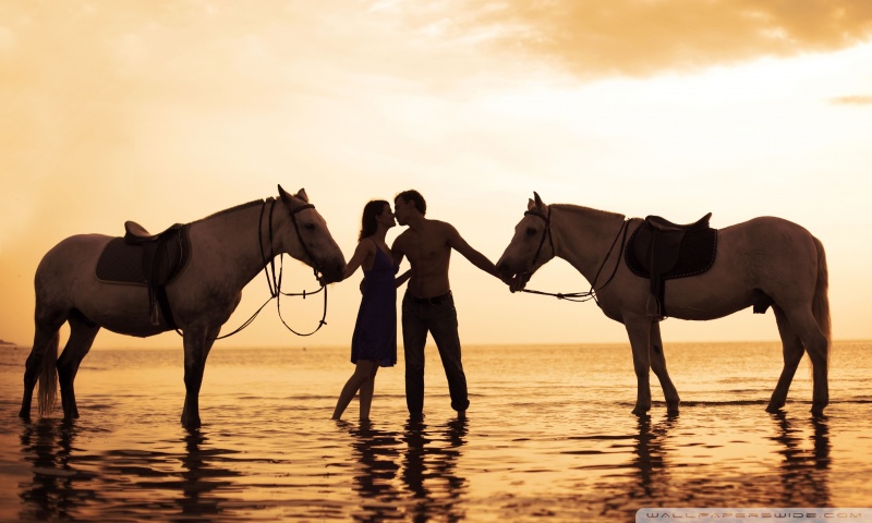 Download Couple With Horses On Beach 4K UHD Wallpaper