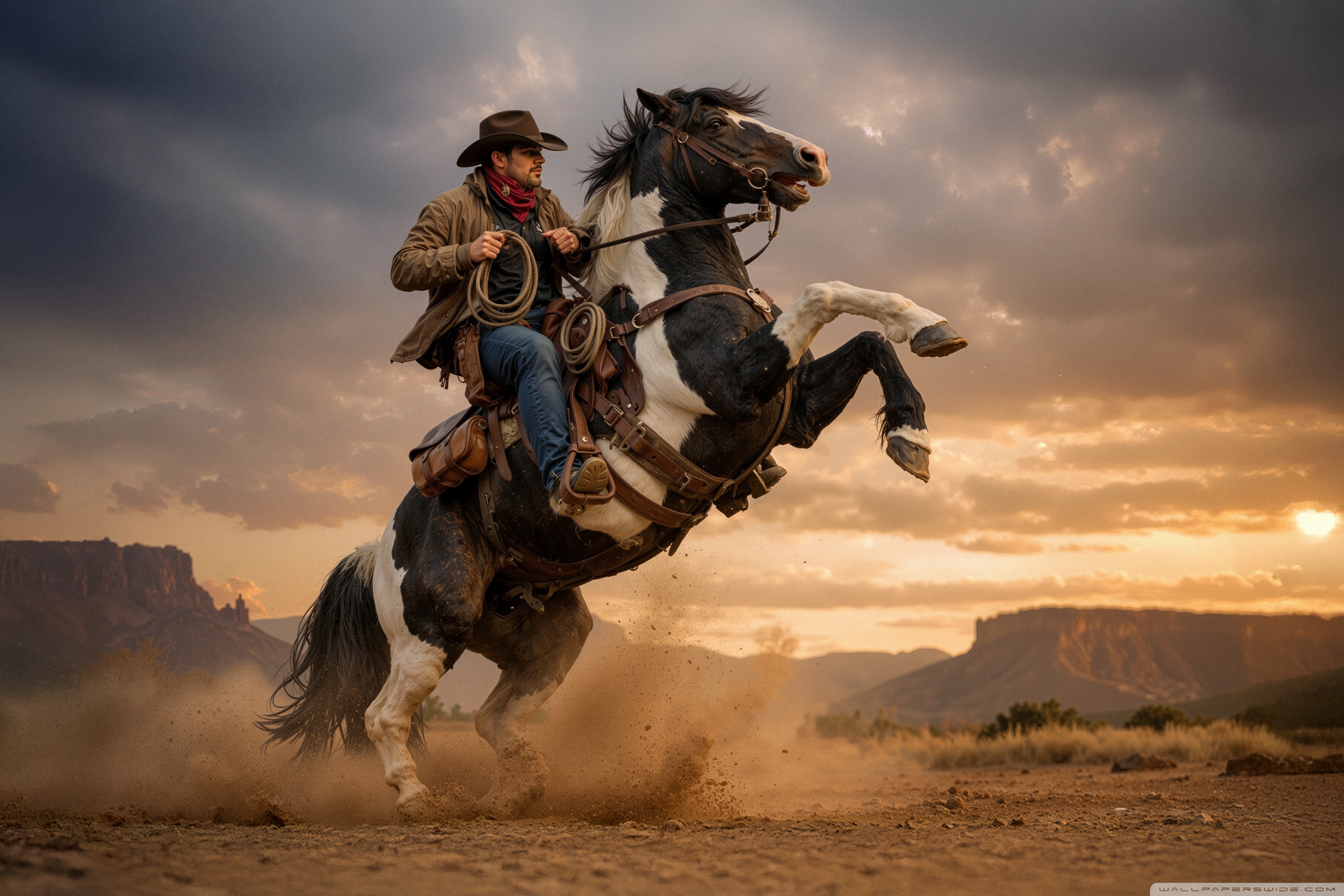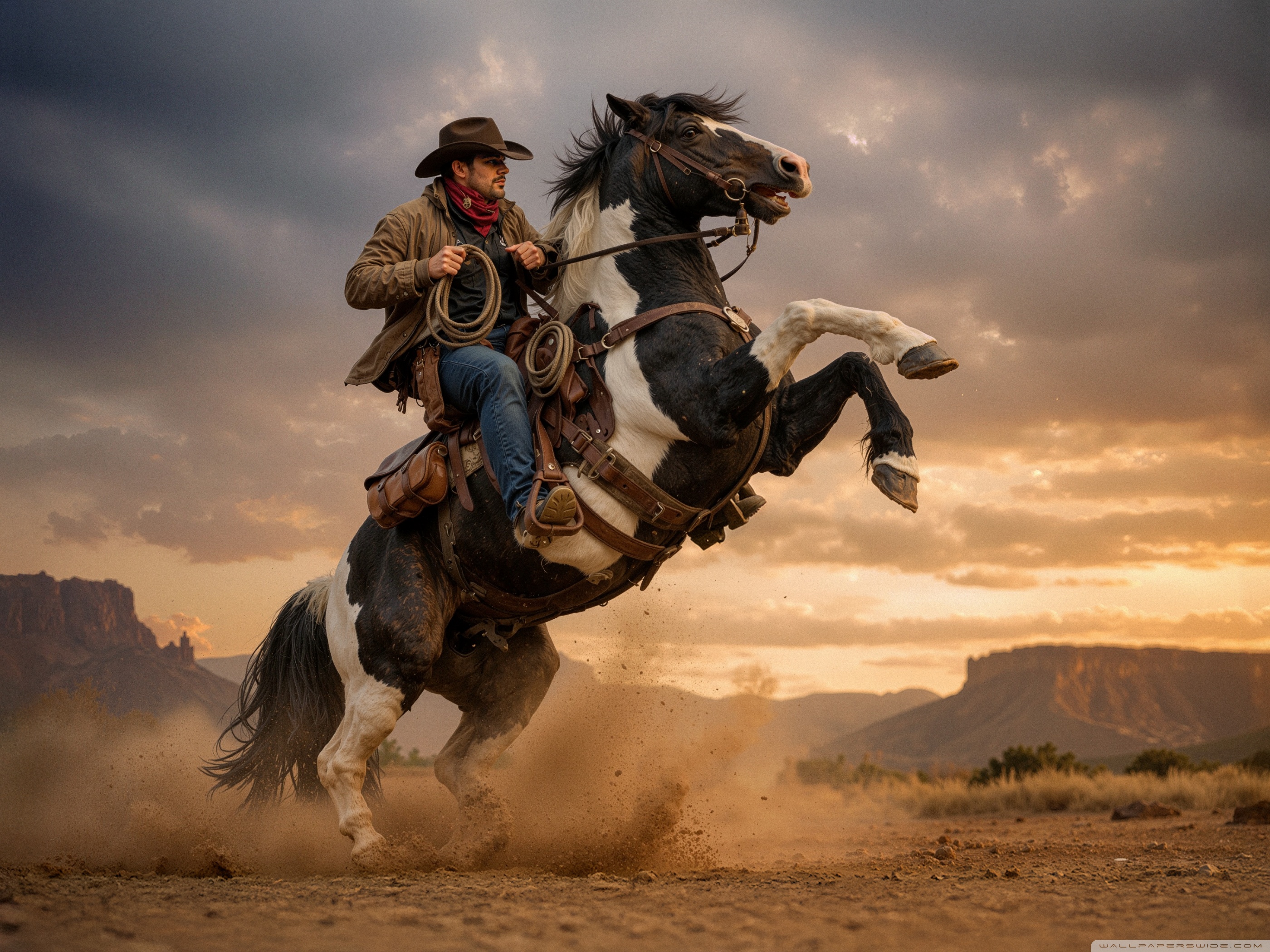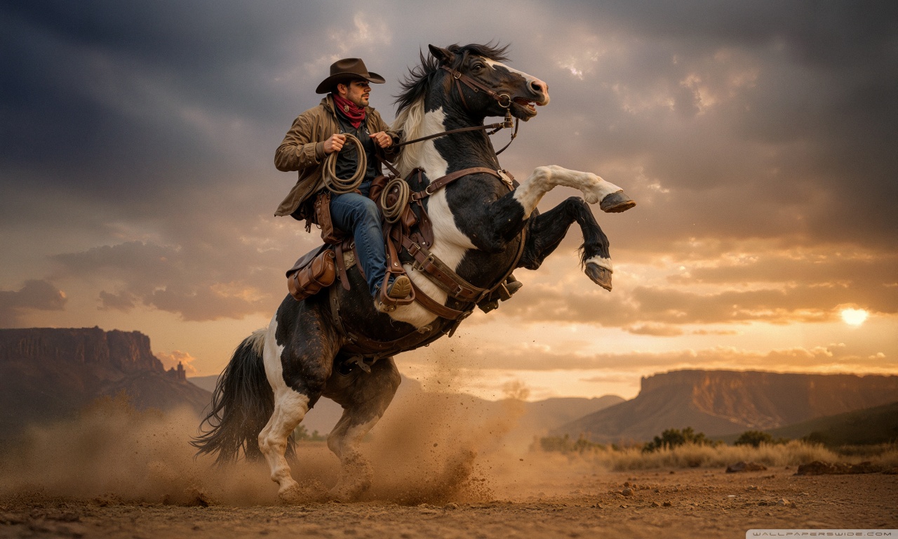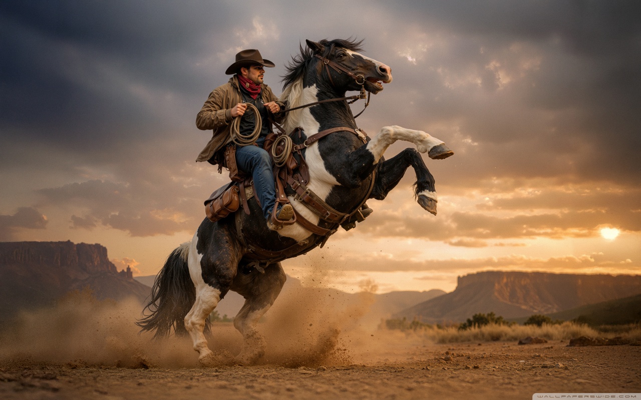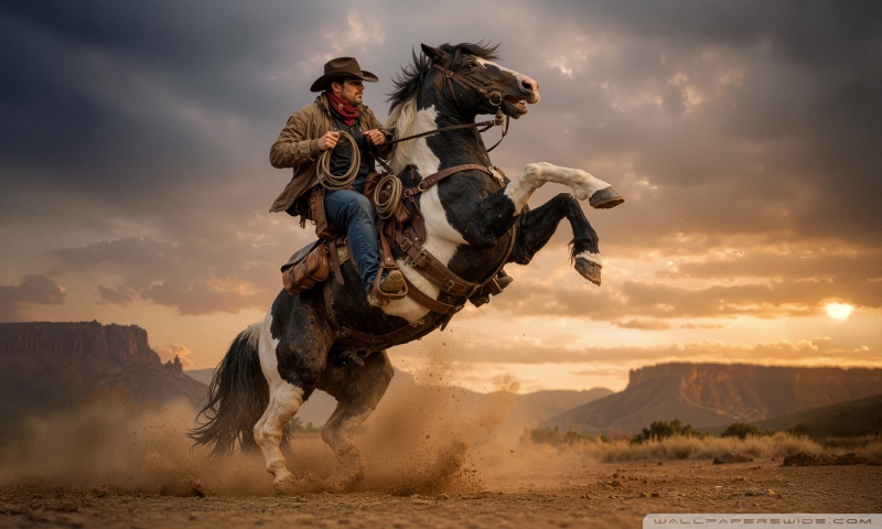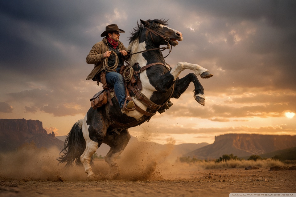 Download Cowboy on a Rearing Horse 4K UHD Wallpaper
