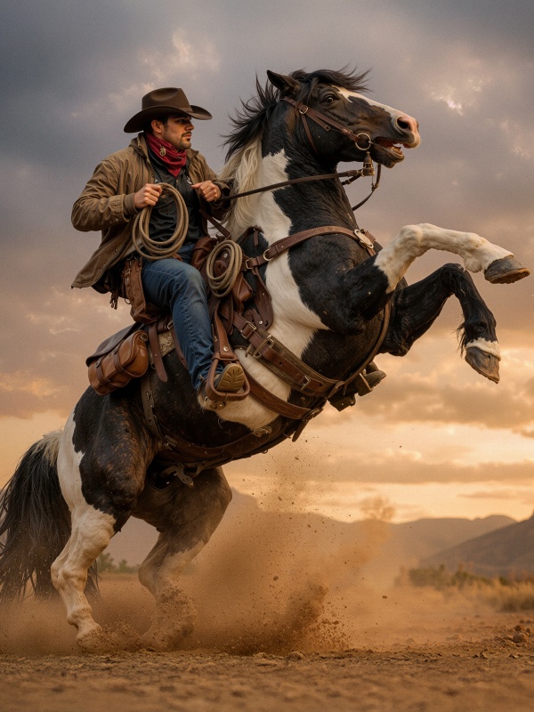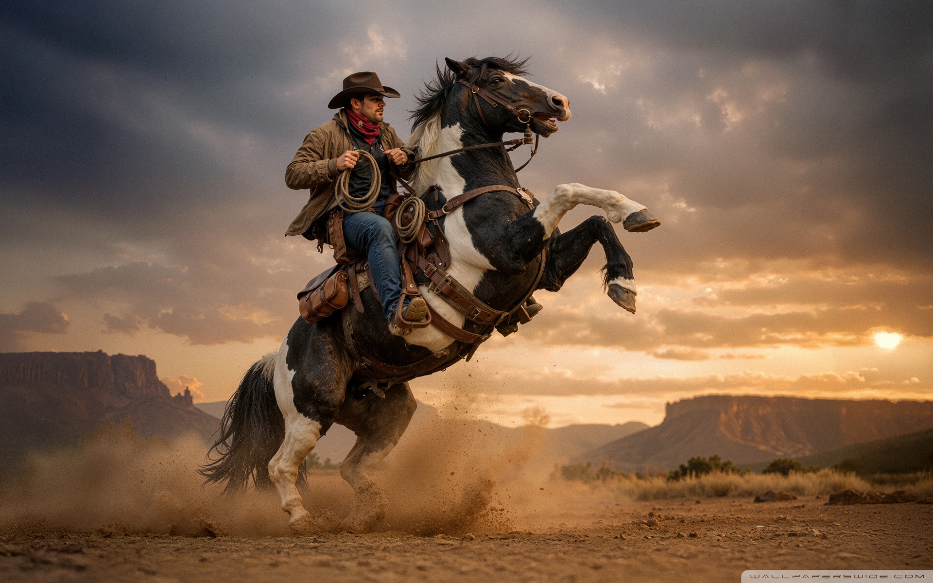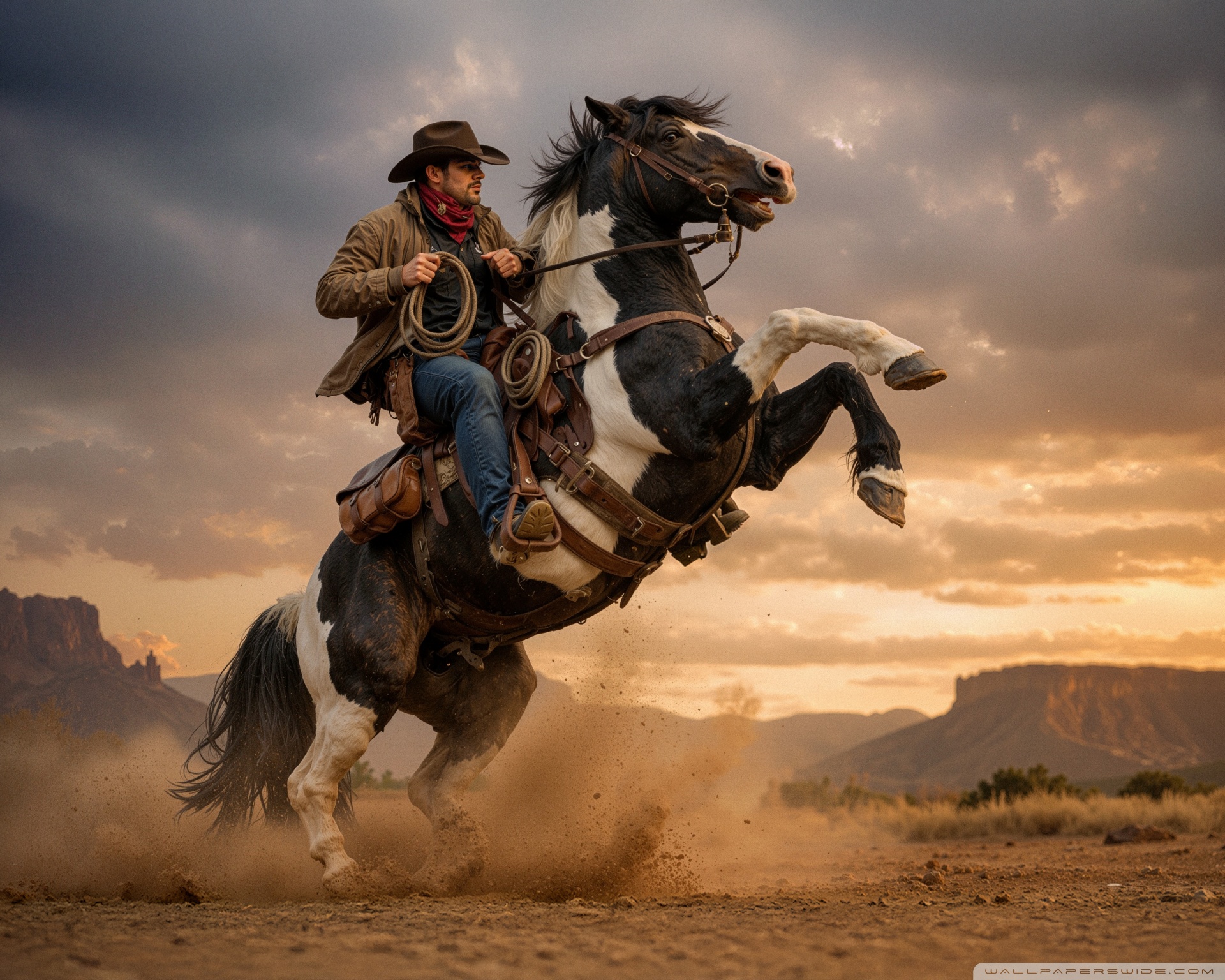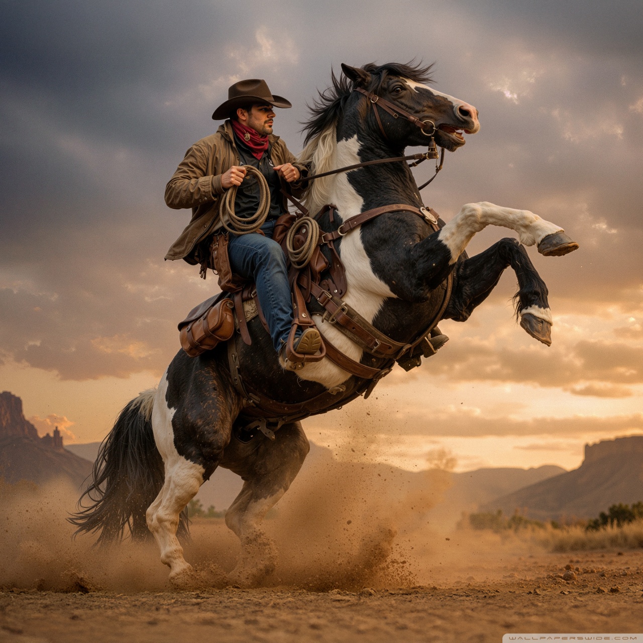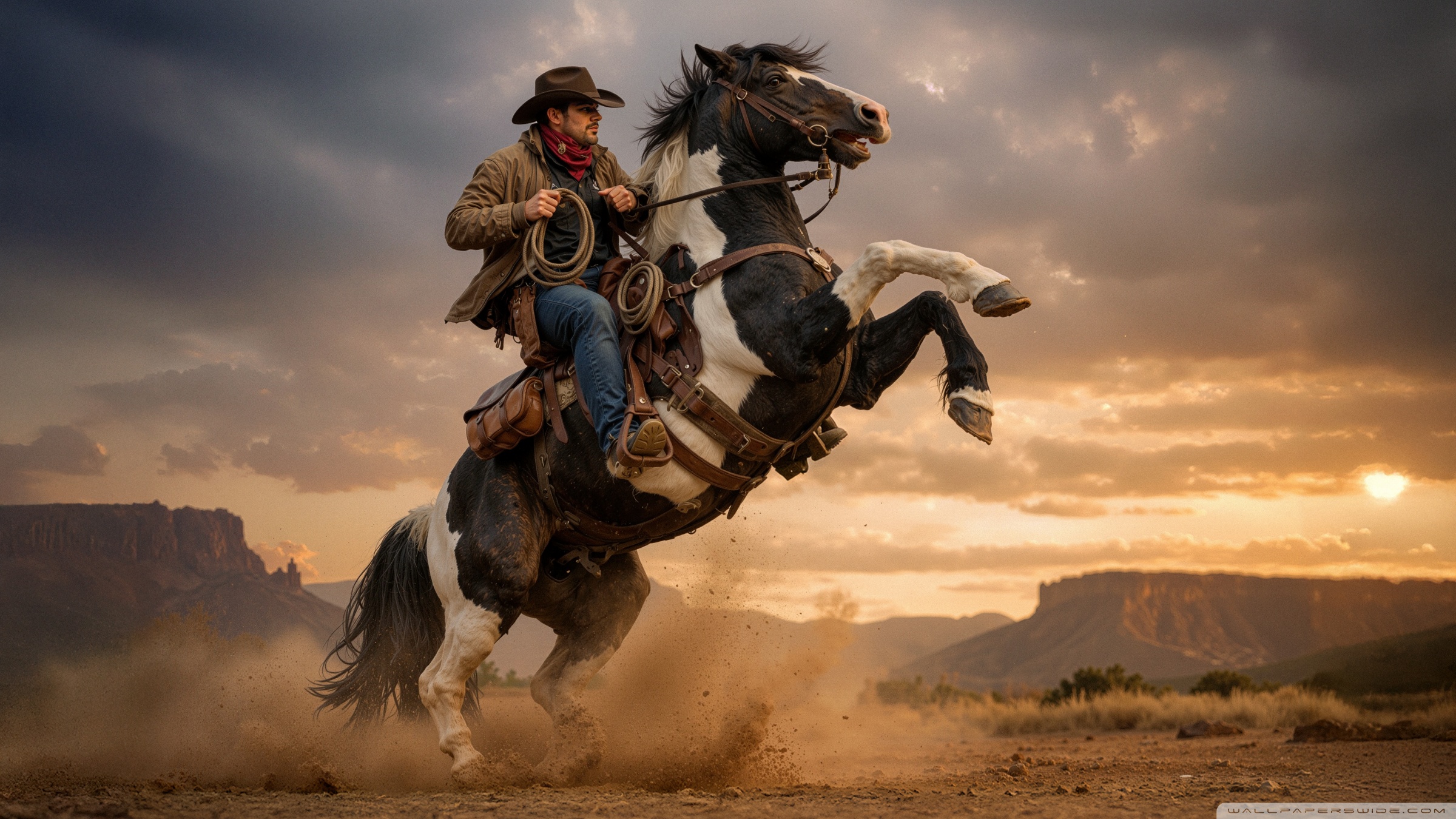 Download Cowboy on a Rearing Horse 4K UHD Wallpaper