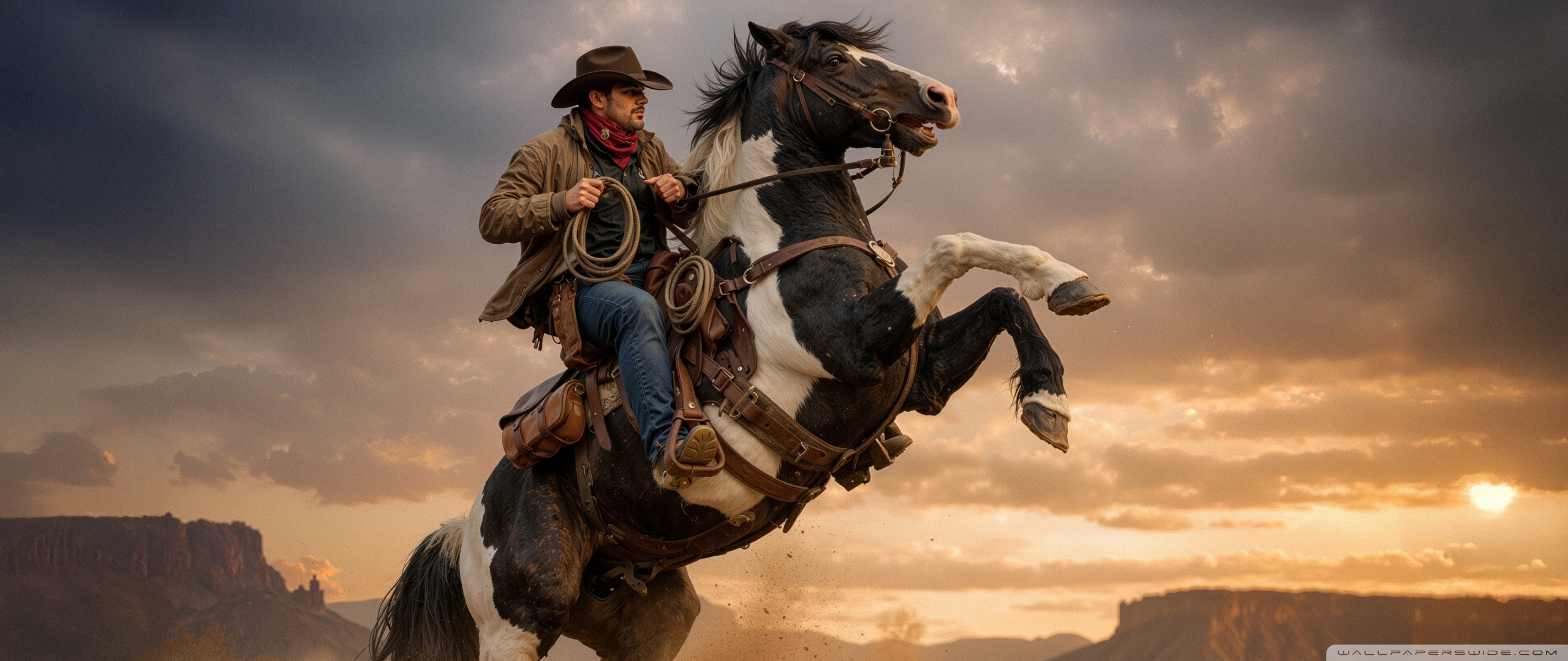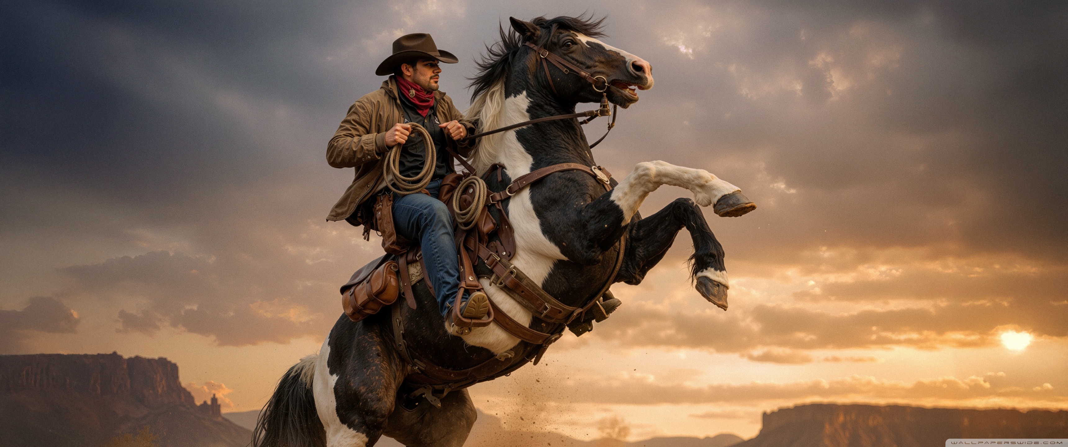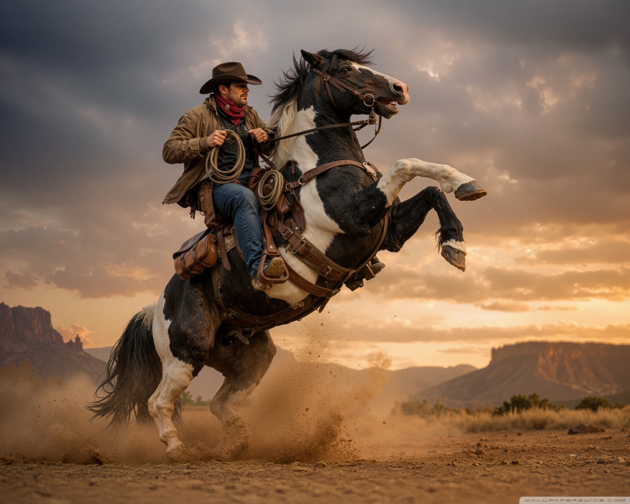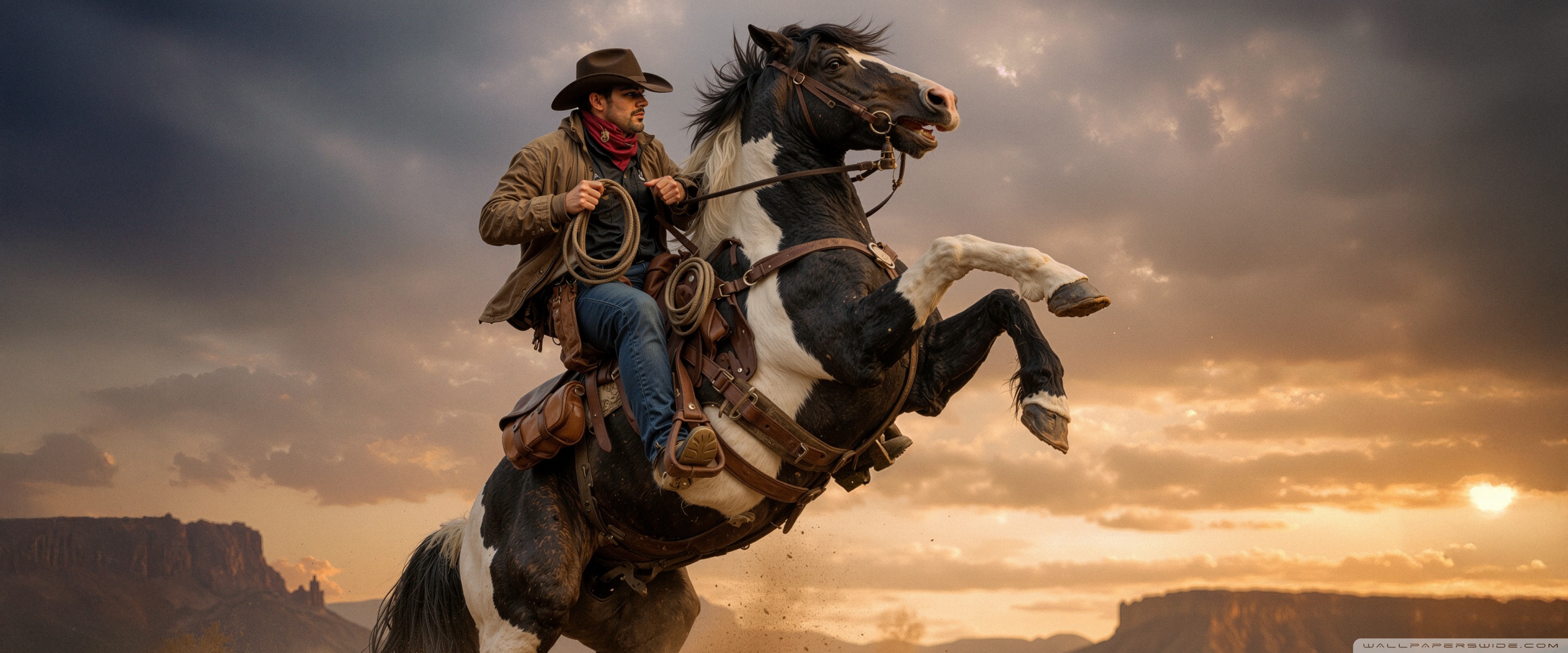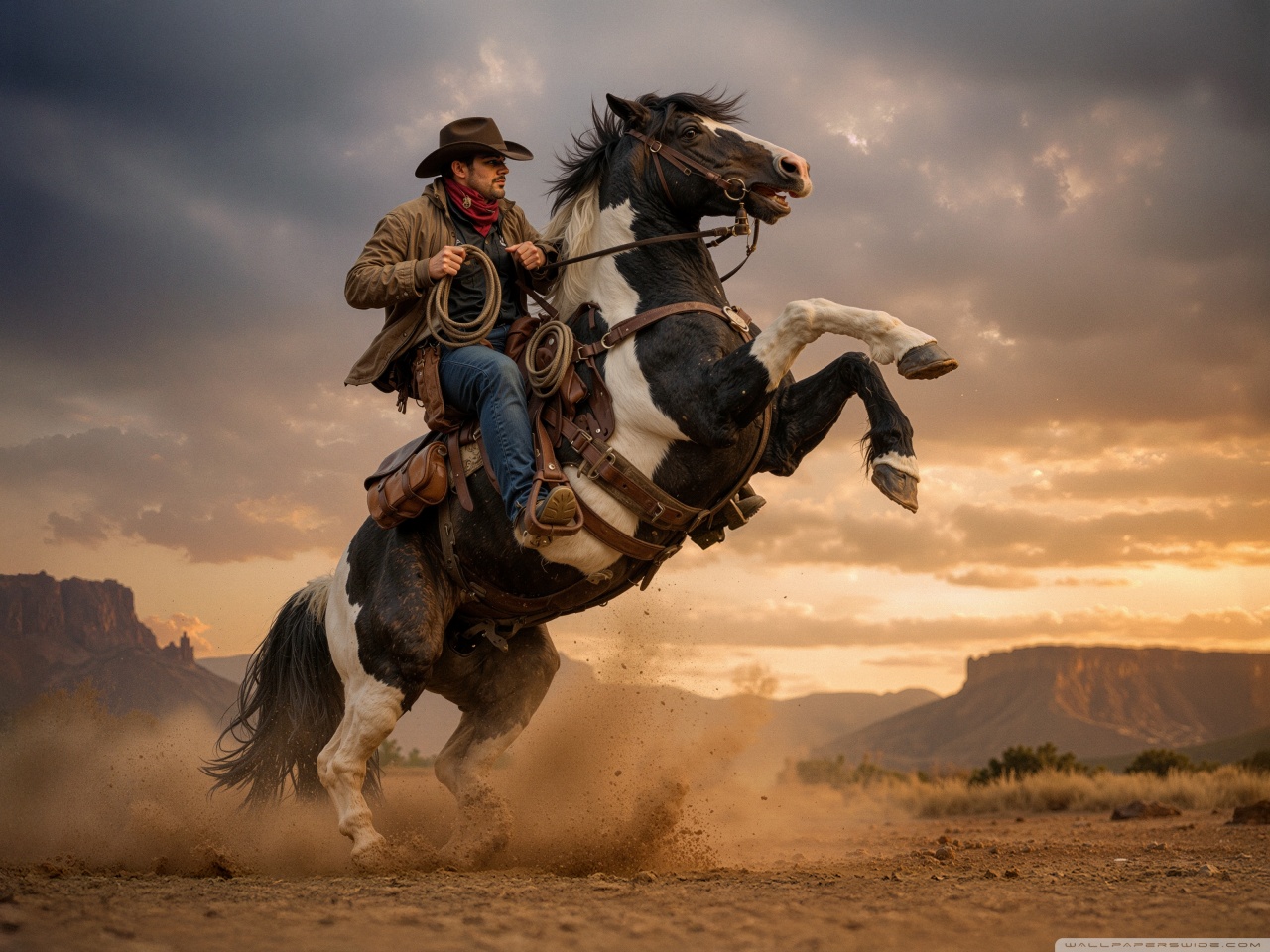 Download Cowboy on a Rearing Horse 4K UHD Wallpaper