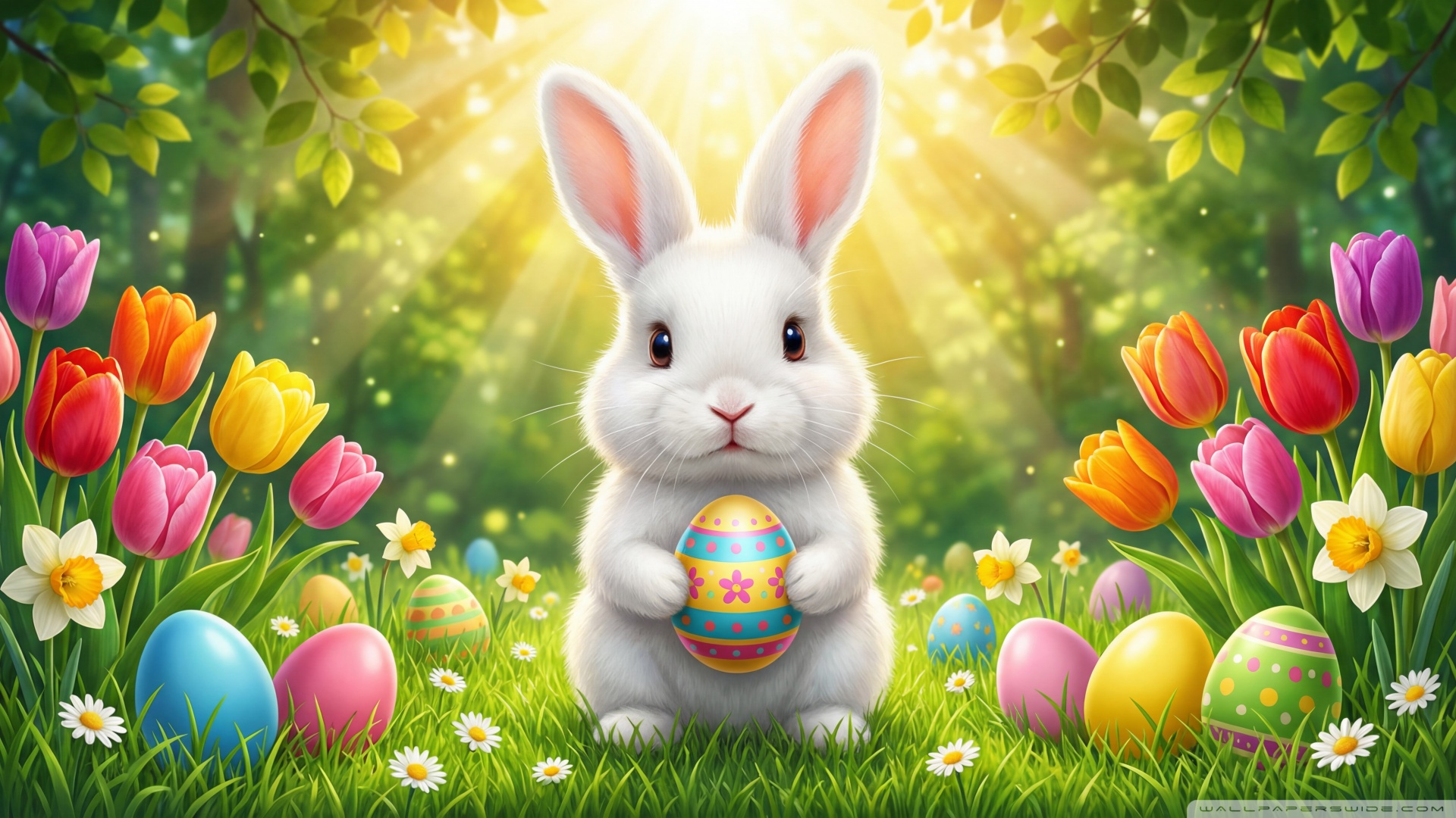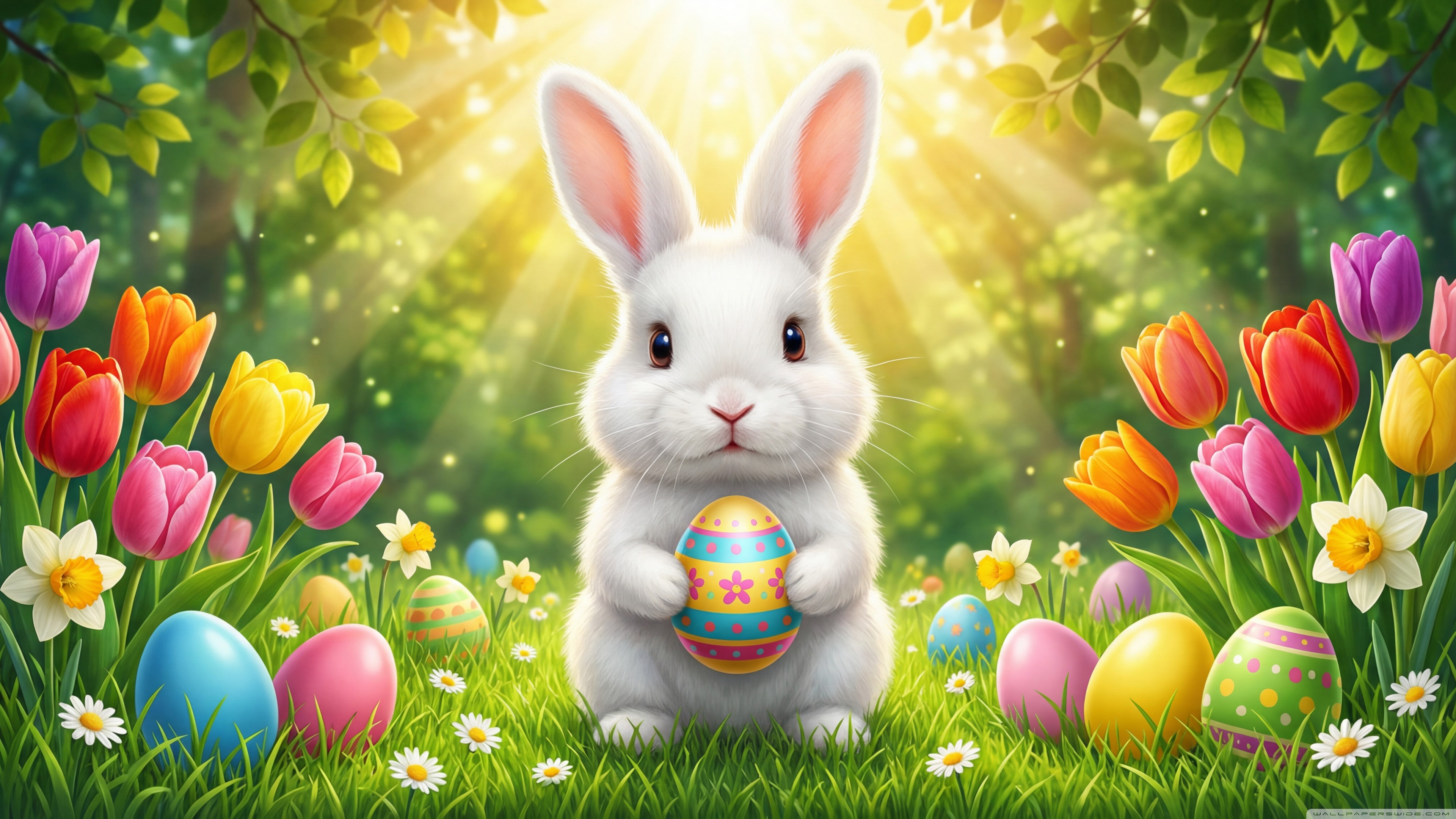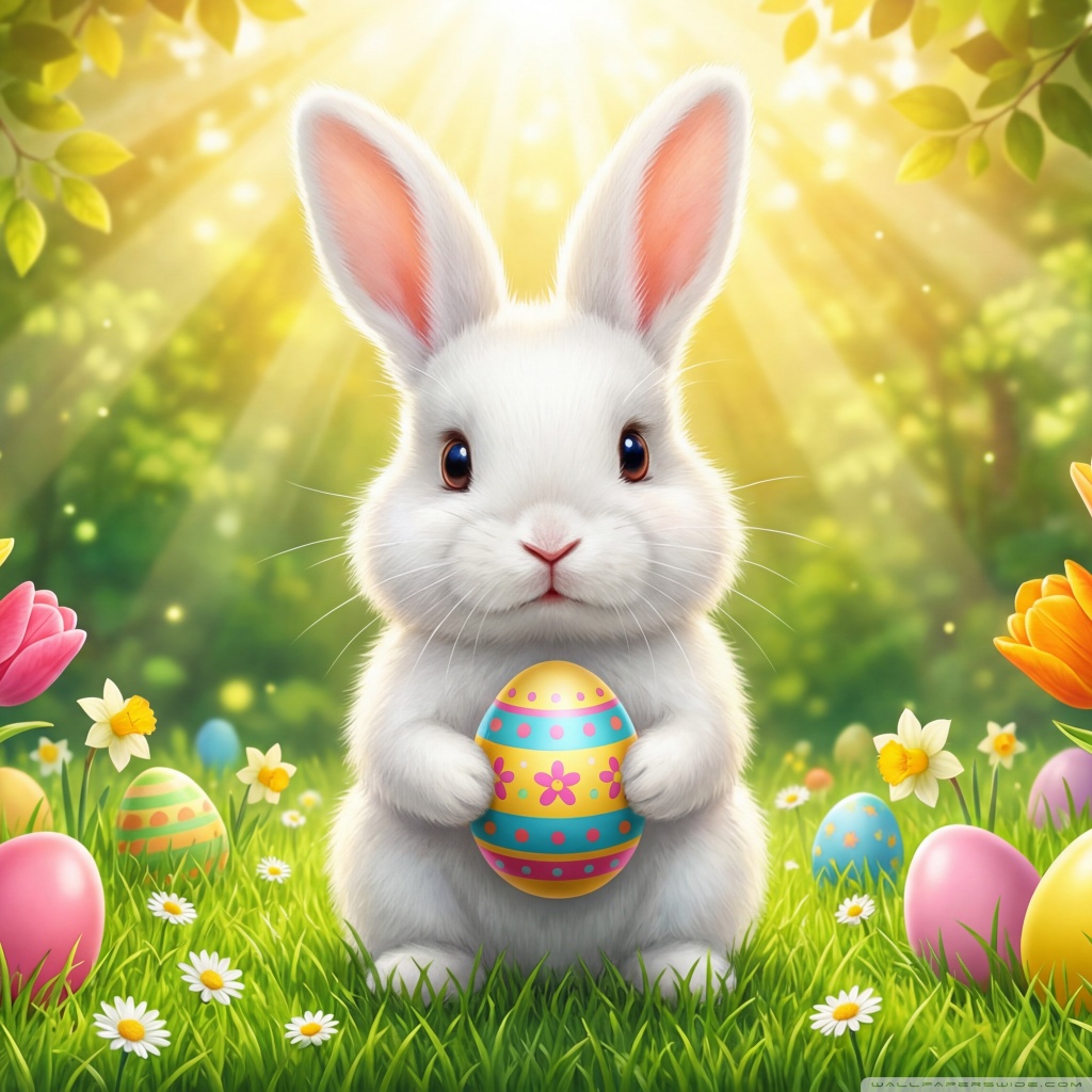 Download Cute Easter Bunny Illustration 4K UHD Wallpaper