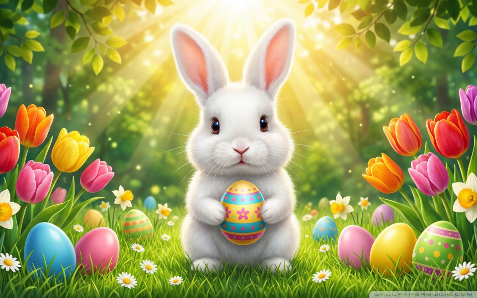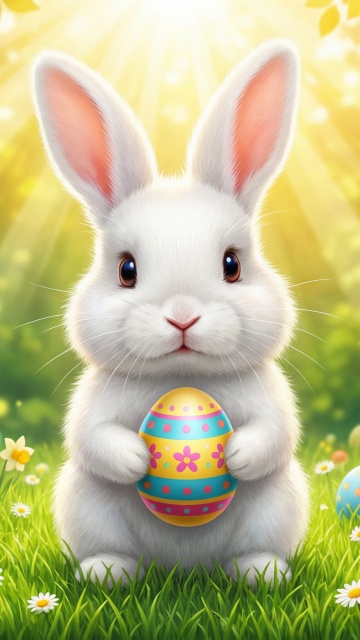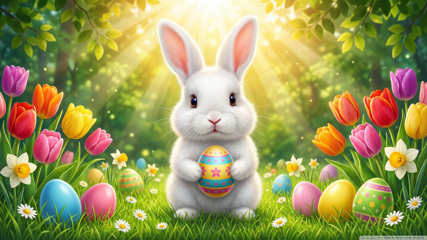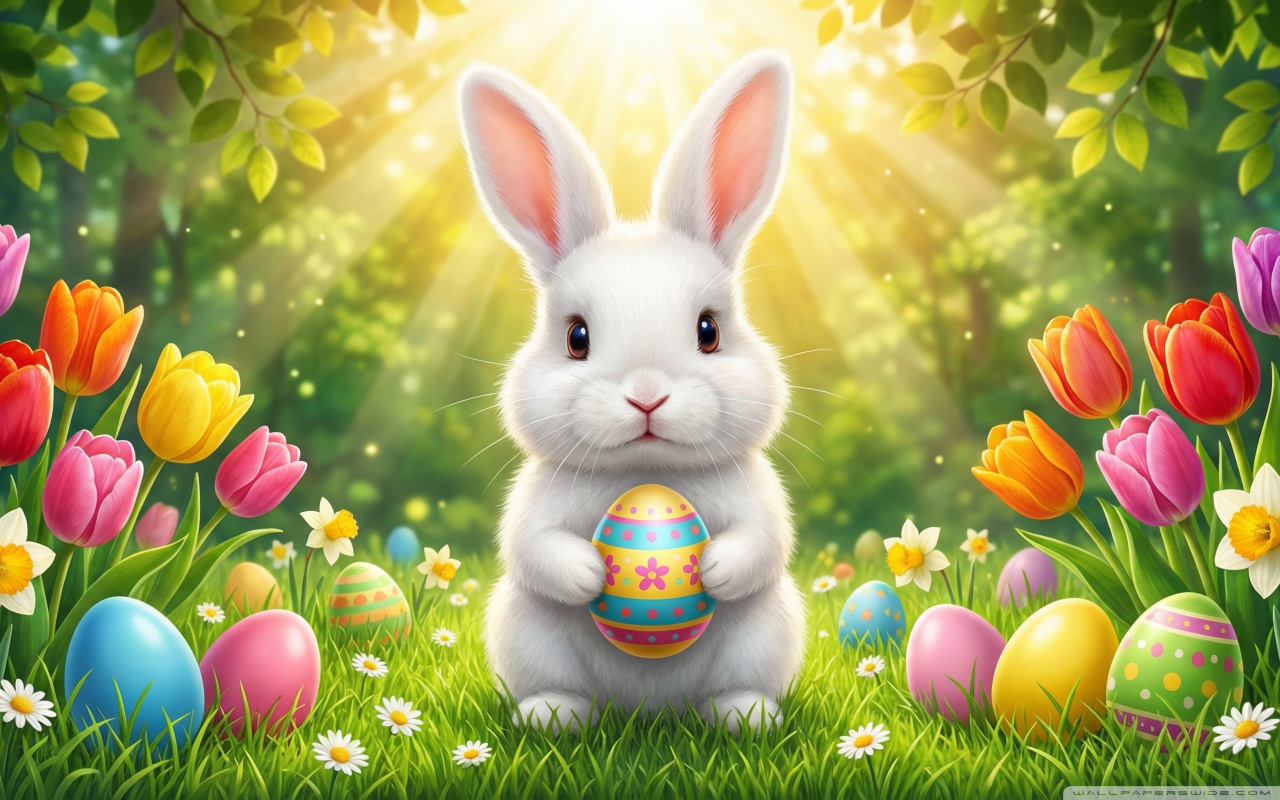Download Cute Easter Bunny Illustration 4K UHD Wallpaper