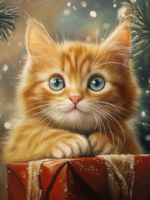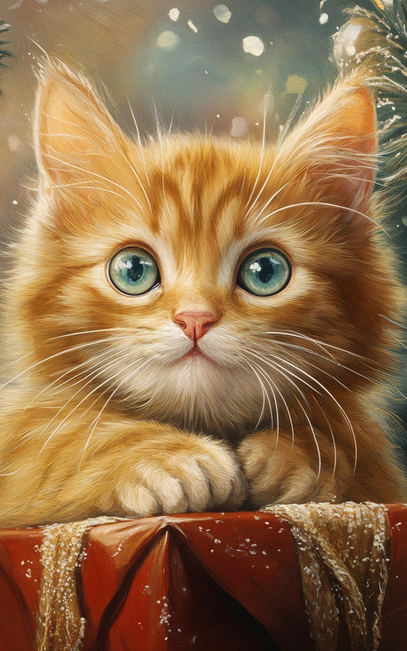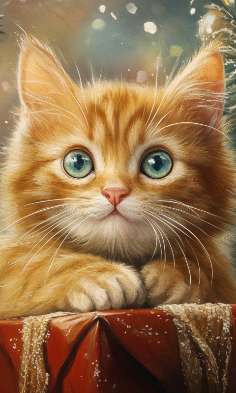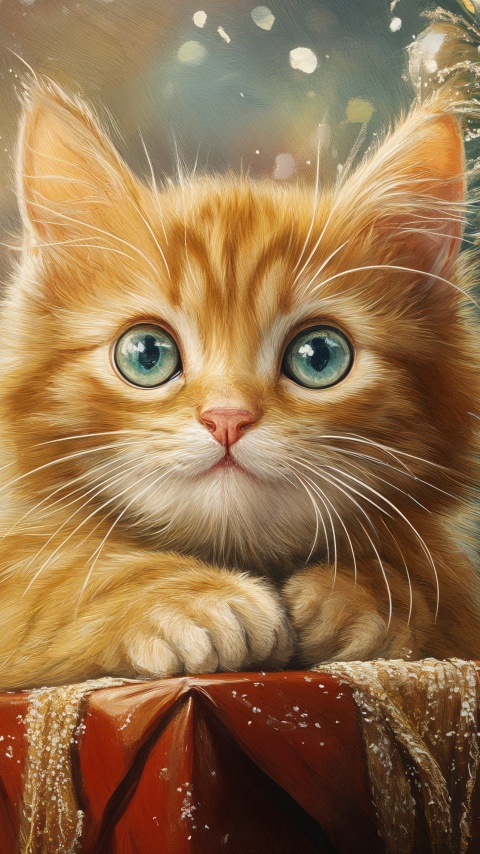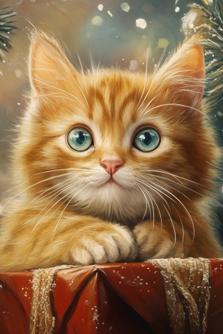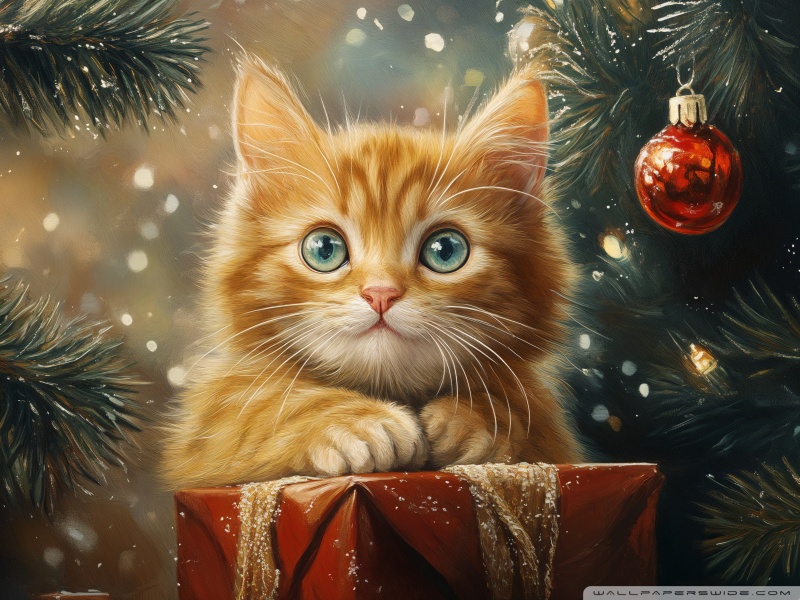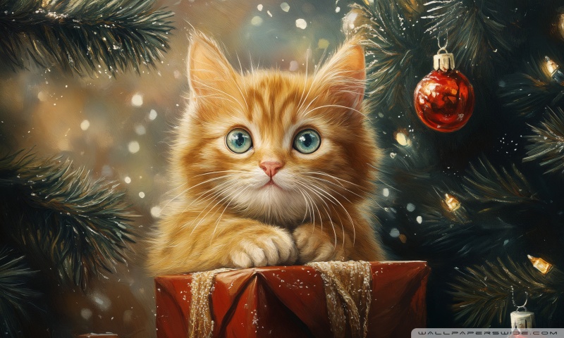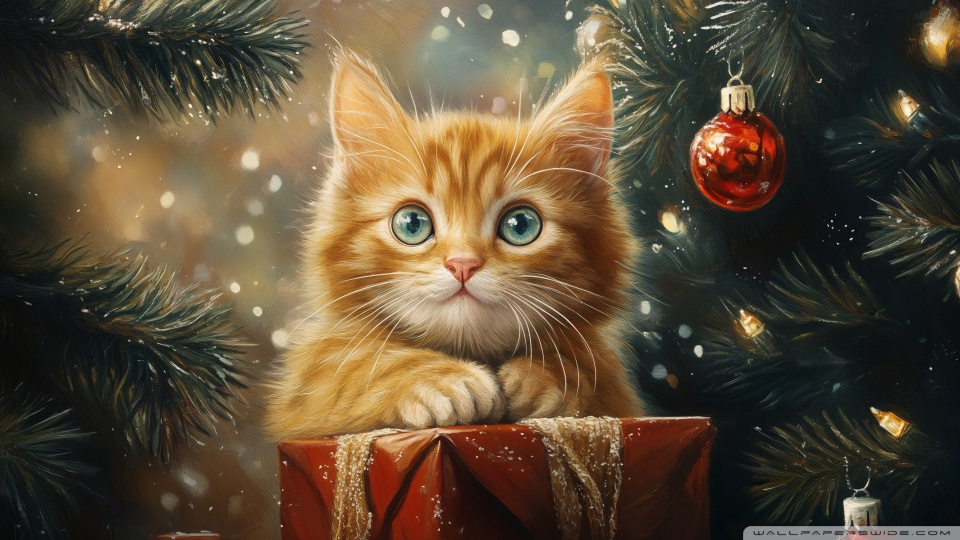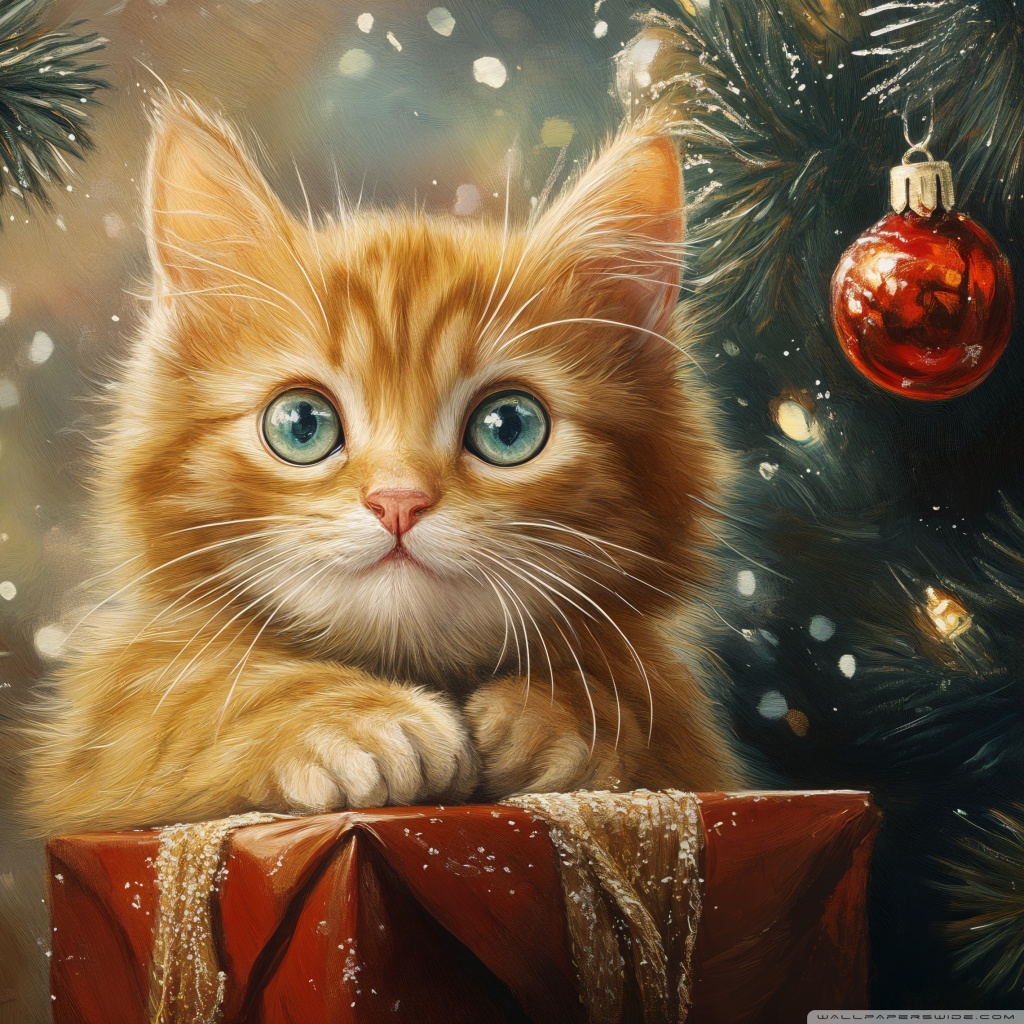 Download Cute Kitten Under Christmas Tree 4K UHD Wallpaper