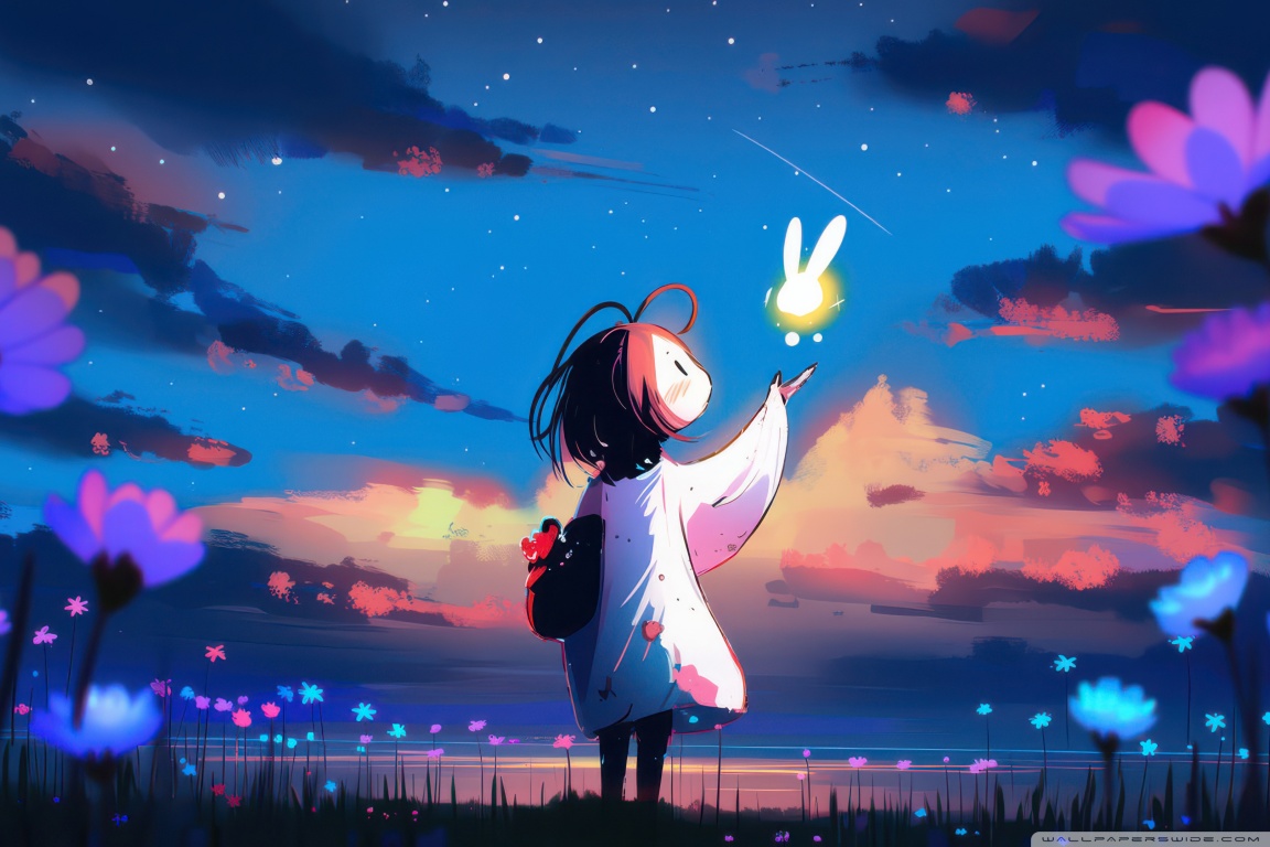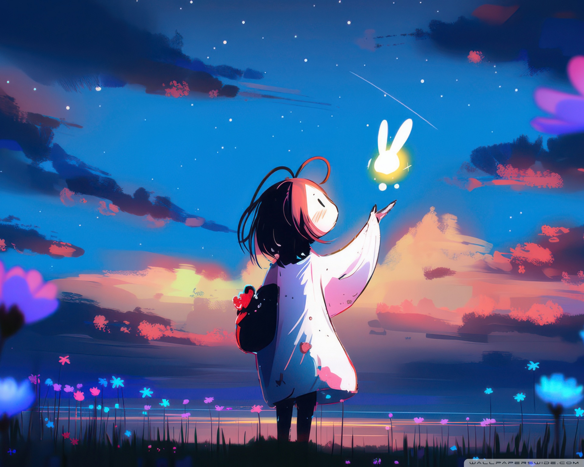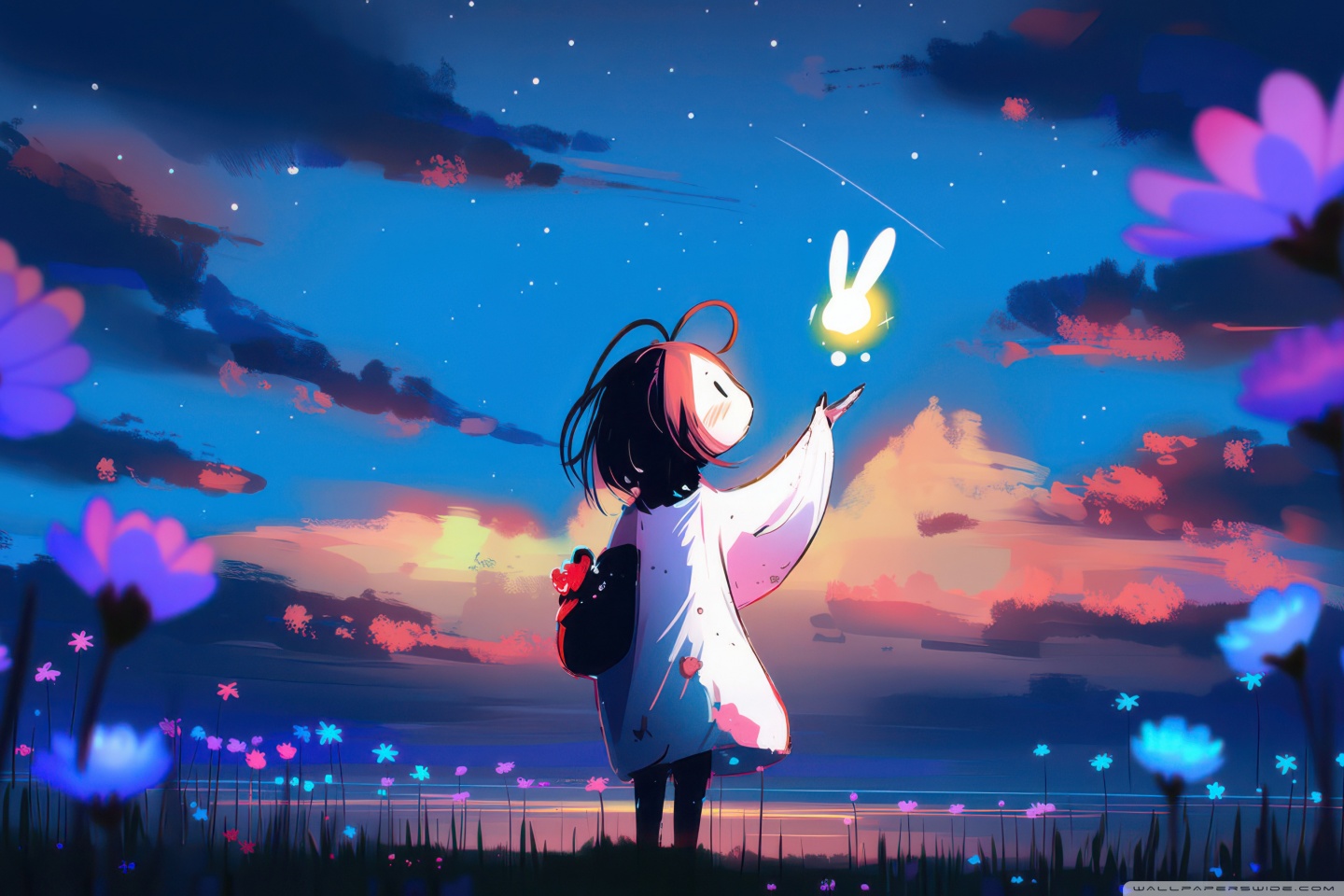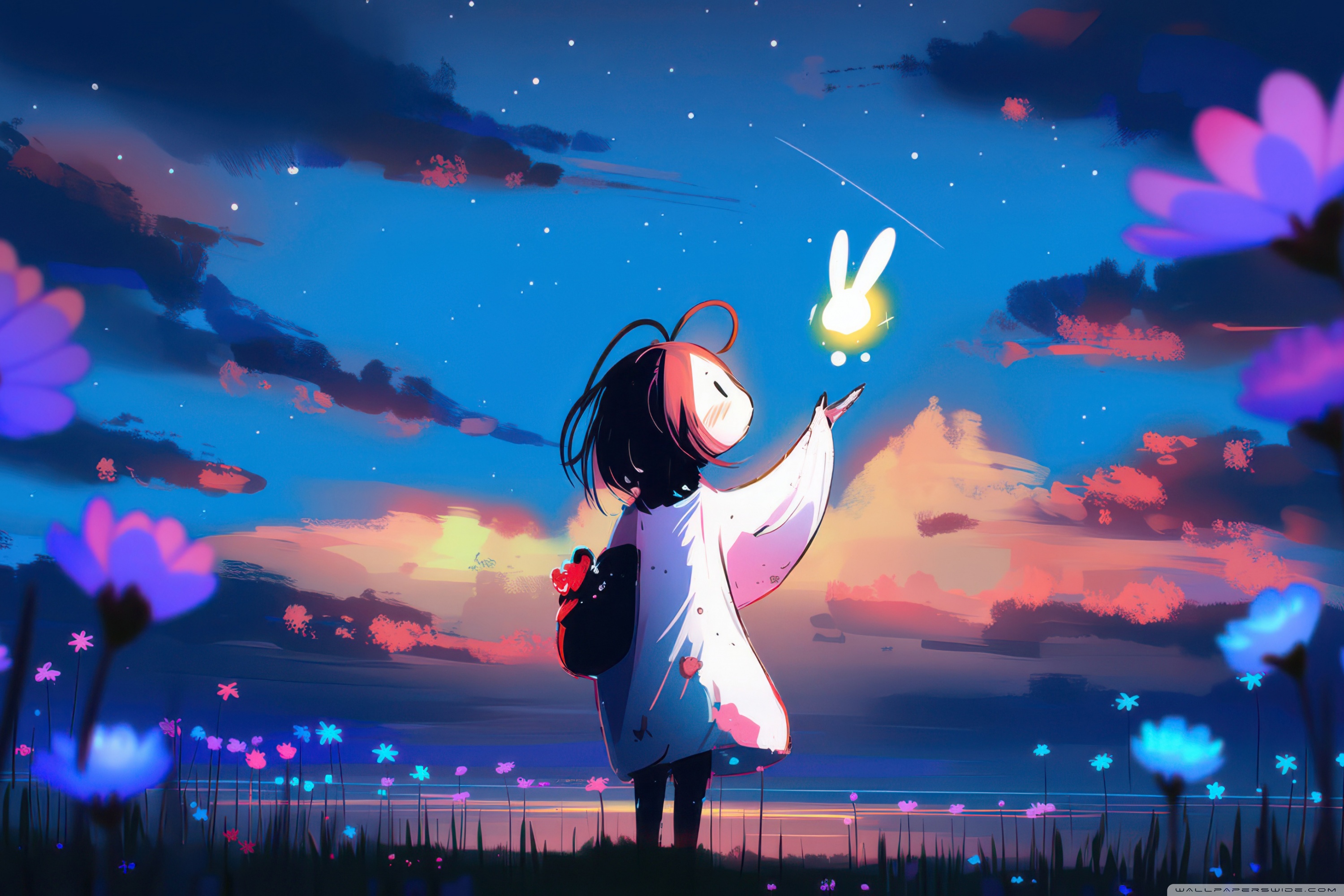 Download Cute Little Girl Drawing Illustration 4K UHD Wallpaper