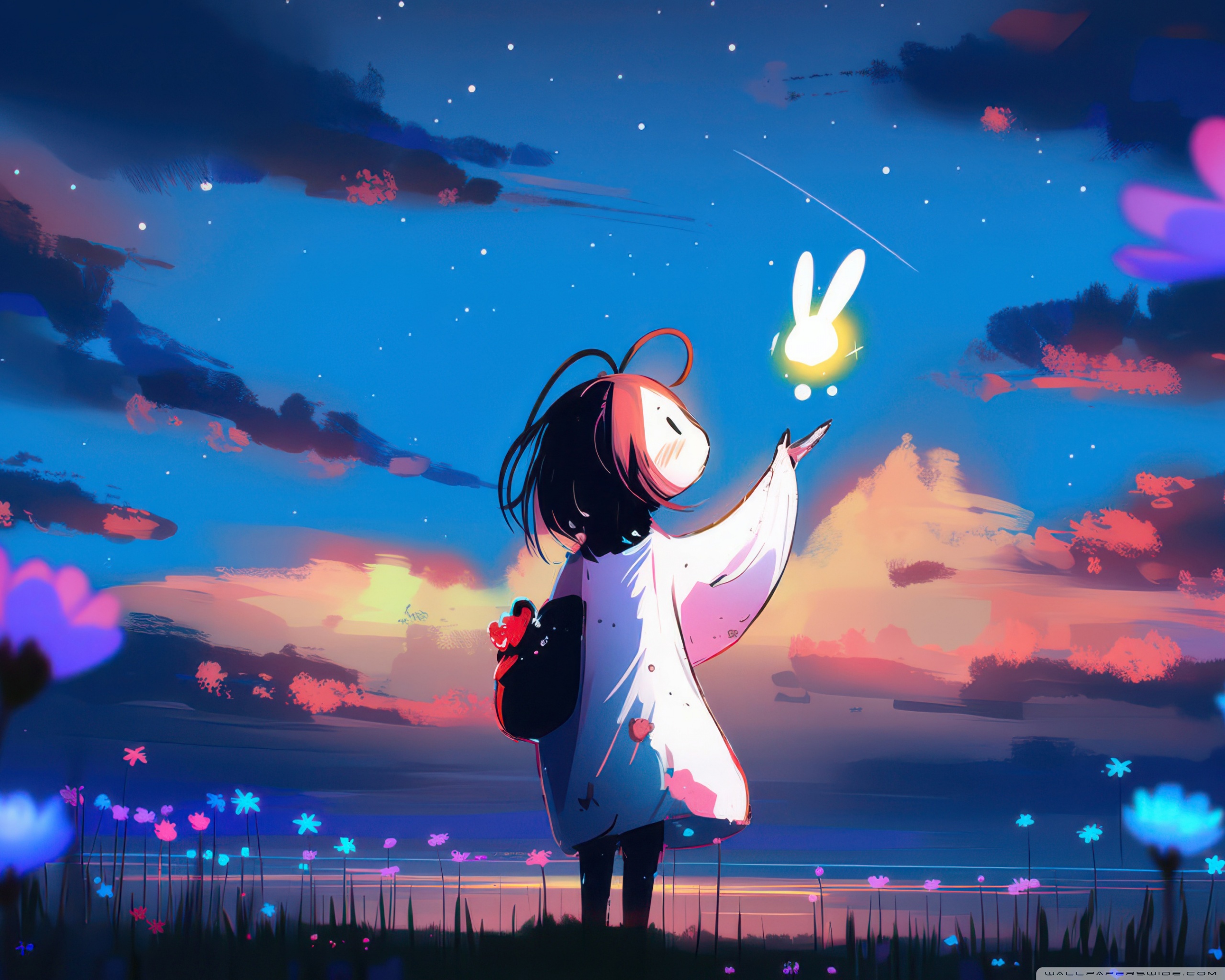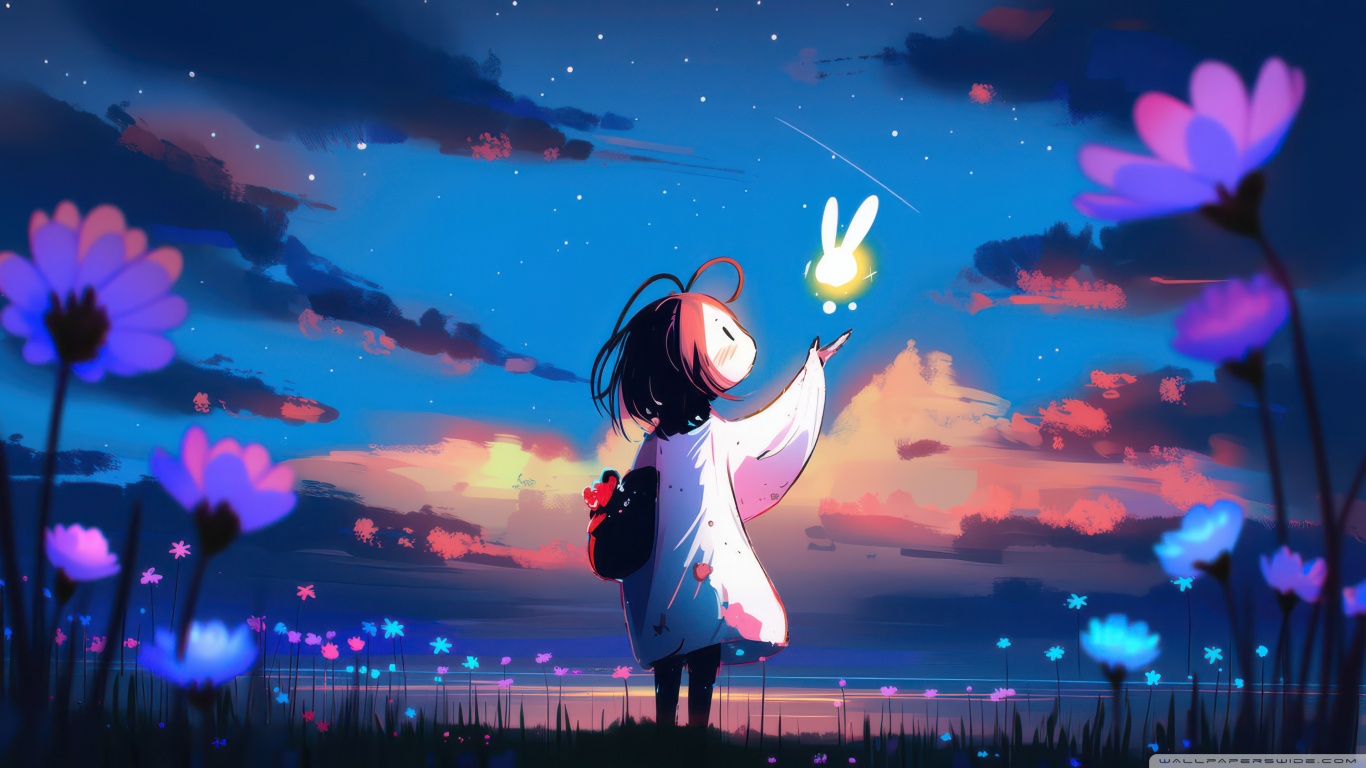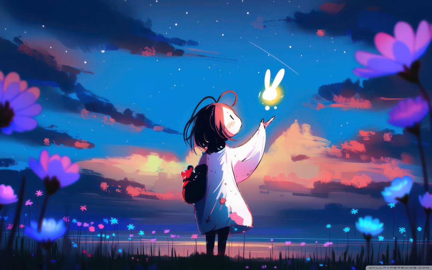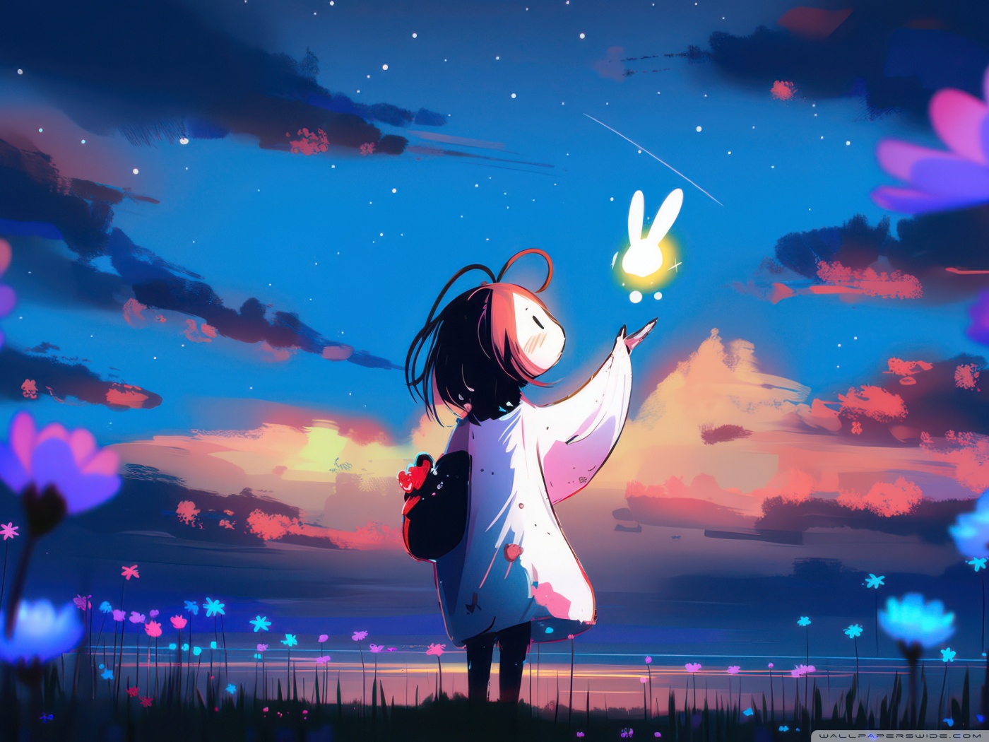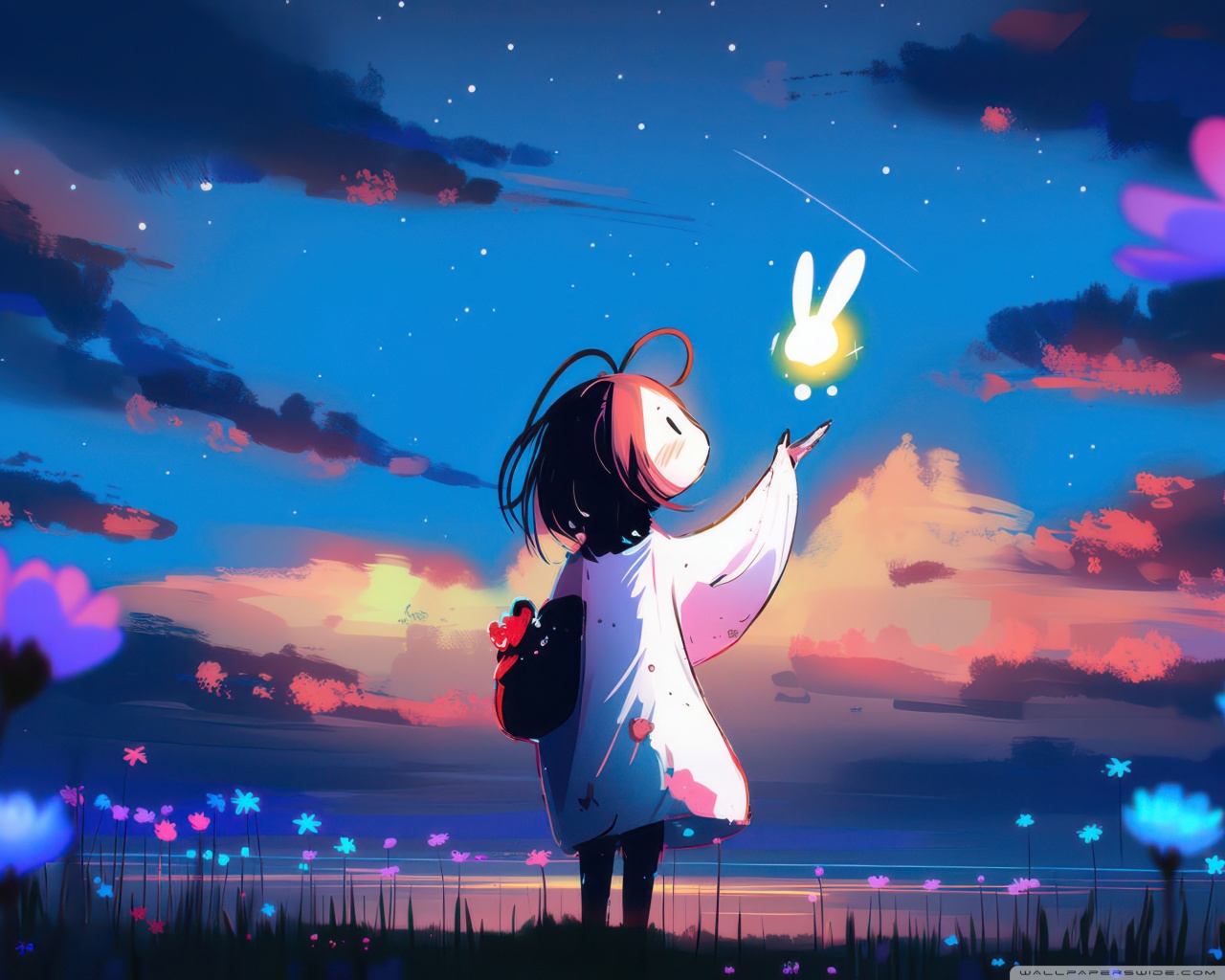 Download Cute Little Girl Drawing Illustration 4K UHD Wallpaper