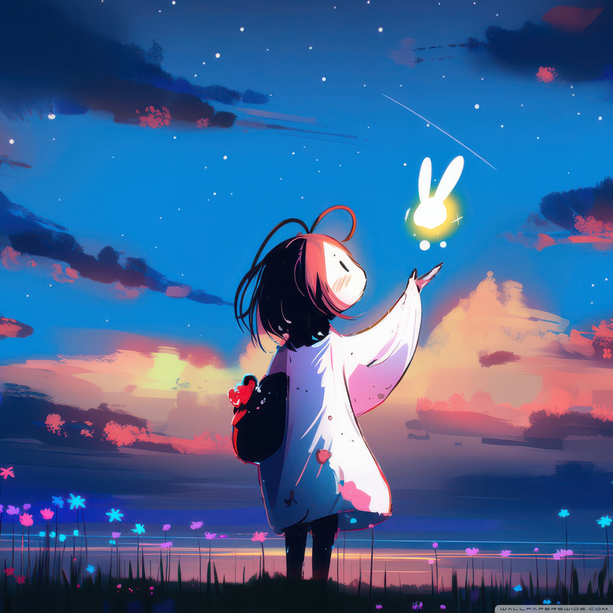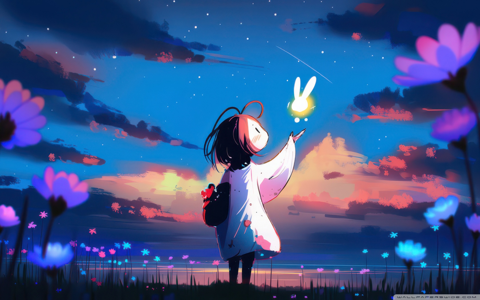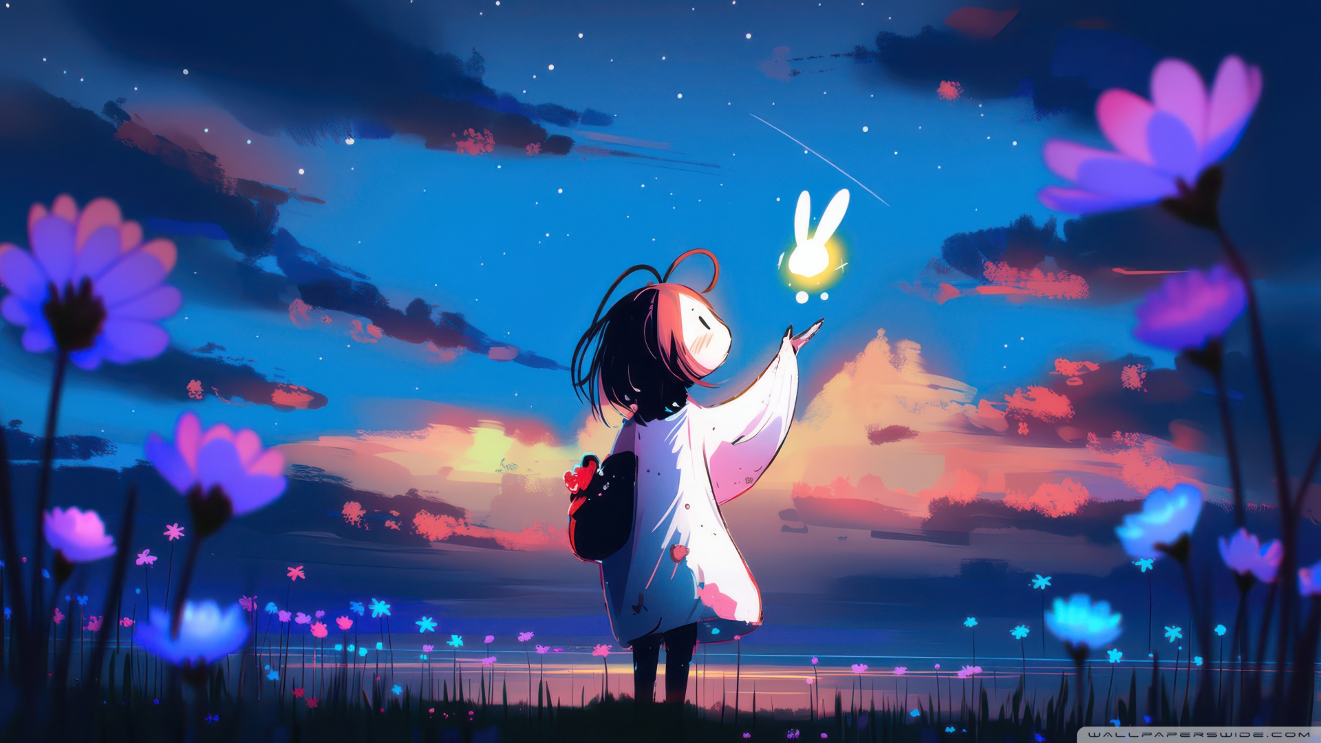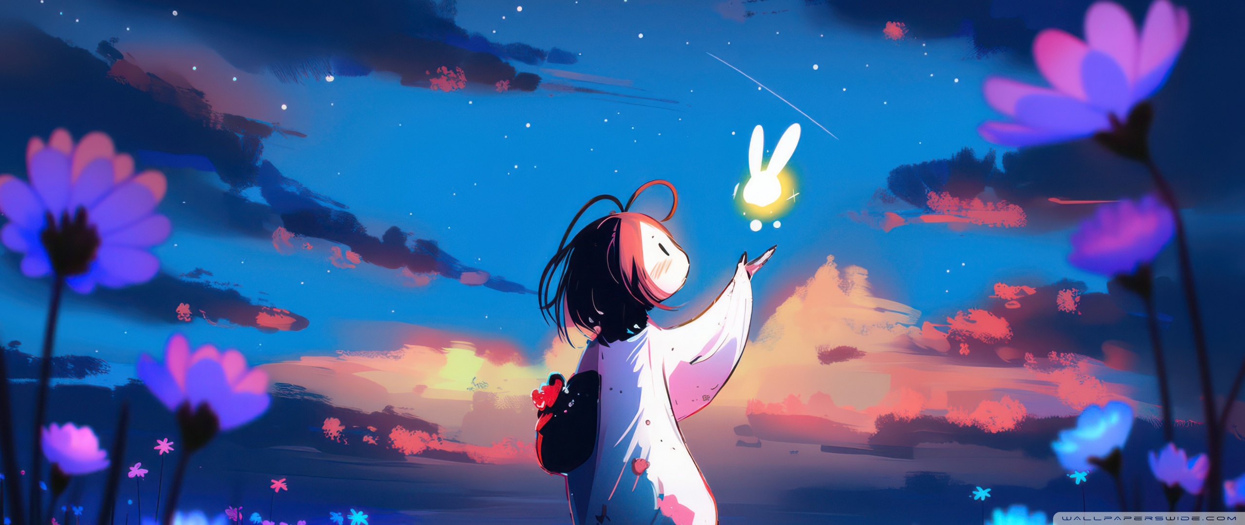 Download Cute Little Girl Drawing Illustration 4K UHD Wallpaper