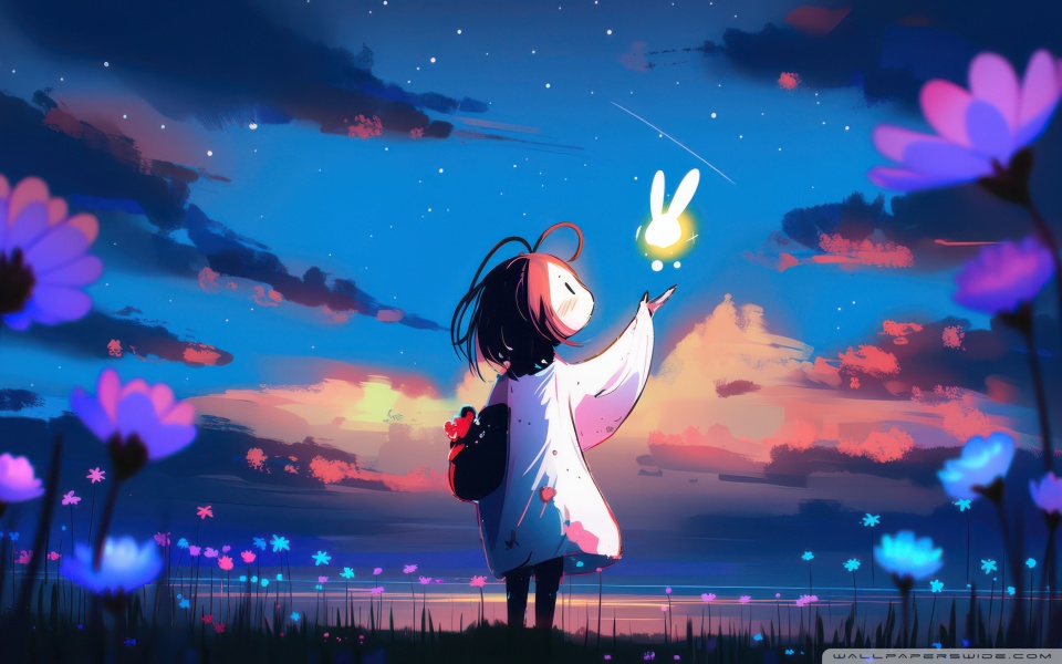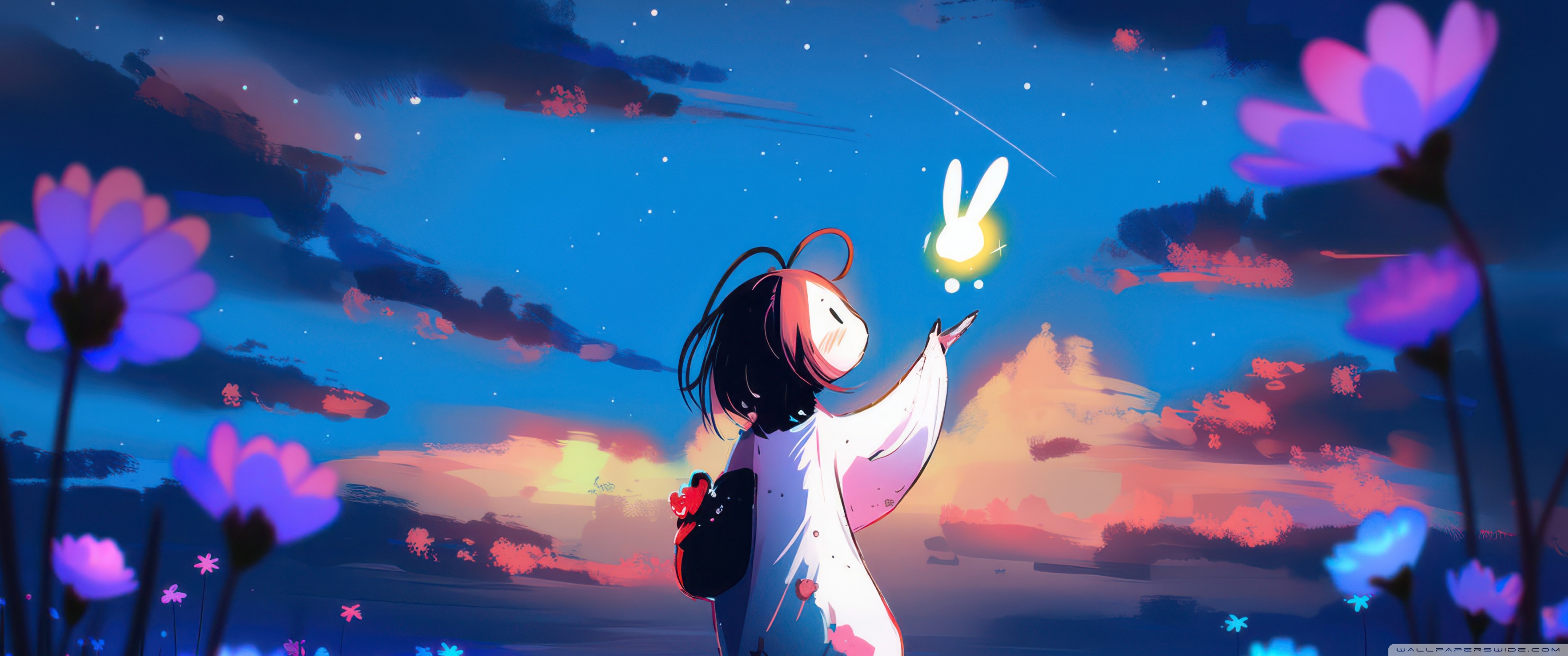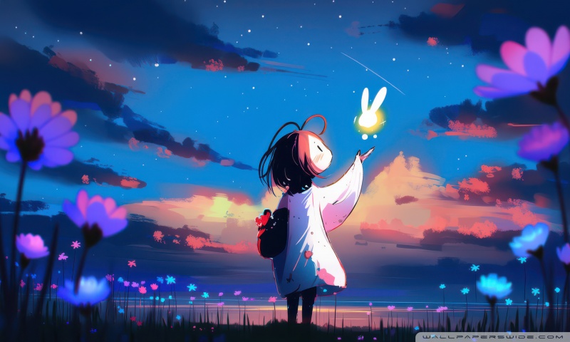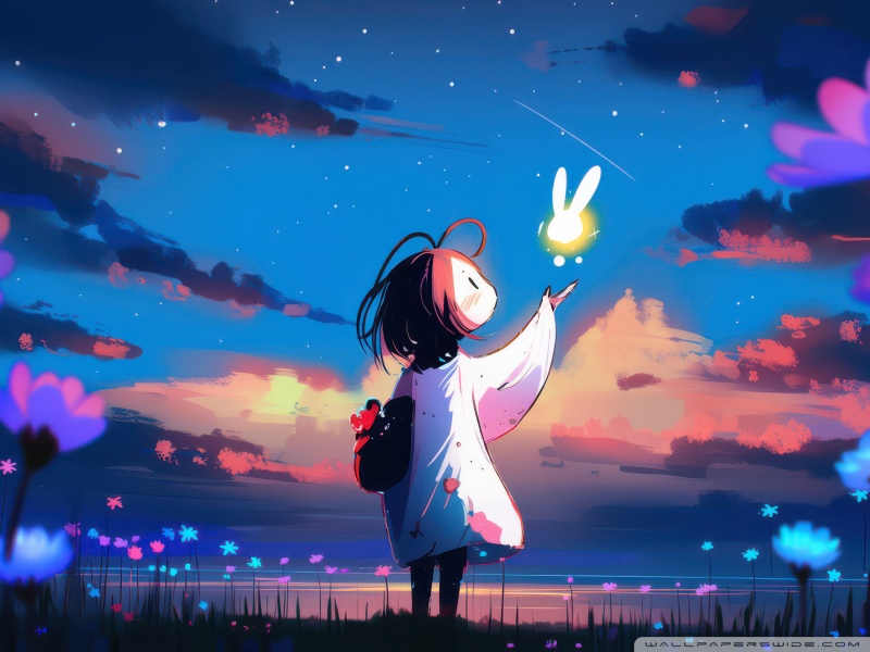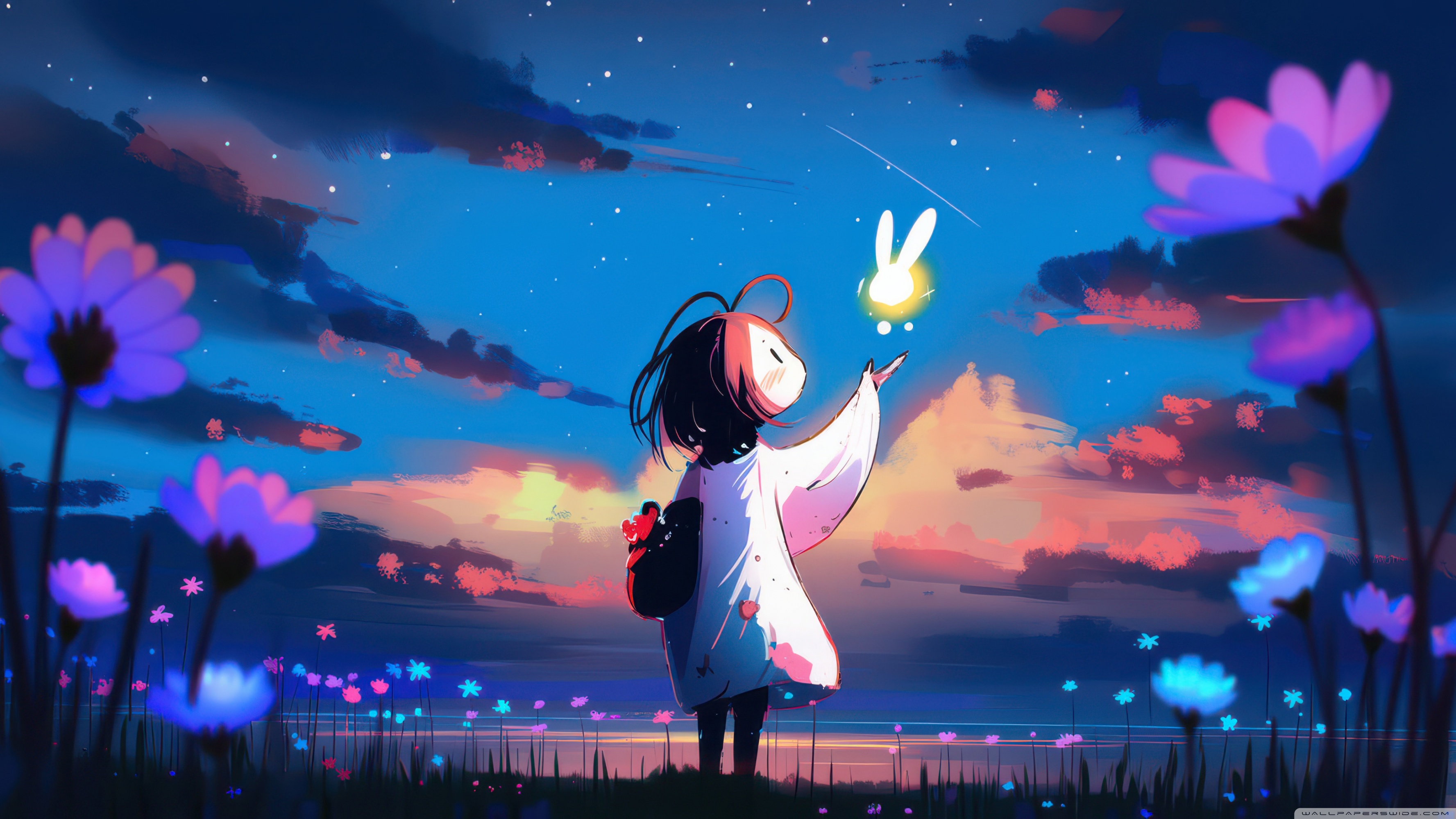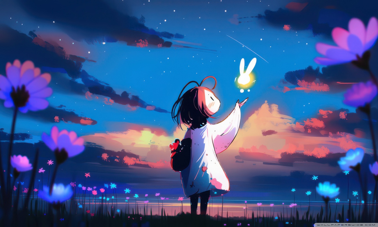 Download Cute Little Girl Drawing Illustration 4K UHD Wallpaper