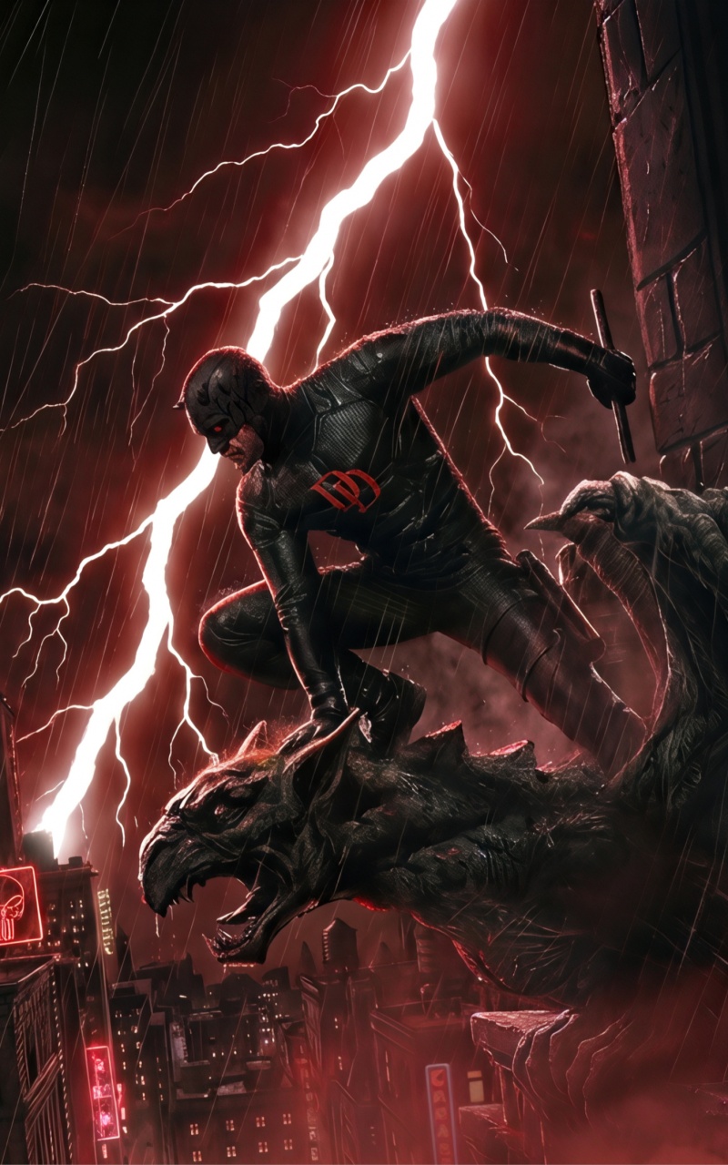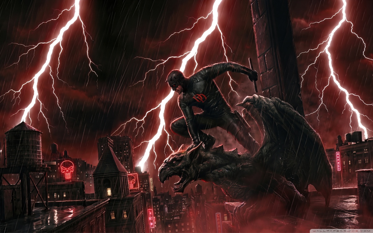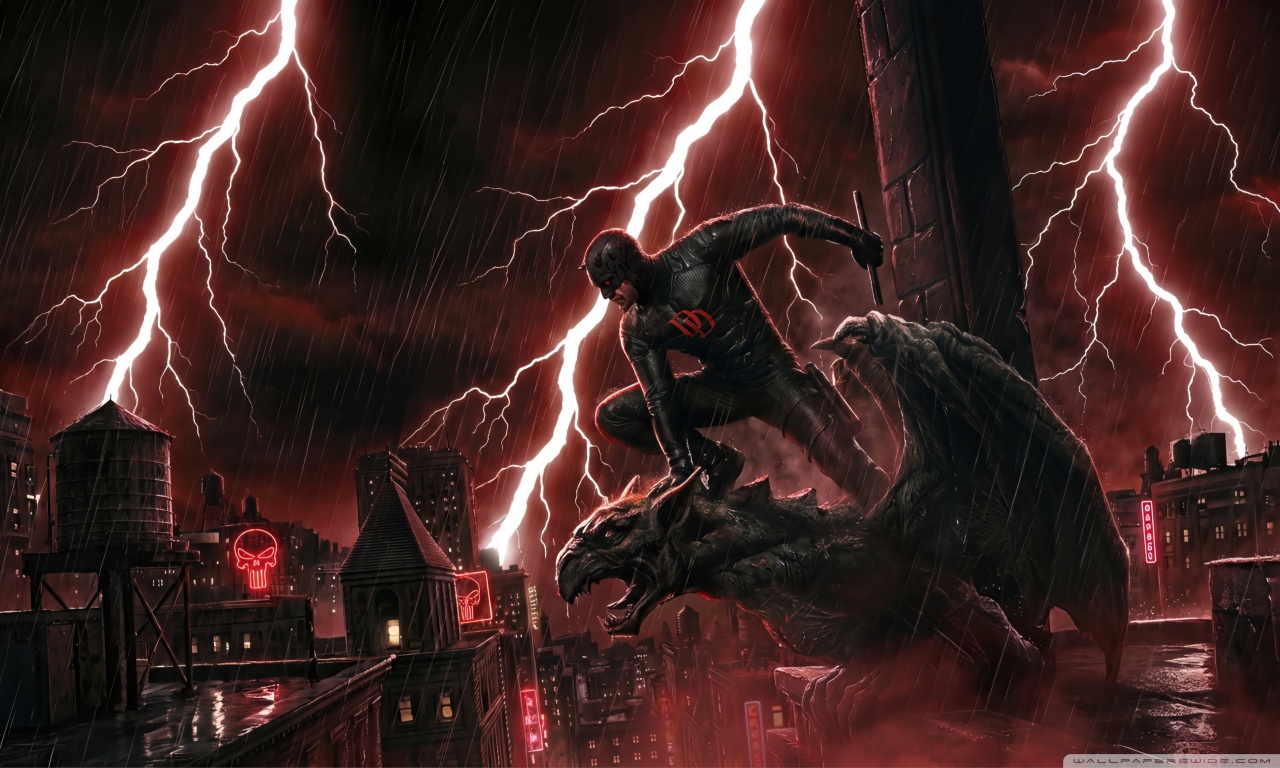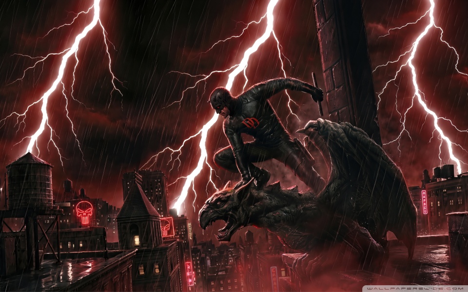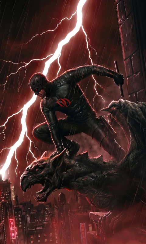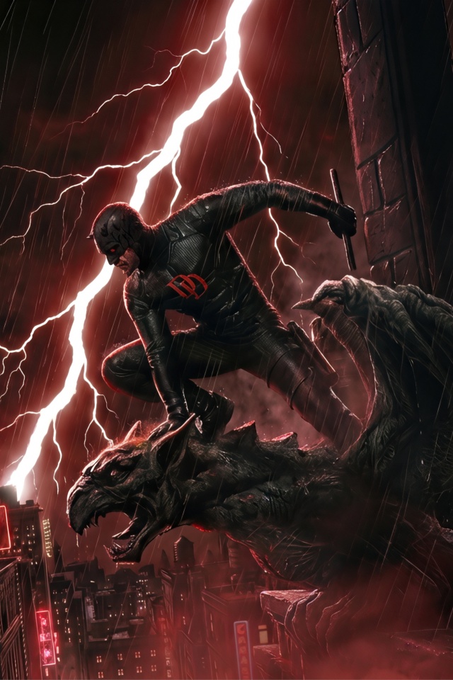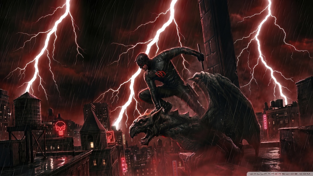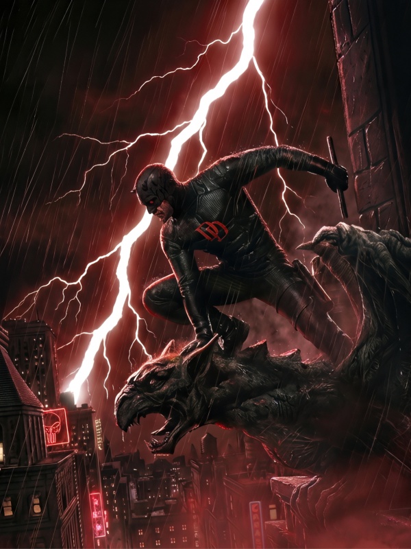 Download Daredevil Superhero perched on a Gargoyle Art 4K UHD Wallpaper