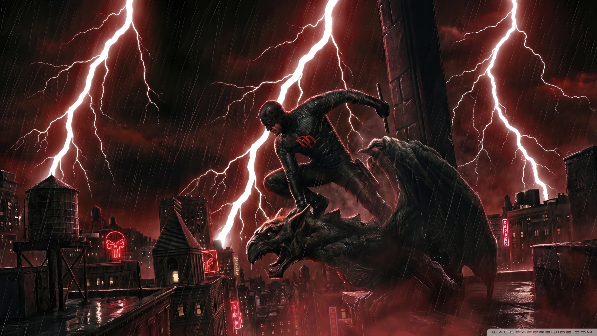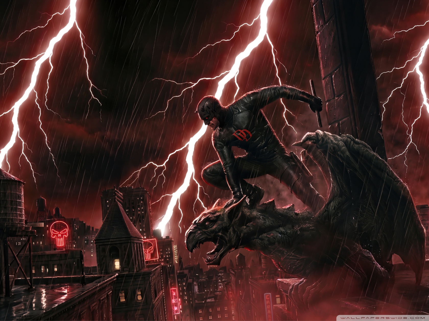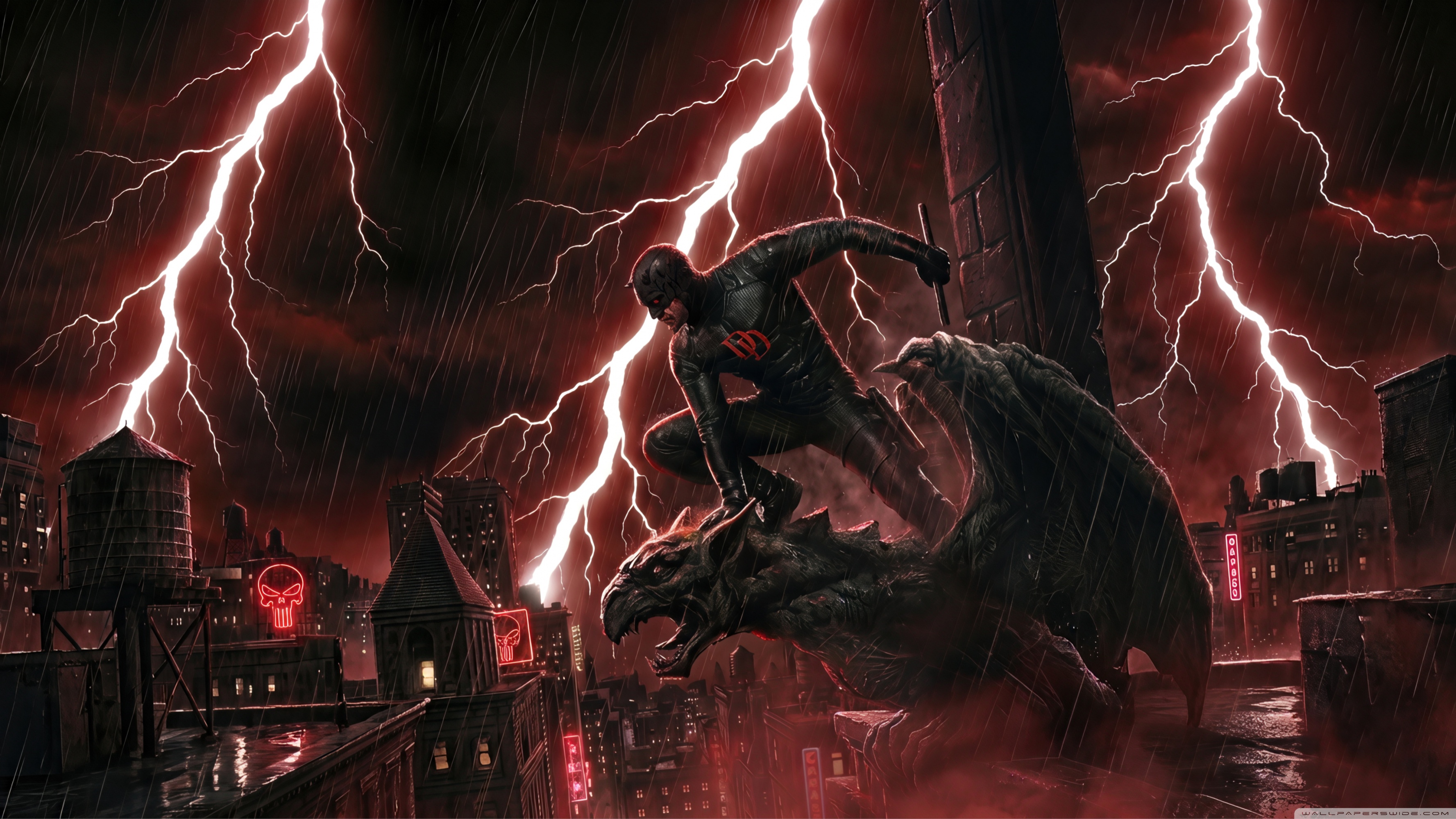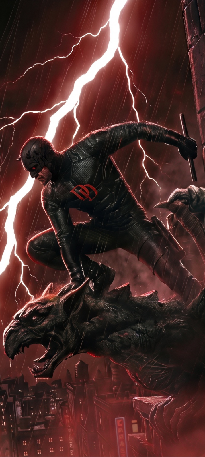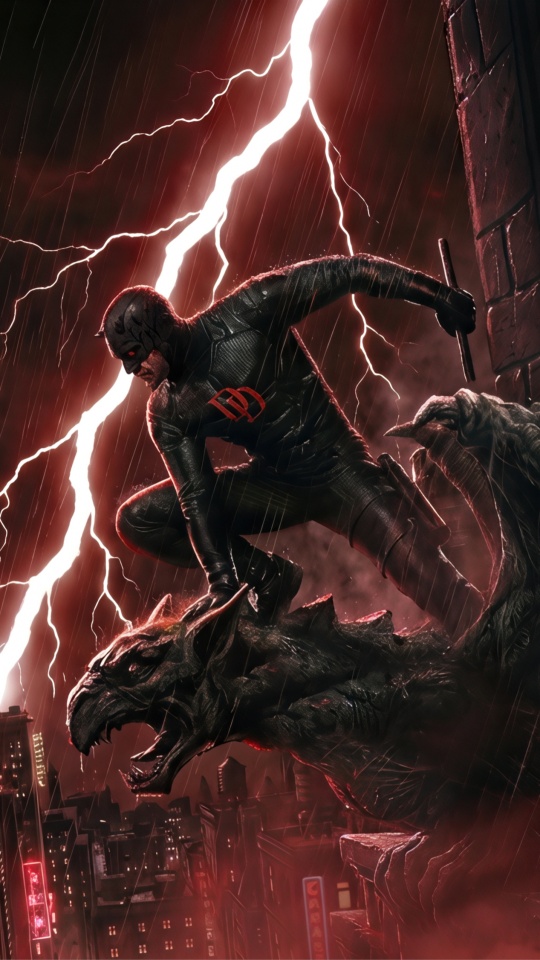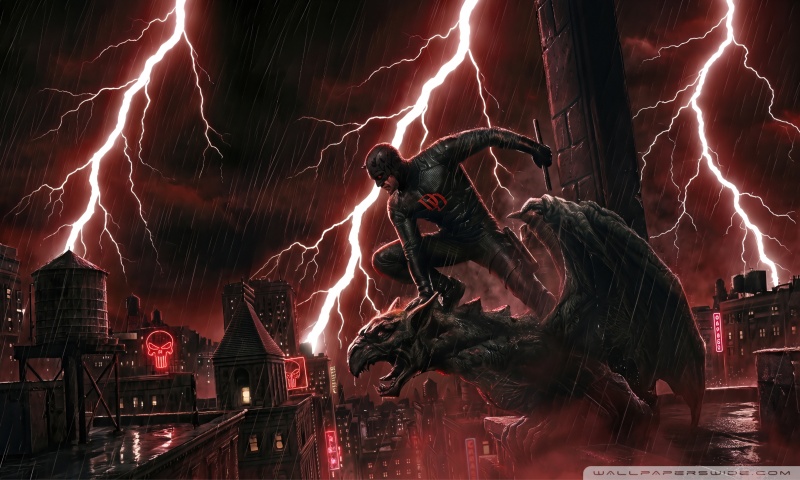 Download Daredevil Superhero perched on a Gargoyle Art 4K UHD Wallpaper