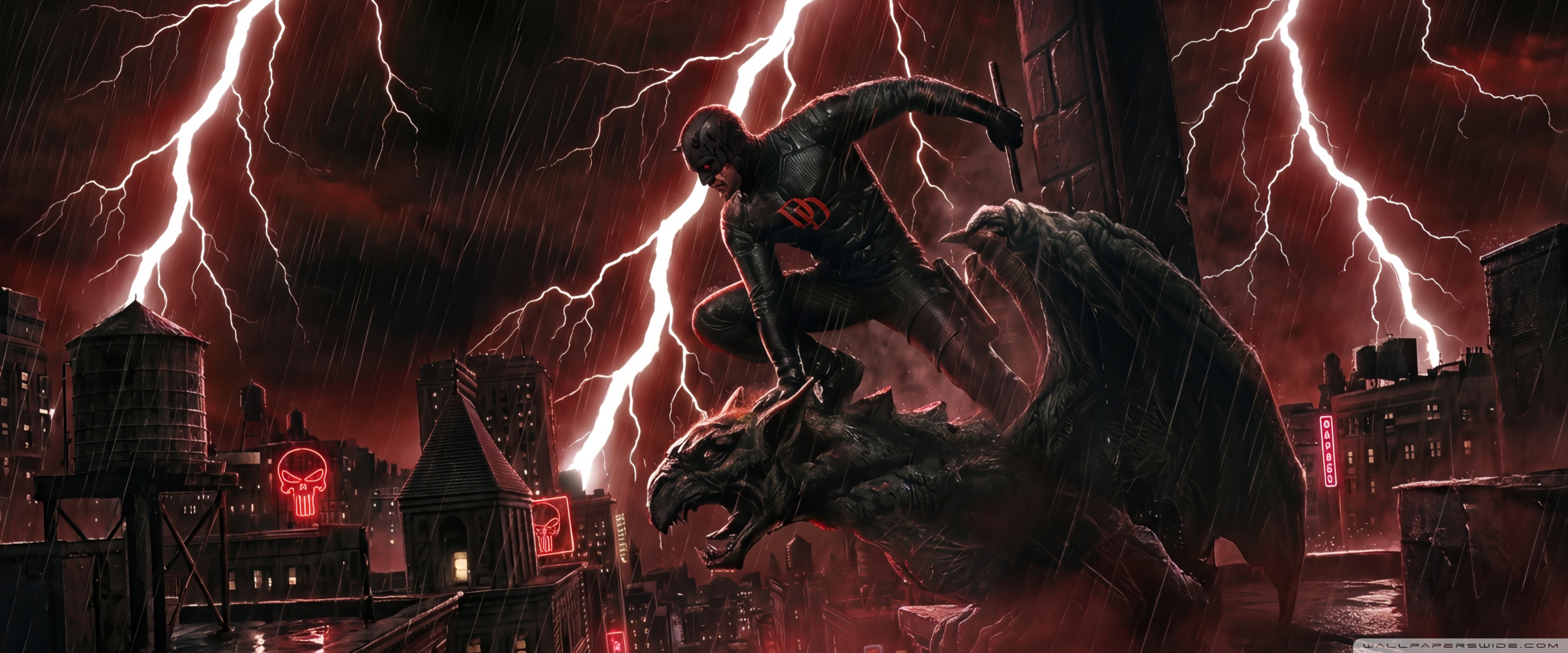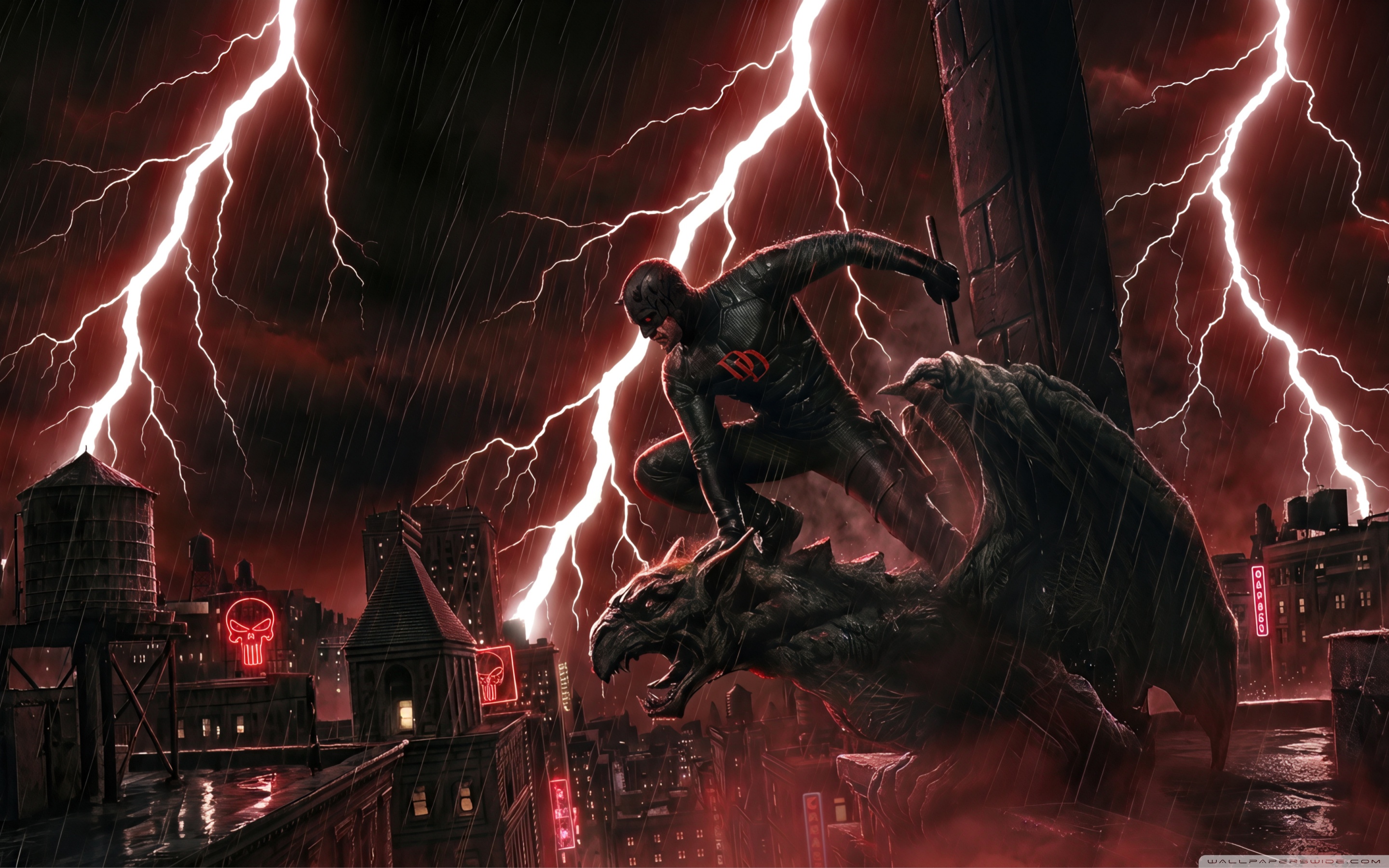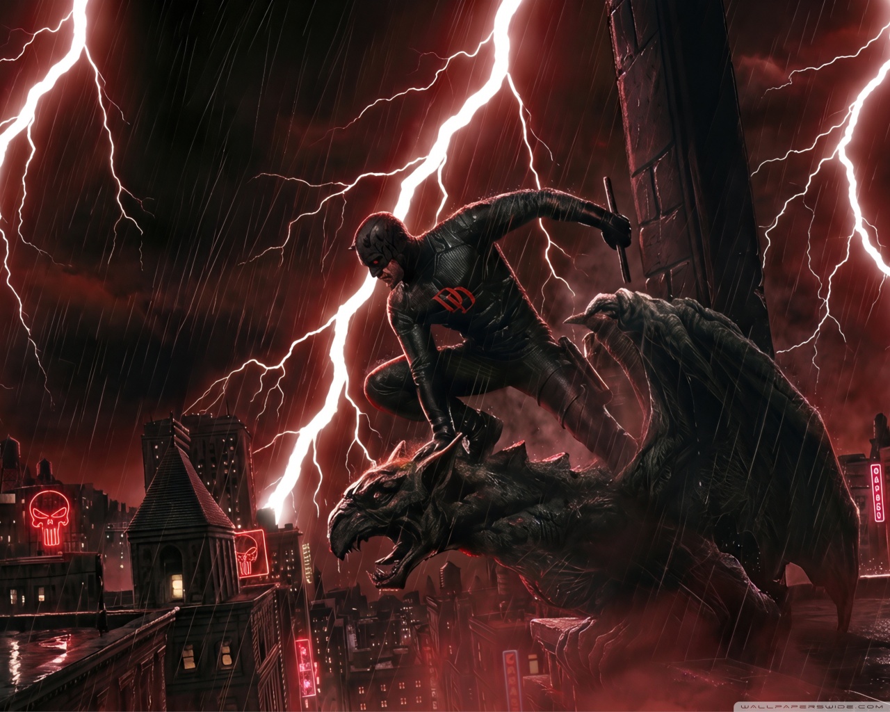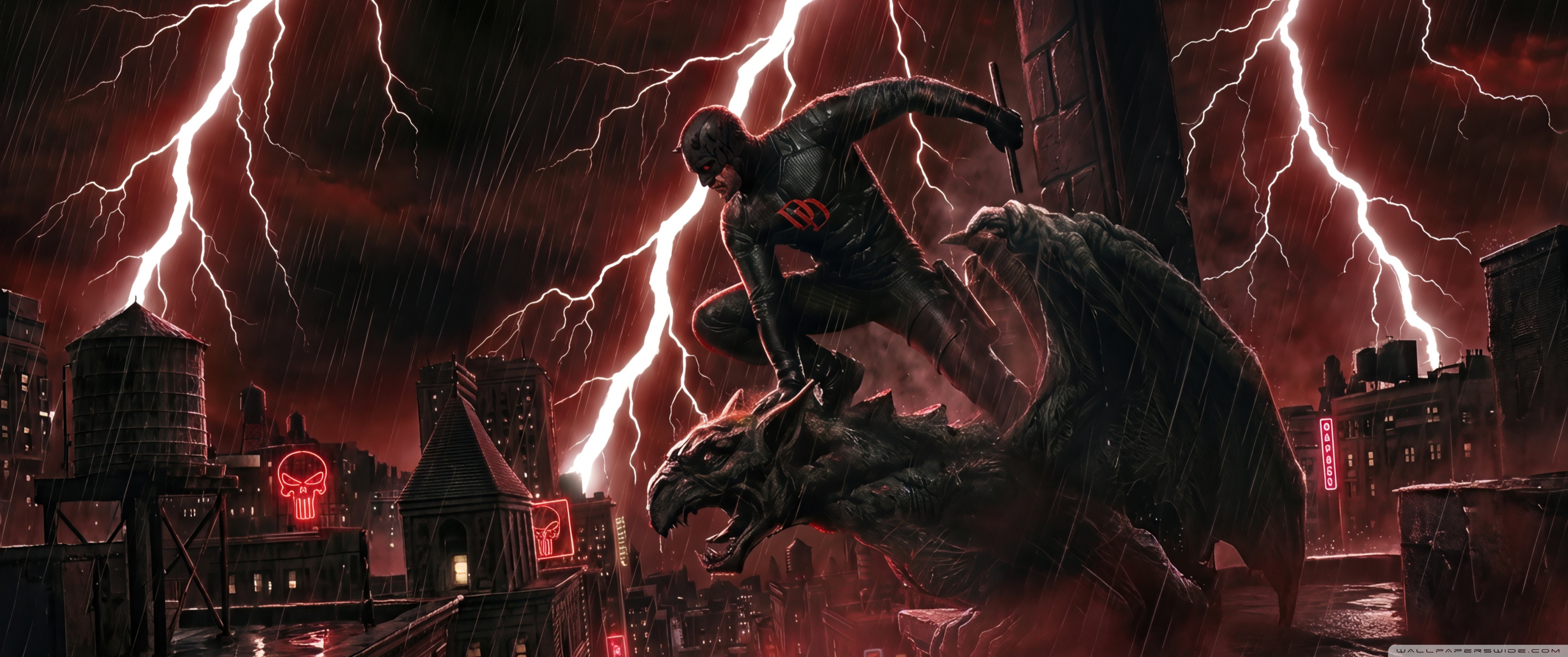 Download Daredevil Superhero perched on a Gargoyle Art 4K UHD Wallpaper