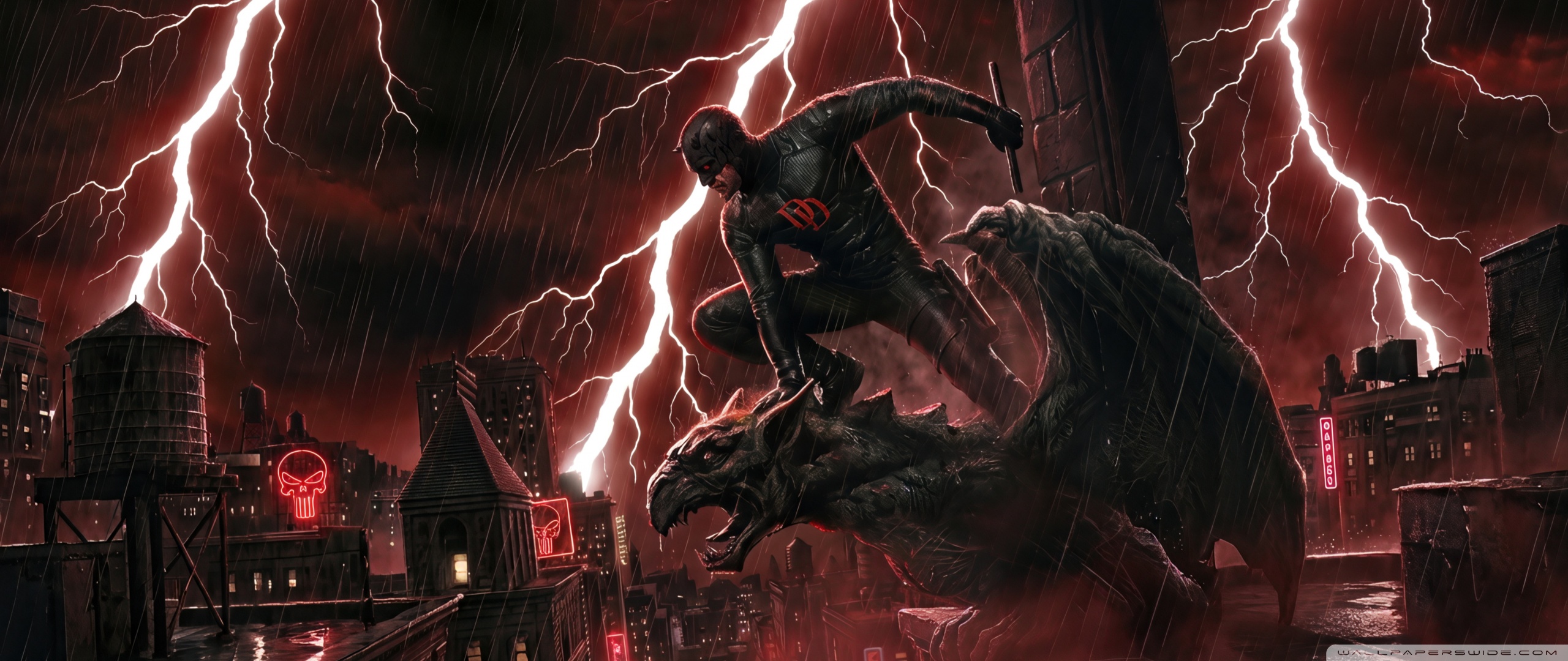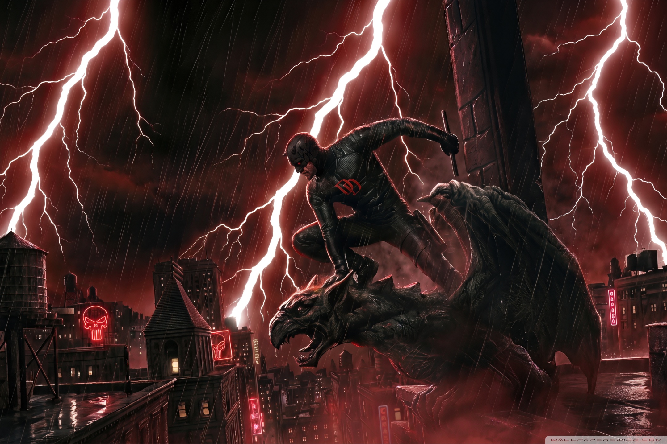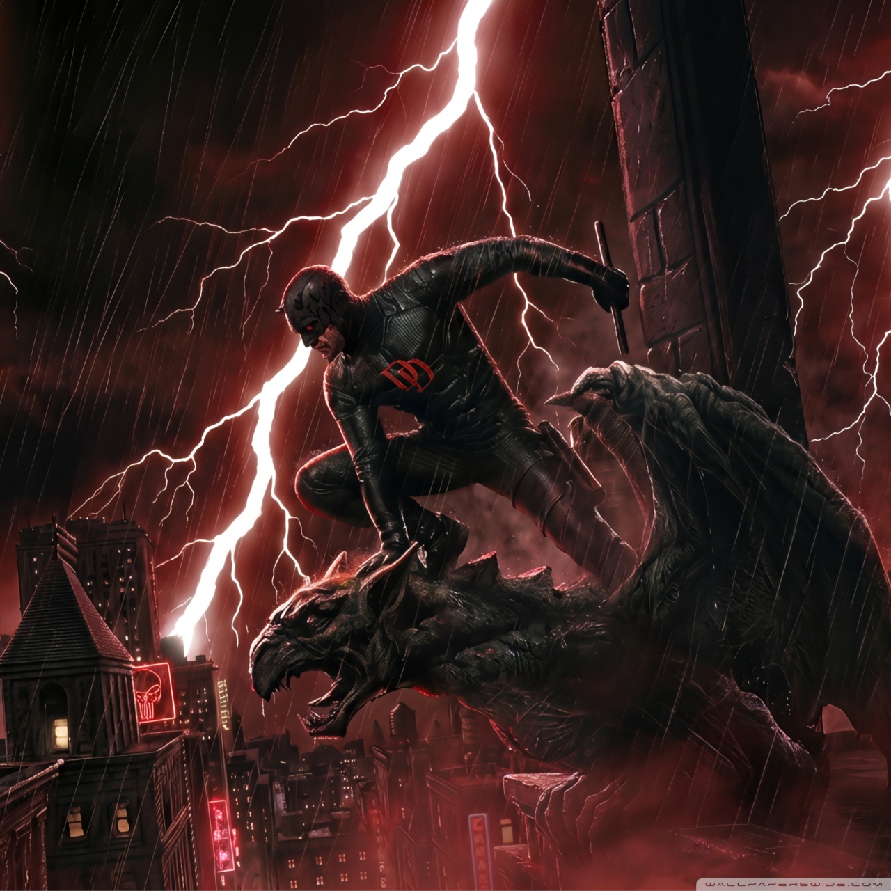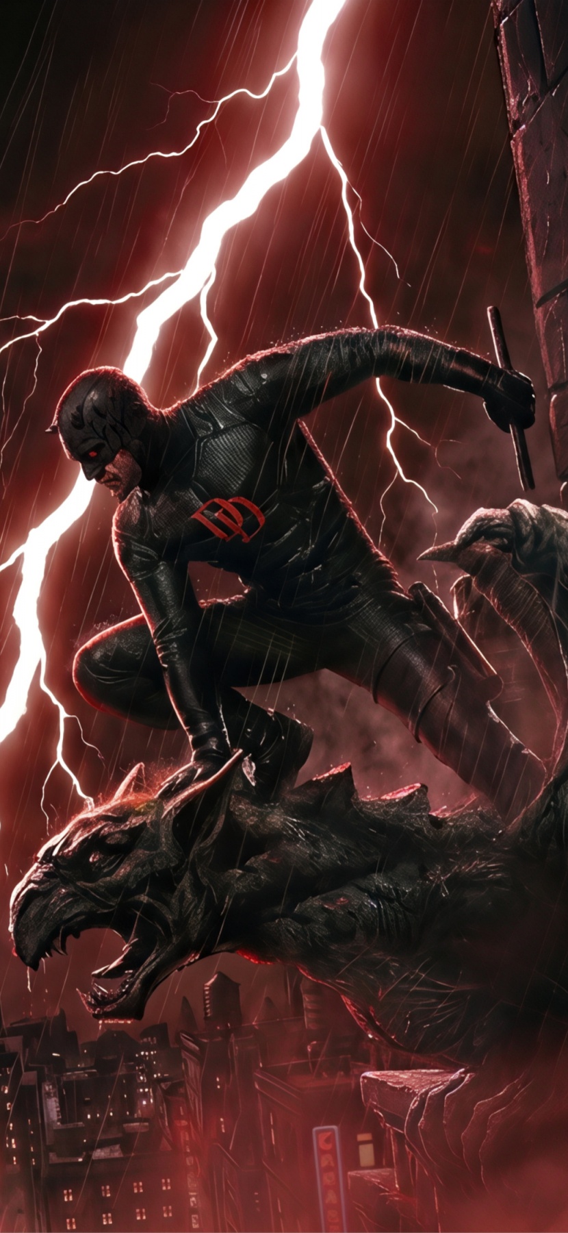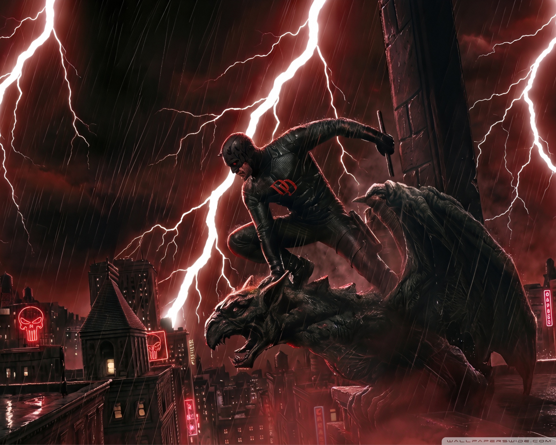 Download Daredevil Superhero perched on a Gargoyle Art 4K UHD Wallpaper