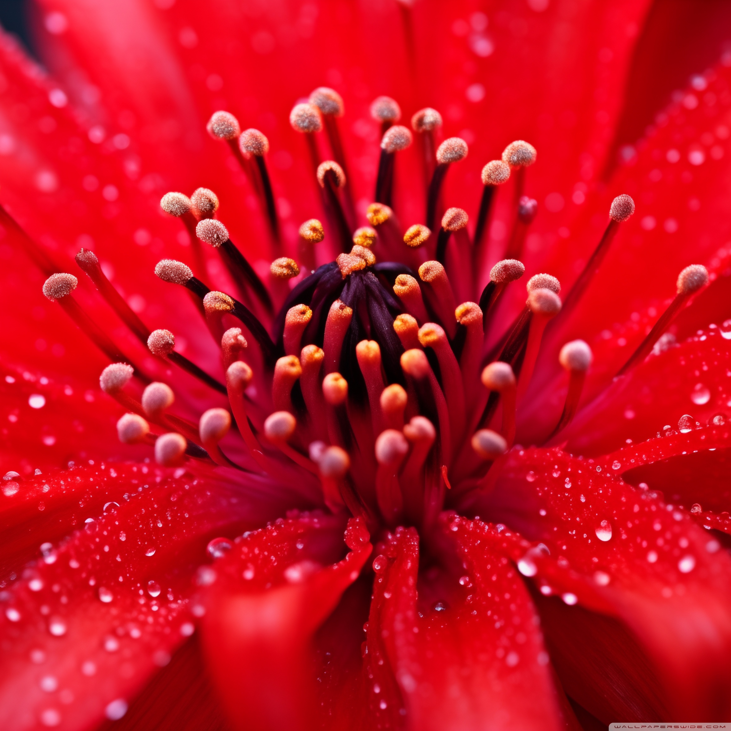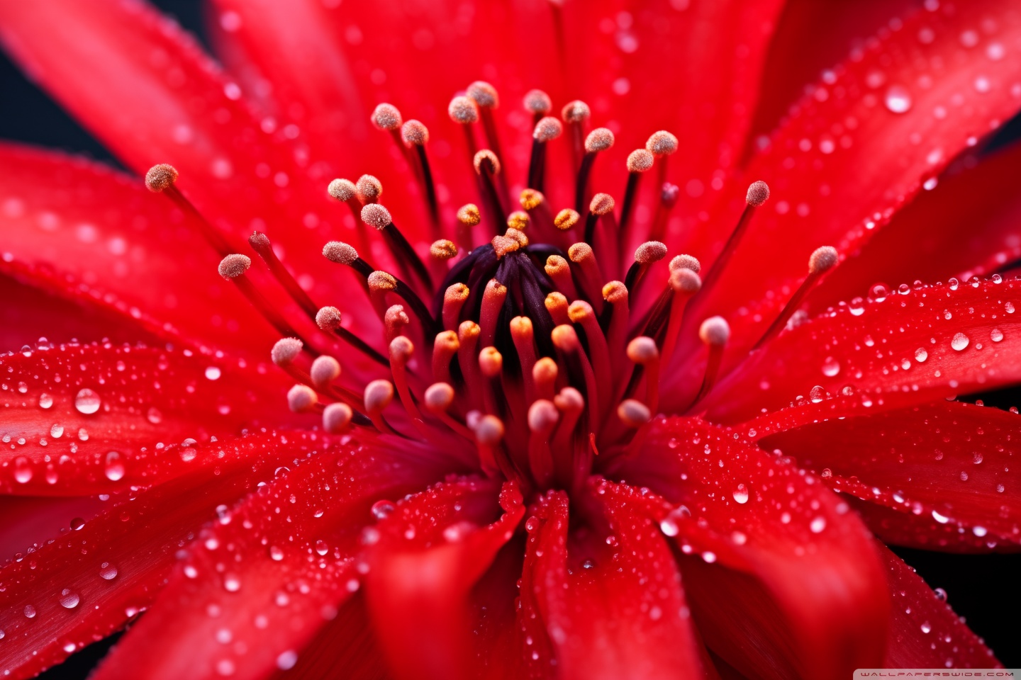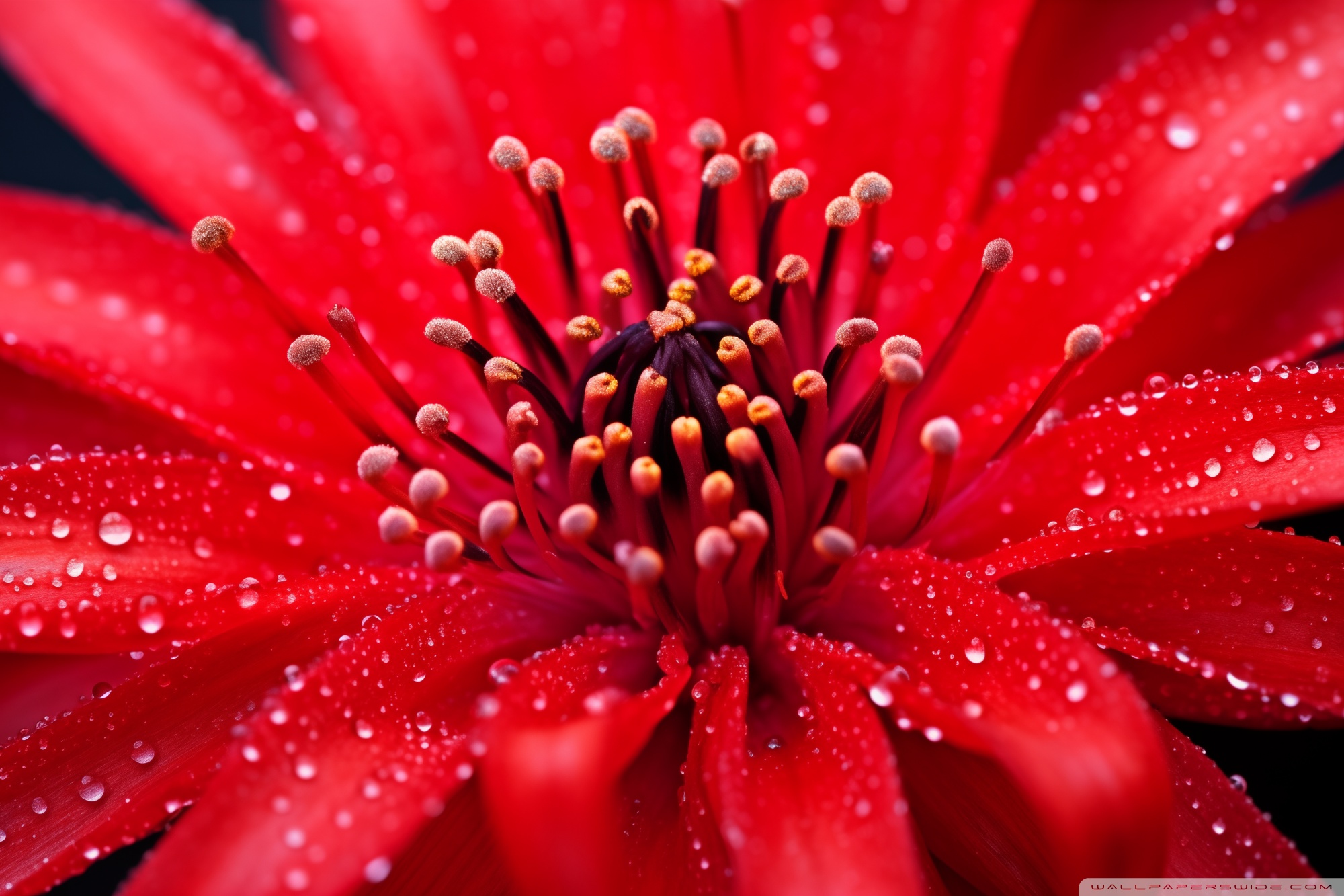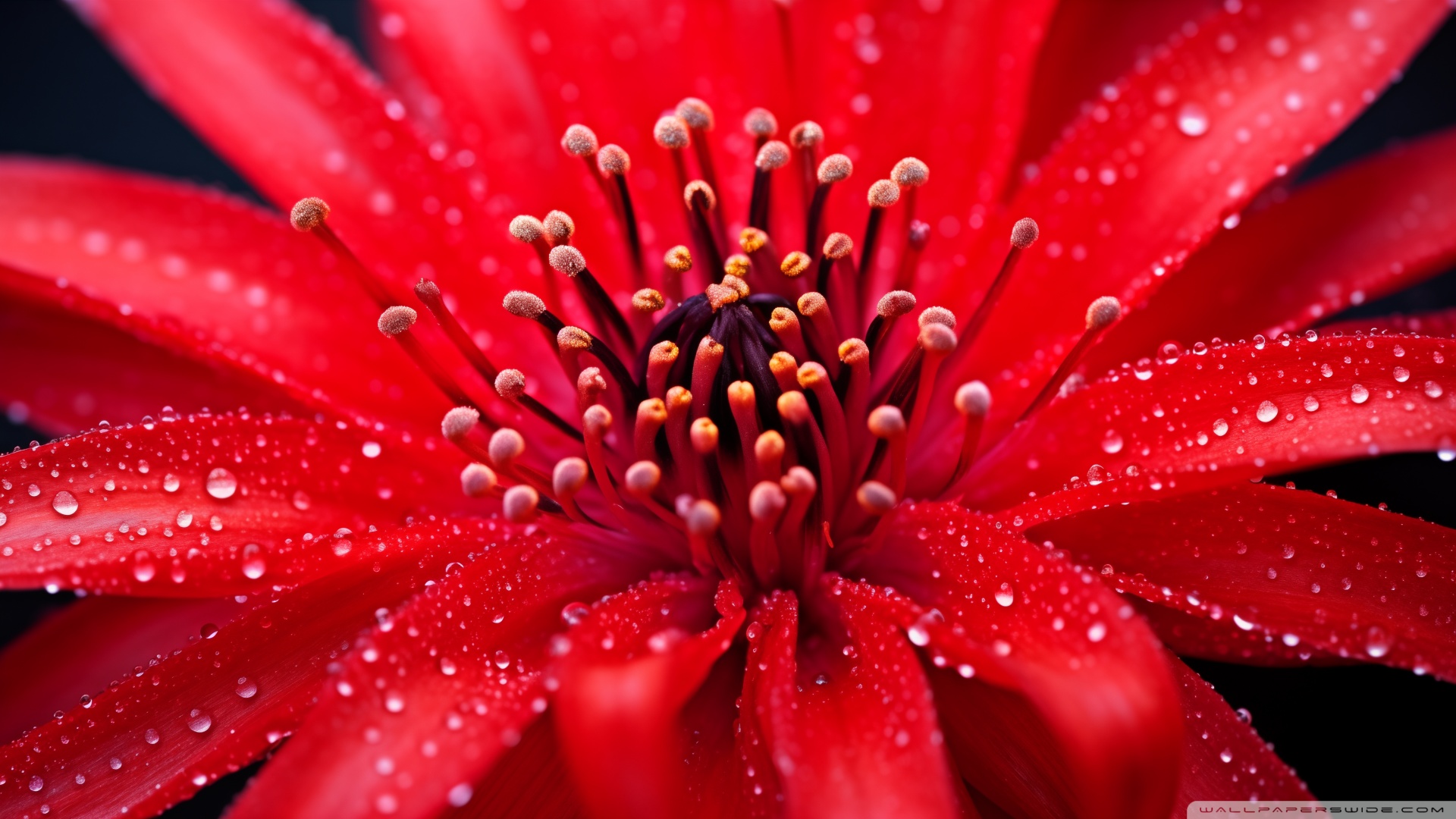 Download Delicate Drops on a Red Blossom 4K UHD Wallpaper