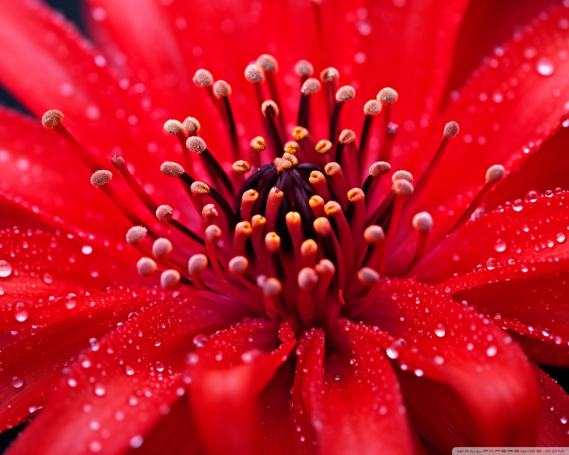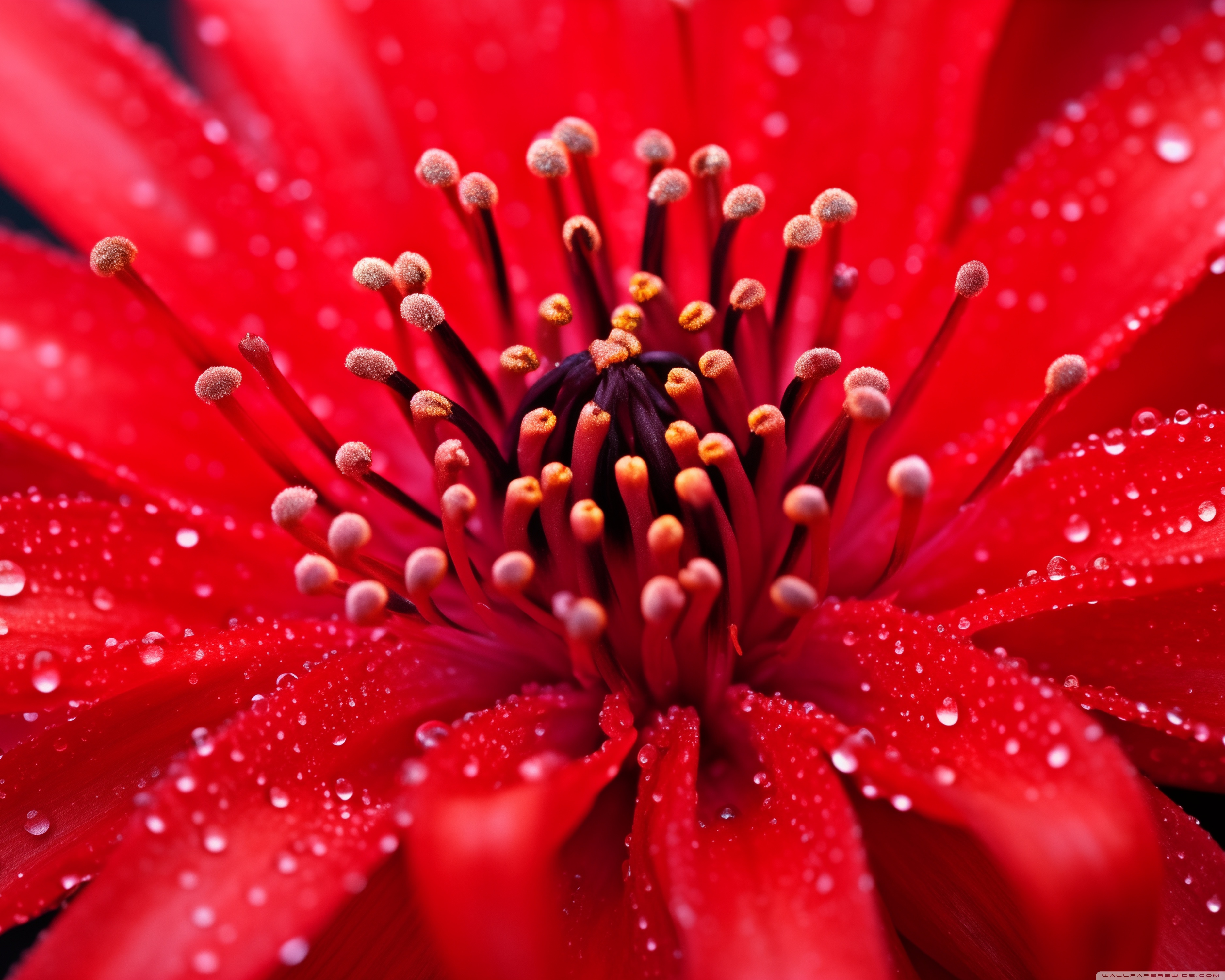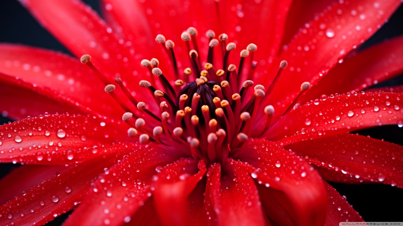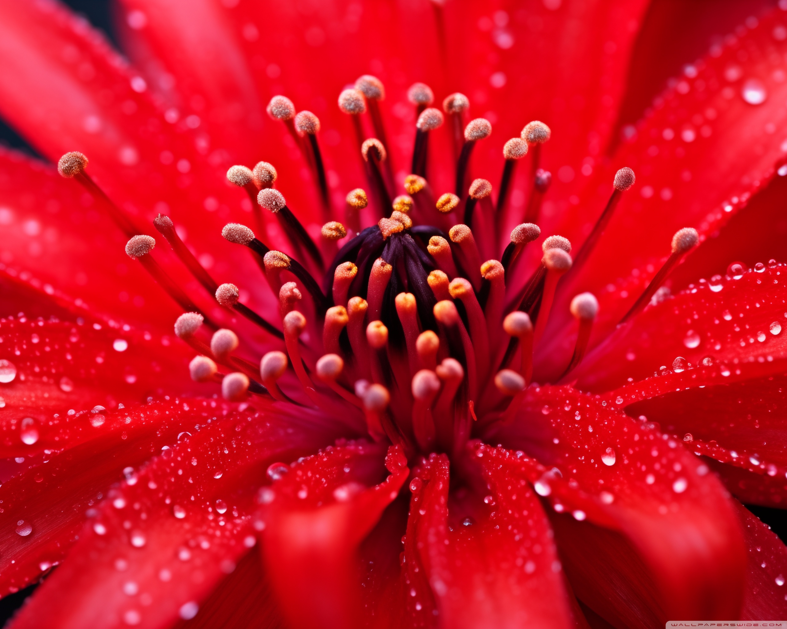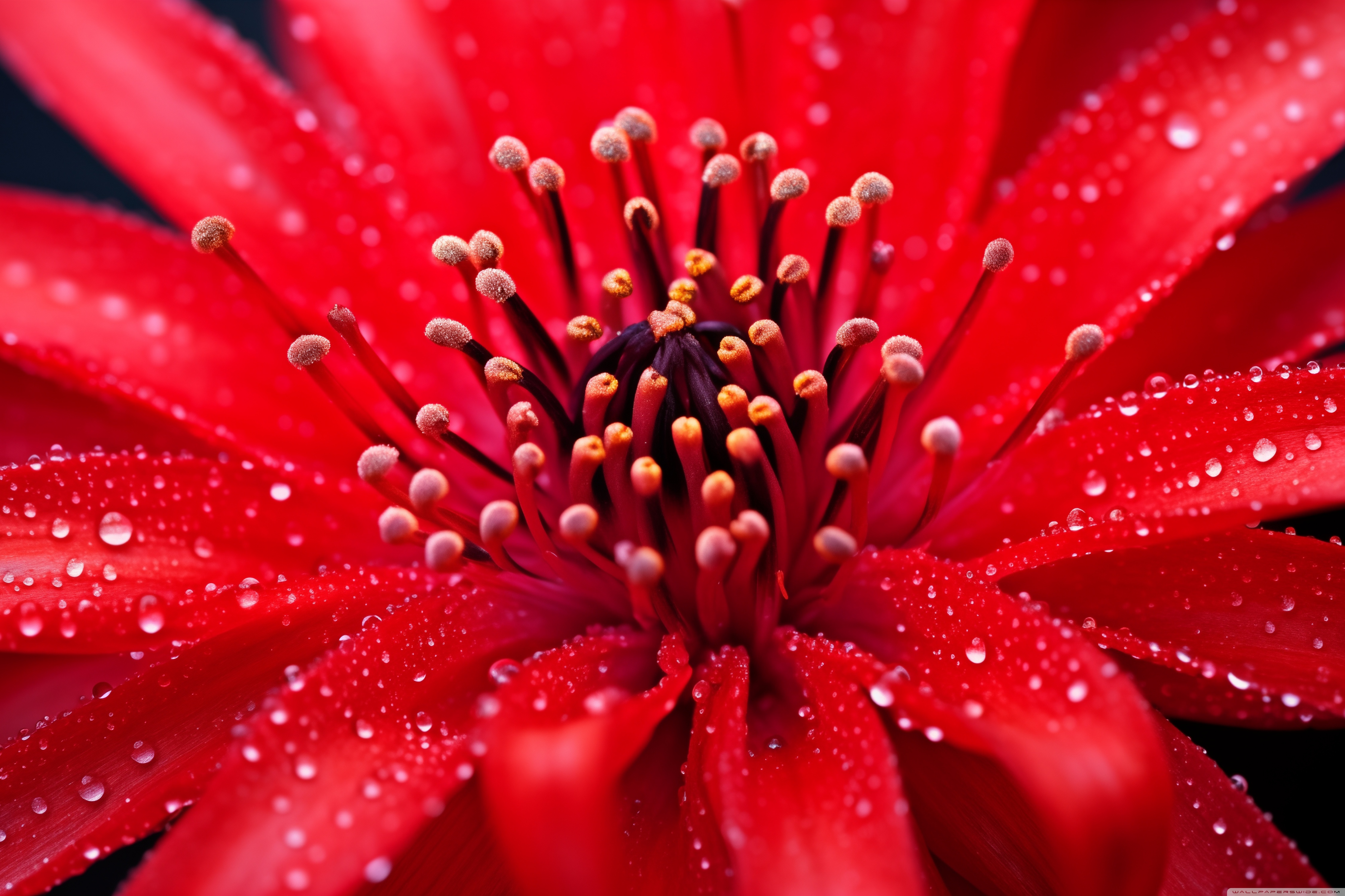 Download Delicate Drops on a Red Blossom 4K UHD Wallpaper