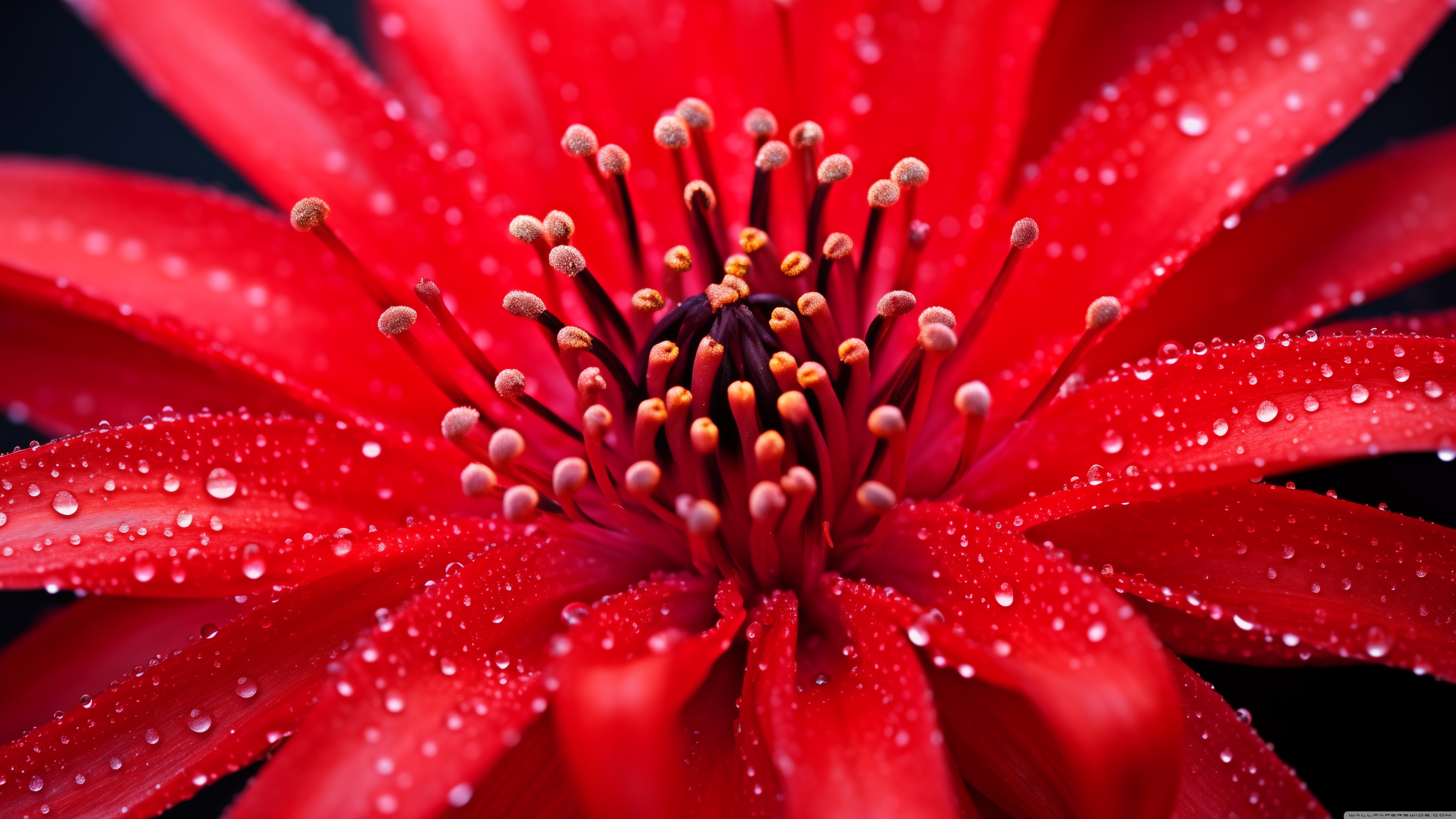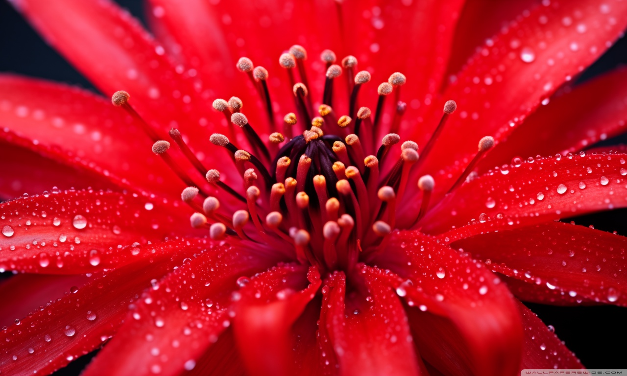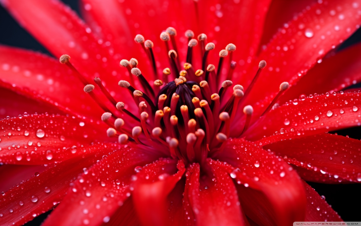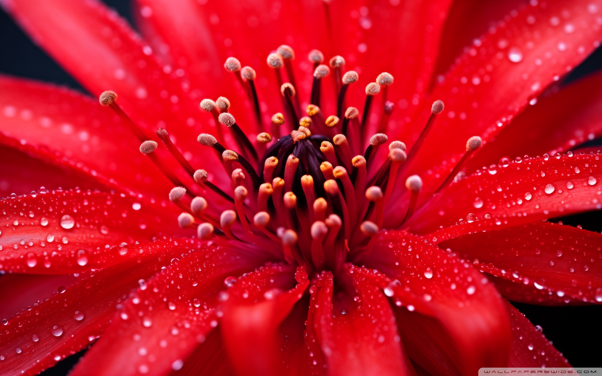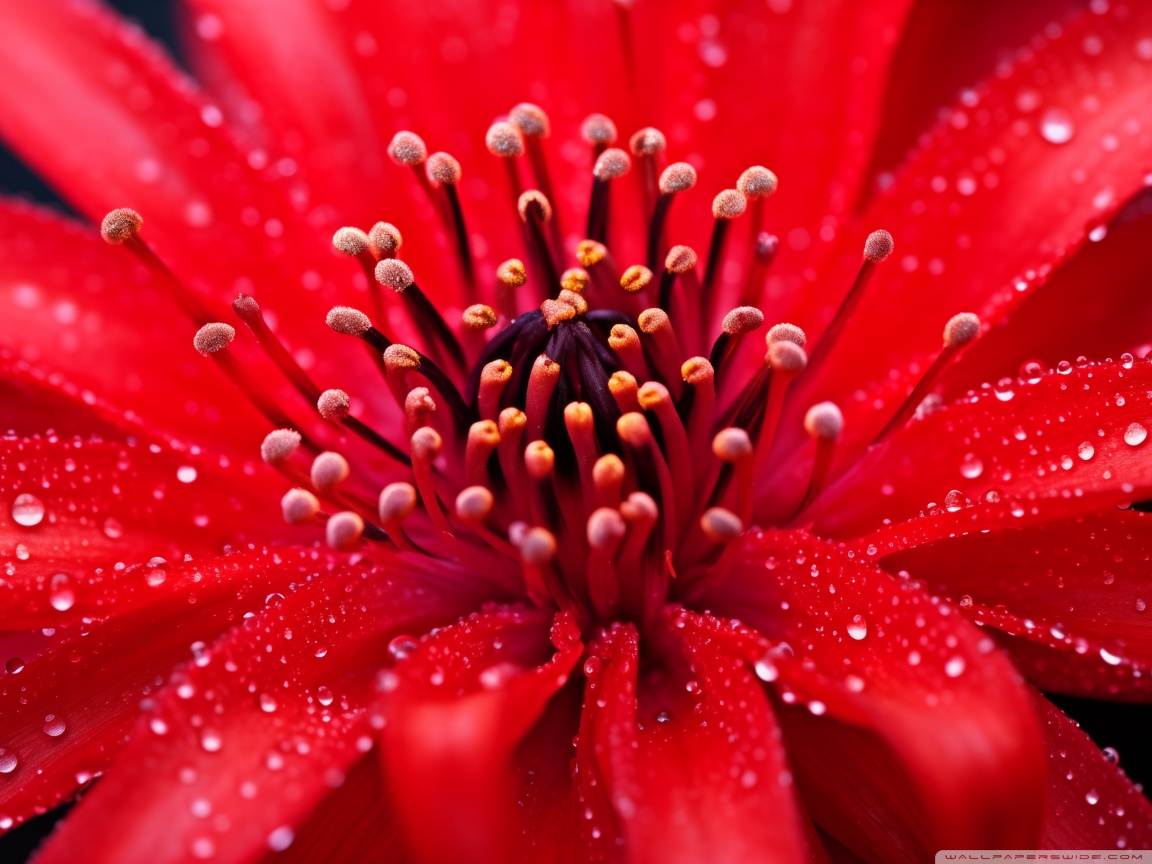 Download Delicate Drops on a Red Blossom 4K UHD Wallpaper