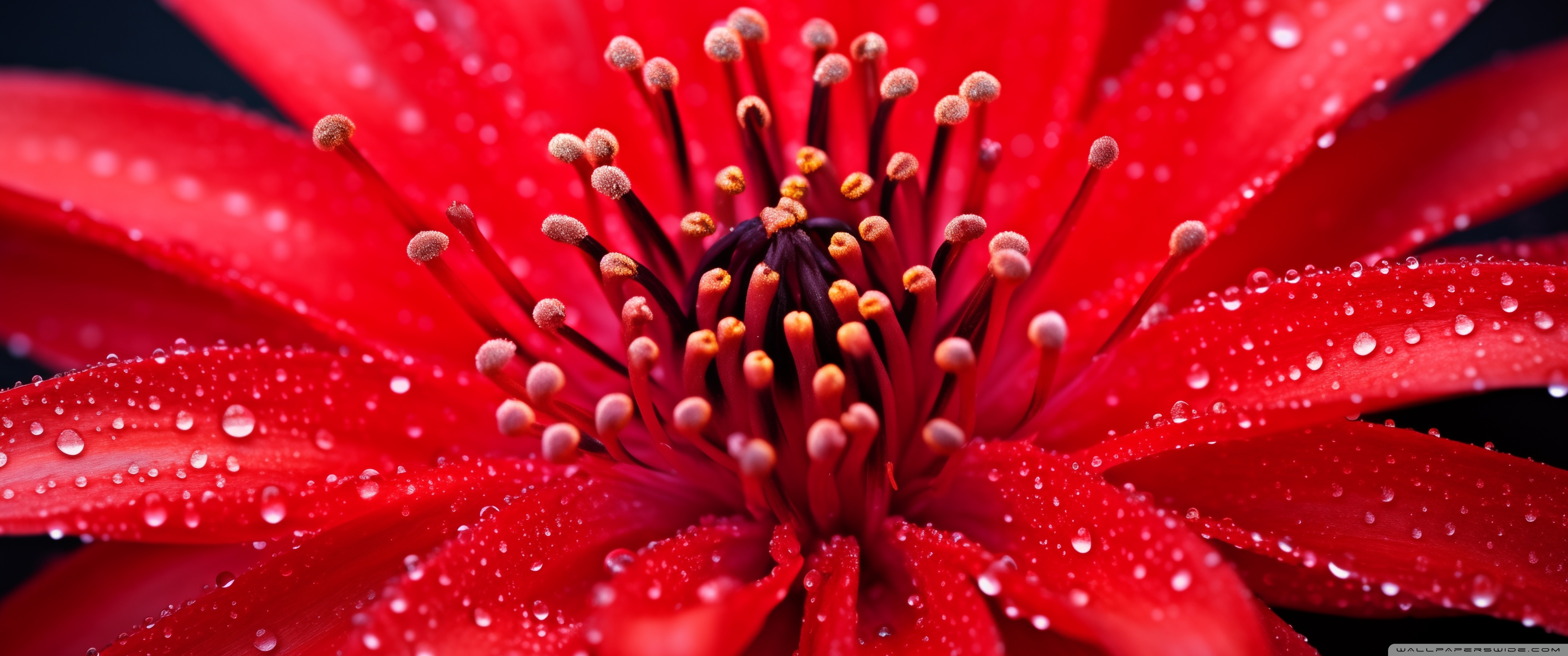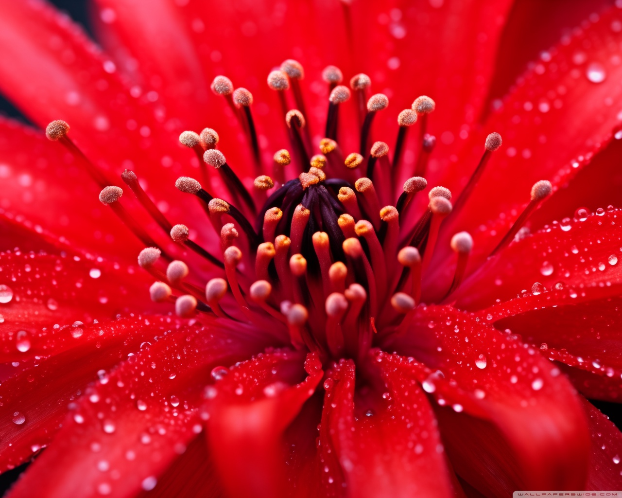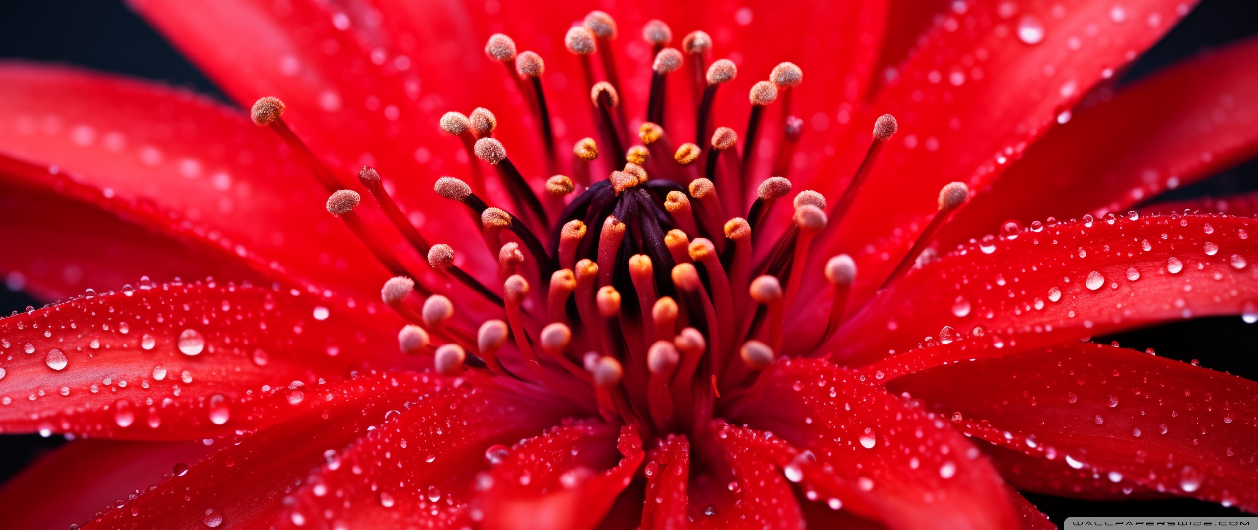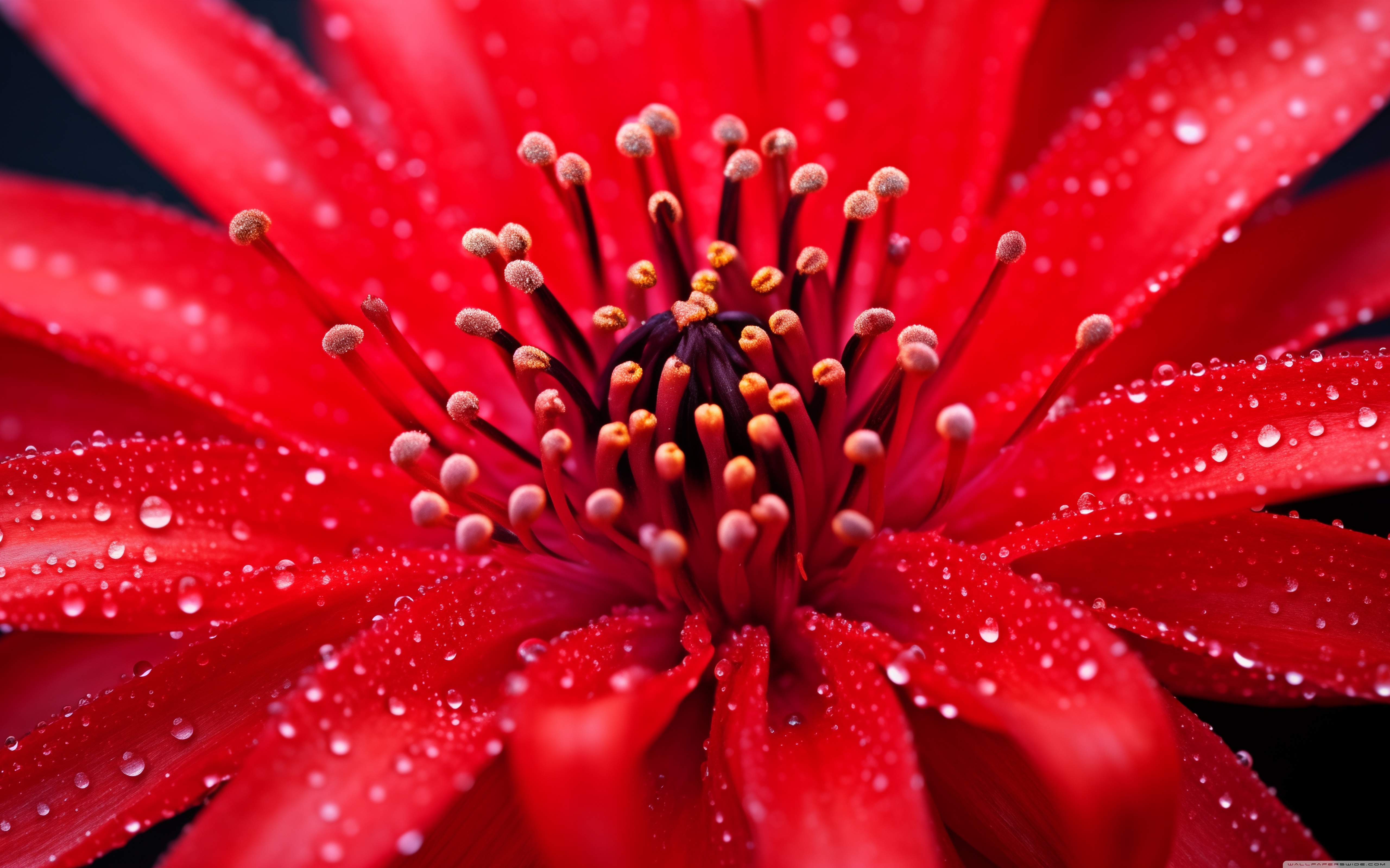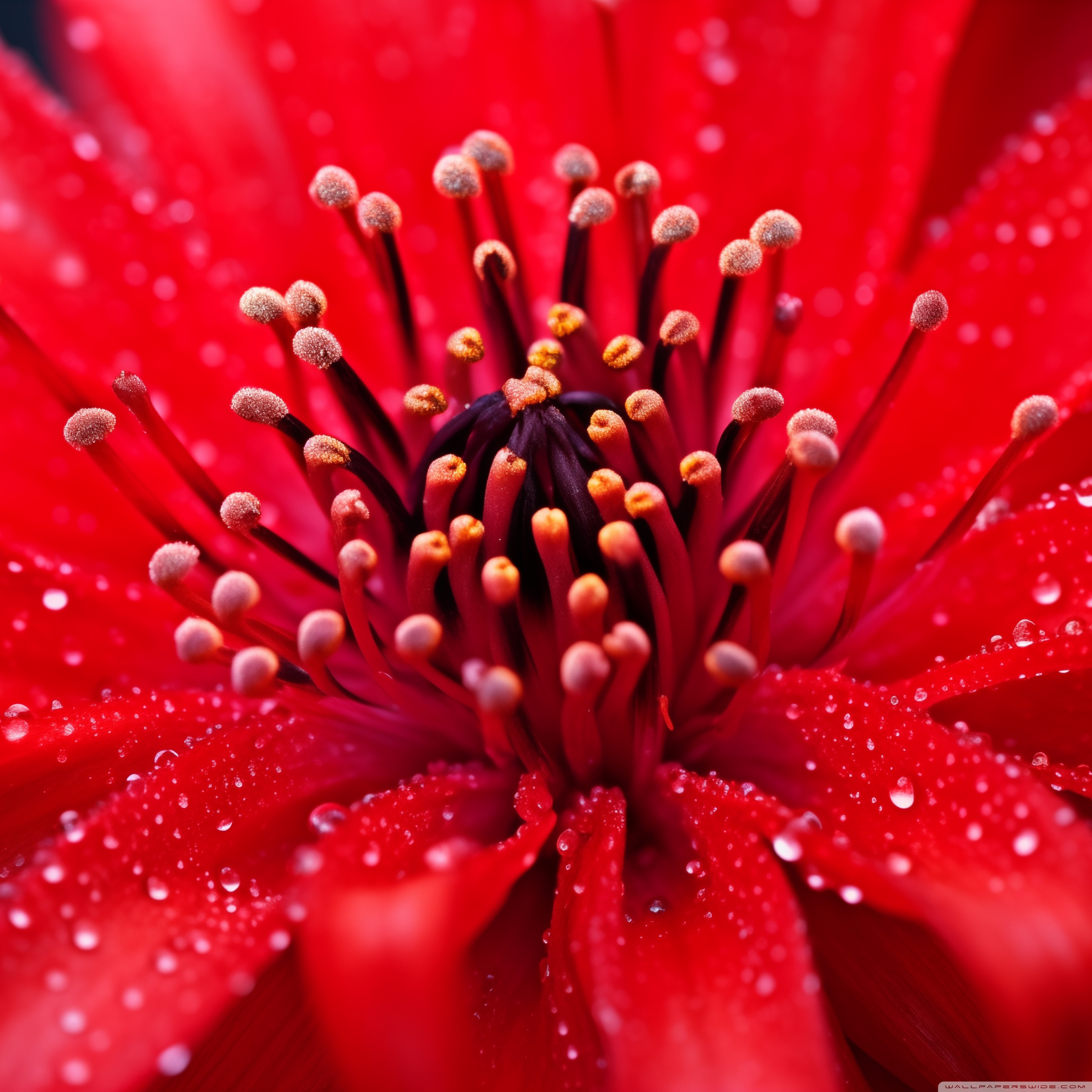 Download Delicate Drops on a Red Blossom 4K UHD Wallpaper