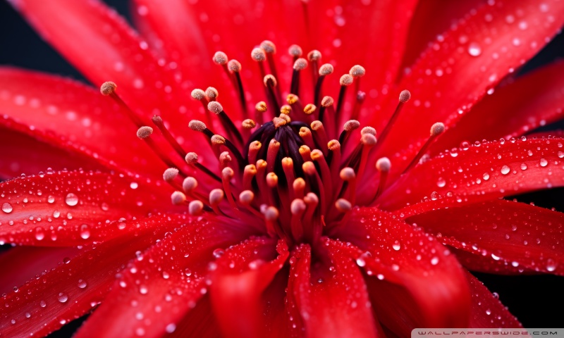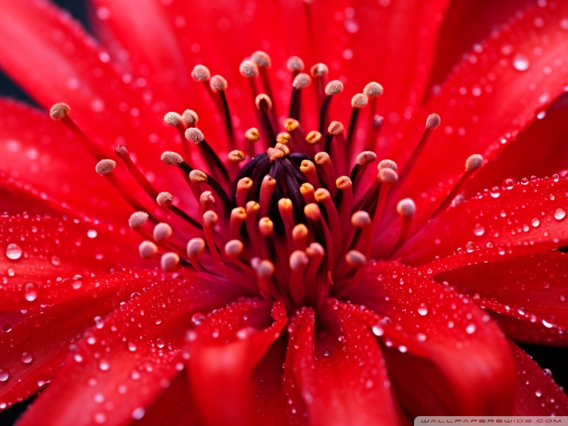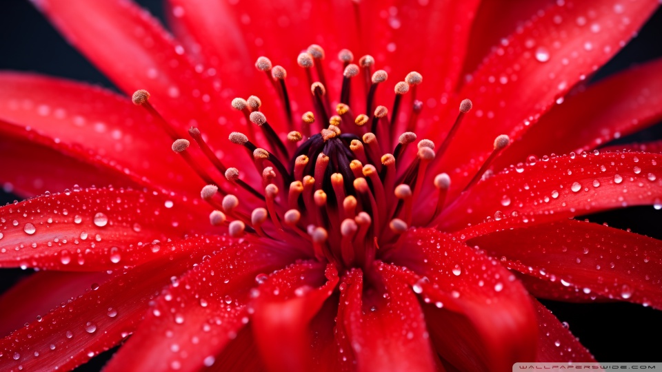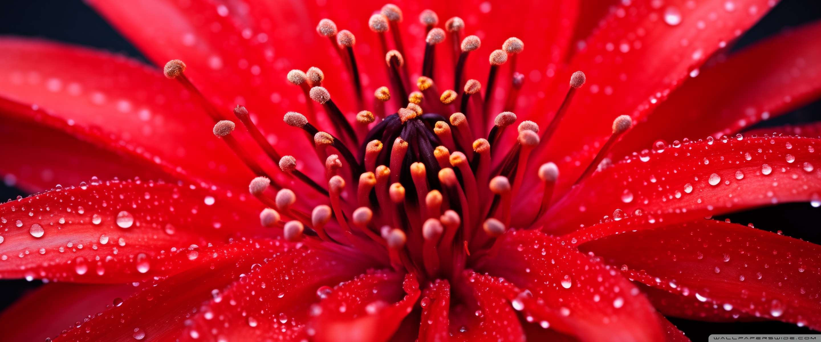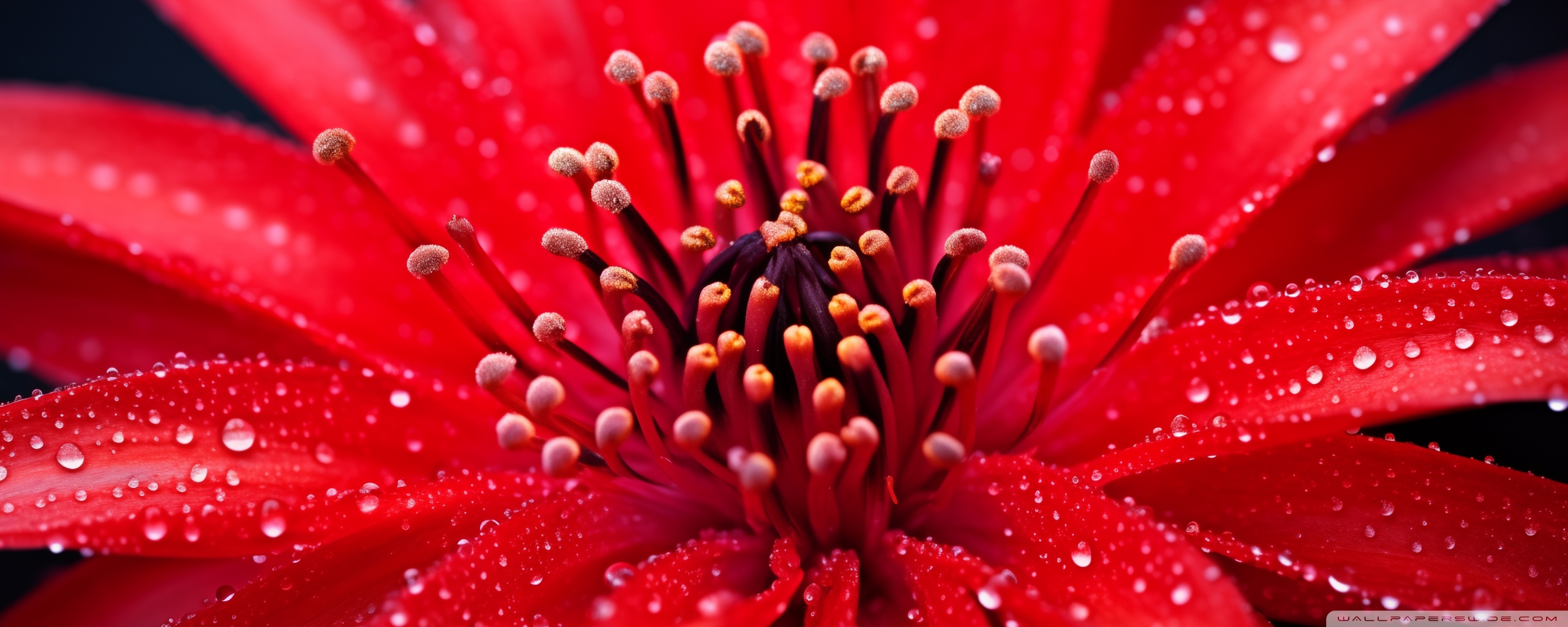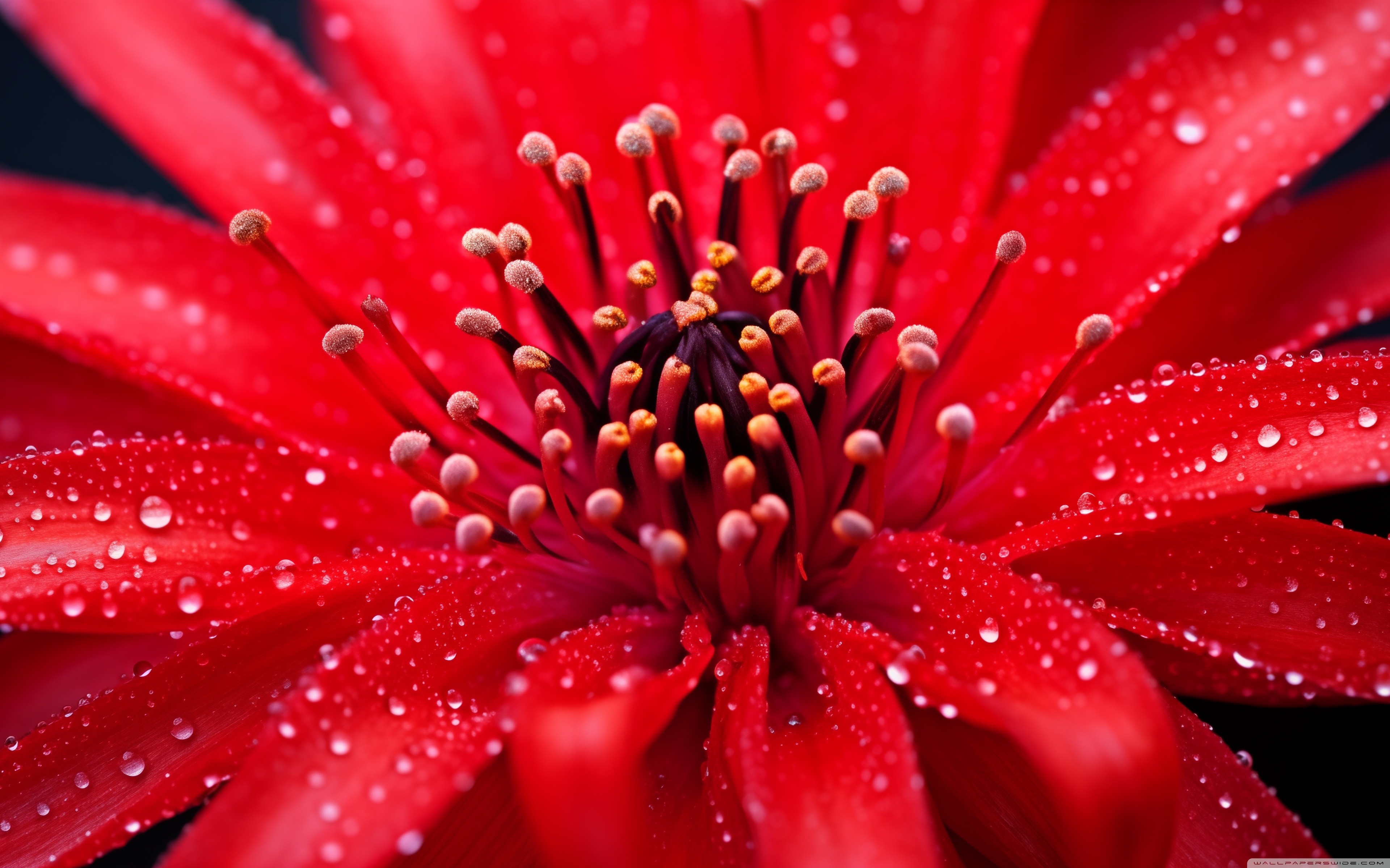 Download Delicate Drops on a Red Blossom 4K UHD Wallpaper