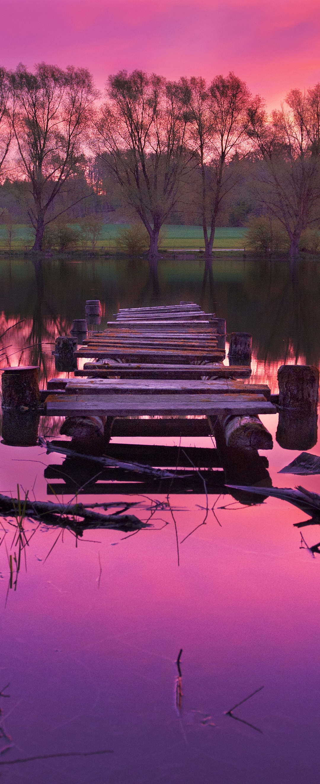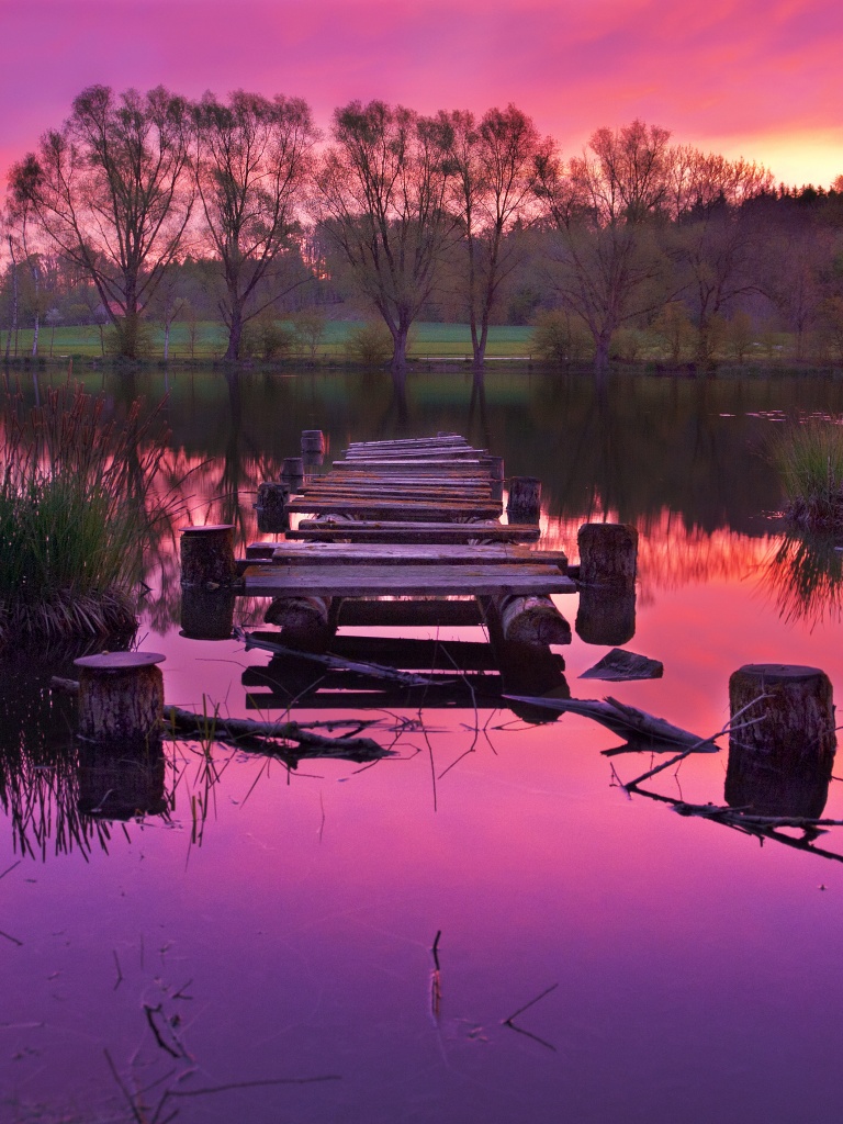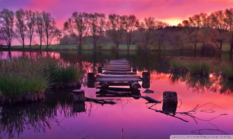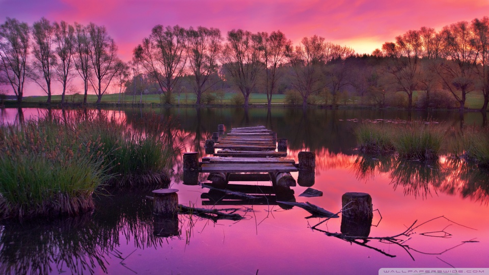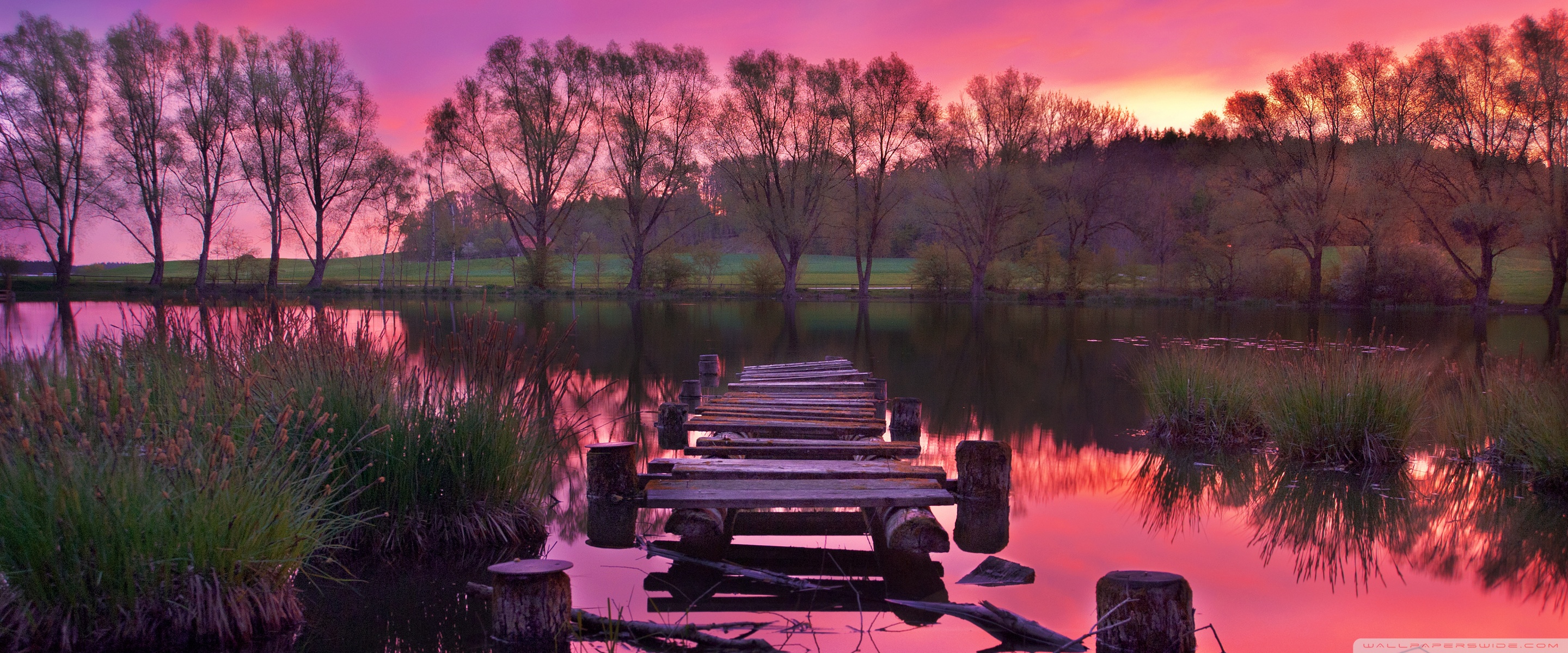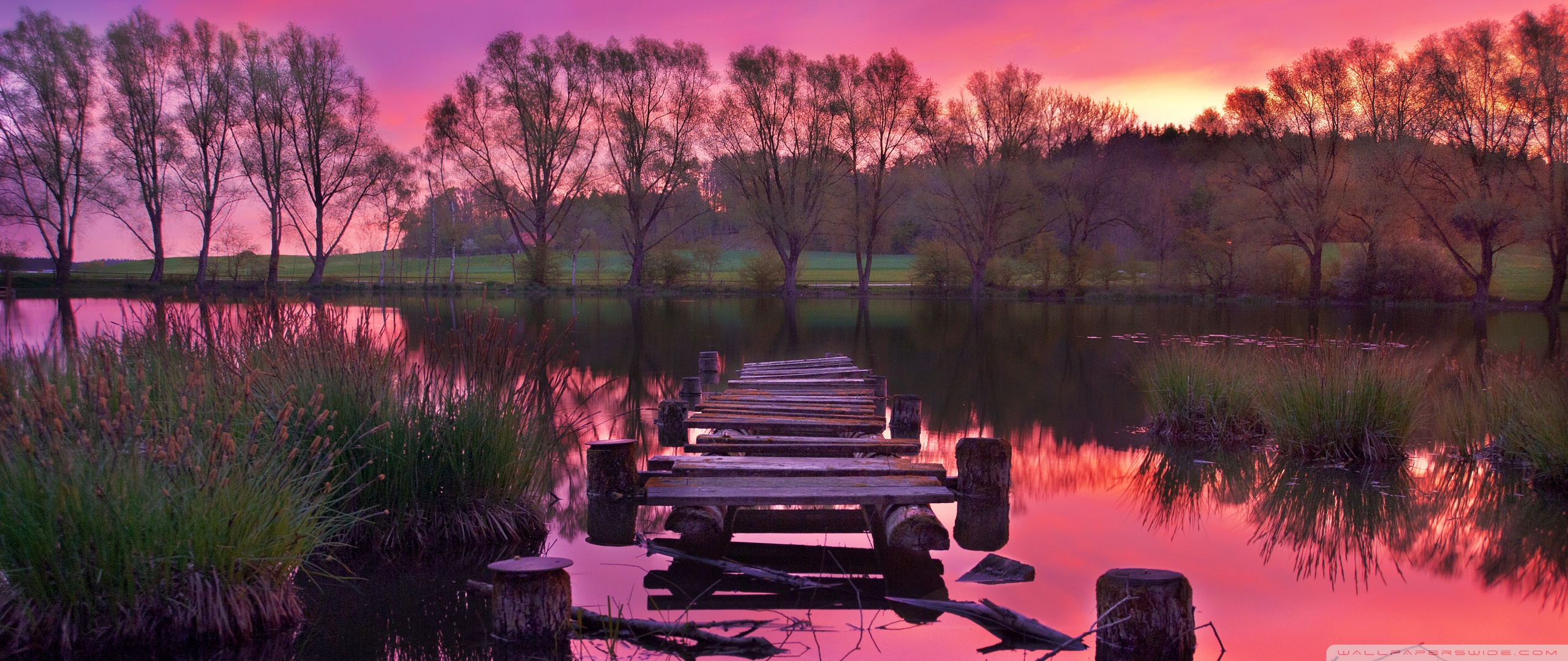 Download Dock, Lake, Purple Sunset Scenery 4K UHD Wallpaper