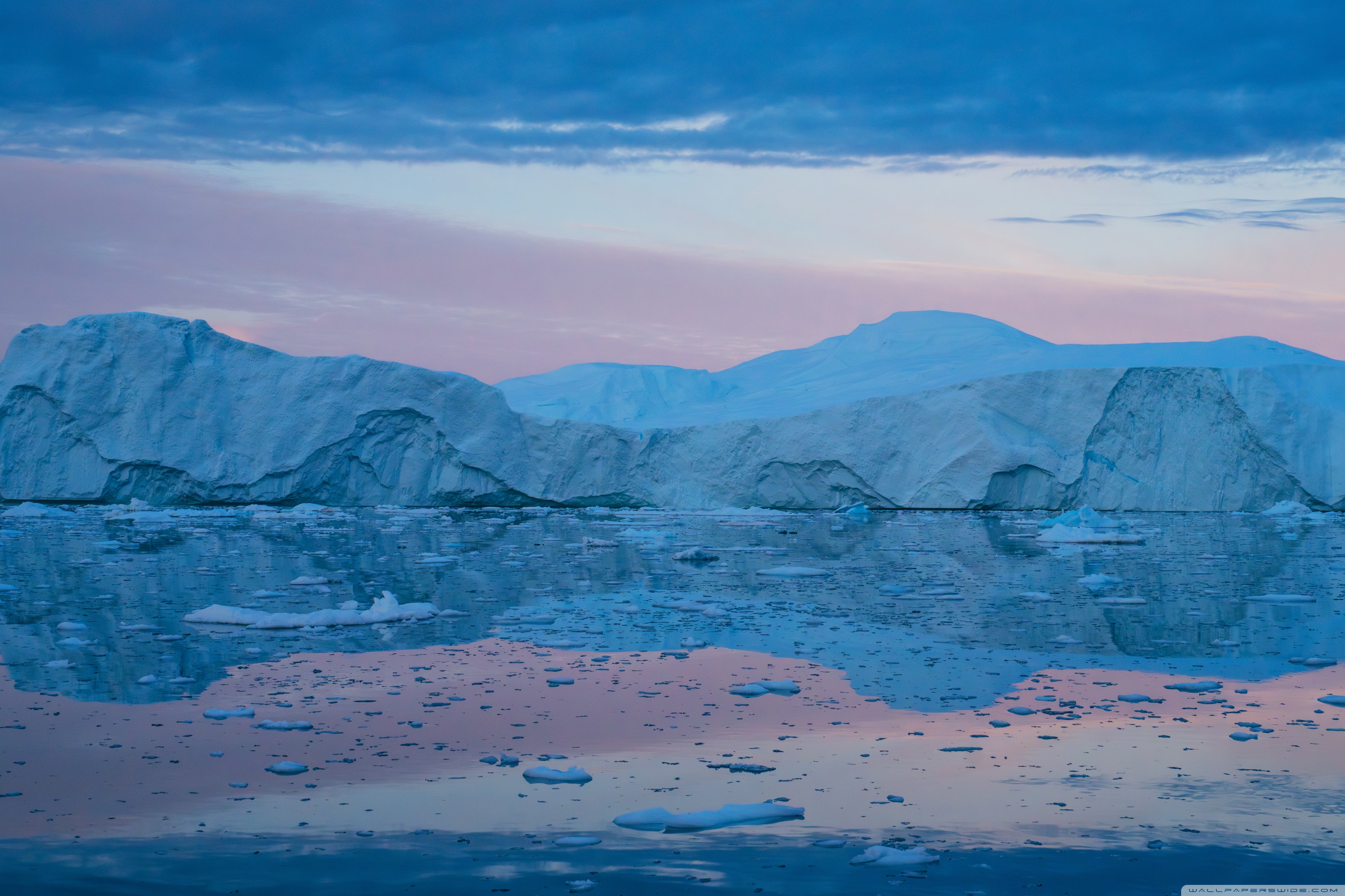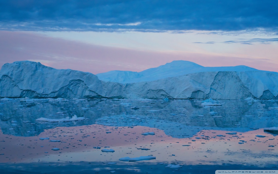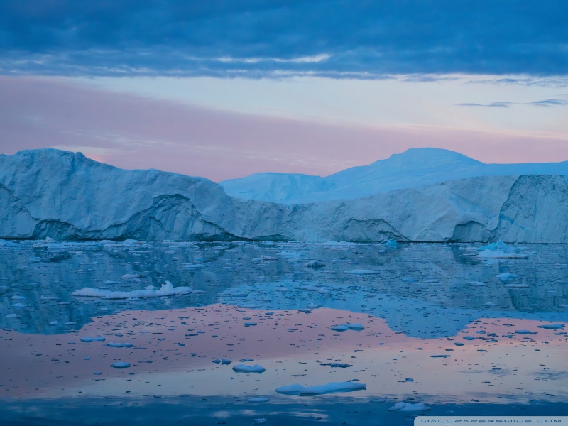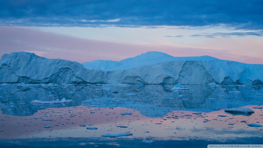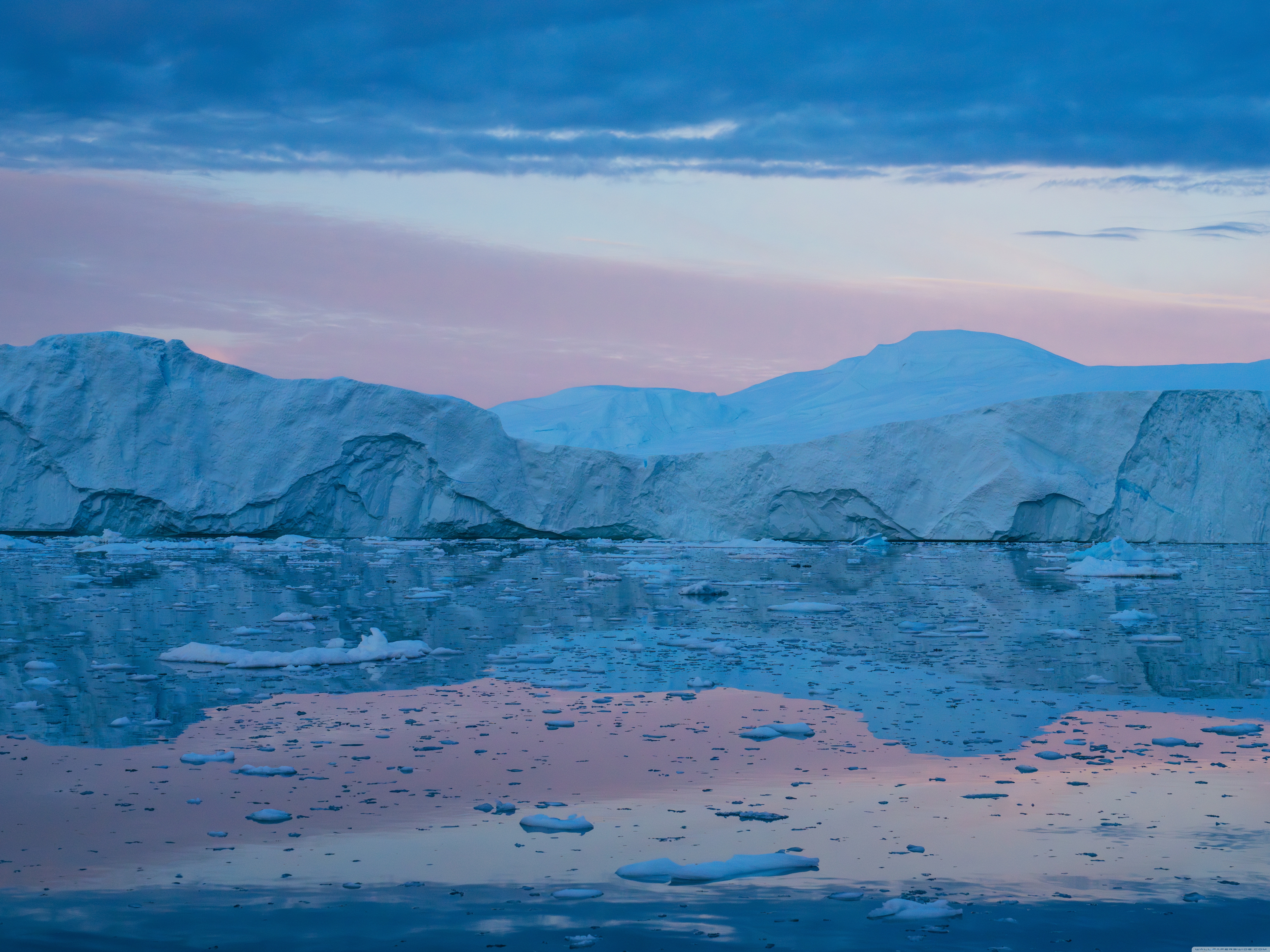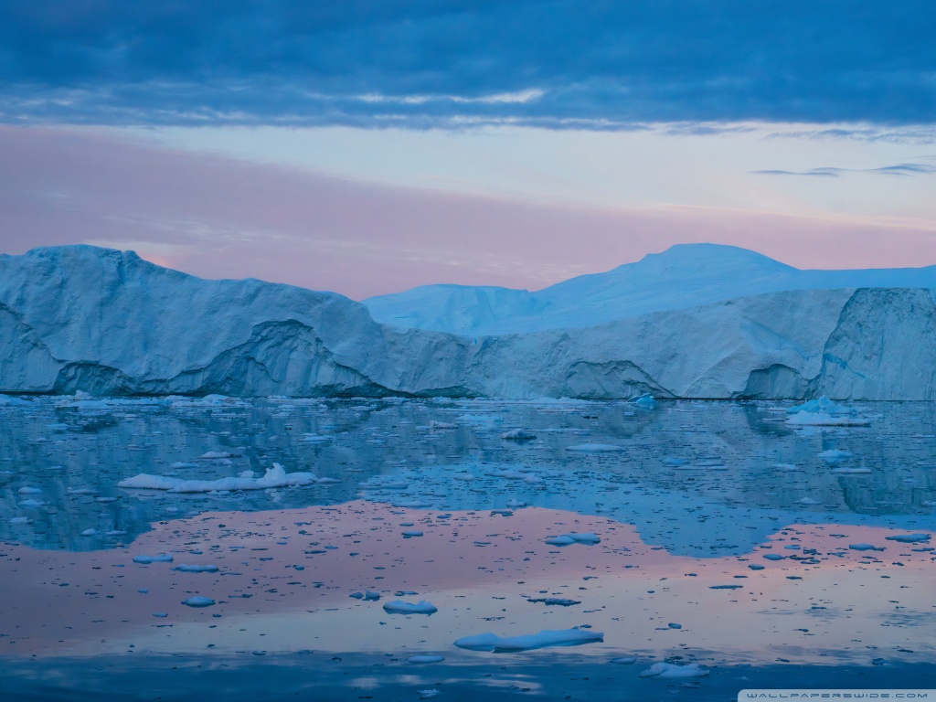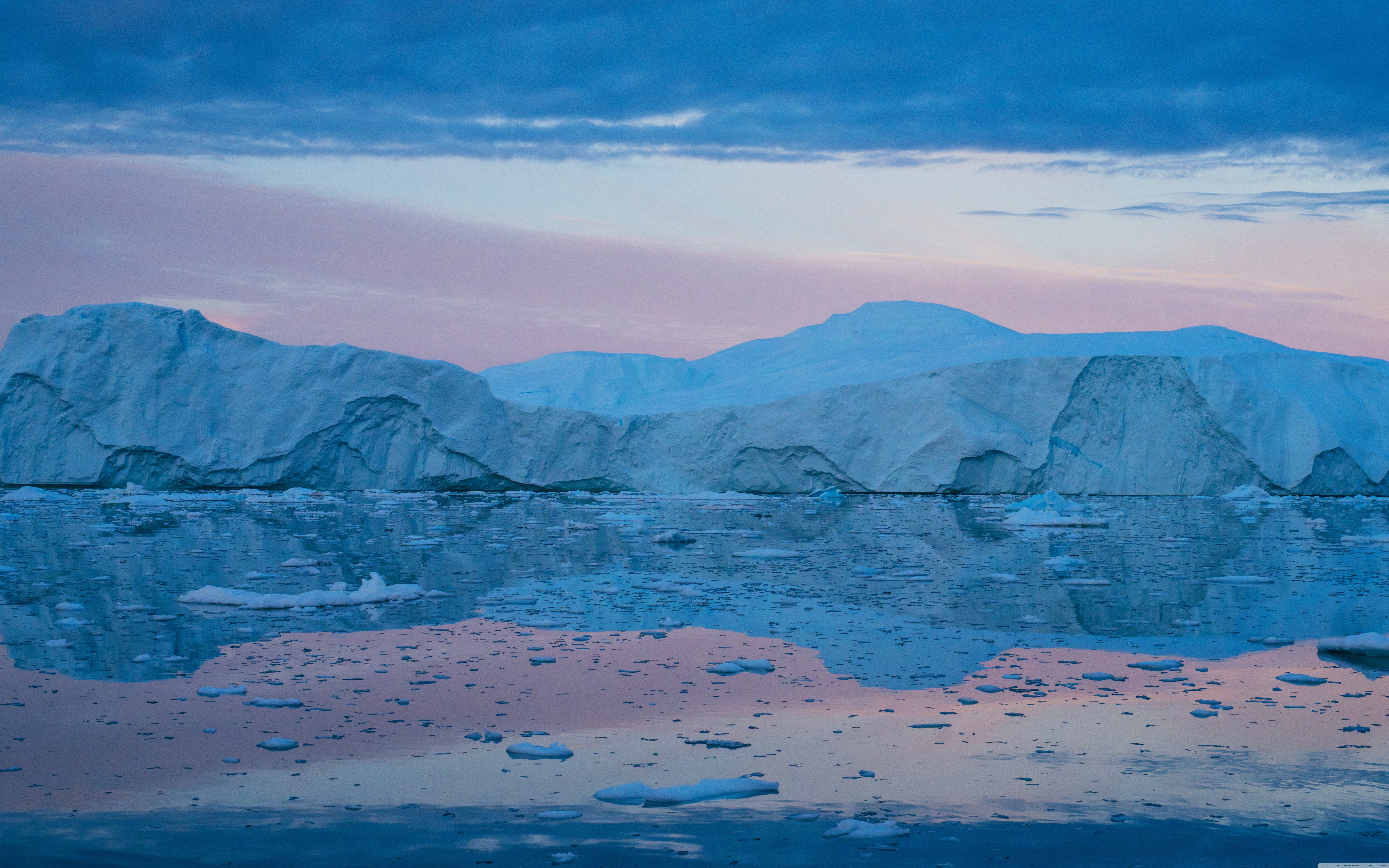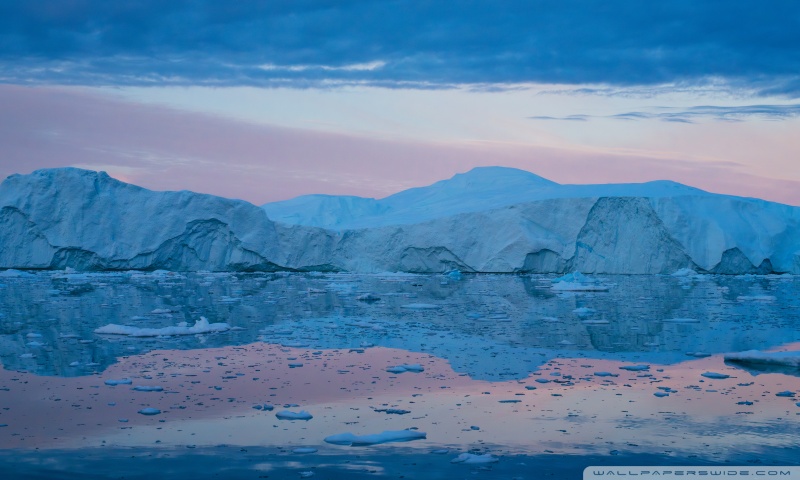 Download Eqi Greenland Icebergs Reflections on Water 4K UHD Wallpaper