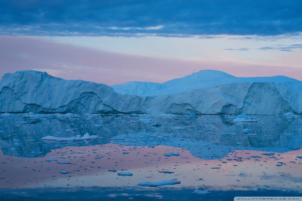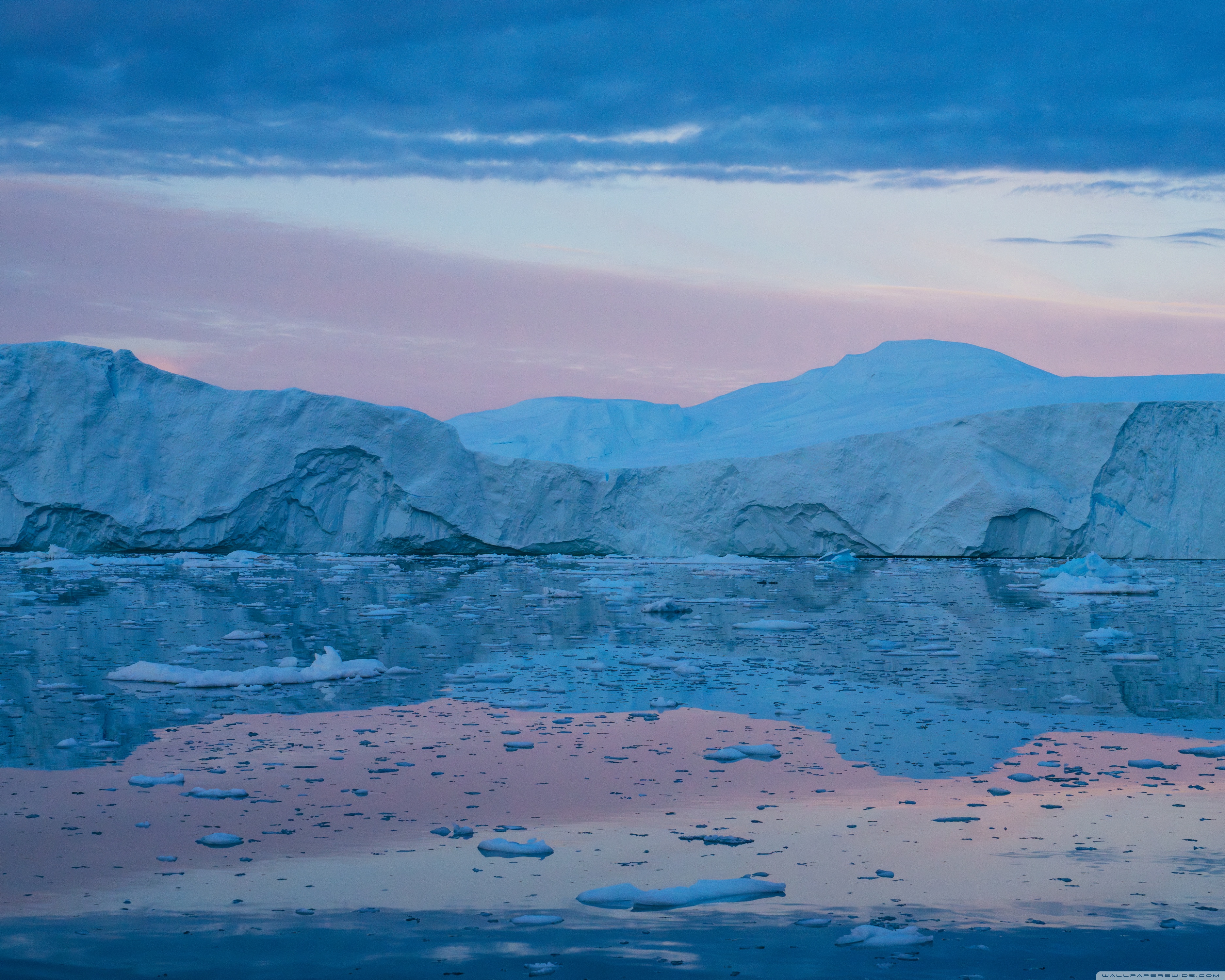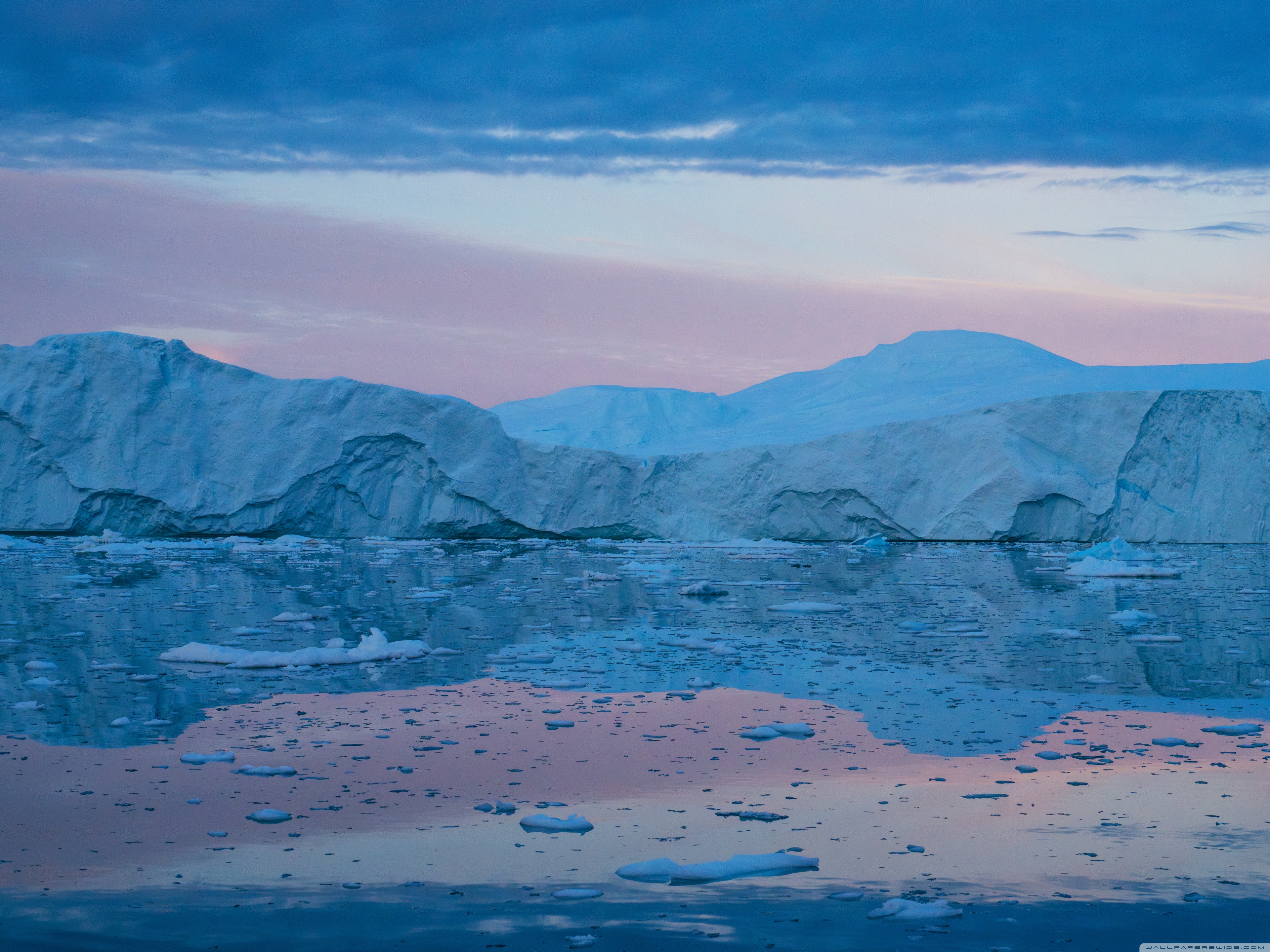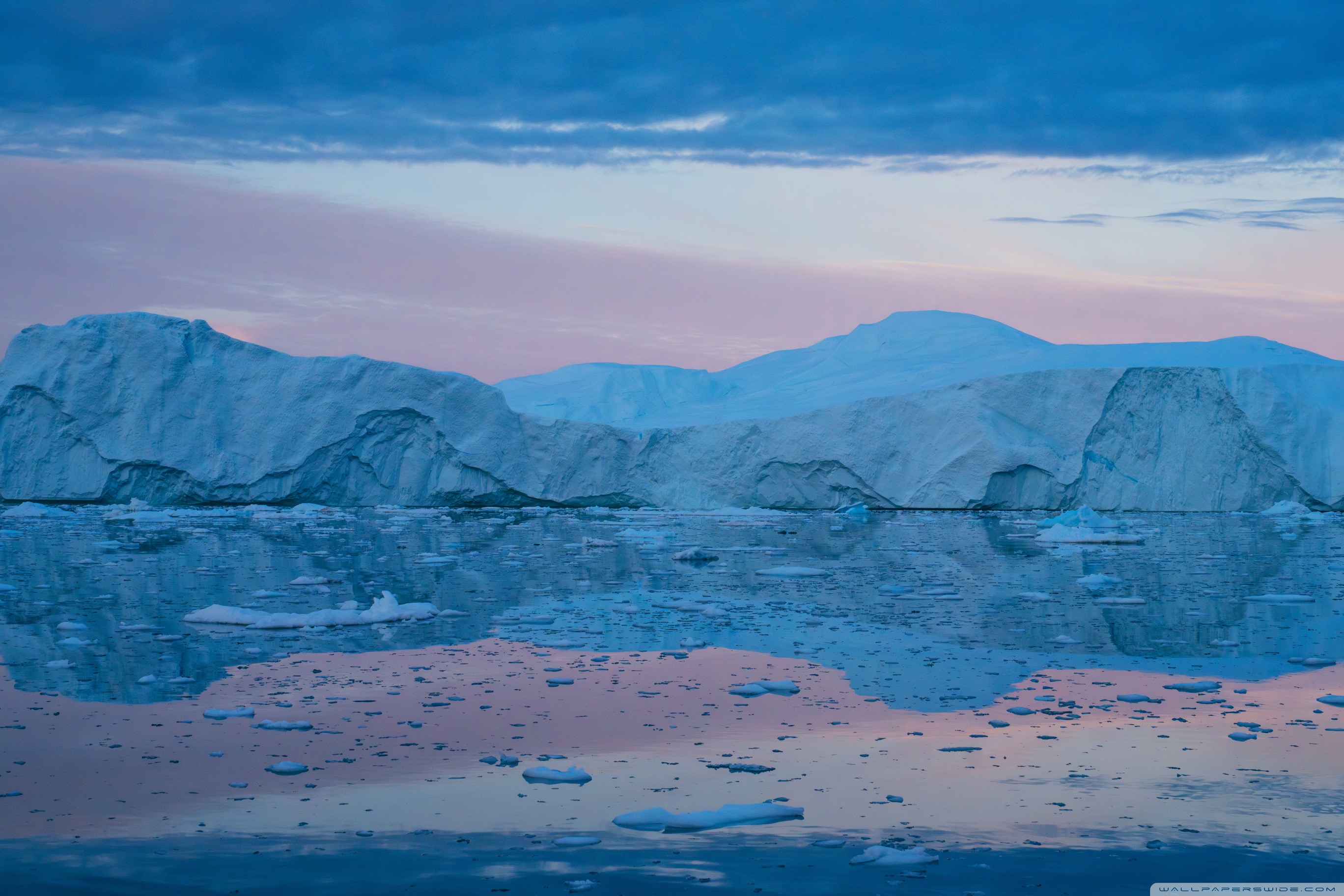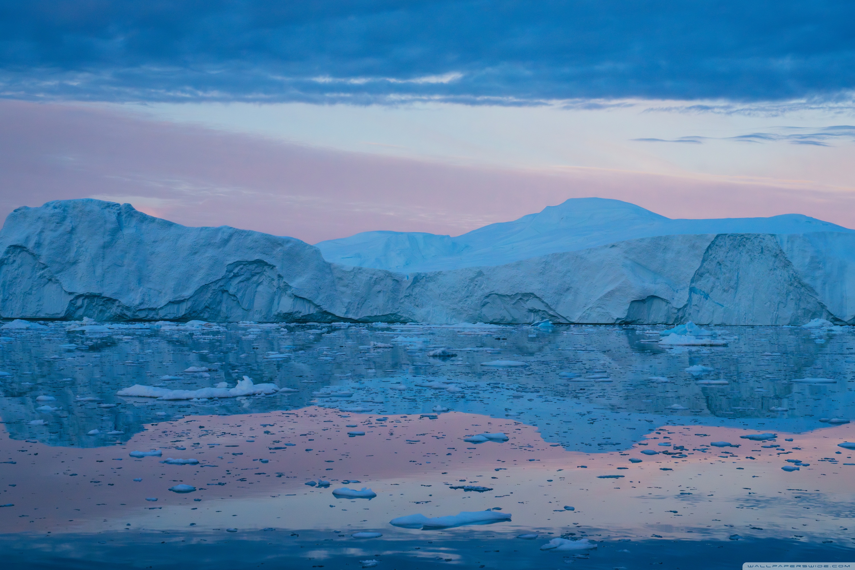 Download Eqi Greenland Icebergs Reflections on Water 4K UHD Wallpaper