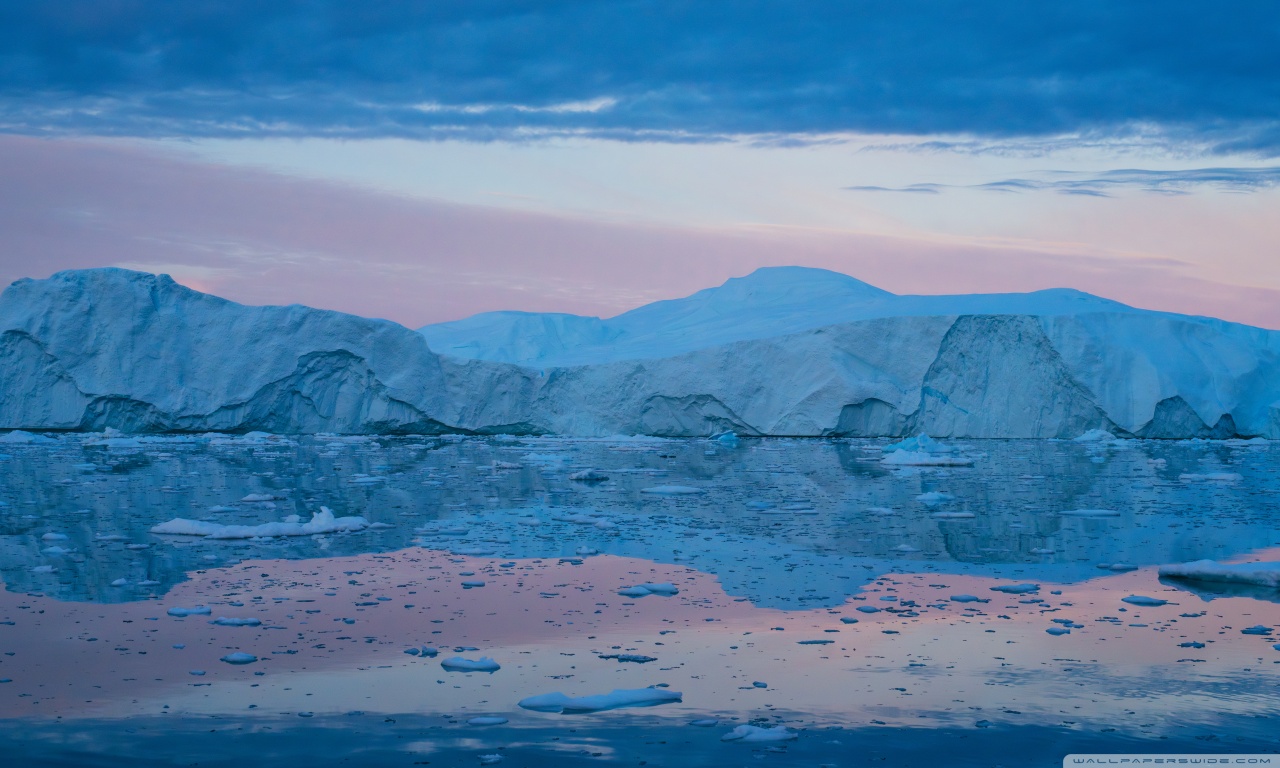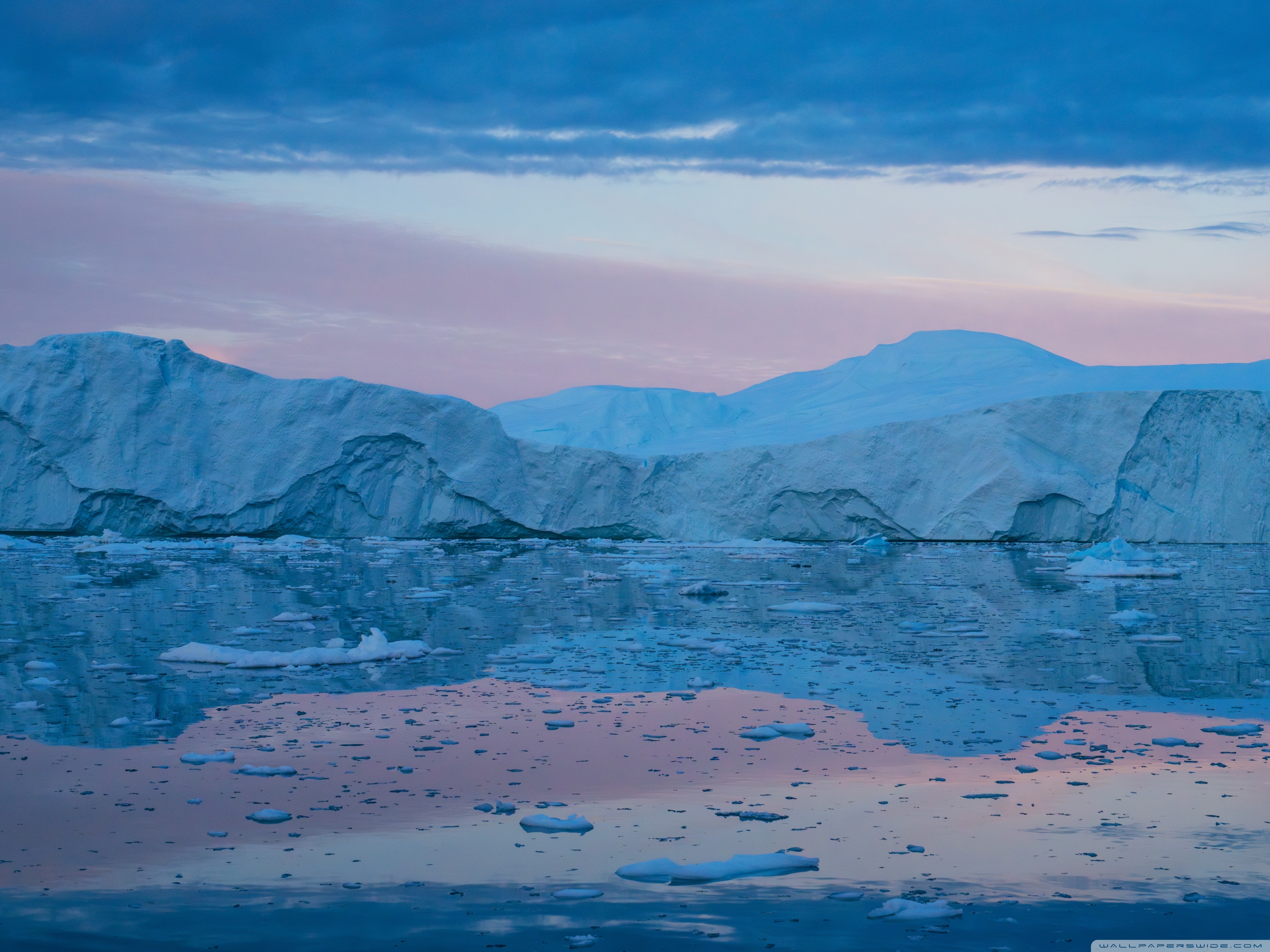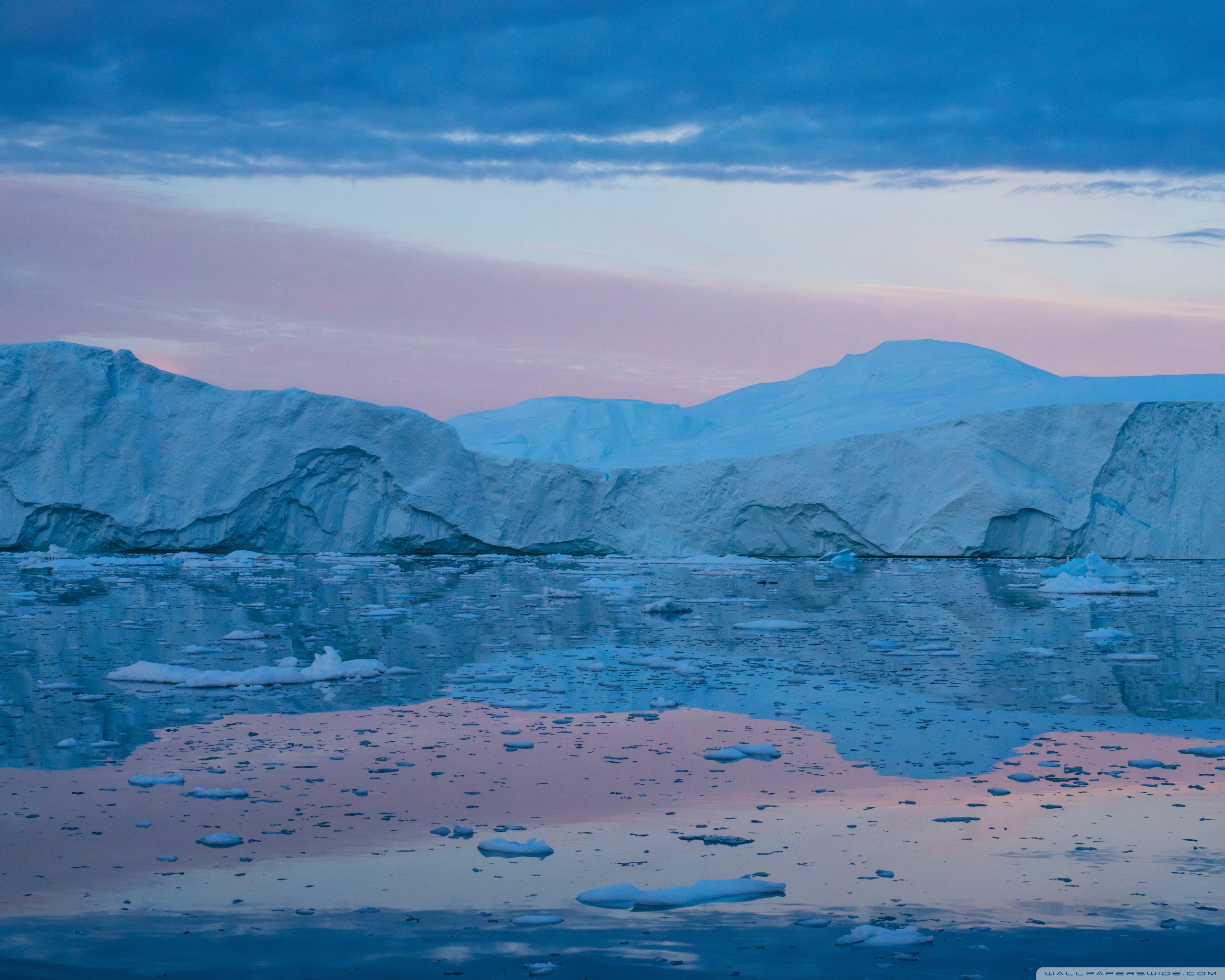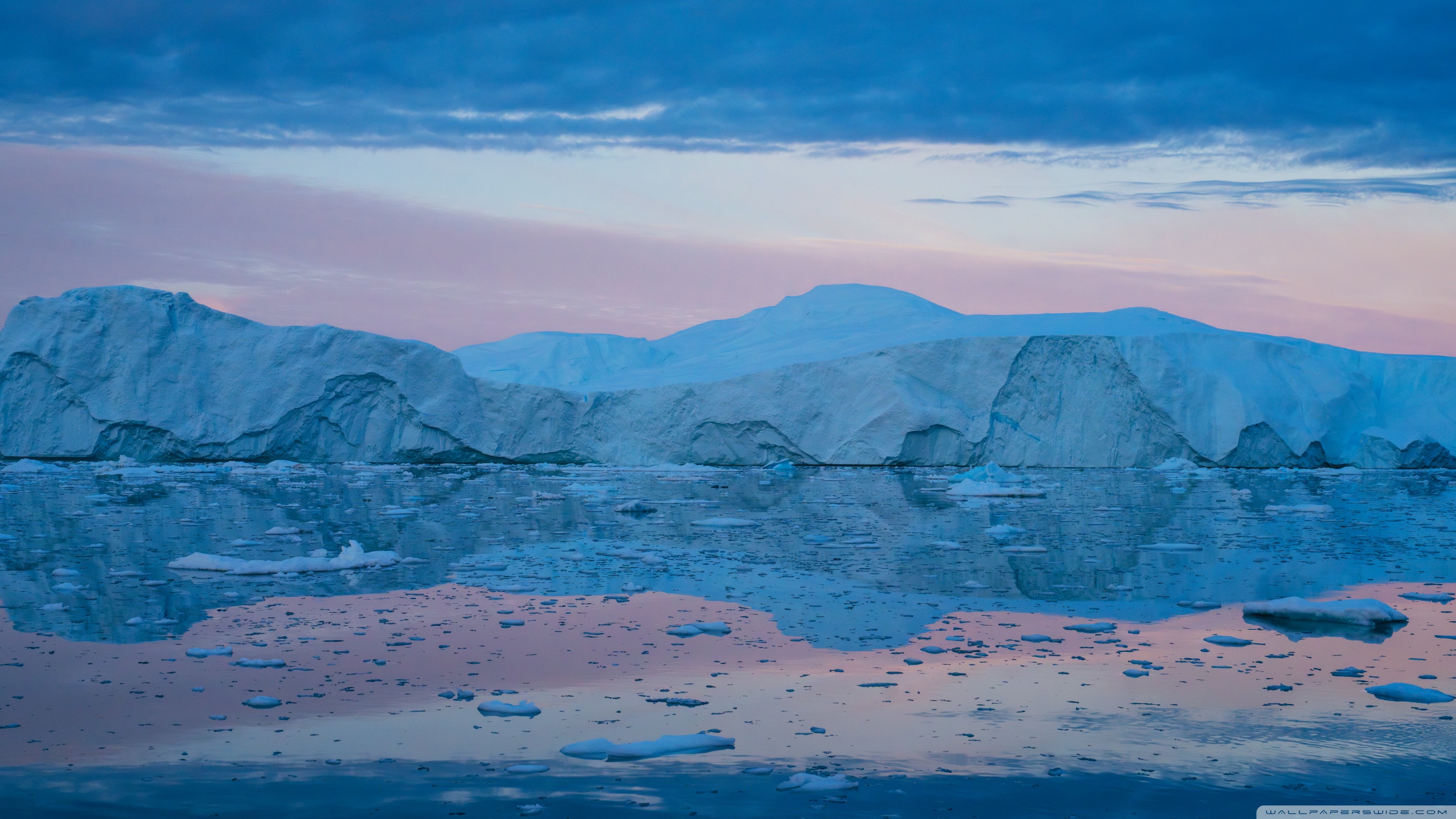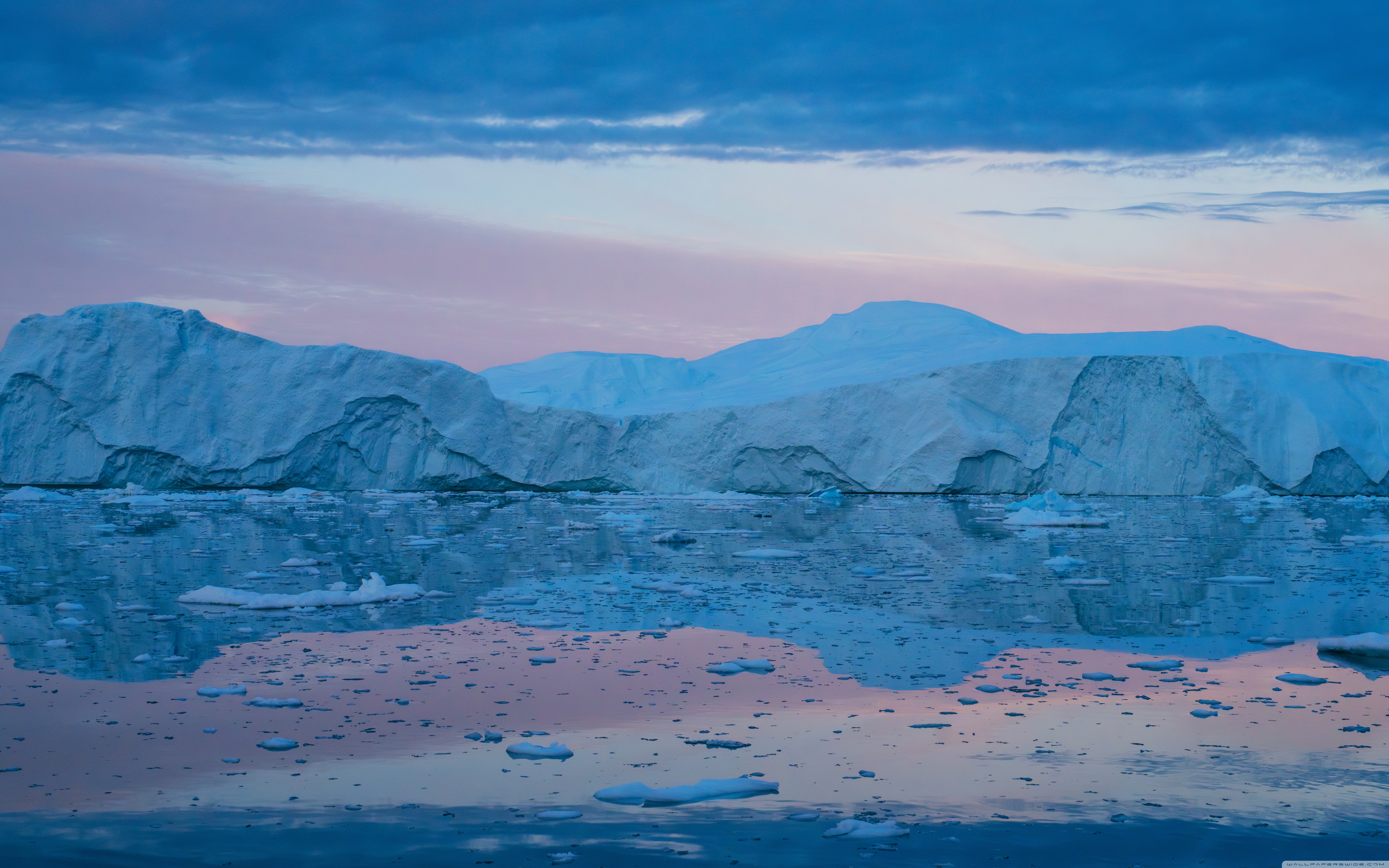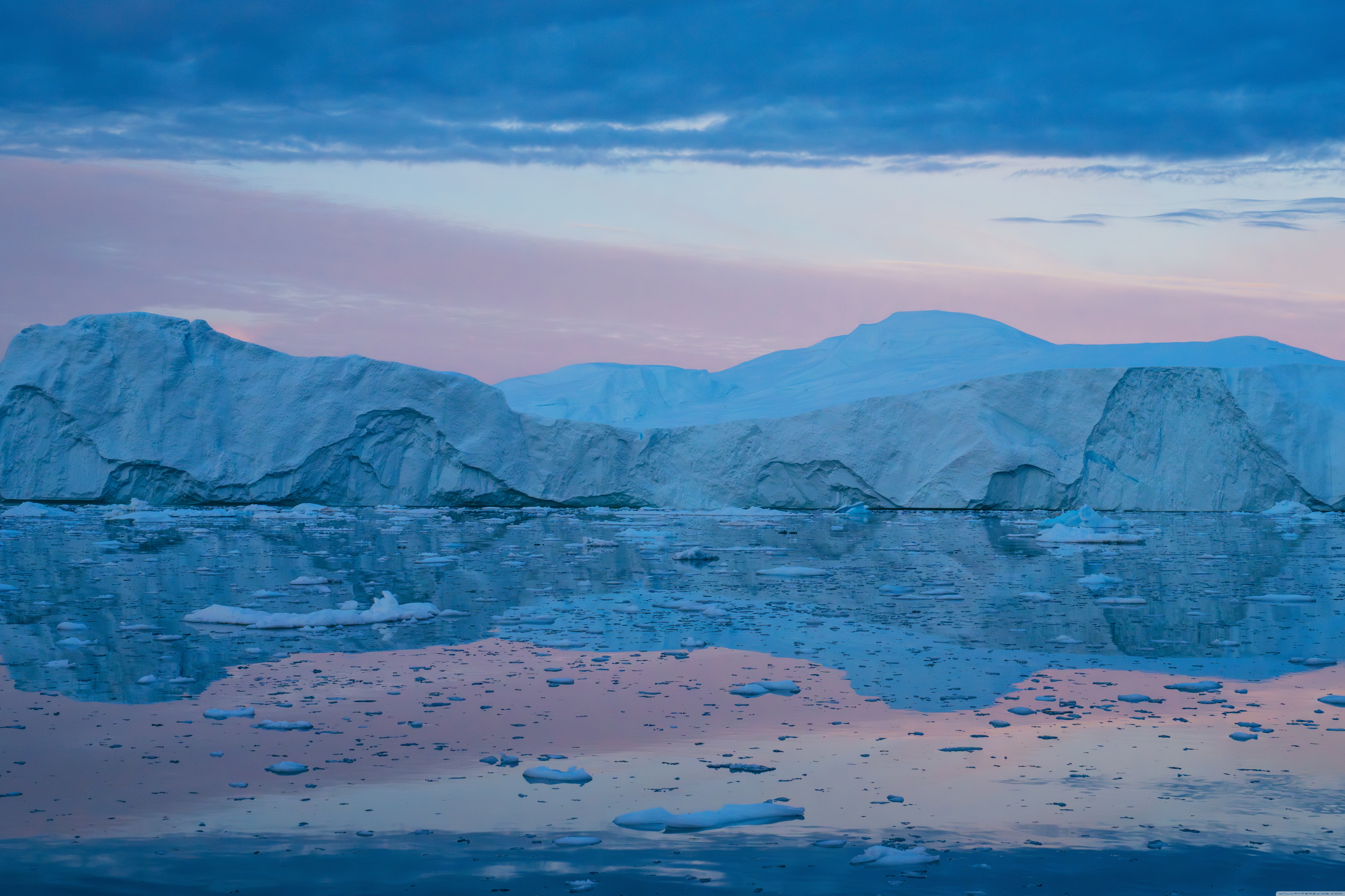 Download Eqi Greenland Icebergs Reflections on Water 4K UHD Wallpaper
