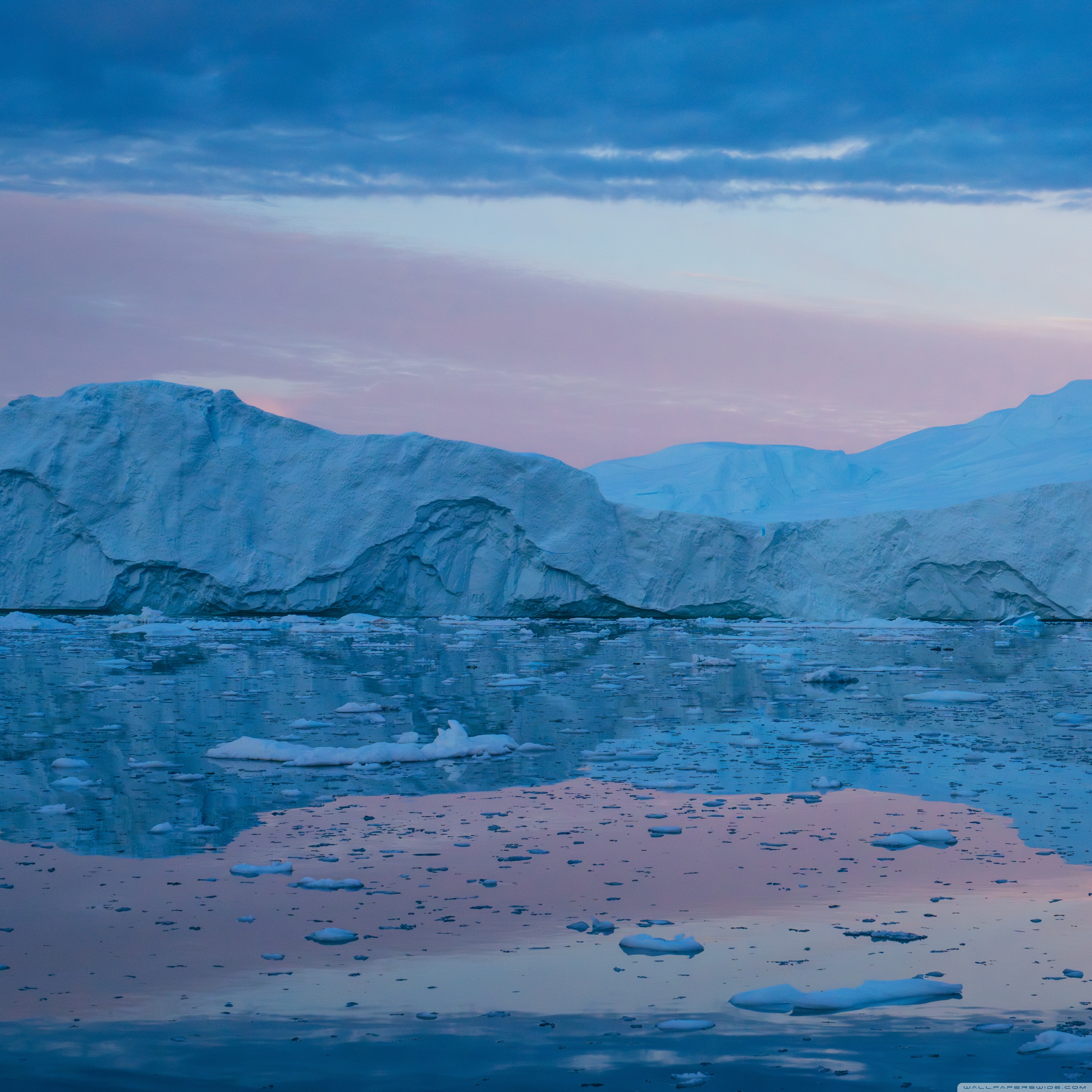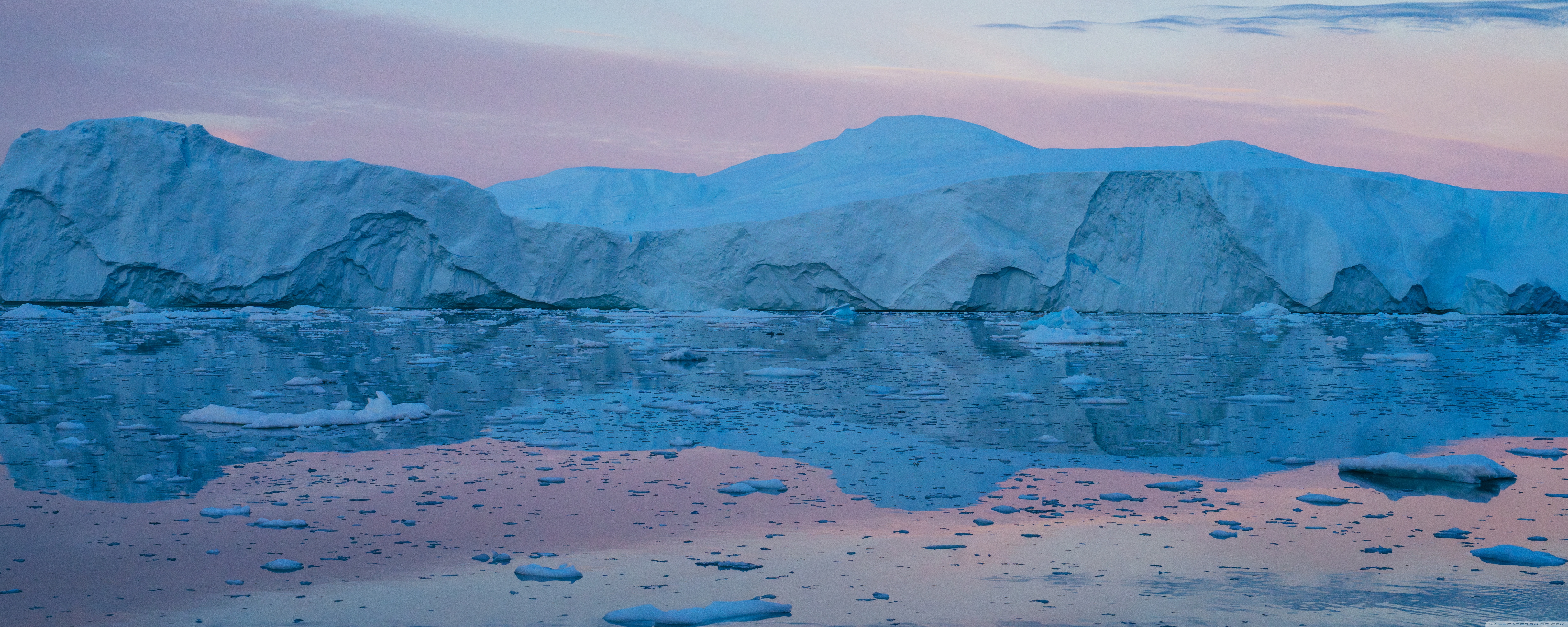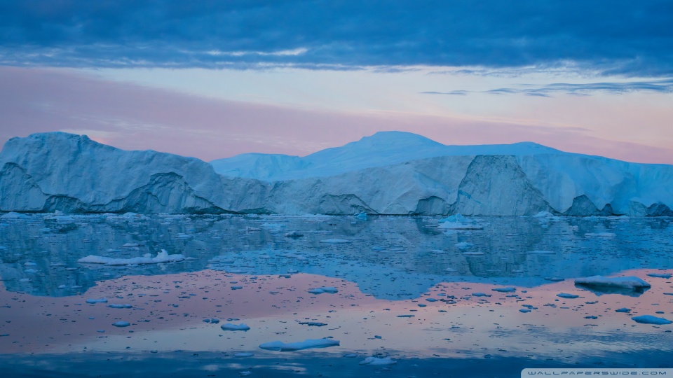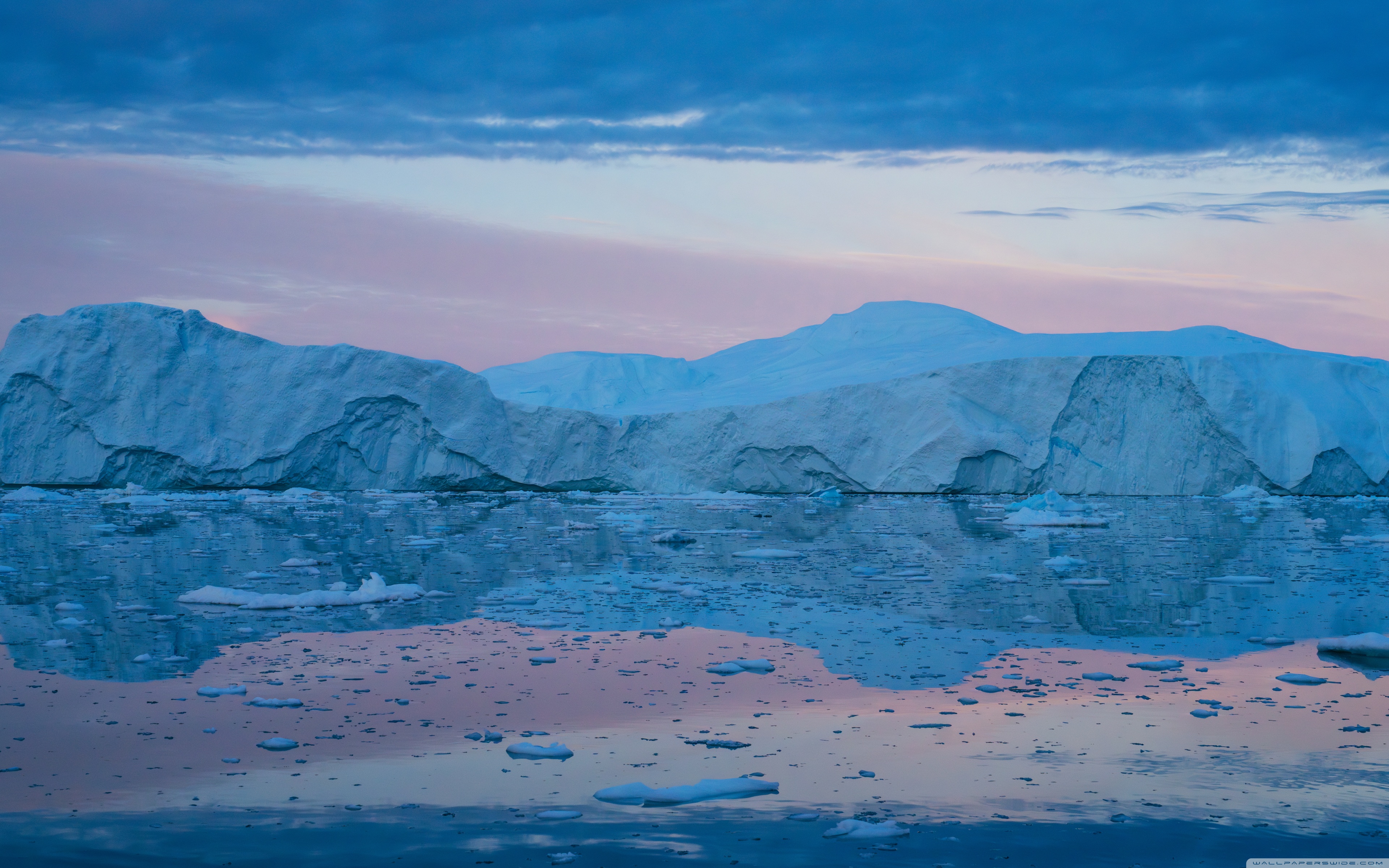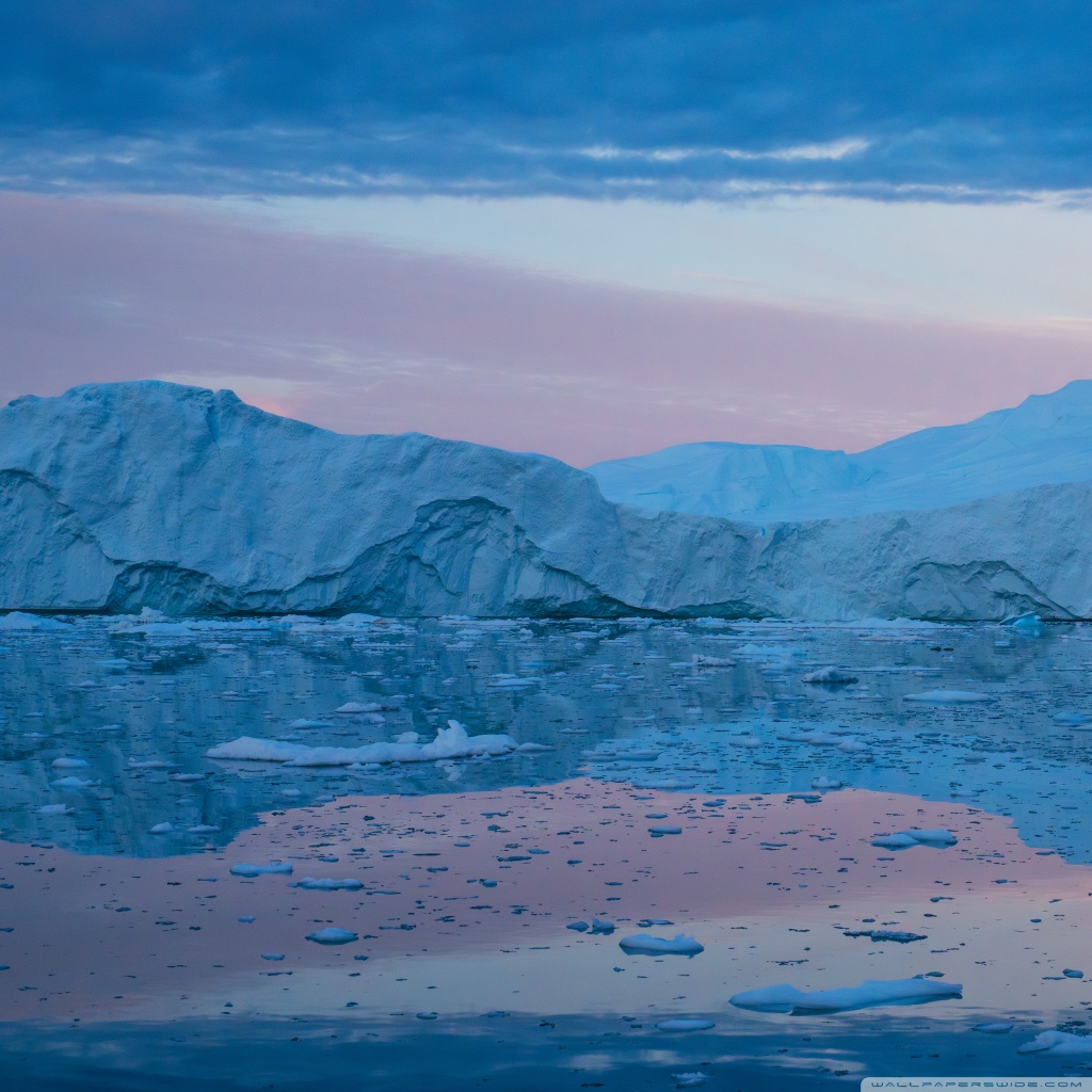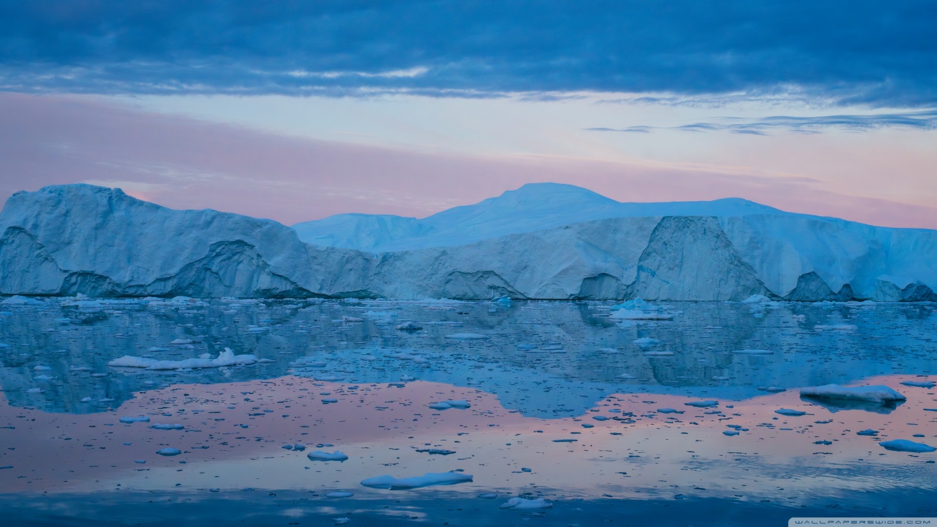 Download Eqi Greenland Icebergs Reflections on Water 4K UHD Wallpaper