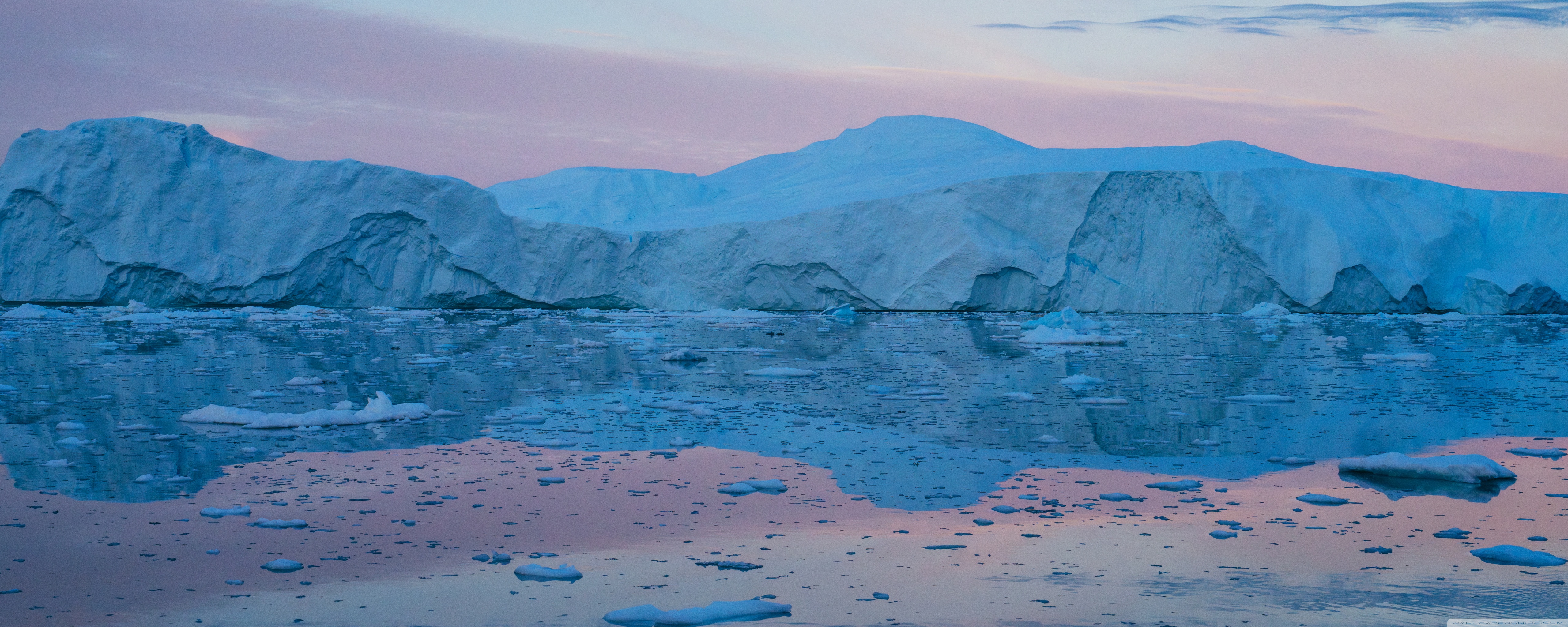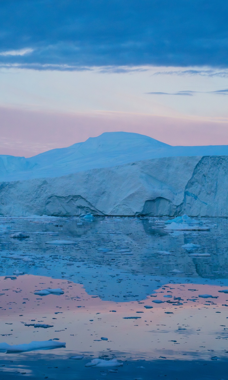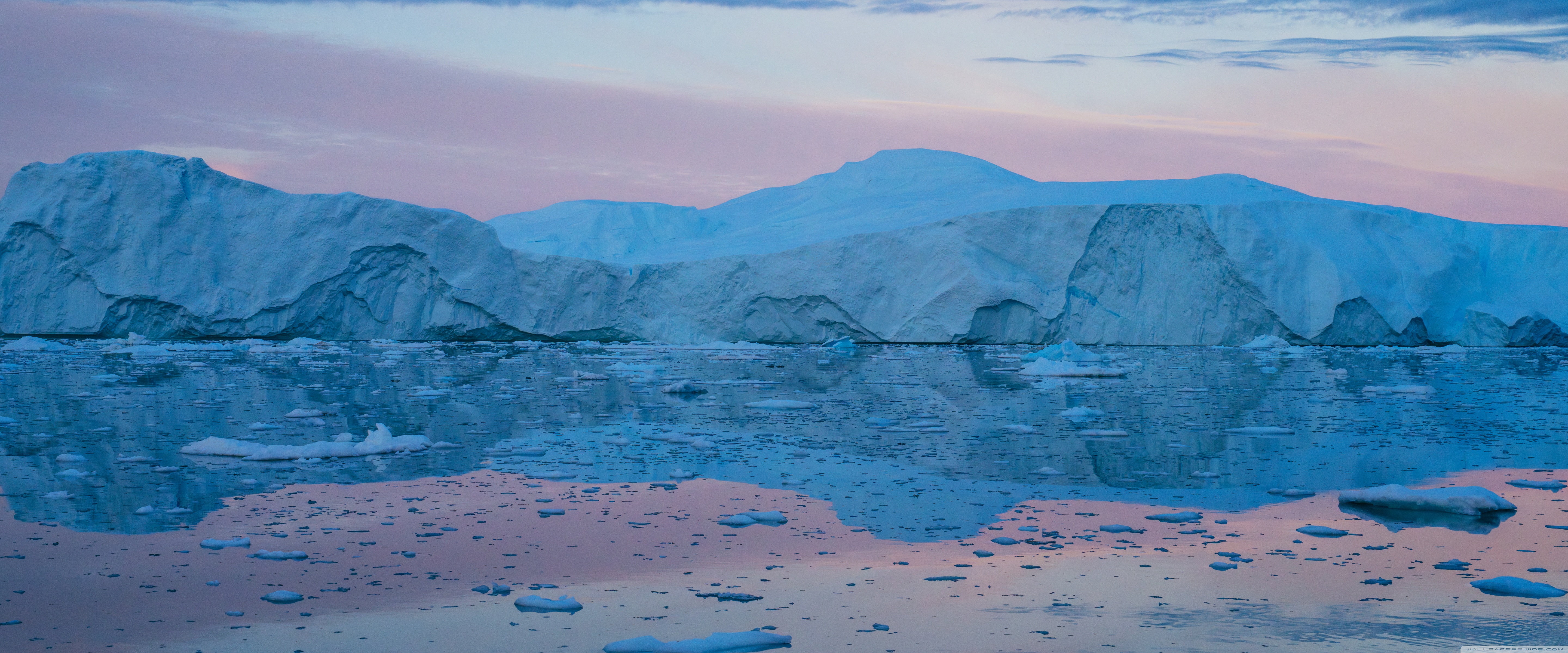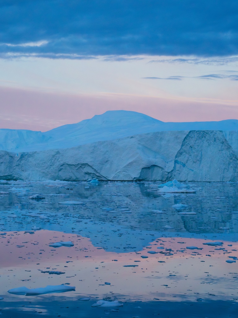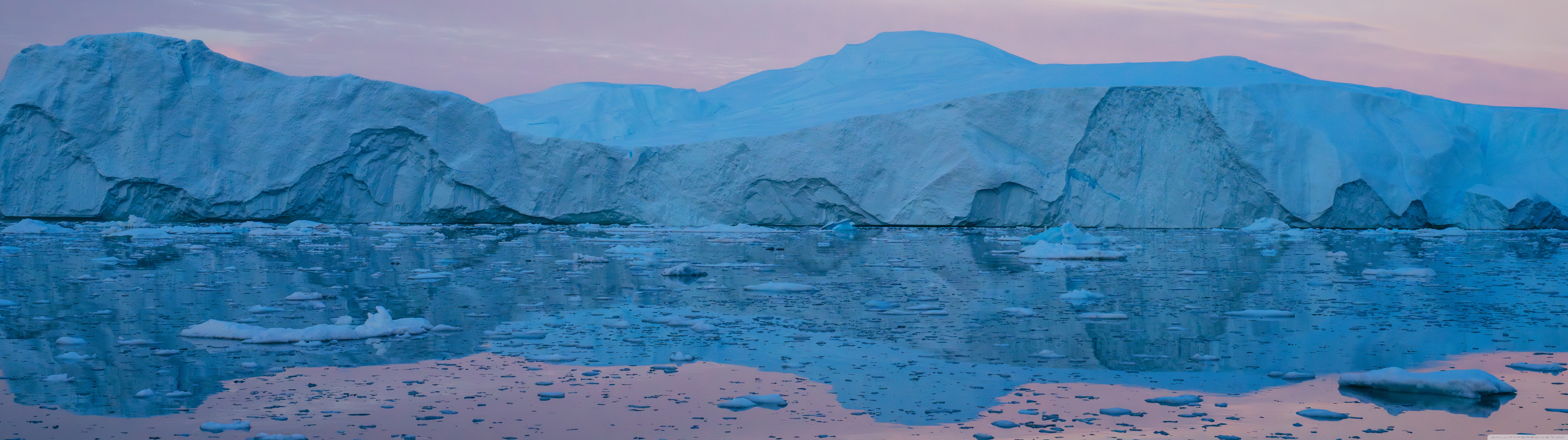 Download Eqi Greenland Icebergs Reflections on Water 4K UHD Wallpaper