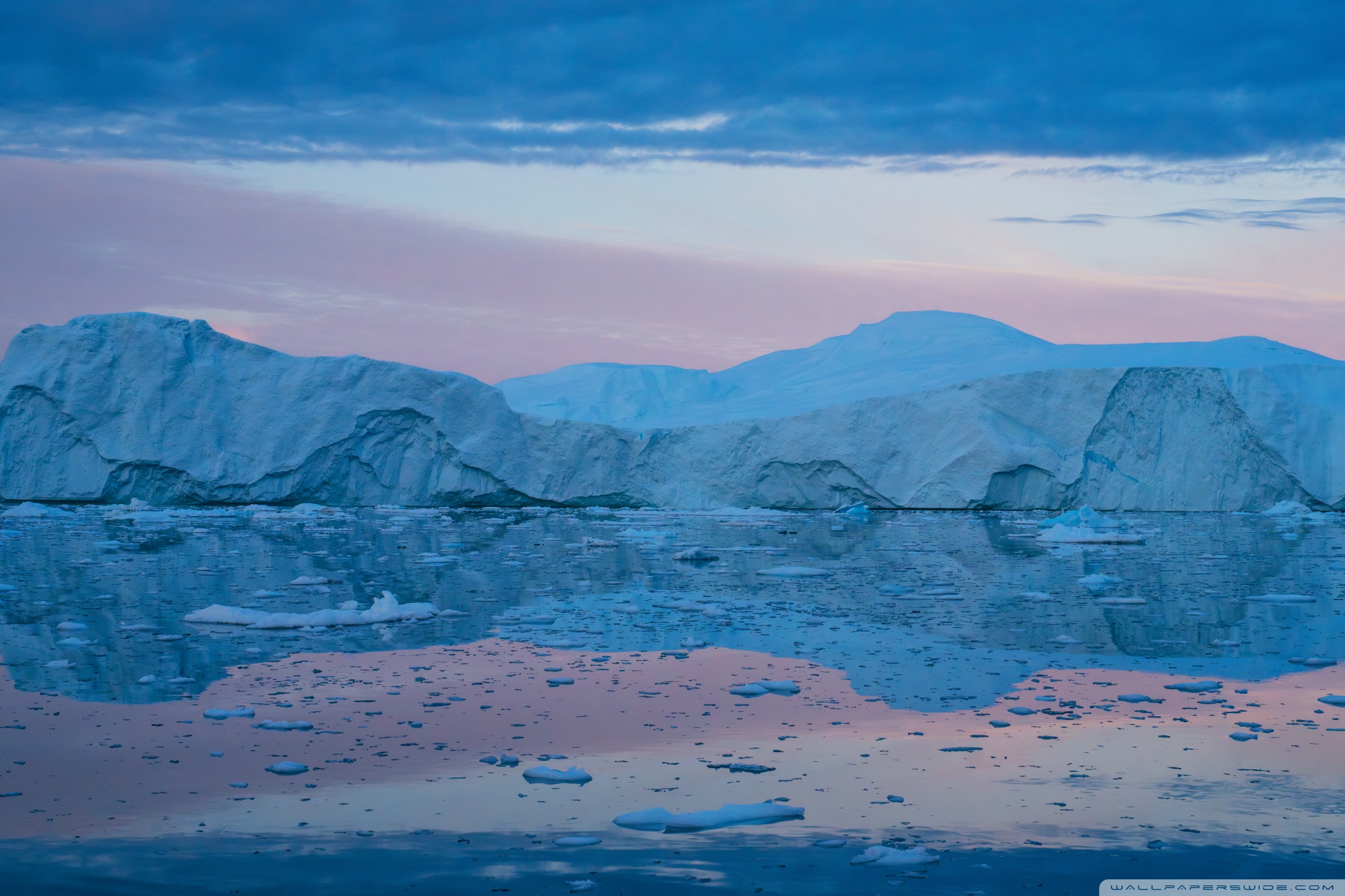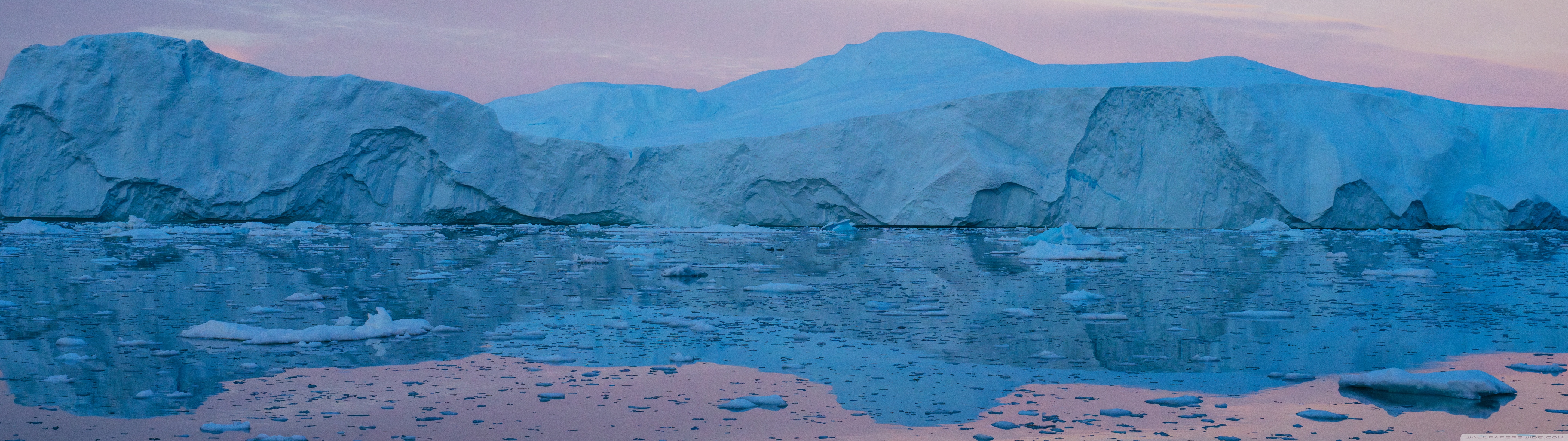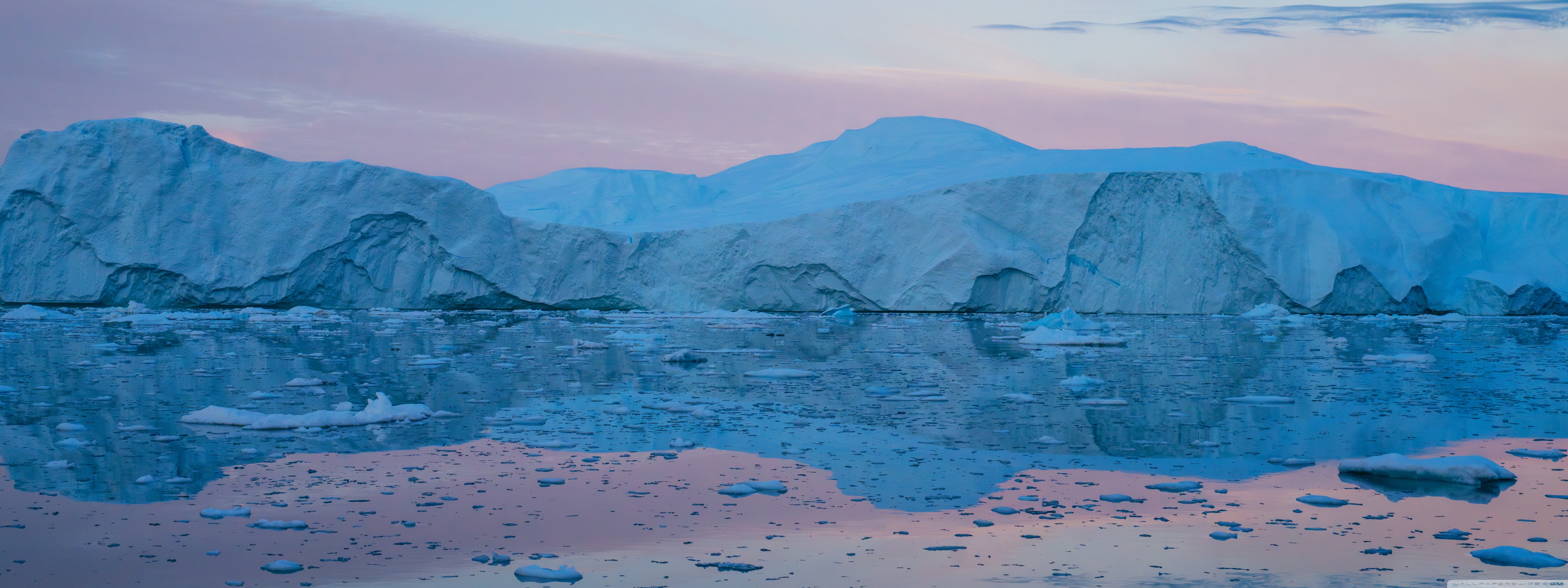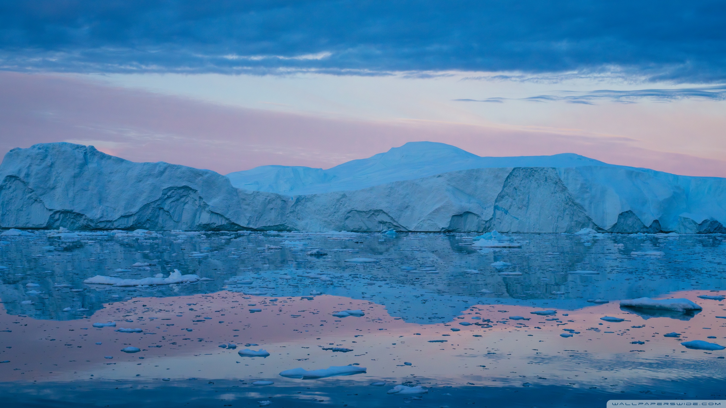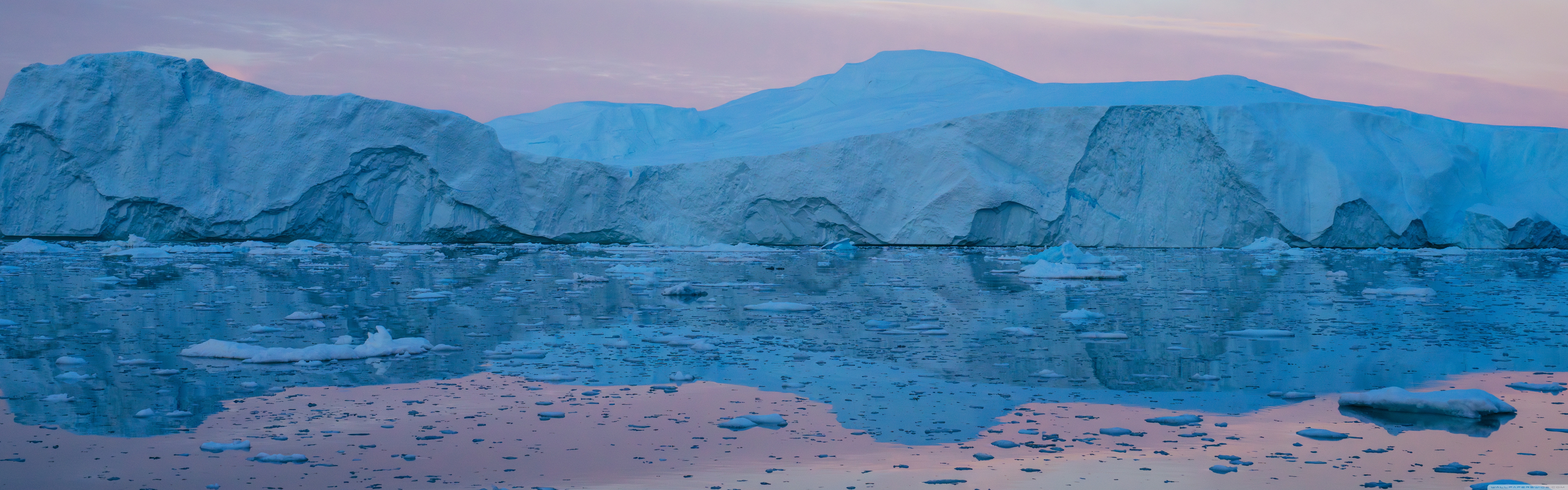 Download Eqi Greenland Icebergs Reflections on Water 4K UHD Wallpaper