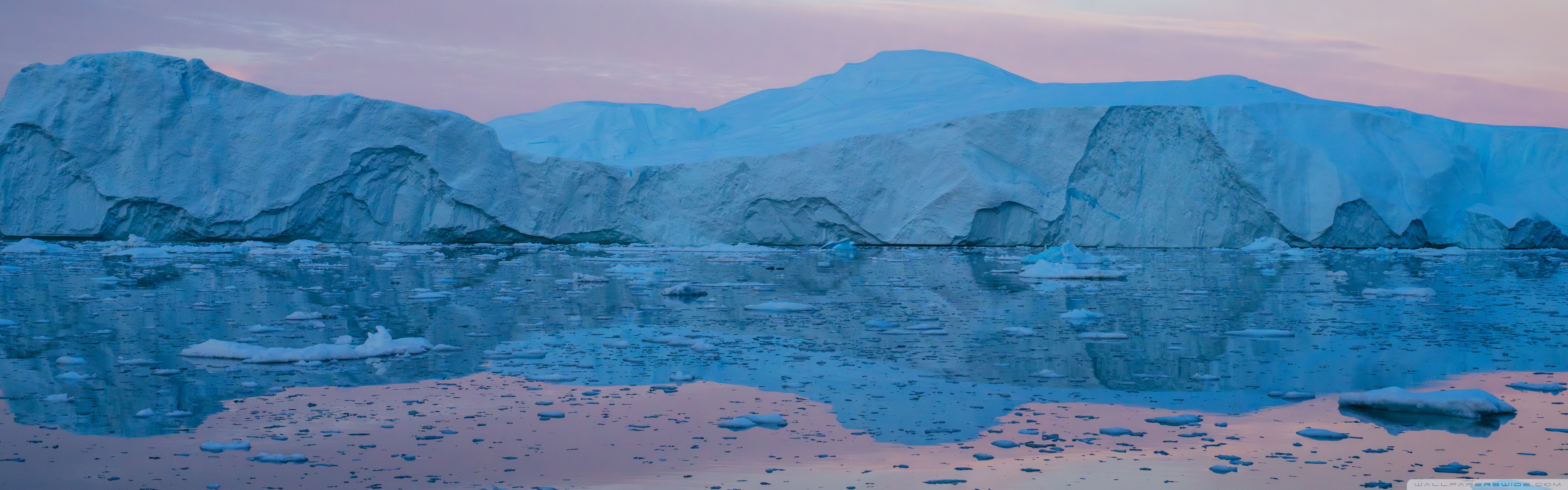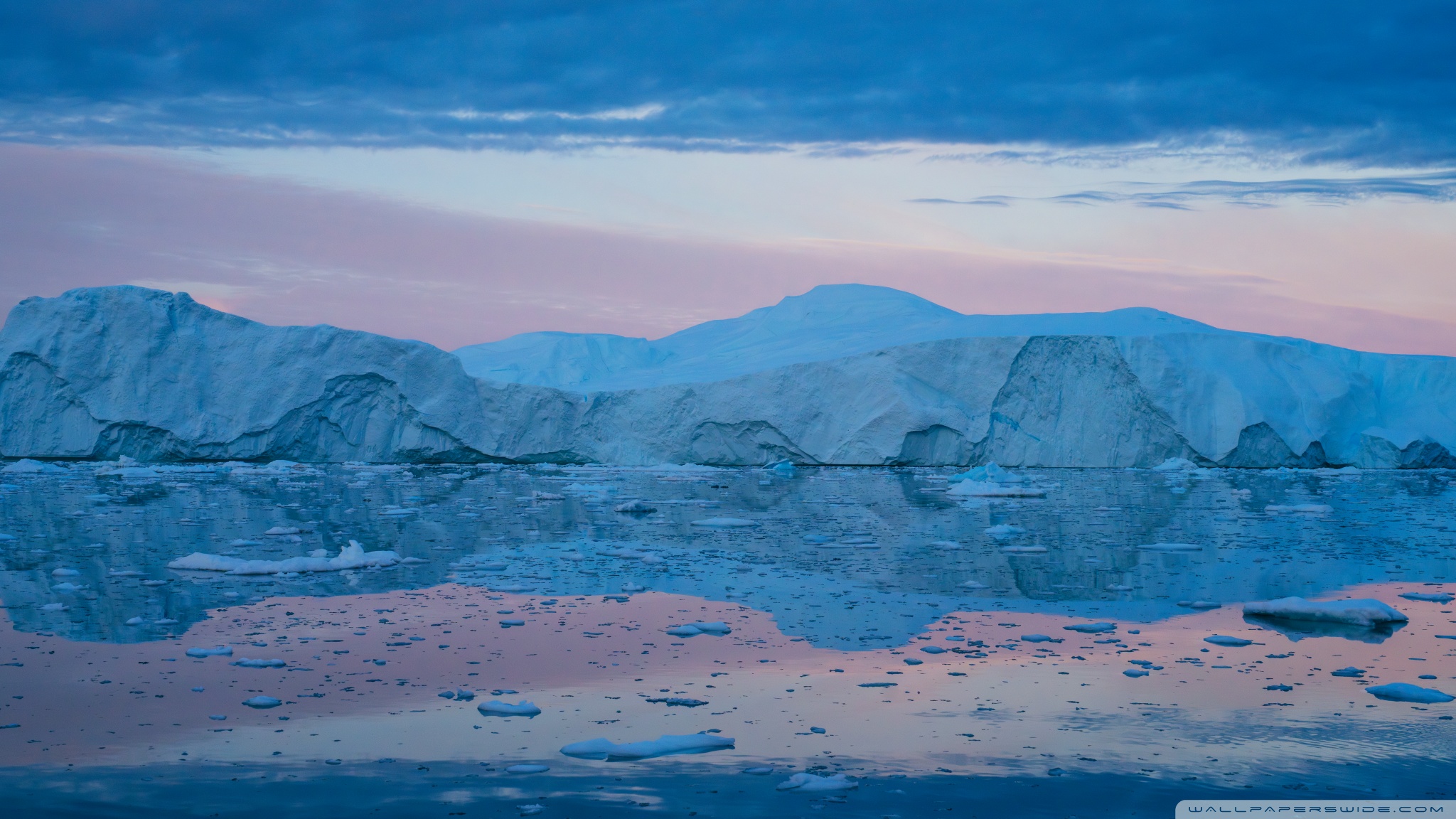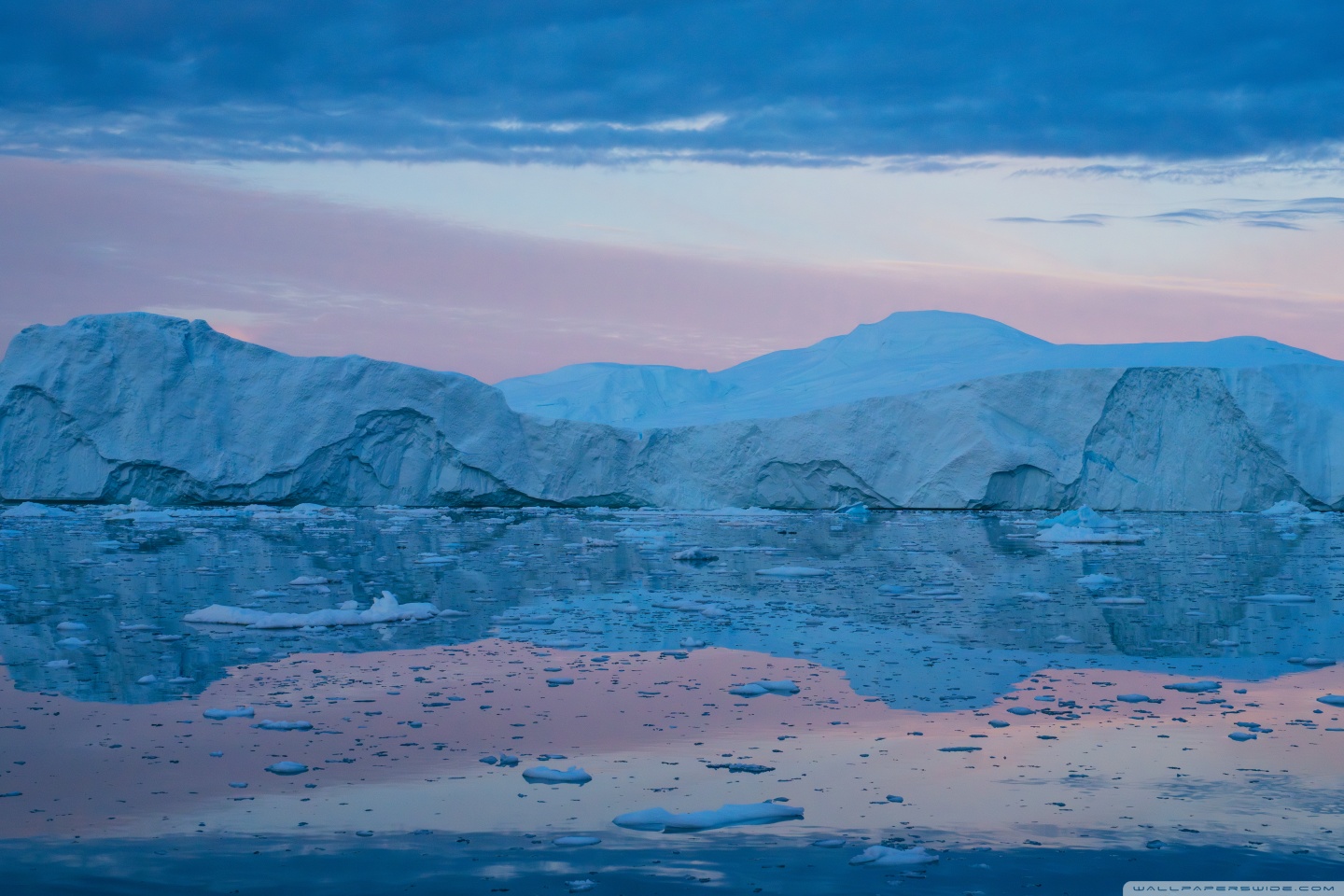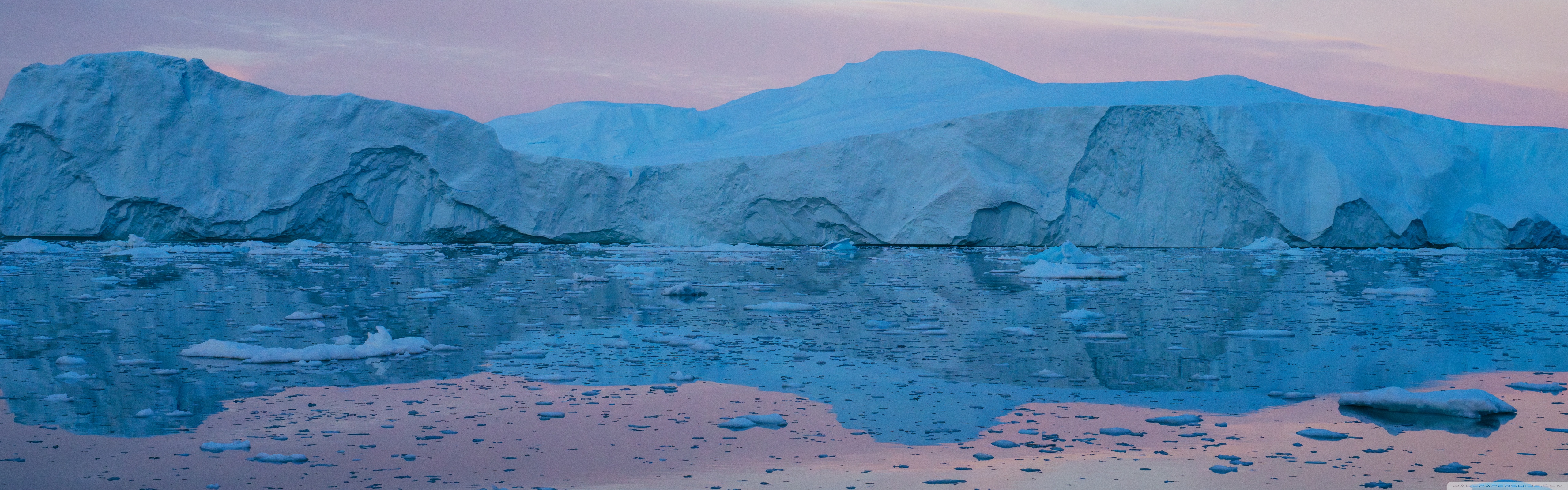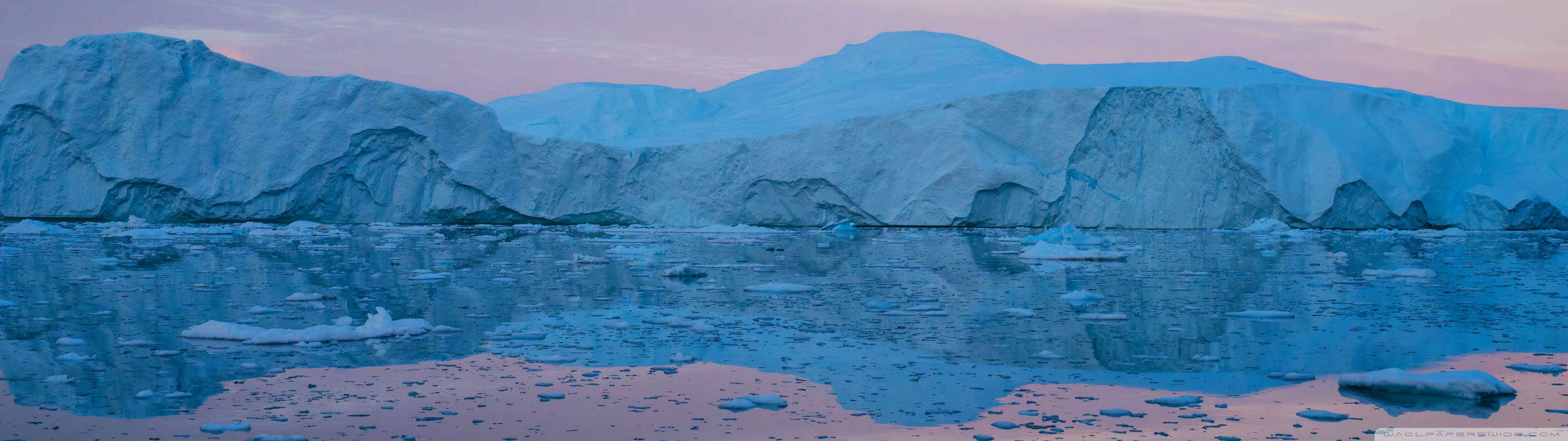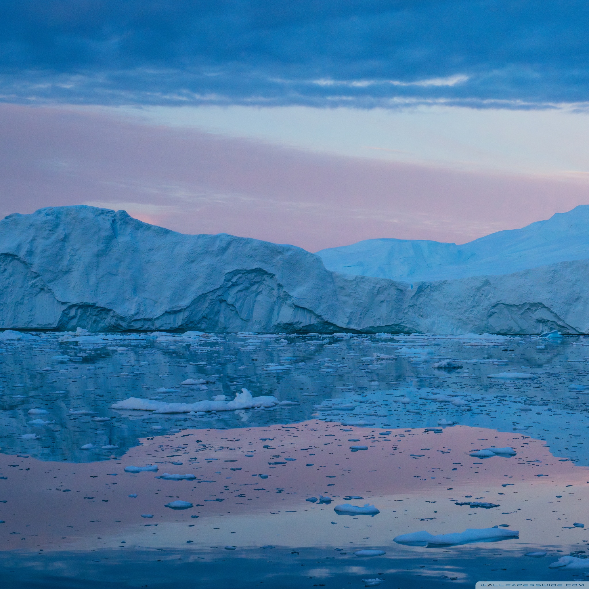 Download Eqi Greenland Icebergs Reflections on Water 4K UHD Wallpaper