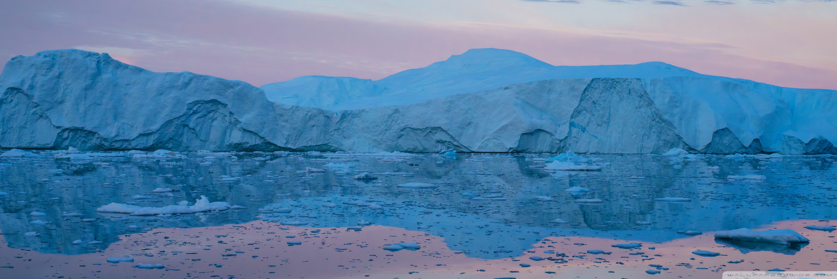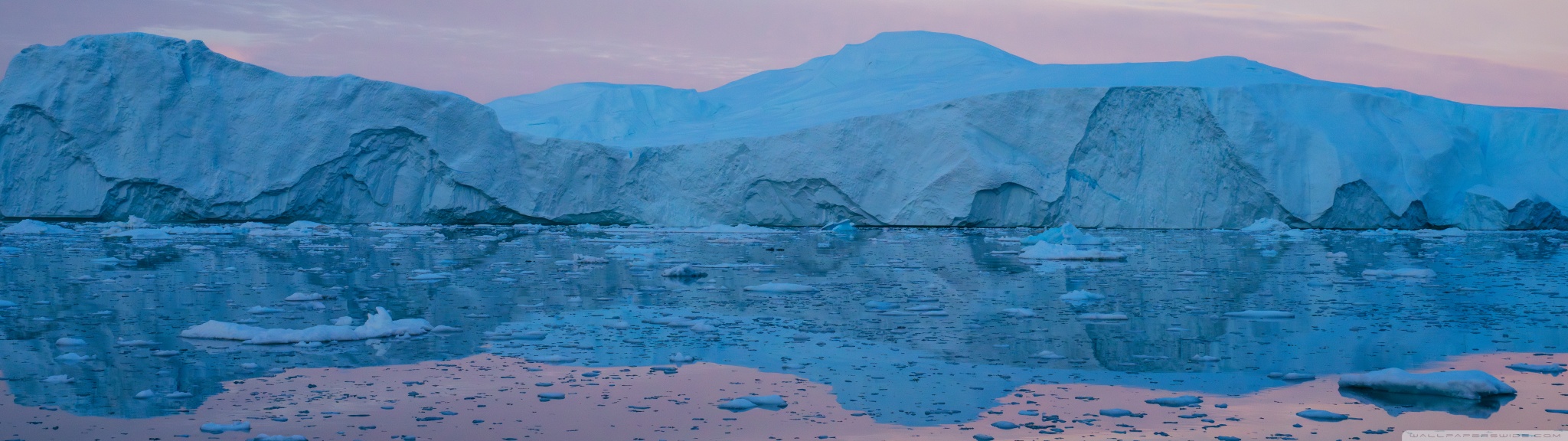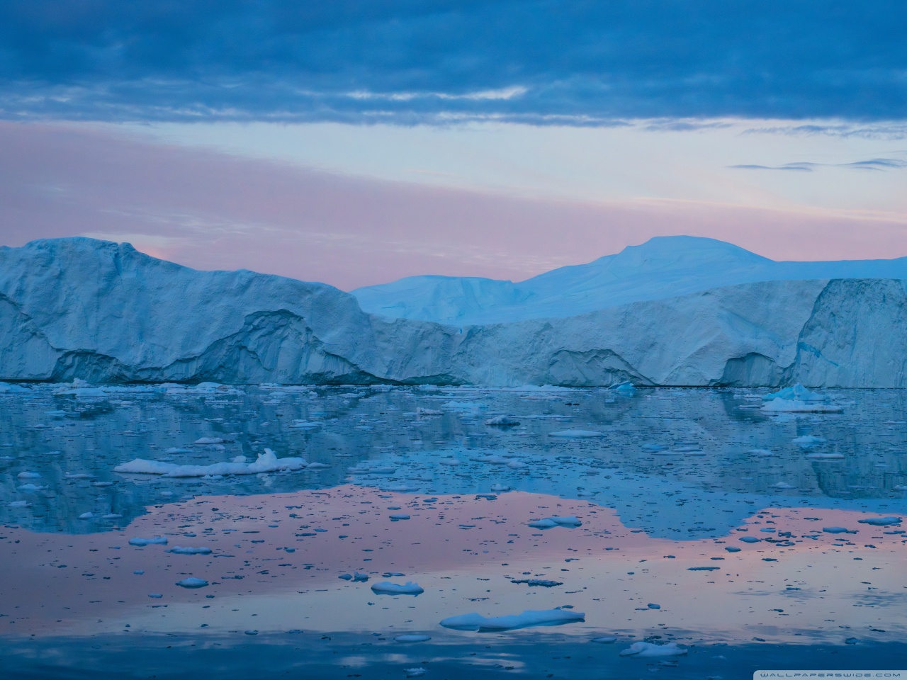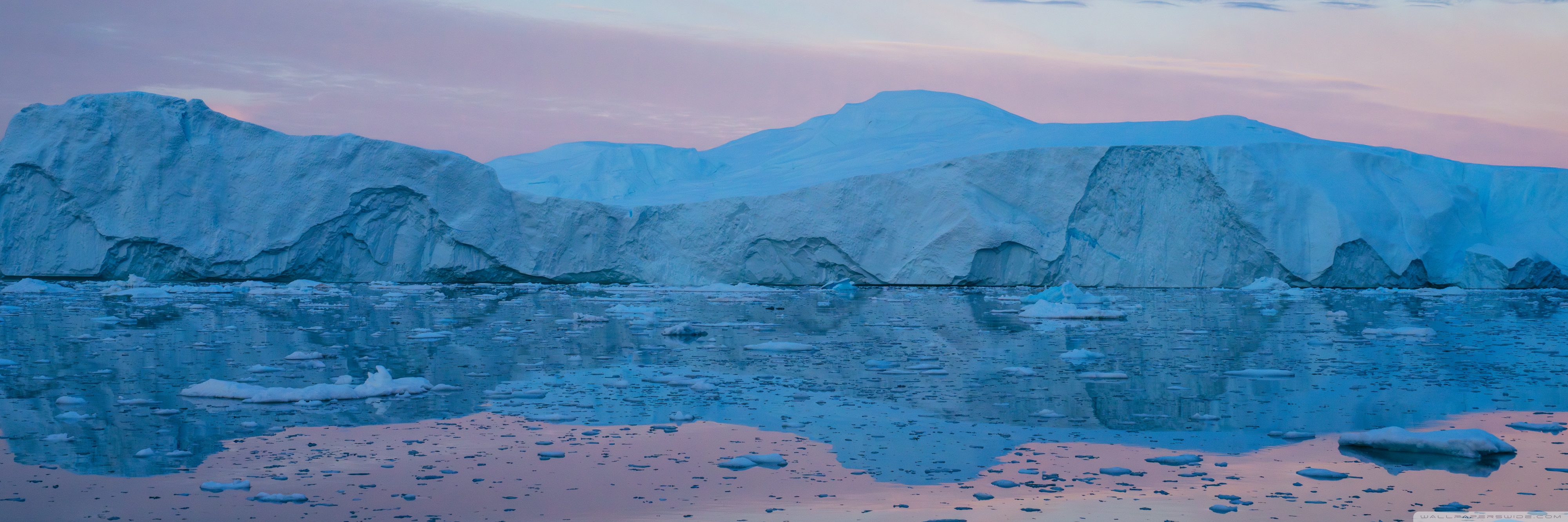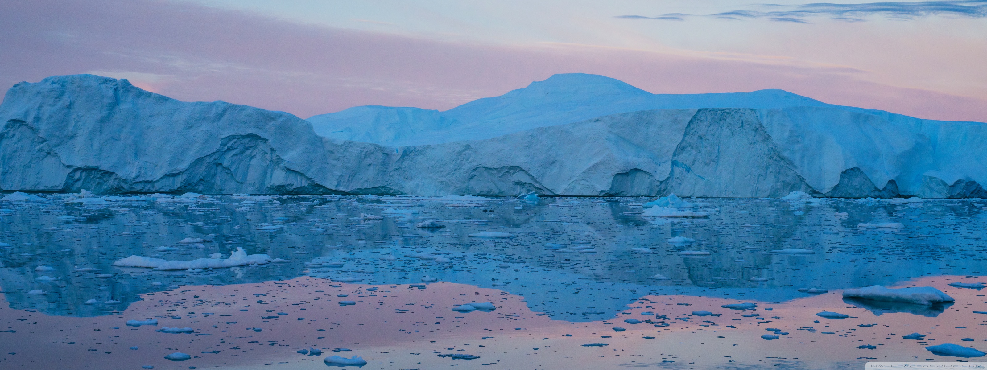 Download Eqi Greenland Icebergs Reflections on Water 4K UHD Wallpaper