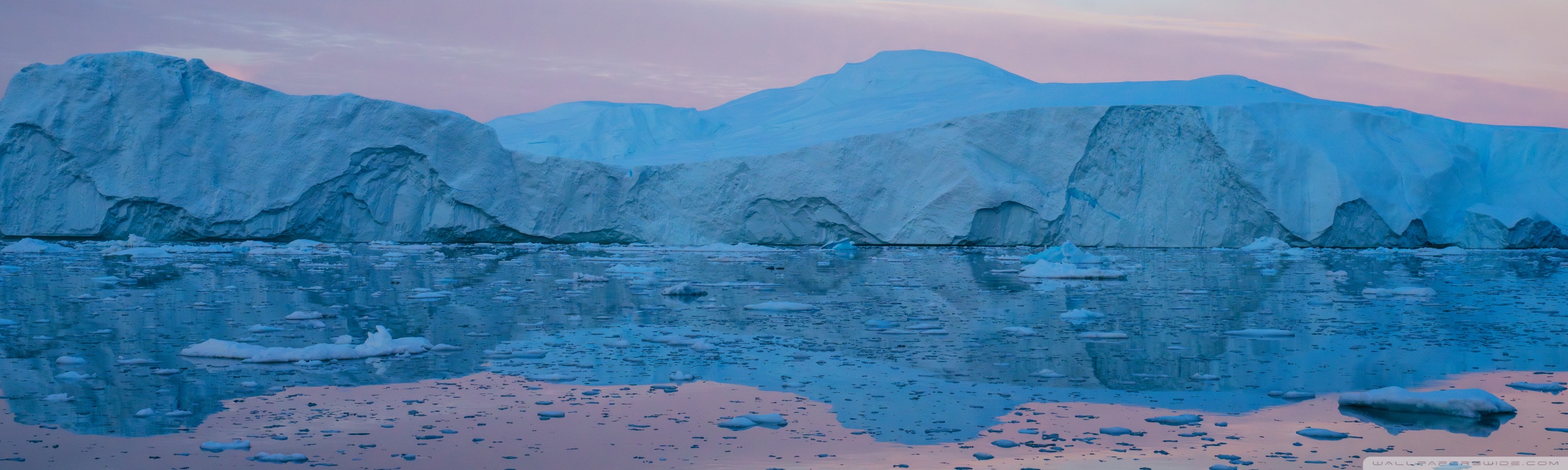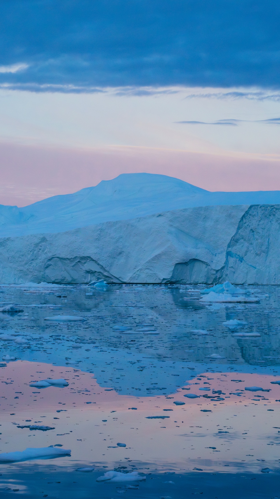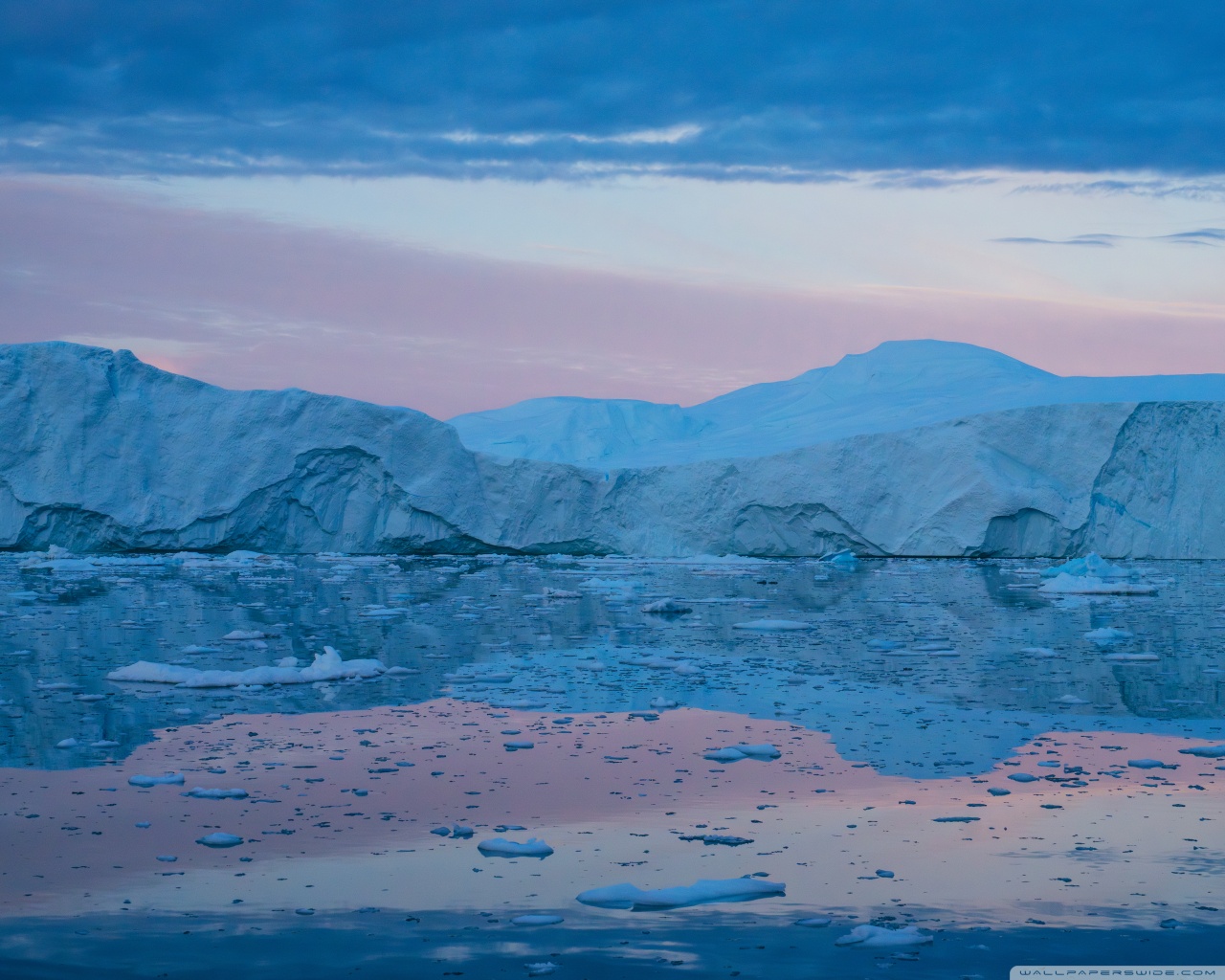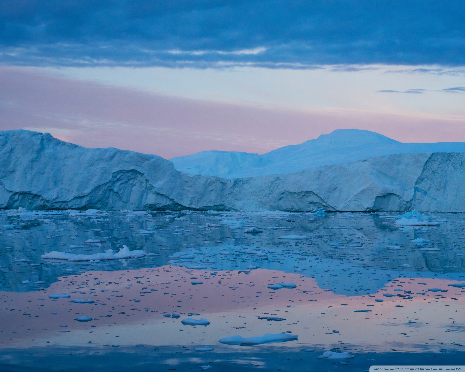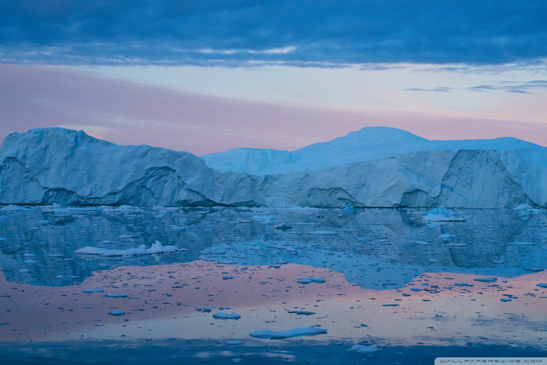 Download Eqi Greenland Icebergs Reflections on Water 4K UHD Wallpaper