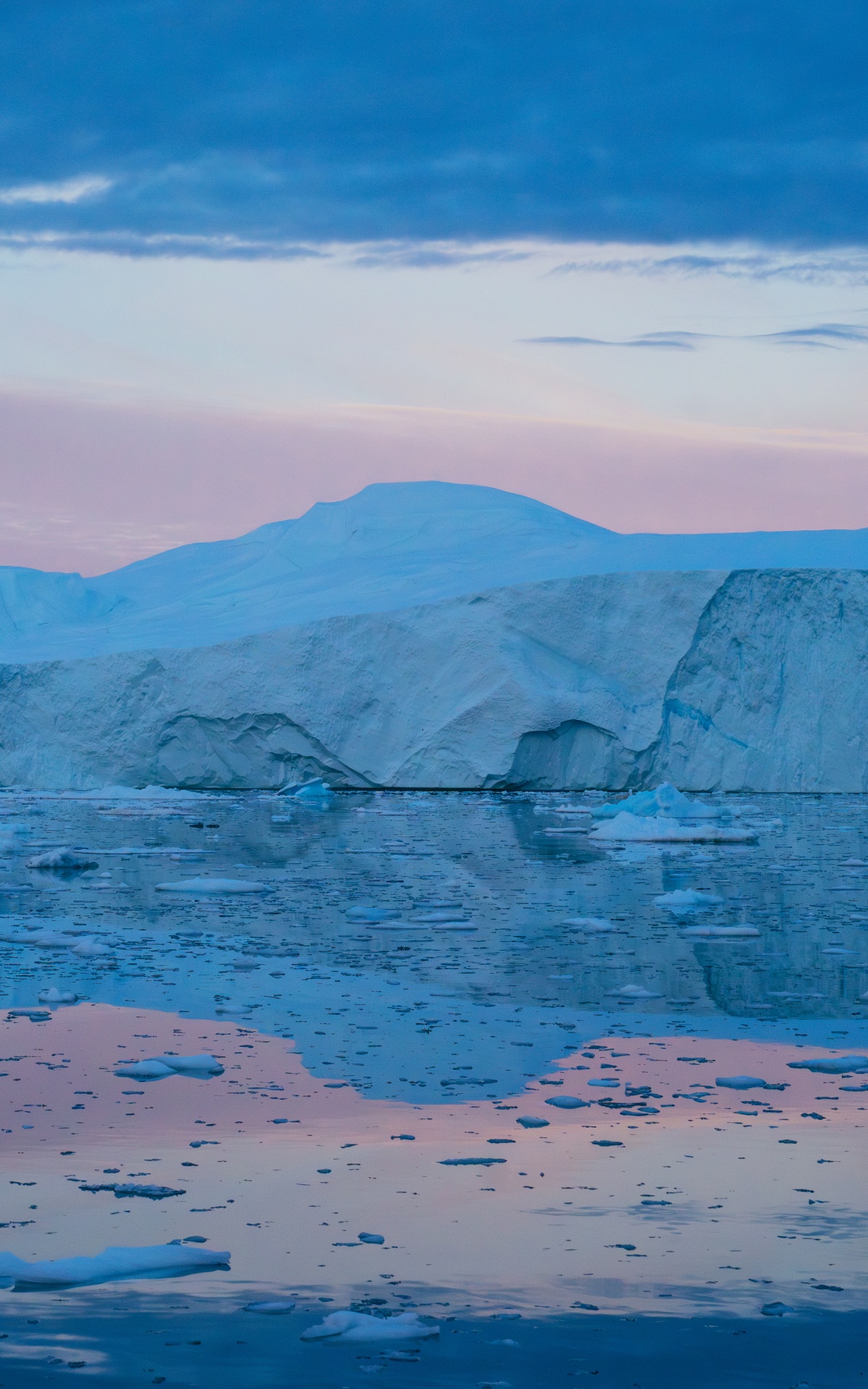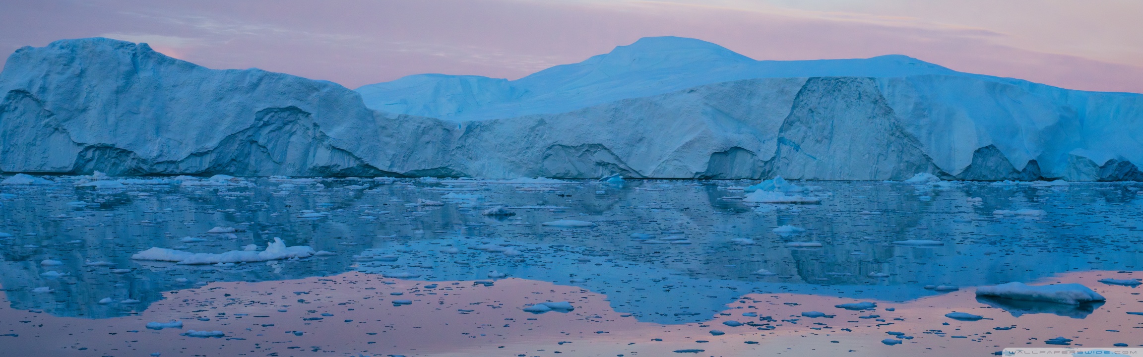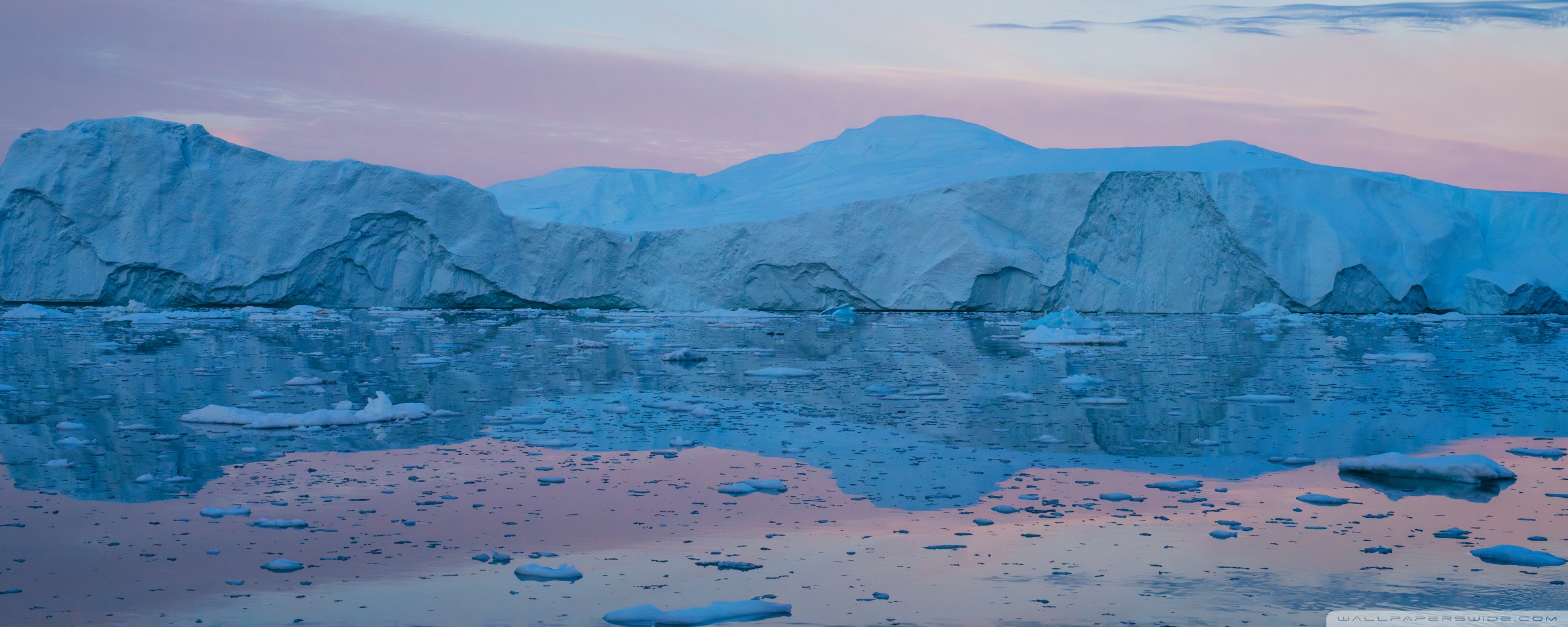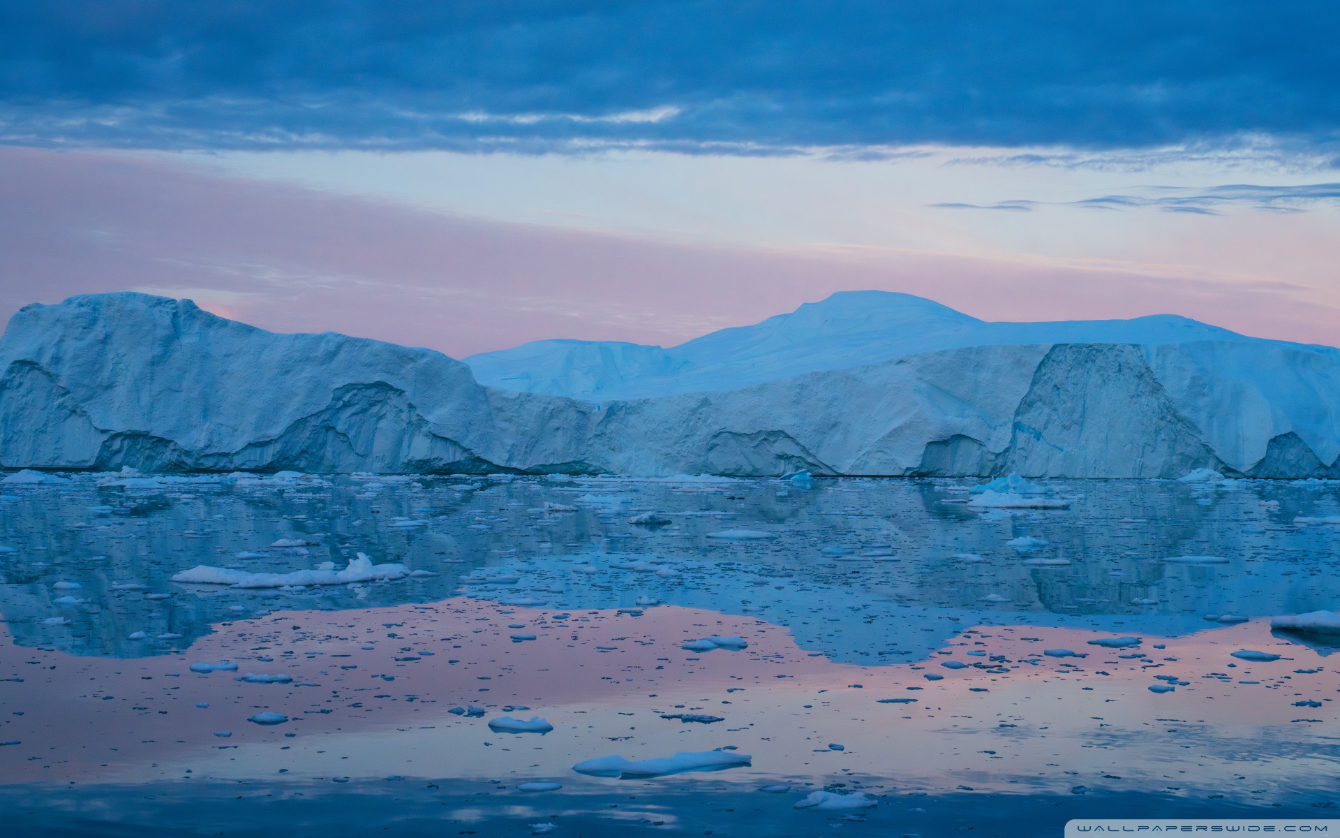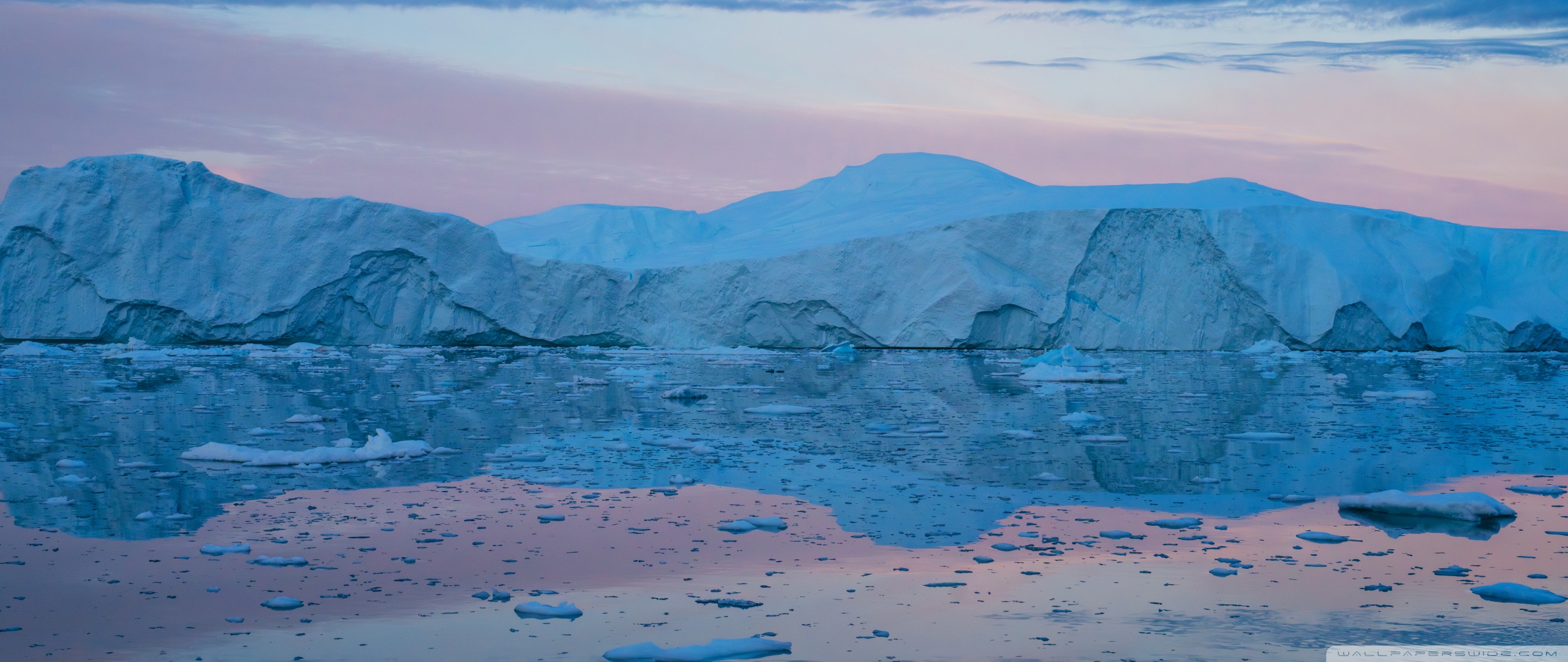 Download Eqi Greenland Icebergs Reflections on Water 4K UHD Wallpaper