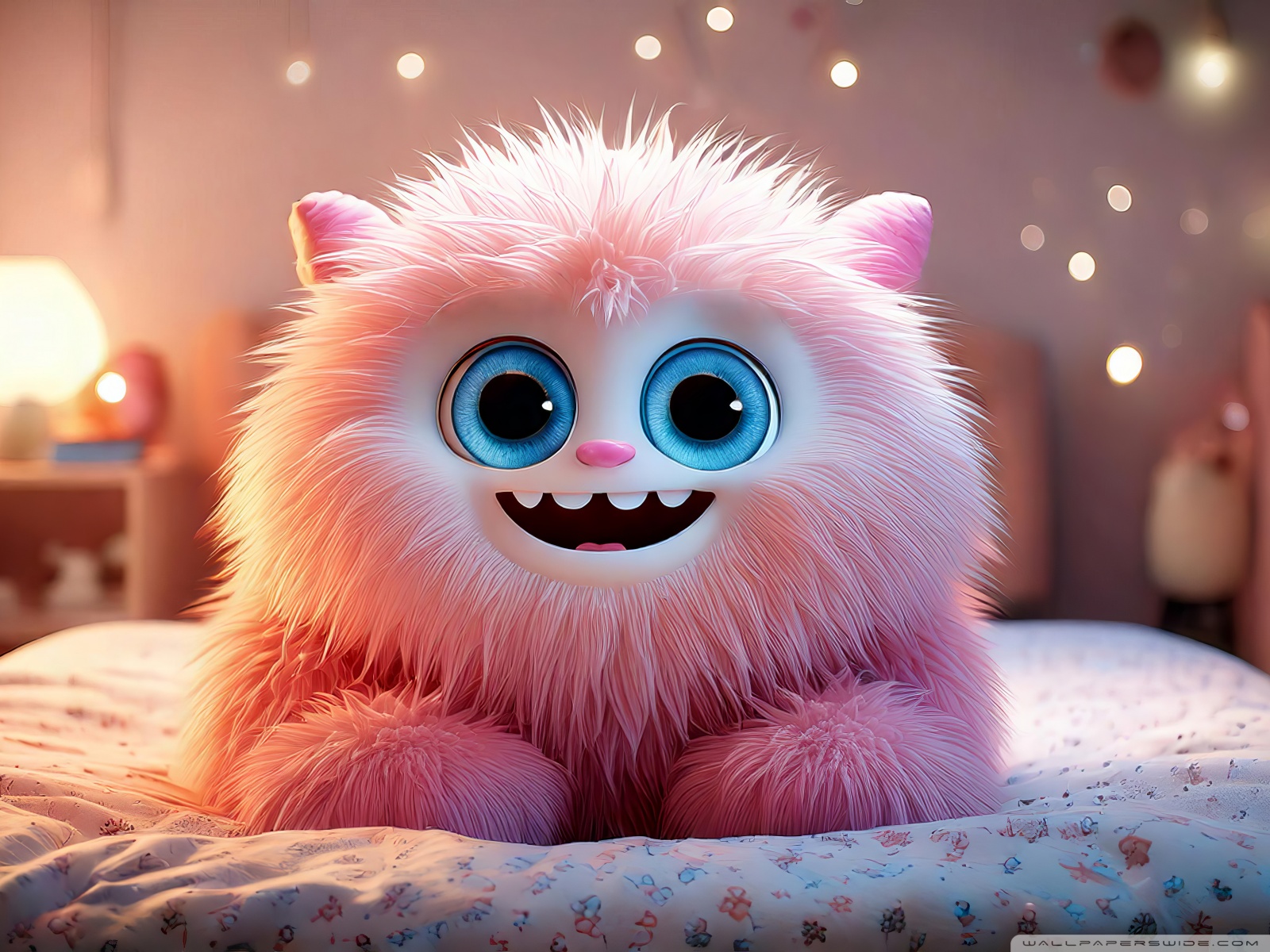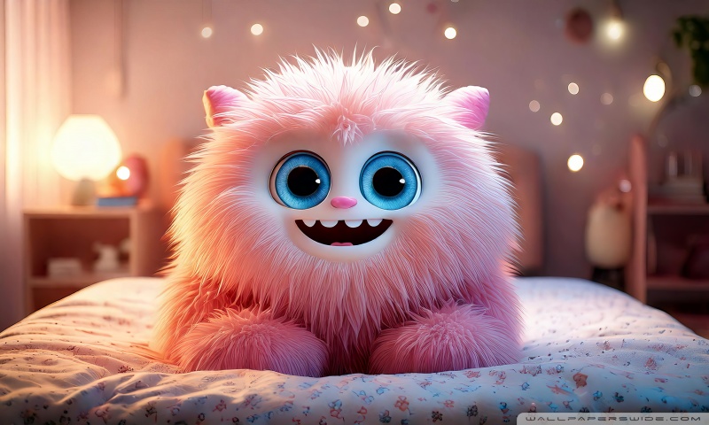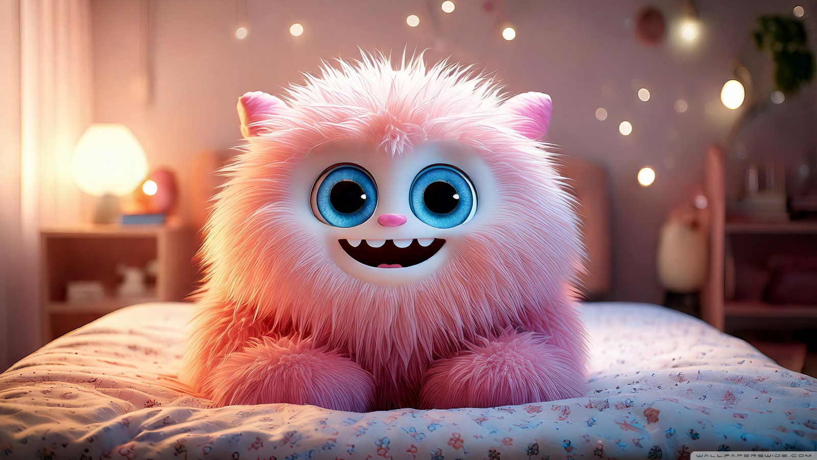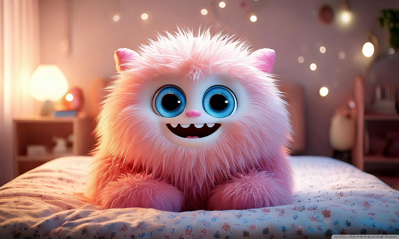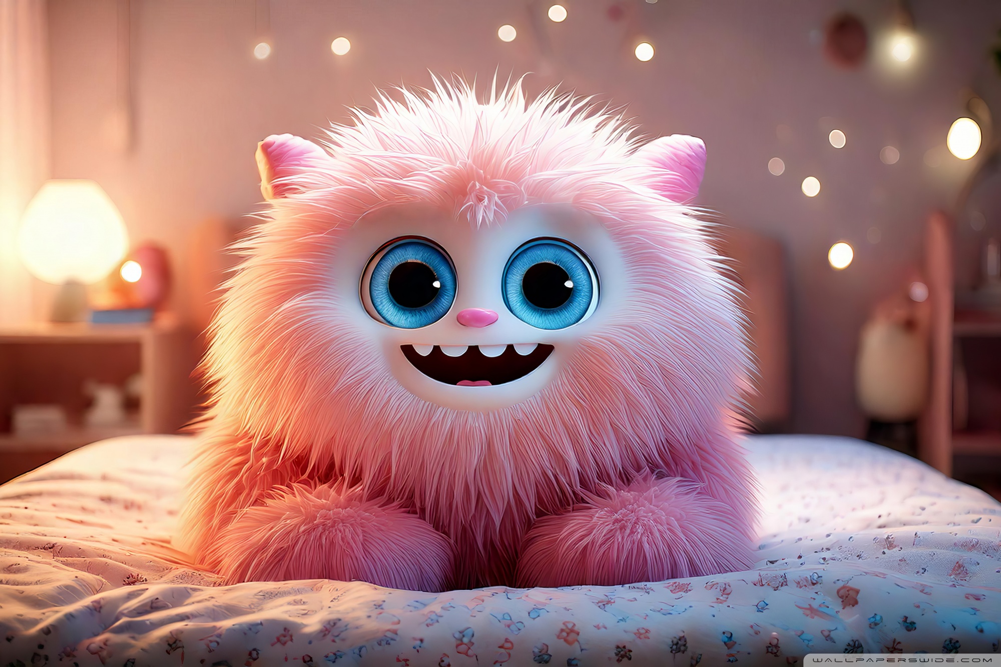 Download Fluffy Pink Monster on Bed 4K UHD Wallpaper