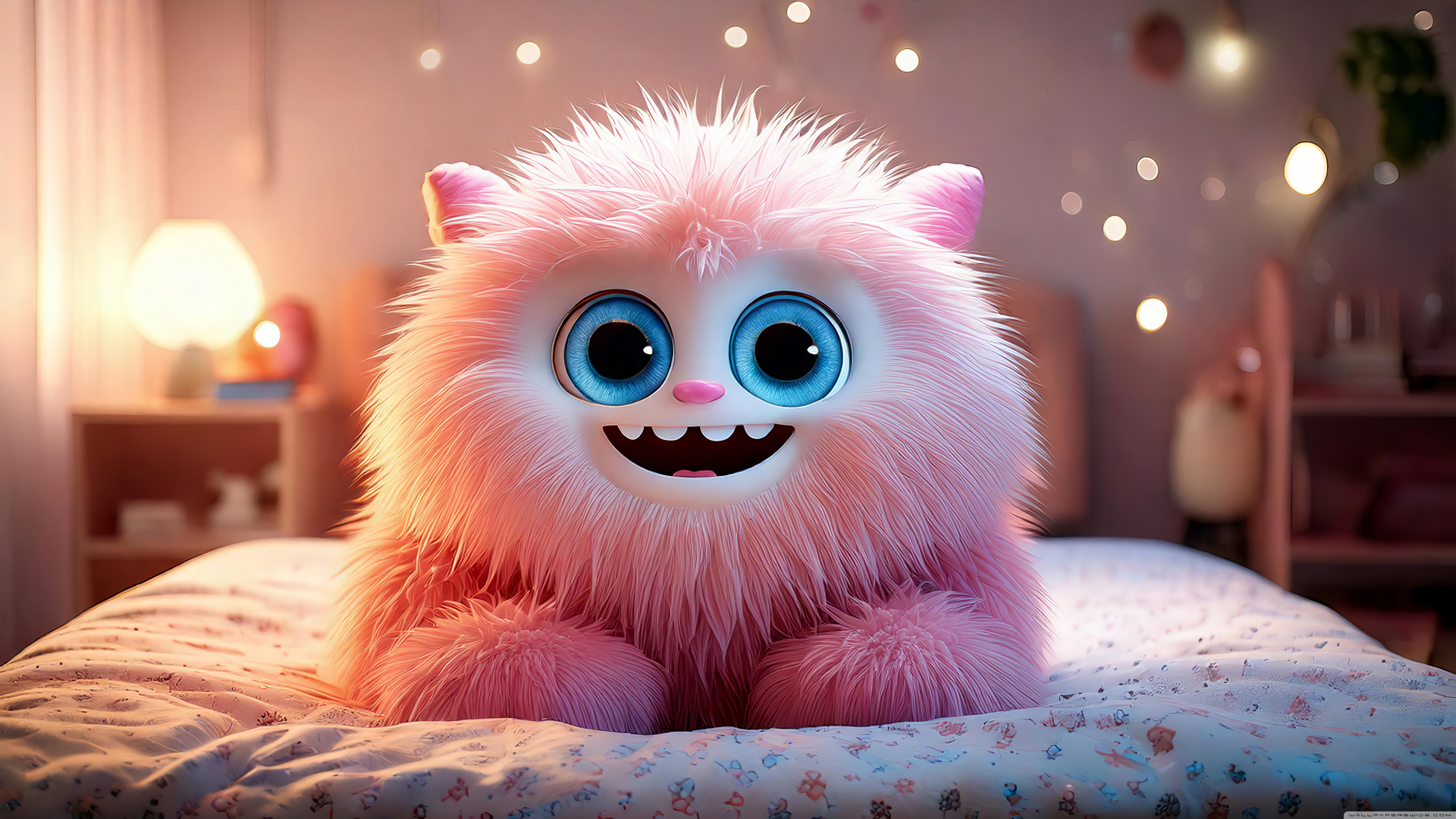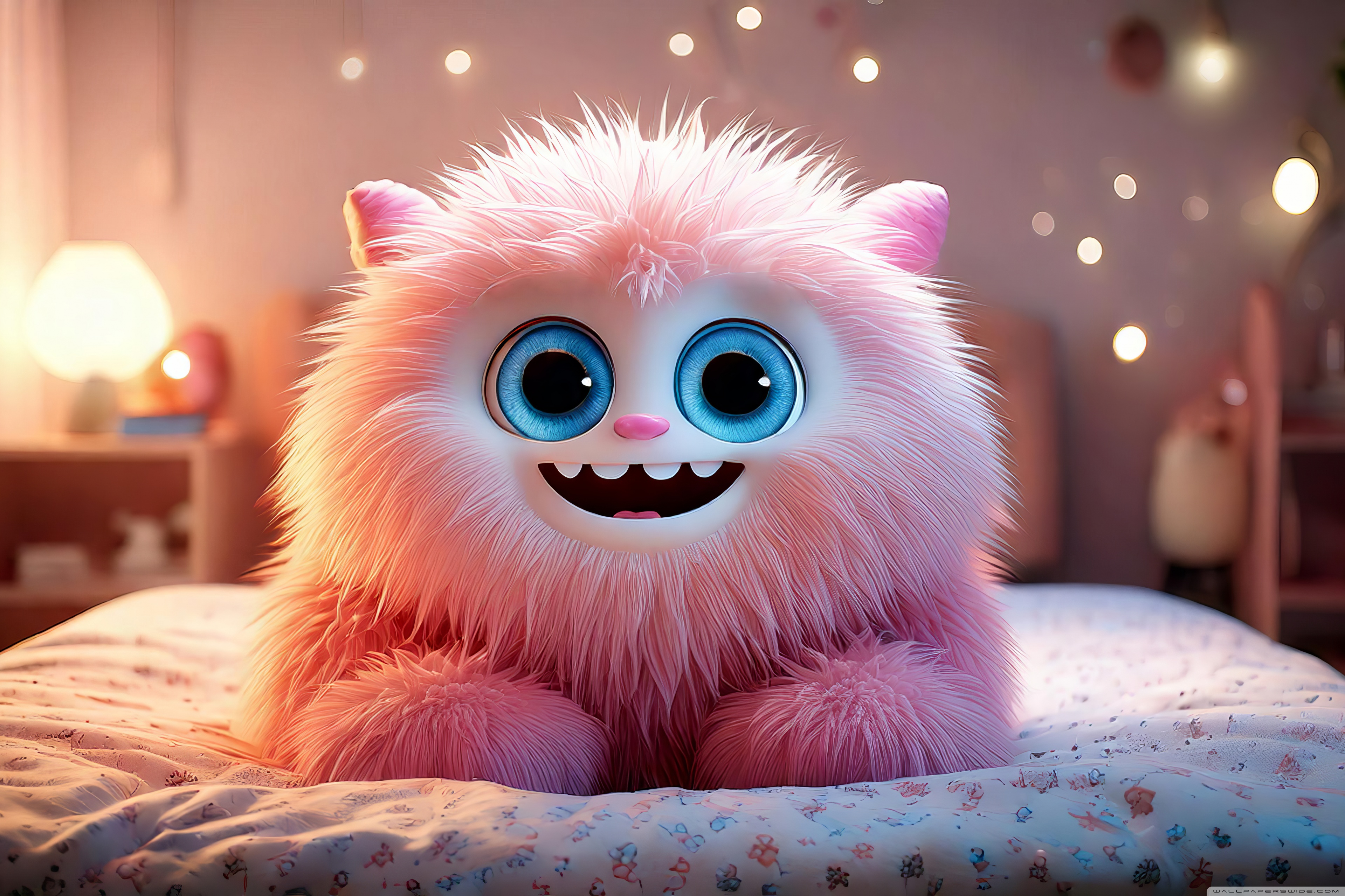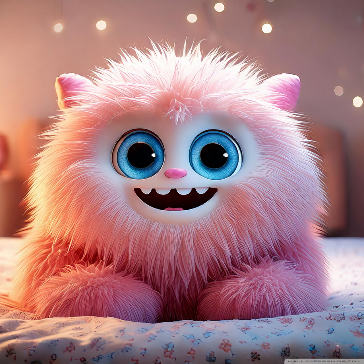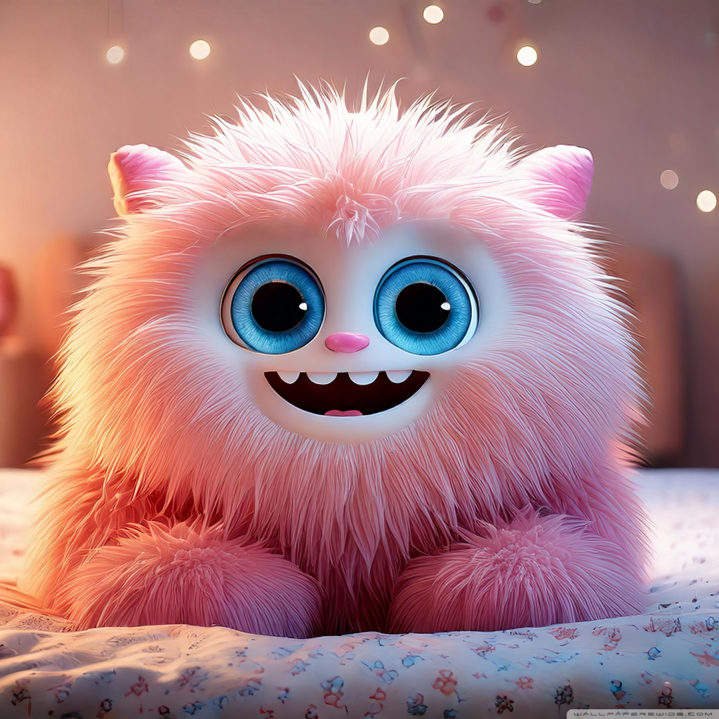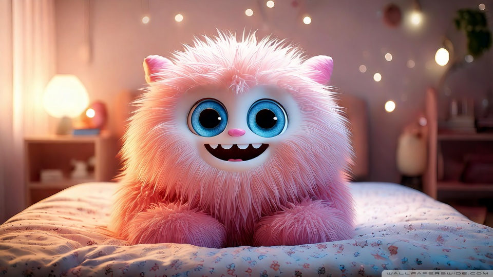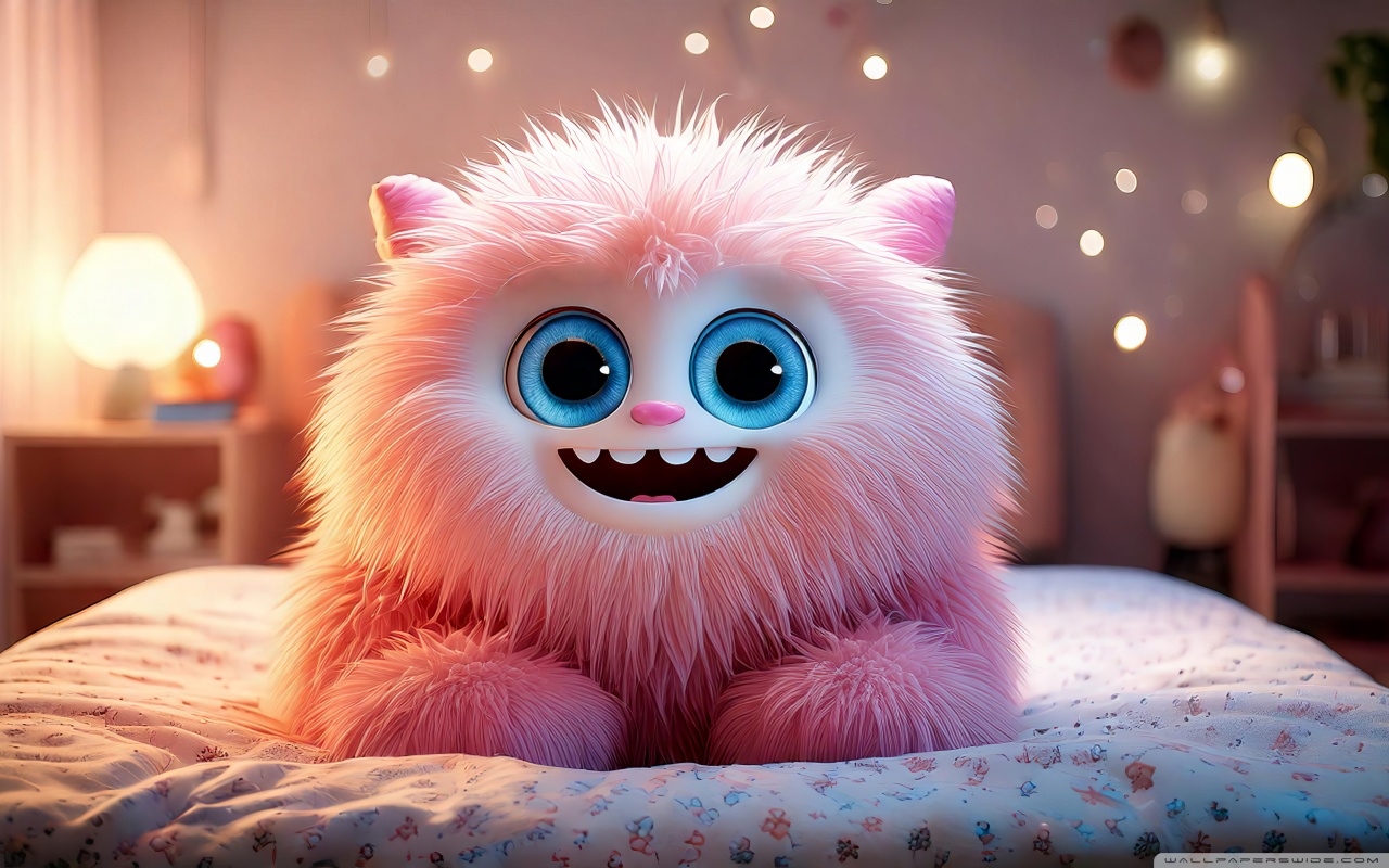 Download Fluffy Pink Monster on Bed 4K UHD Wallpaper