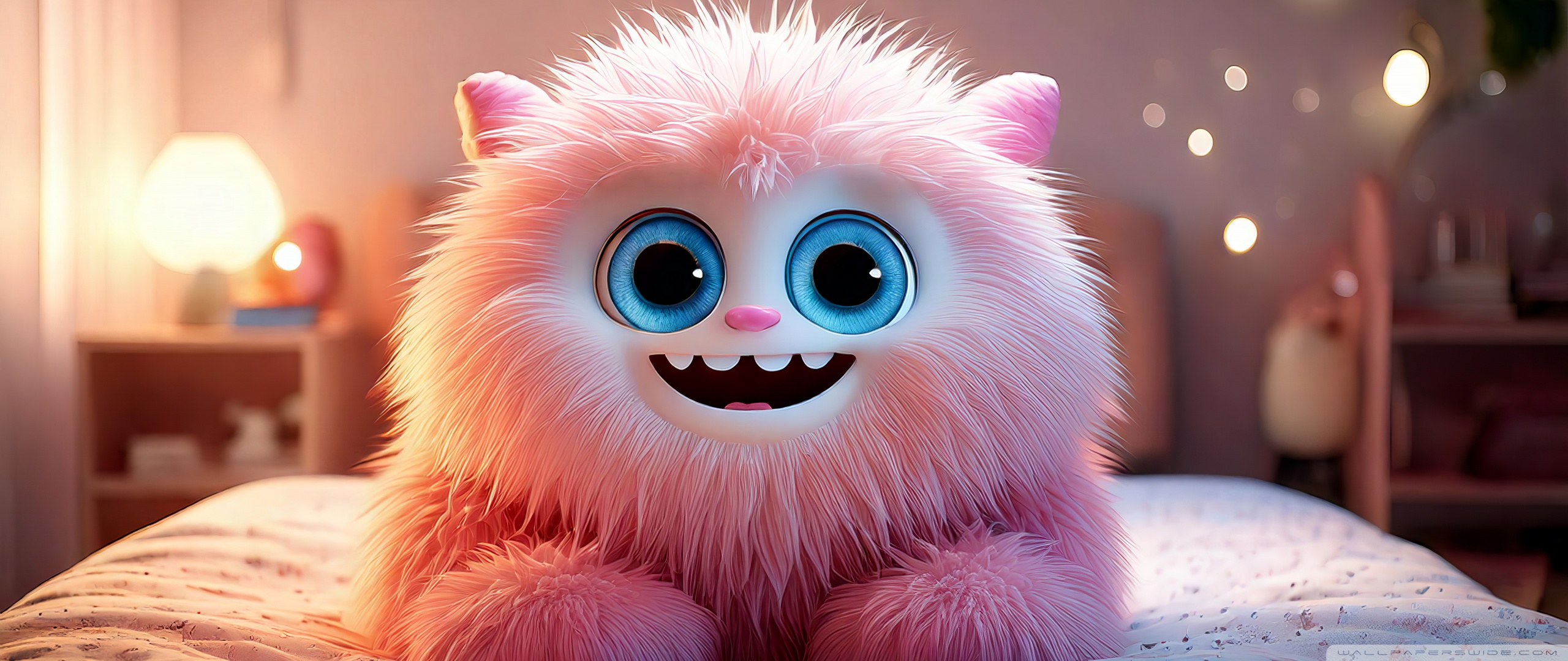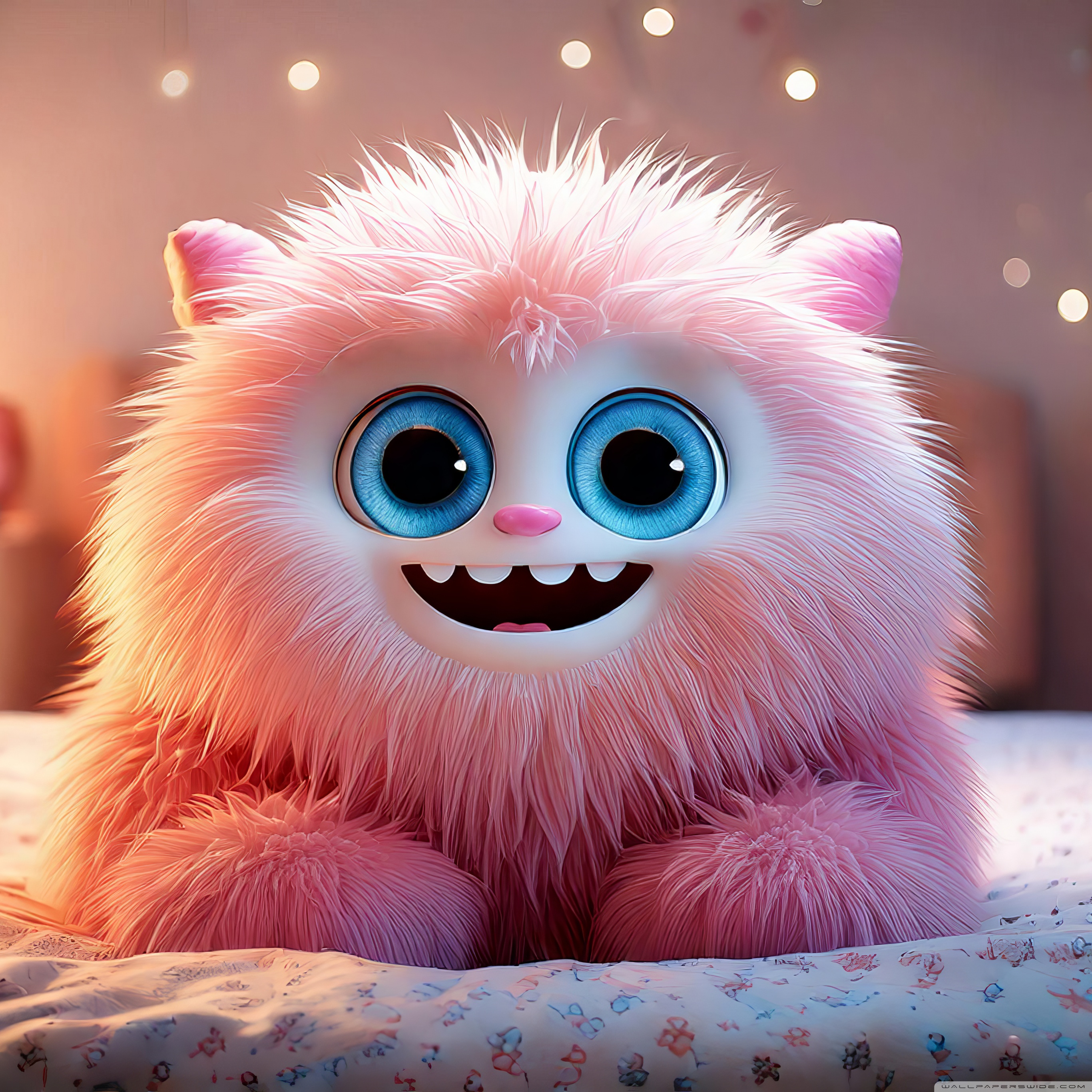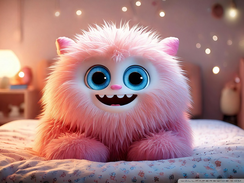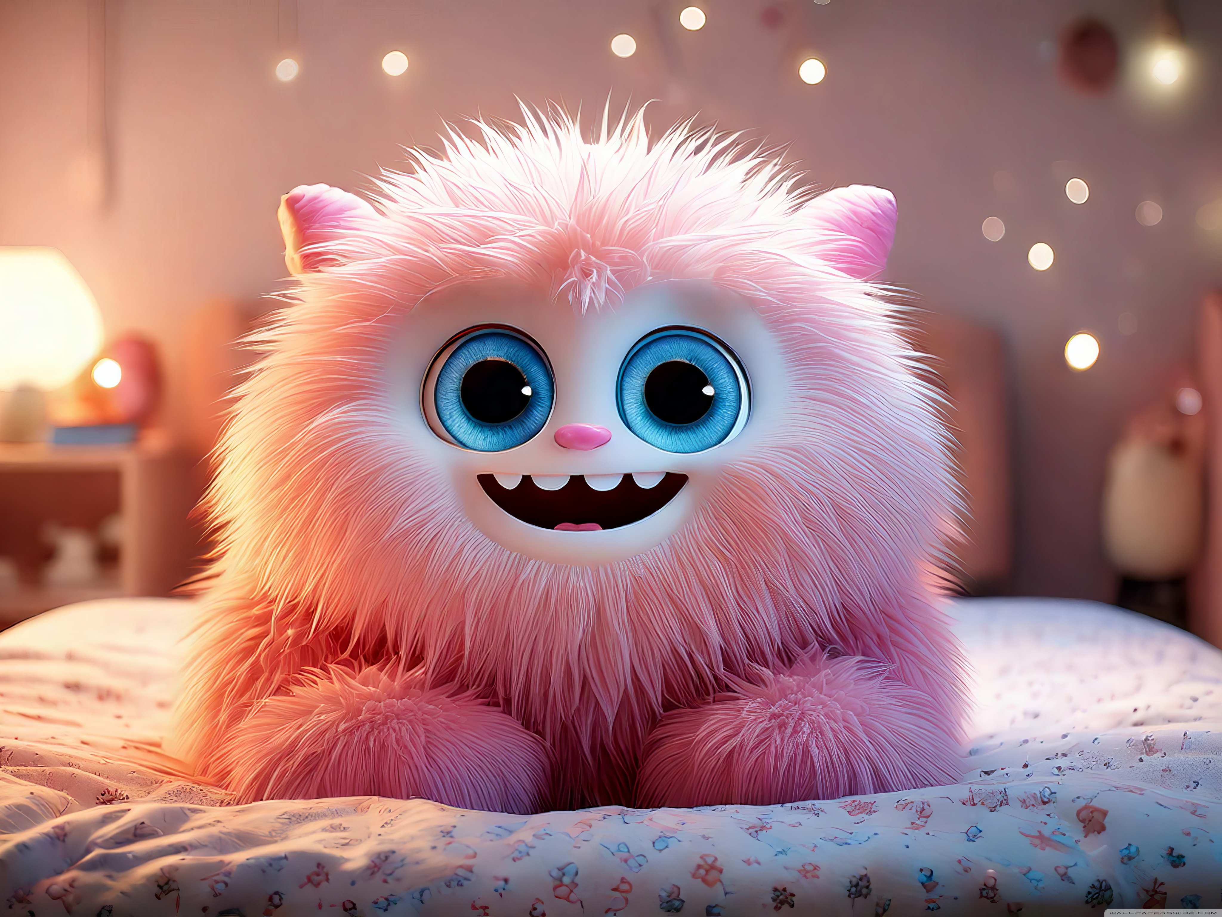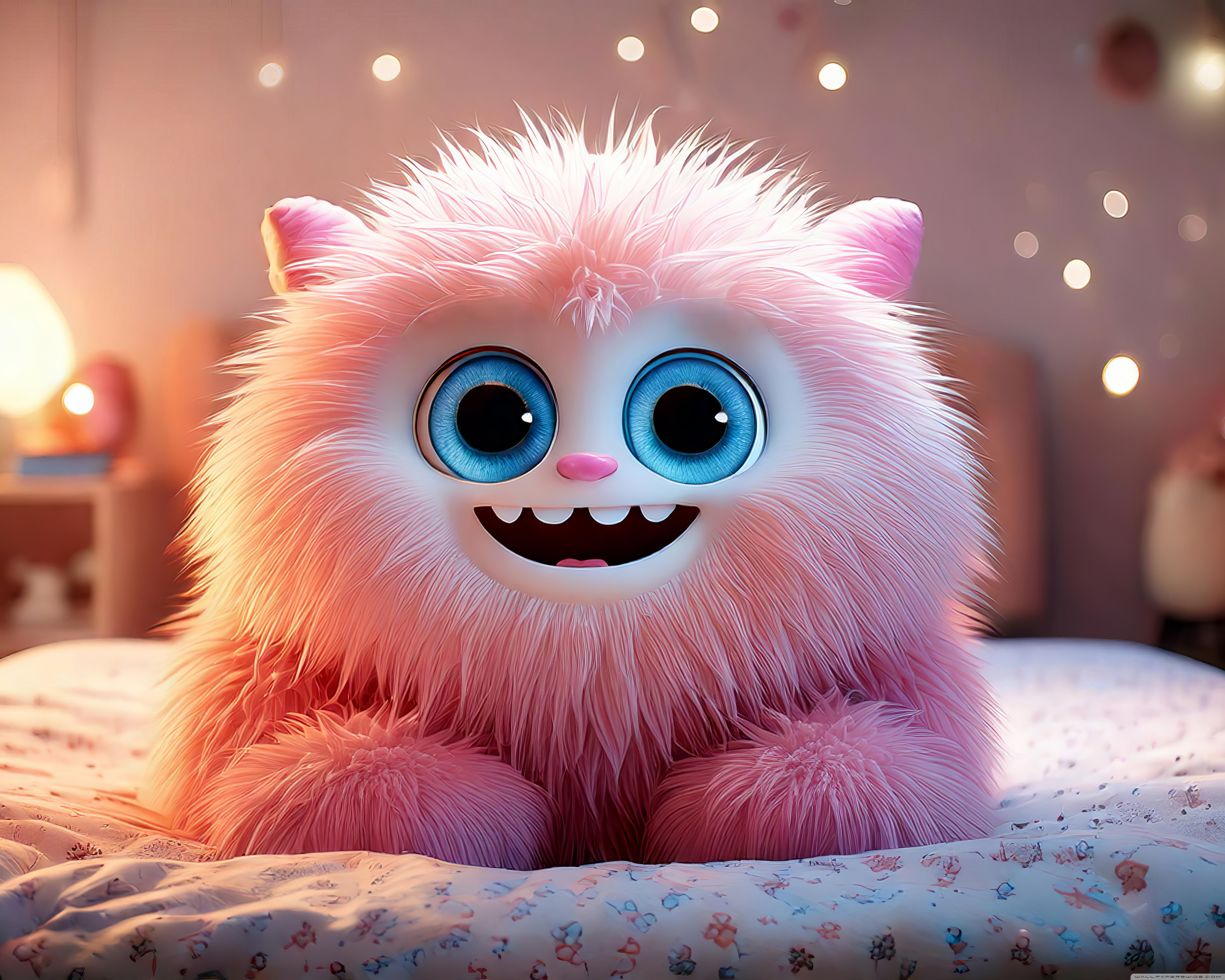 Download Fluffy Pink Monster on Bed 4K UHD Wallpaper
