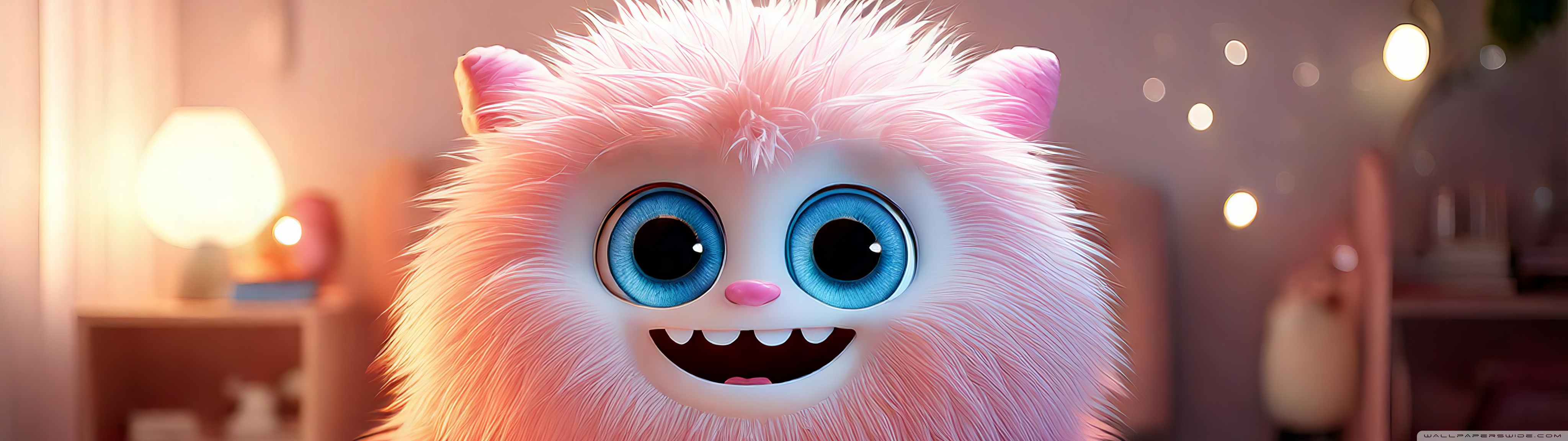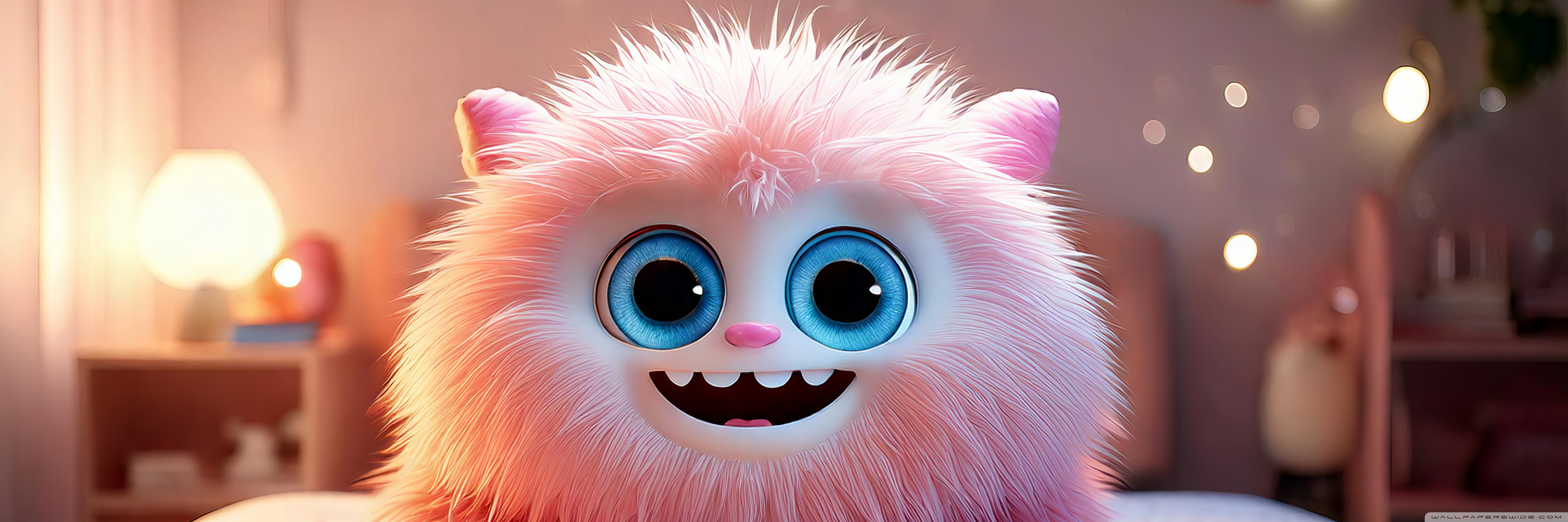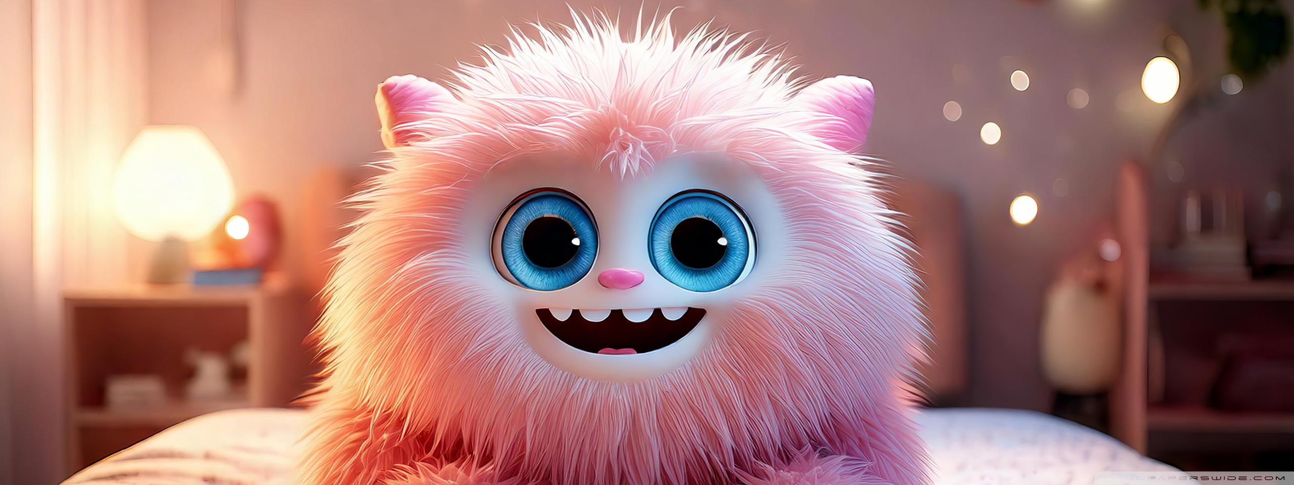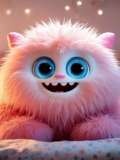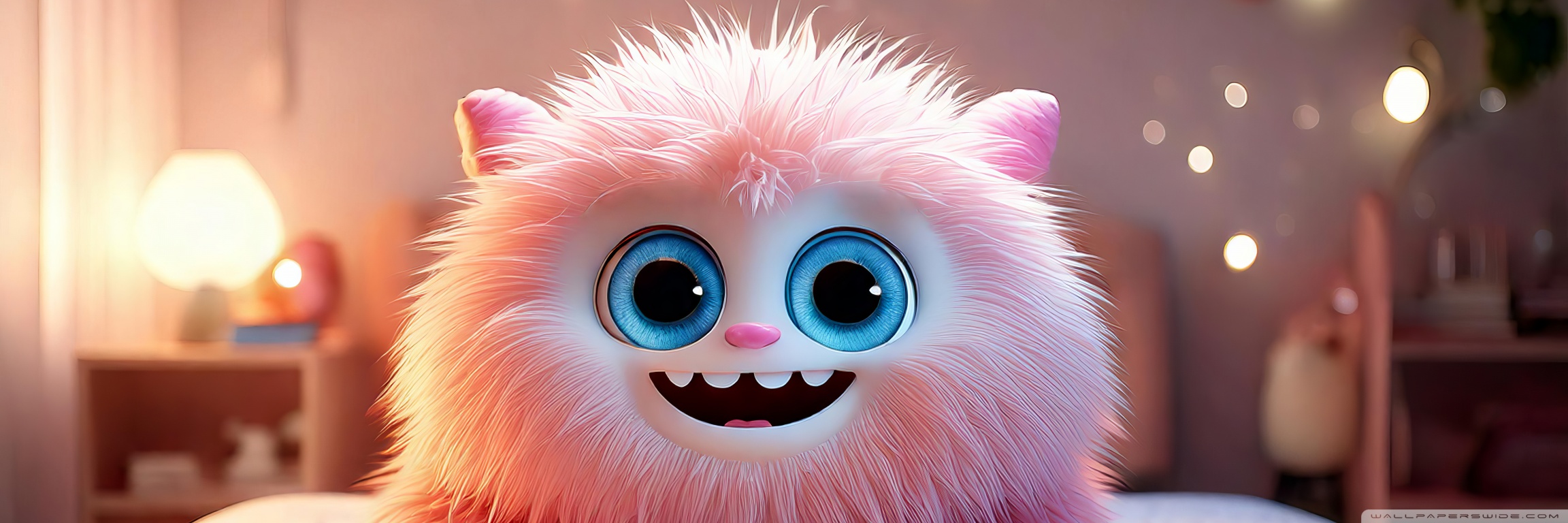 Download Fluffy Pink Monster on Bed 4K UHD Wallpaper