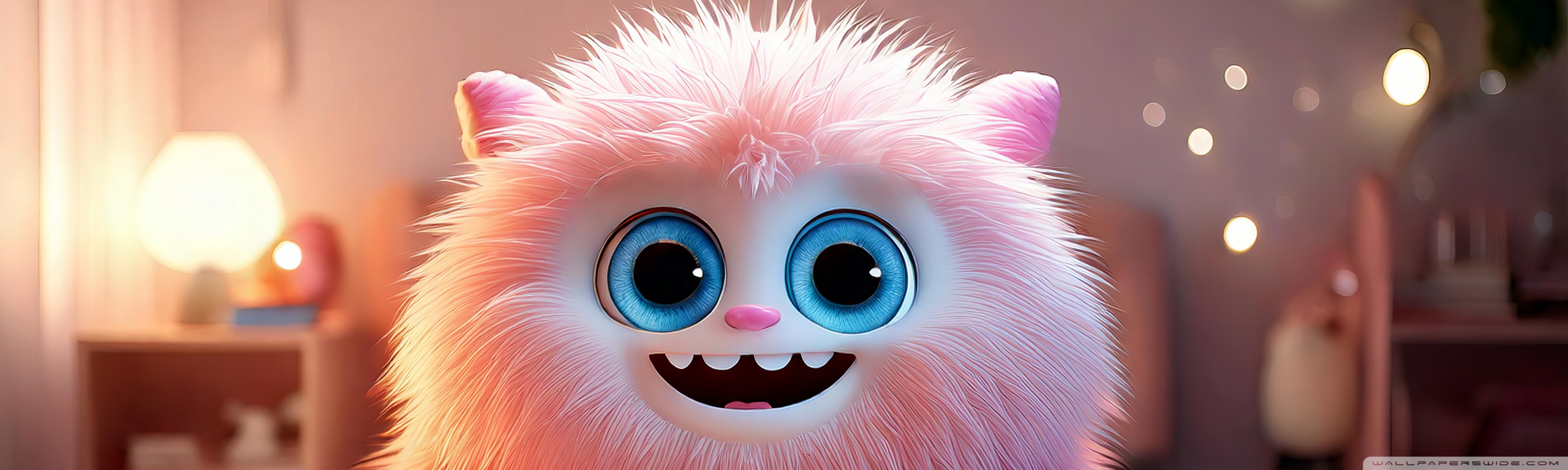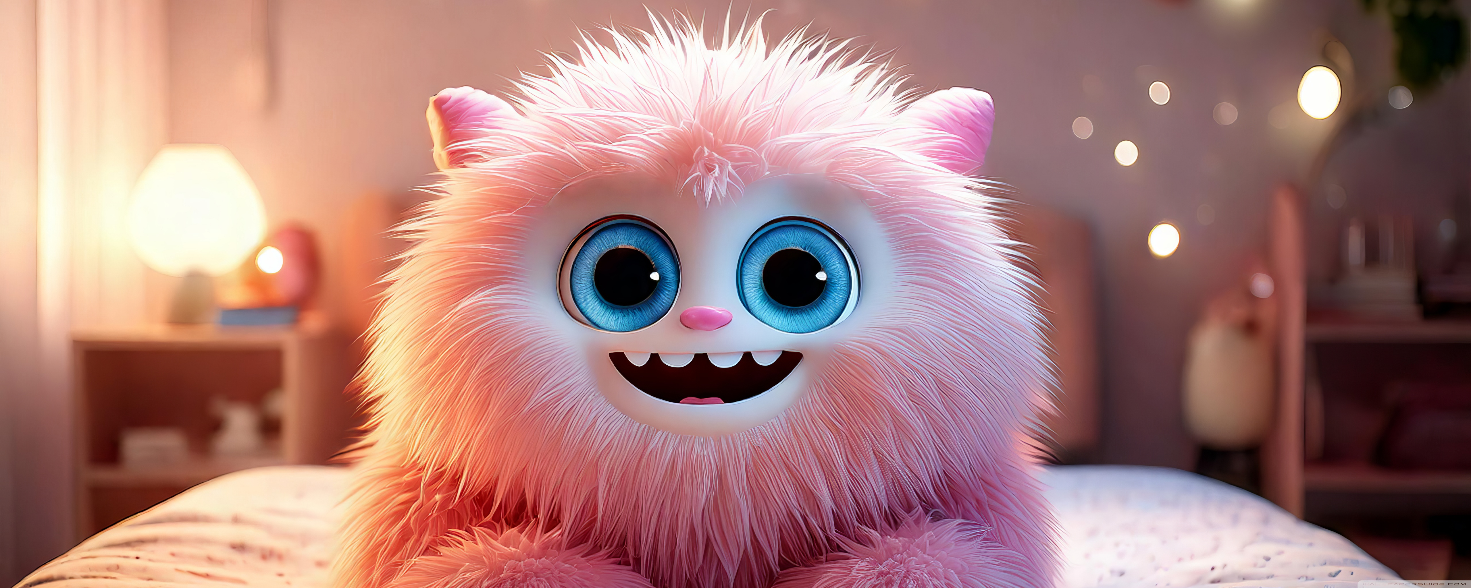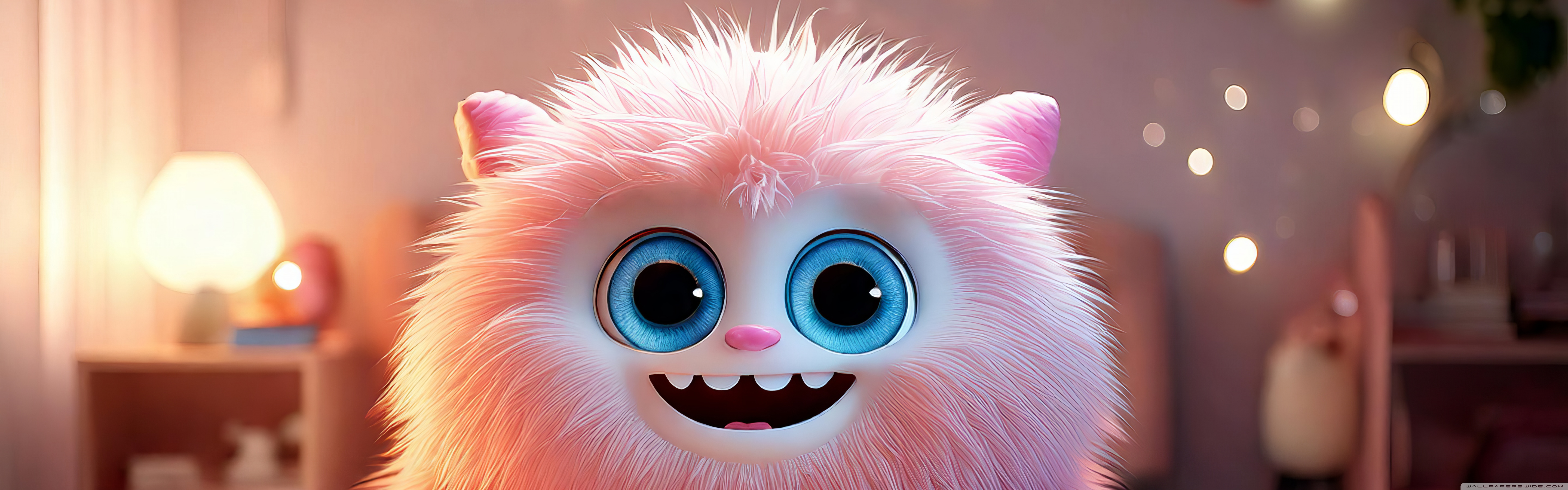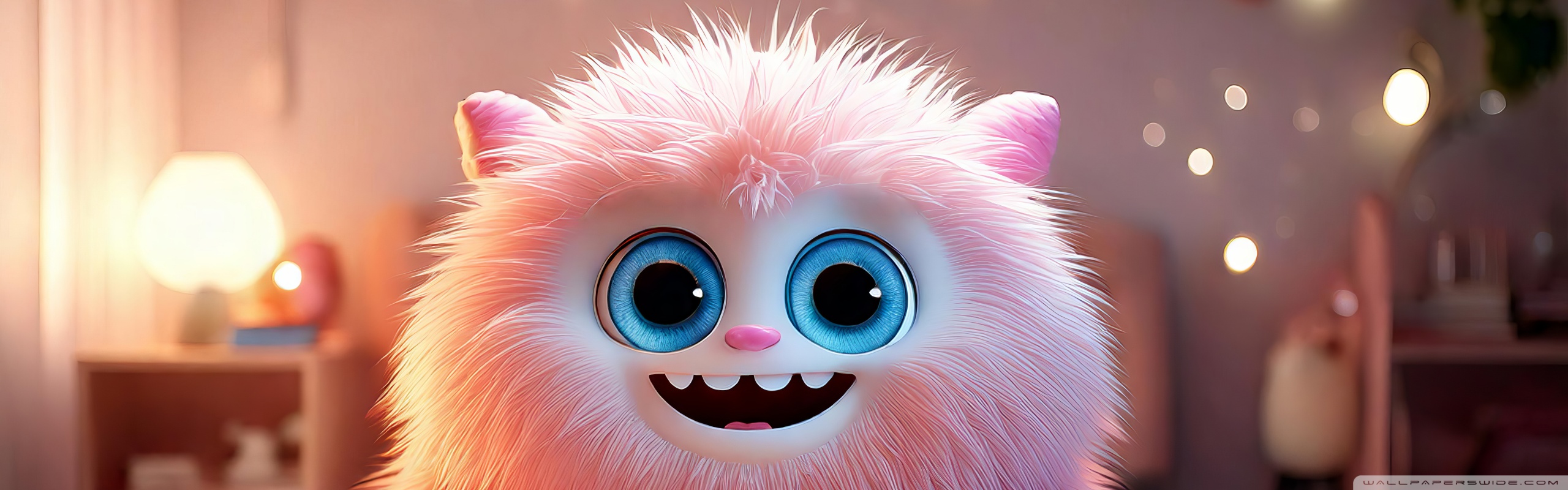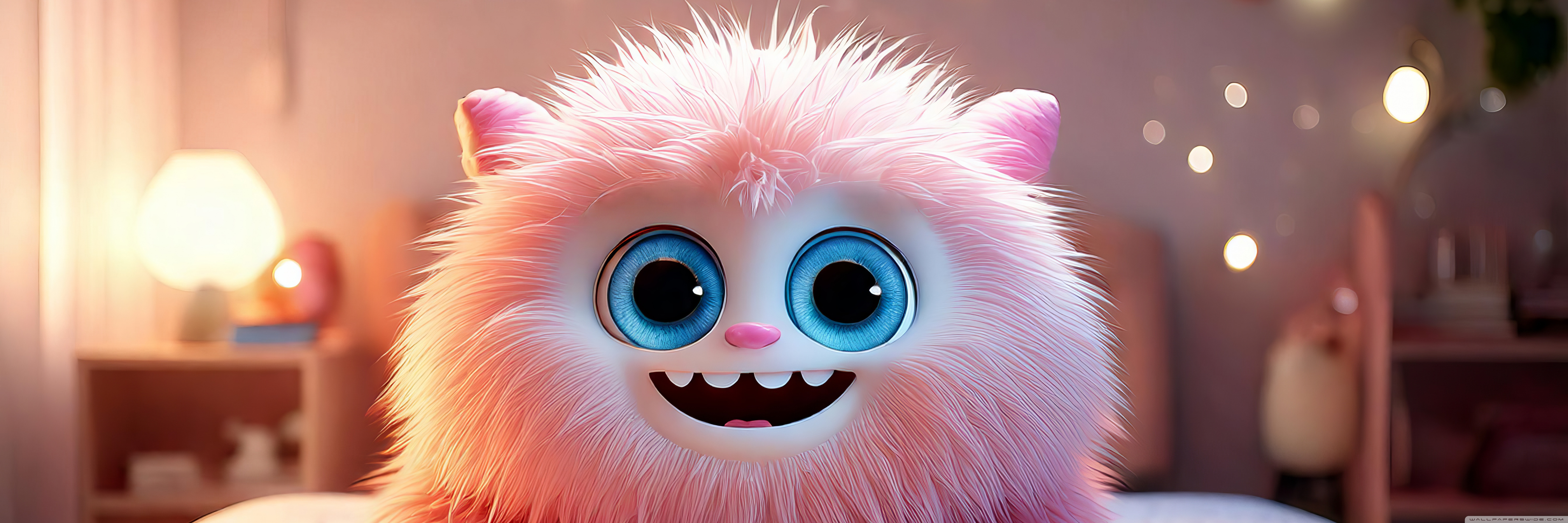 Download Fluffy Pink Monster on Bed 4K UHD Wallpaper