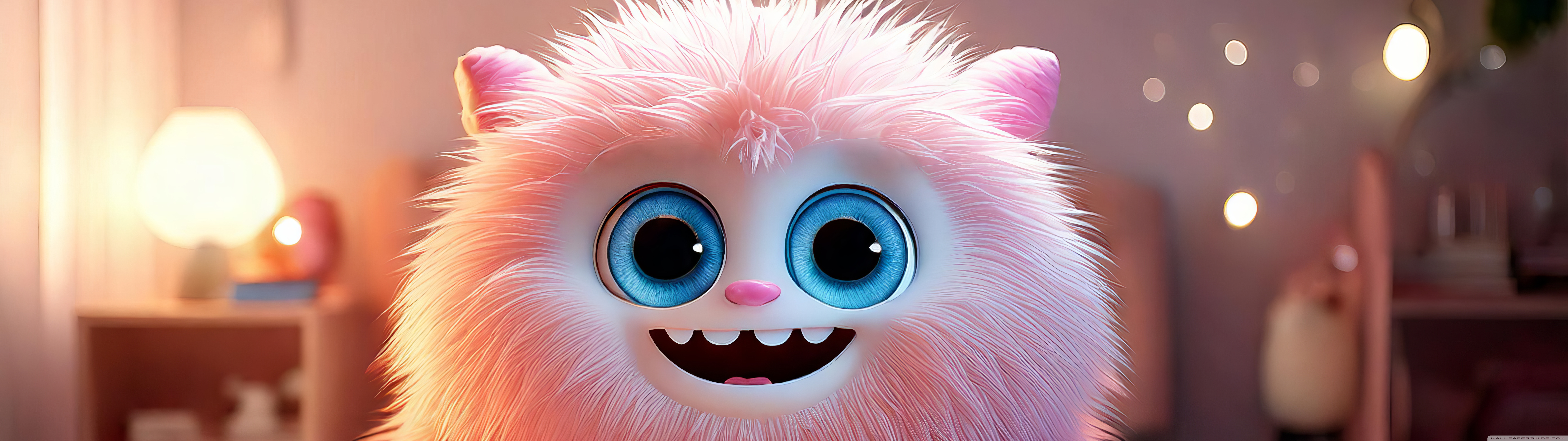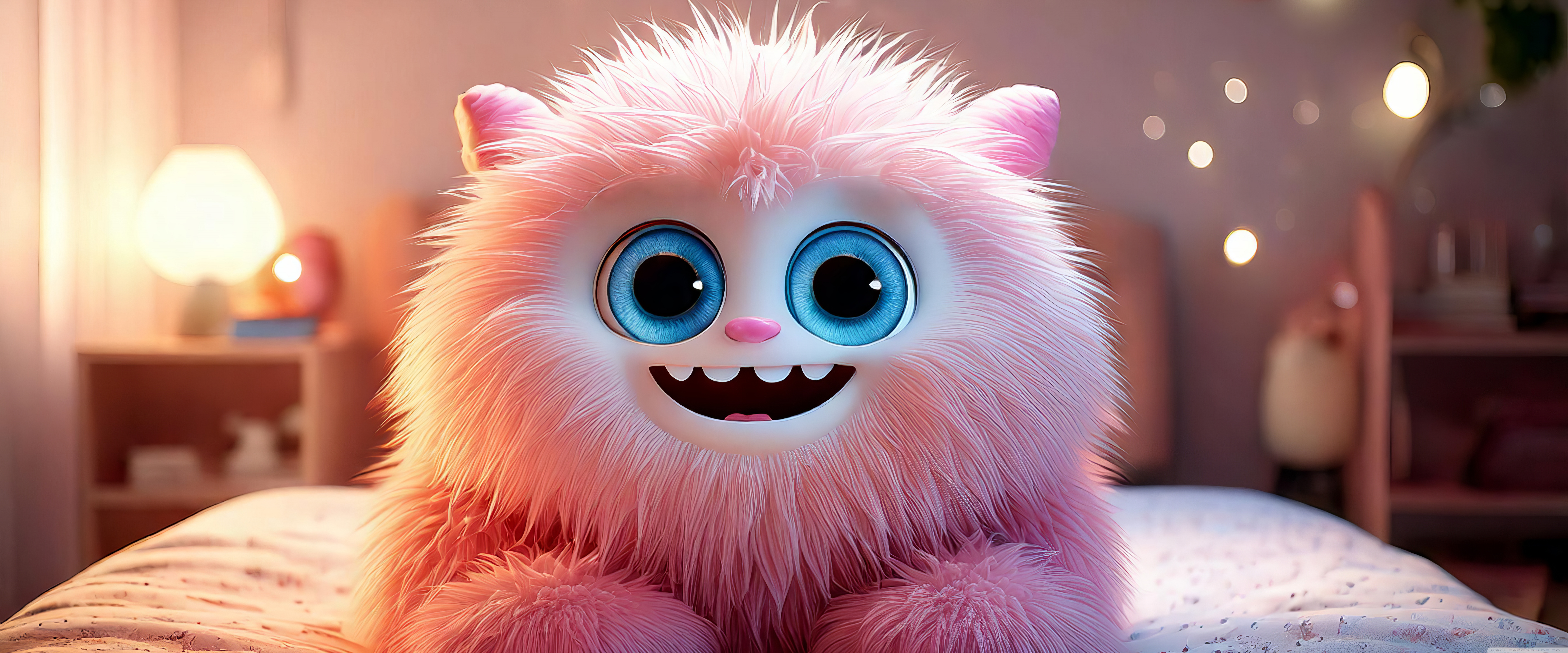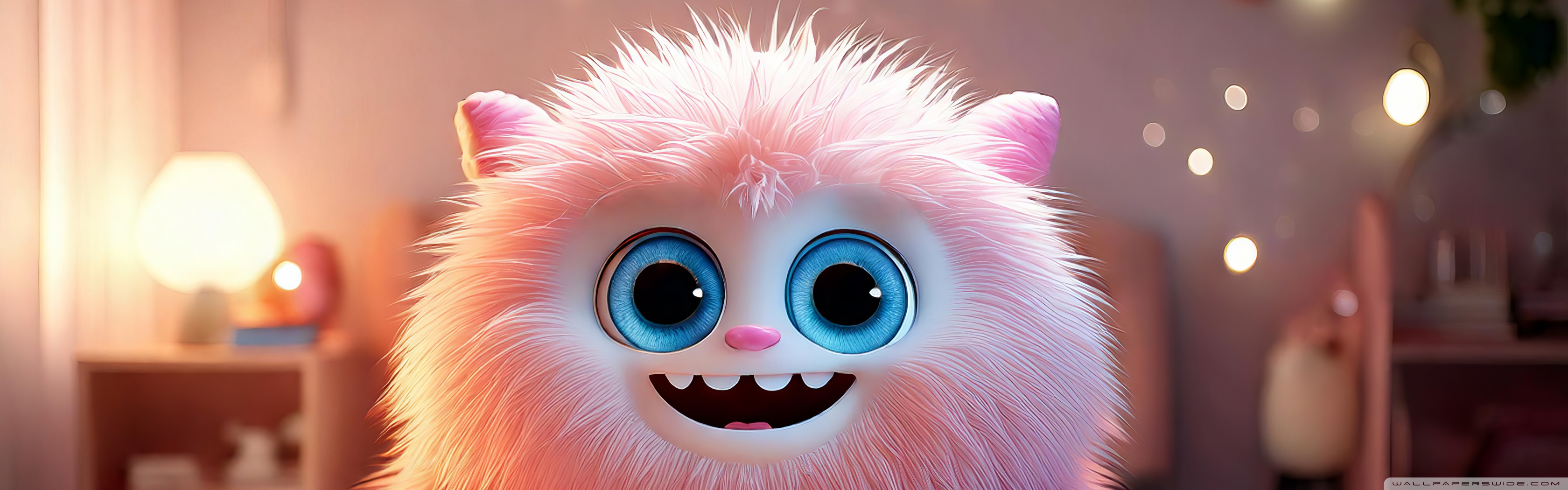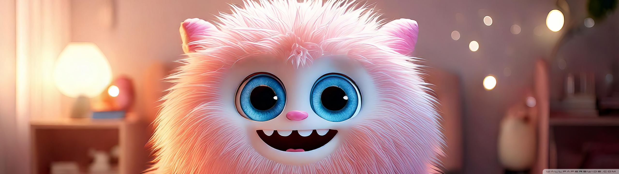 Download Fluffy Pink Monster on Bed 4K UHD Wallpaper